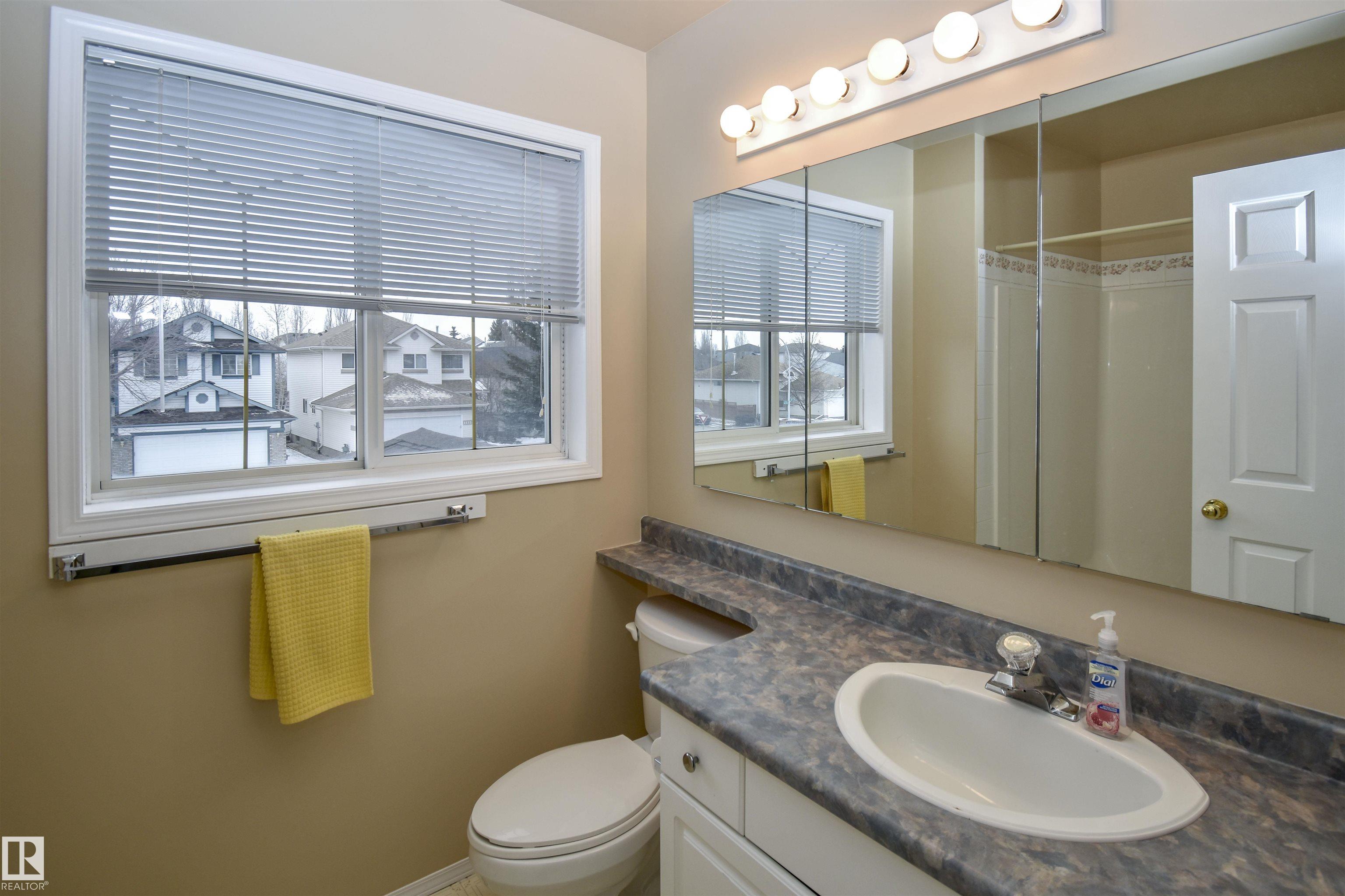 Welcome home to this inviting 2-storey offering 3 bedrooms and 2.5 baths, perfectly suited for family living. The bright main floor features newer vinyl plank flooring, a cozy living room fireplace, and the convenience of main floor laundry. The peninsula kitchen is equipped with a pantry and eating bar for plenty of storage and prep space. Upstairs you'll a spacious primary bedroom with a 4-pce ensuite with soaker tub plus a bright walk-in closet. The second and third bedrooms also have large closets, and a 4-pce family bath rounds out this level. The unfinished basement provides excellent potential with a rough-in for a future bathroom. Enjoy a double attached garage and a generous backyard with spacious deck, ideal for outdoor living. Shingles have been replaced within the last 10 years. Located just steps from scenic Mill Creek Ravine trails and off-leash area, and close to schools, parks, grocery stores, and everyday amenities. Quick possession available!