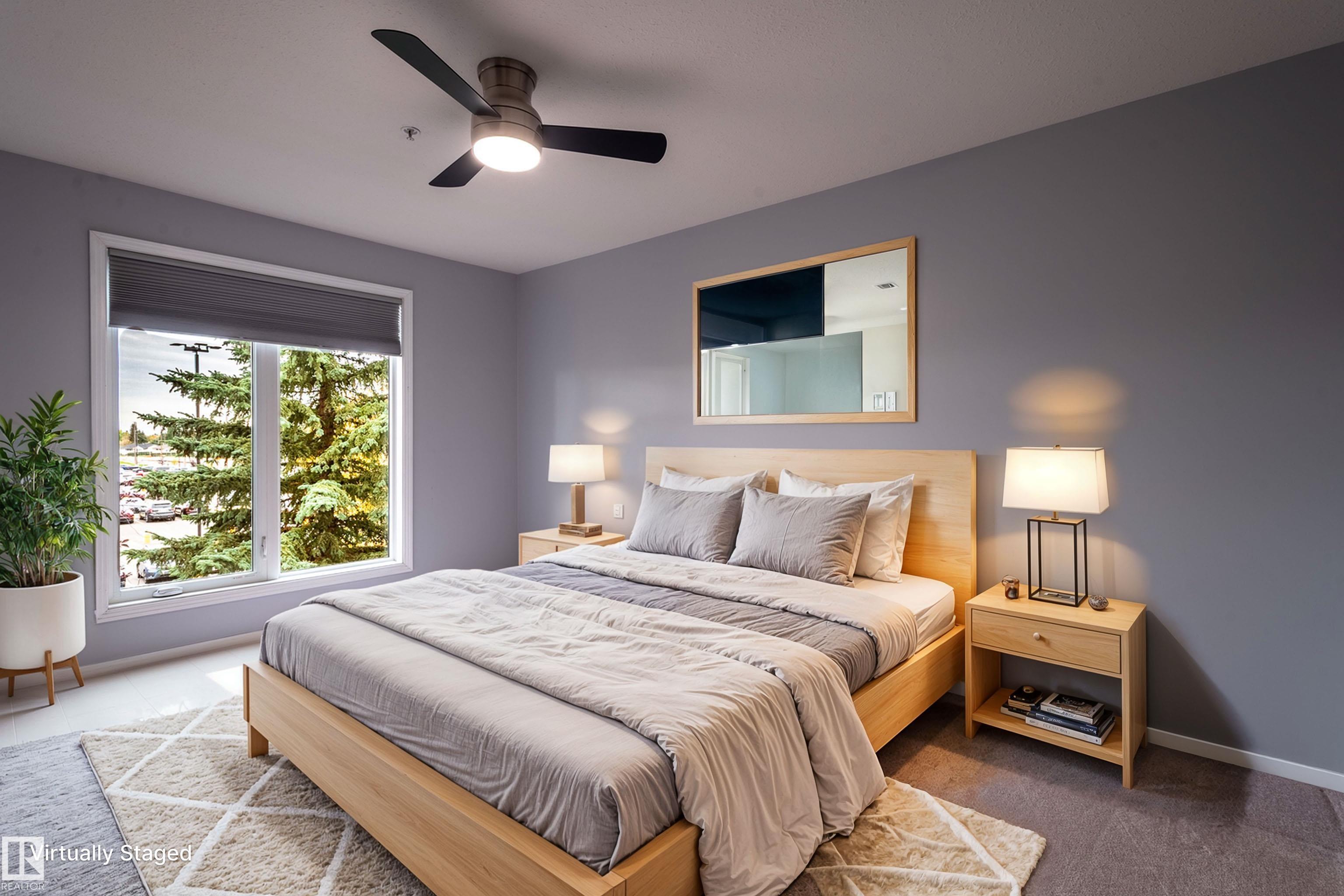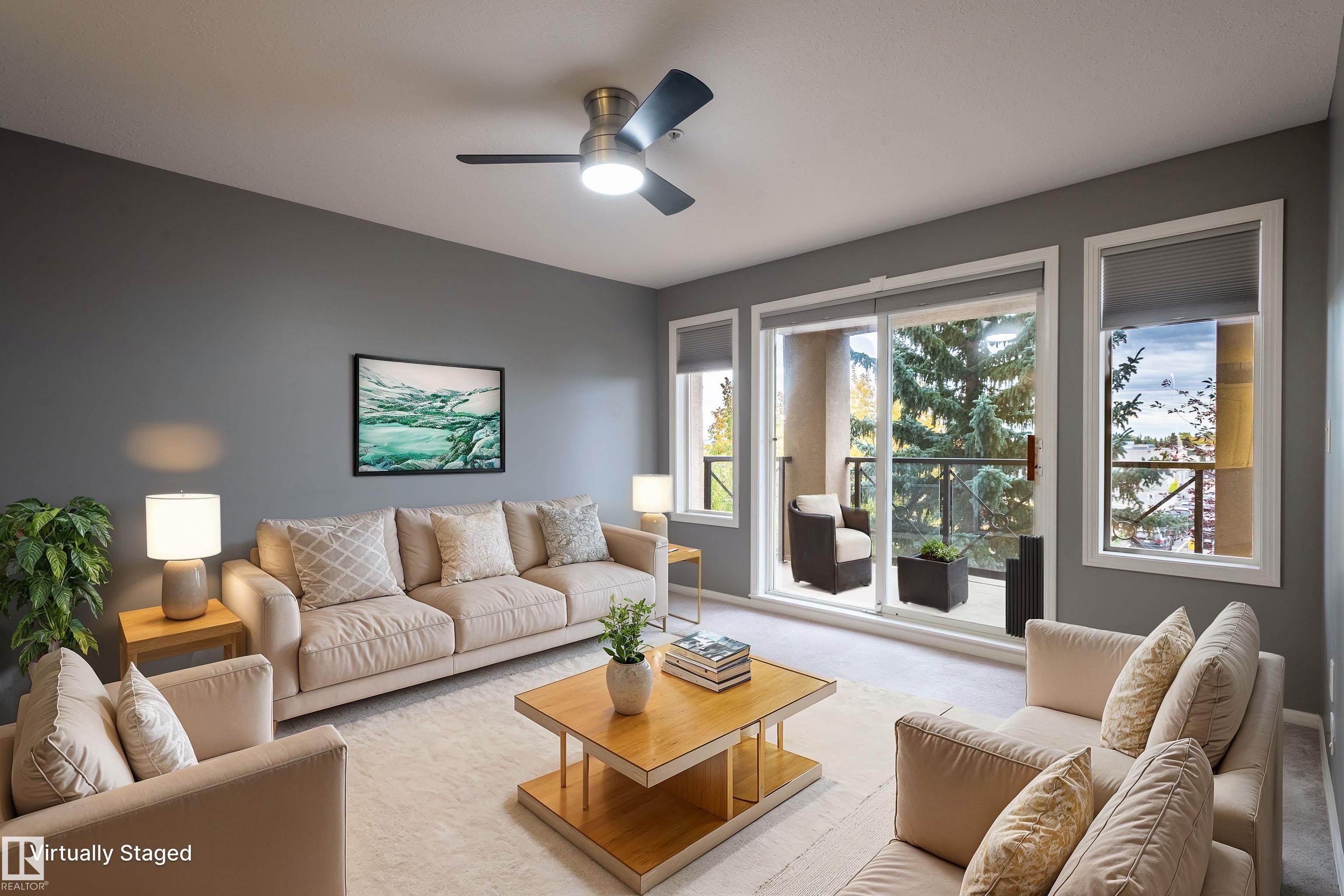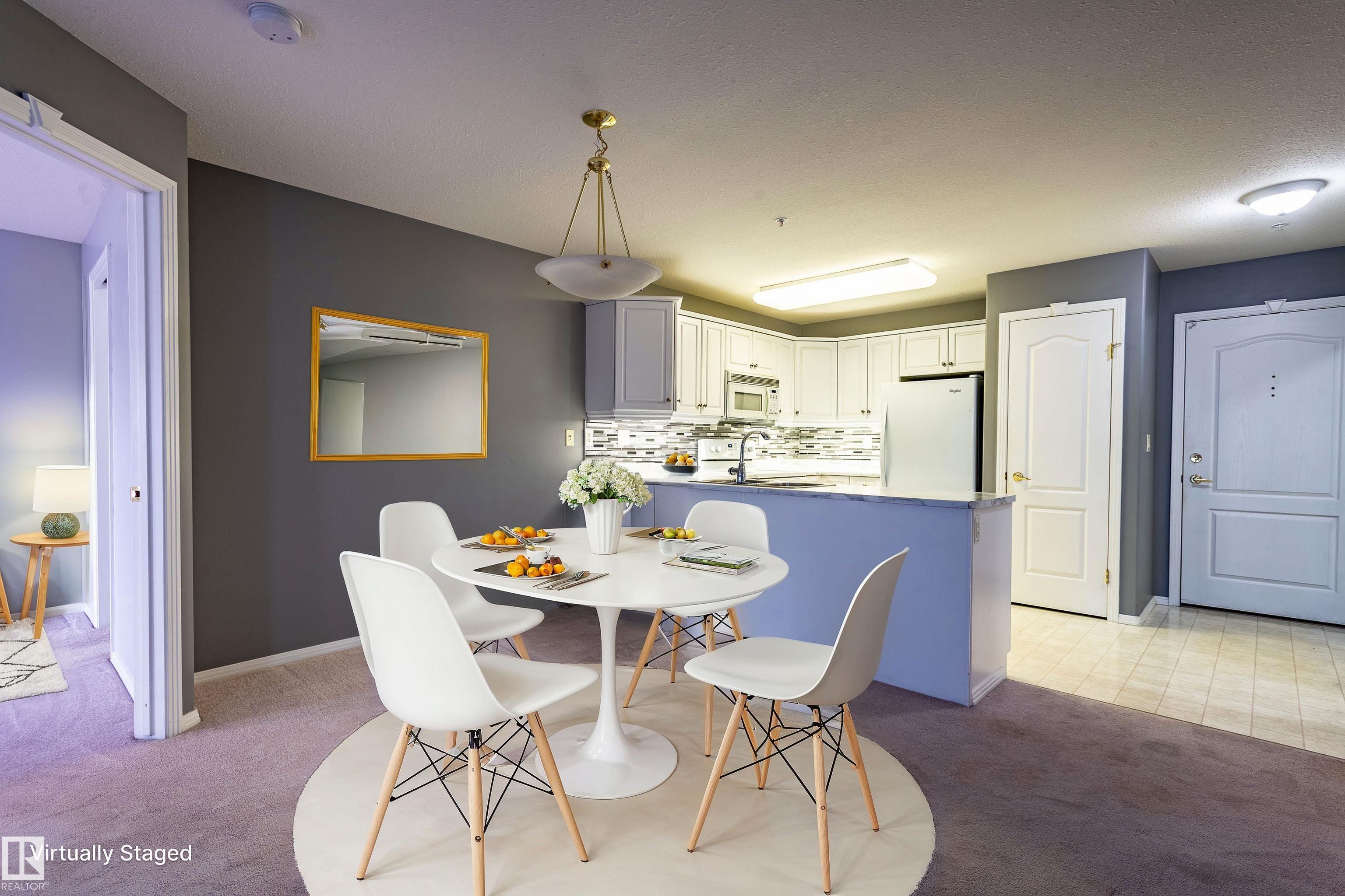 One of Edmonton's premier adult-living communities, The Renaissance isn't just a condo; it's a lifestyle with social clubs, fitness centre, sauna, library, pool tables, shuffleboard, a craft room, and fully equipped wood workshop. For the colder months, the amenities building is connected to the main residence through the heated underground parkade. Step outside and enjoy the beautifully landscaped courtyard, complete with walking paths, park benches, and two tranquil fountains. Inside the unit, you'll find two bedrooms and upgraded flooring. The kitchen offers ample storage and seamlessly flows into the bright living area with a south-facing view. The condo fees include an extensive cable TV package. Your heated underground parking spot also comes with a storage unit and access to two car wash bays and bike storage. Located steps from the Meadowlark Medical Mall, Walmart, Safeway, and the upcoming Valley Line LRT, this location offers unmatched convenience and community.