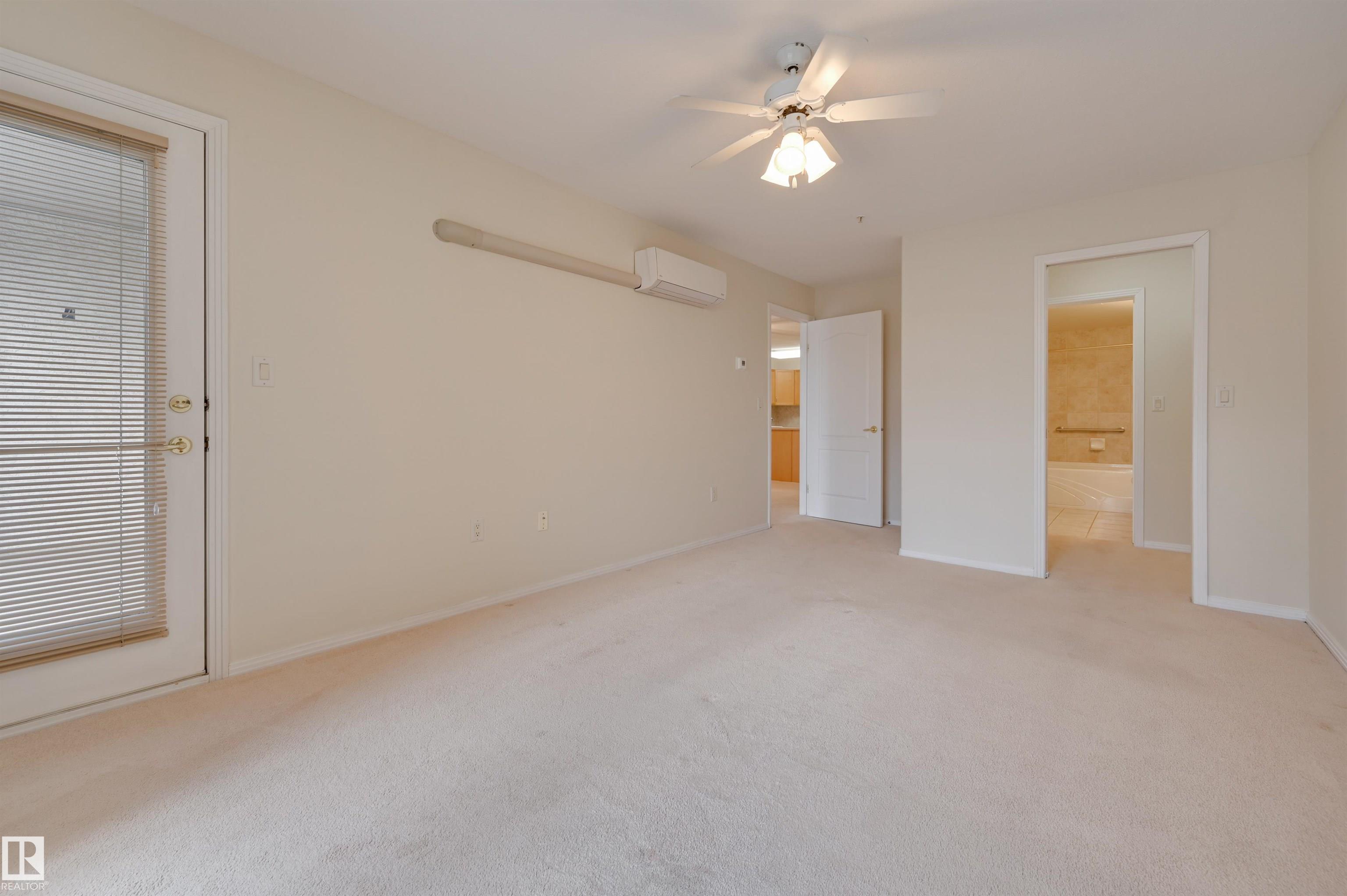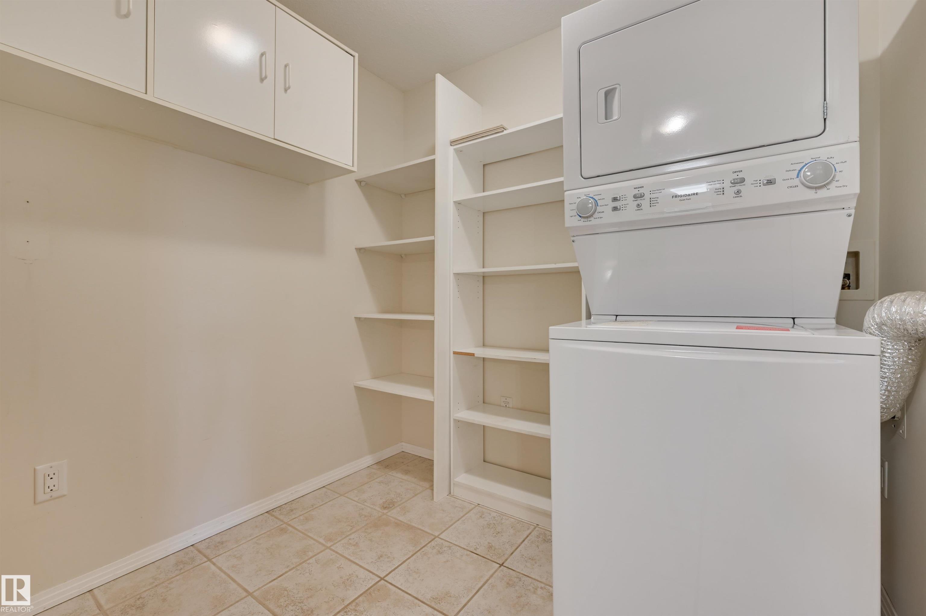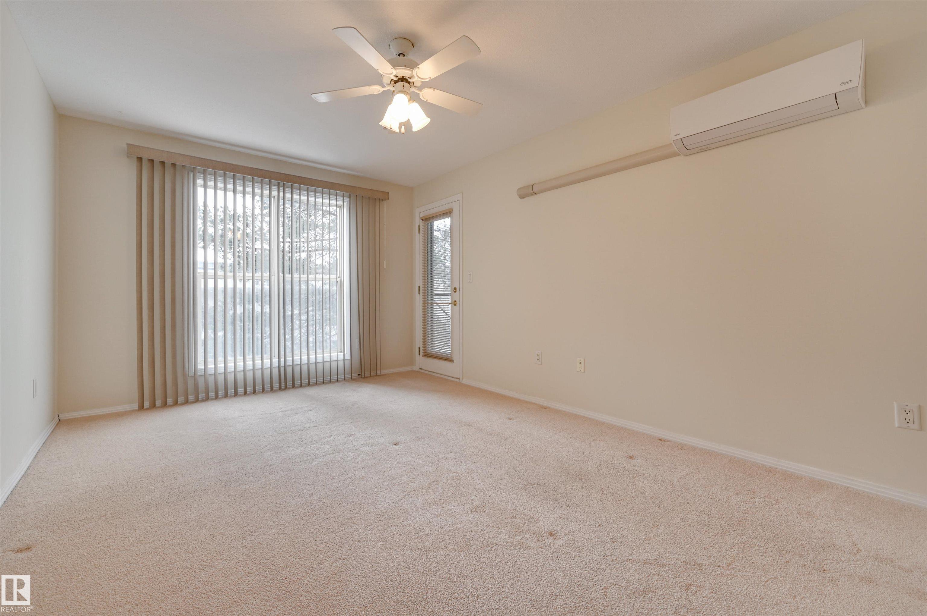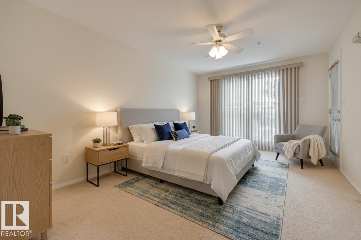 Welcome to effortless 55+ living in this spacious and beautifully maintained 1 bedroom, 1 bathroom condo, thoughtfully designed for comfort and convenience. The open-concept kitchen, living, and dining areas are filled with natural light, creating a bright and inviting space for everyday living & entertaining. The generous primary bedroom features direct access to the patio and a walk-through closet leading to the 4-piece bathroom. Added features of in suite laundry & Air Conditioning. Enjoy the added luxury of heated underground parking with a storage cage, along with outstanding building amenities including a car wash, gym, billiards area, games room, library, social room, & guest suite for visiting family and friends. Ideally located just steps from shopping, grocery stores, dining, medical services, banks, the Edmonton Public Library, public transit, and the future LRT, this home offers unbeatable convenience. This is low-maintenance, active adult living at its finest!