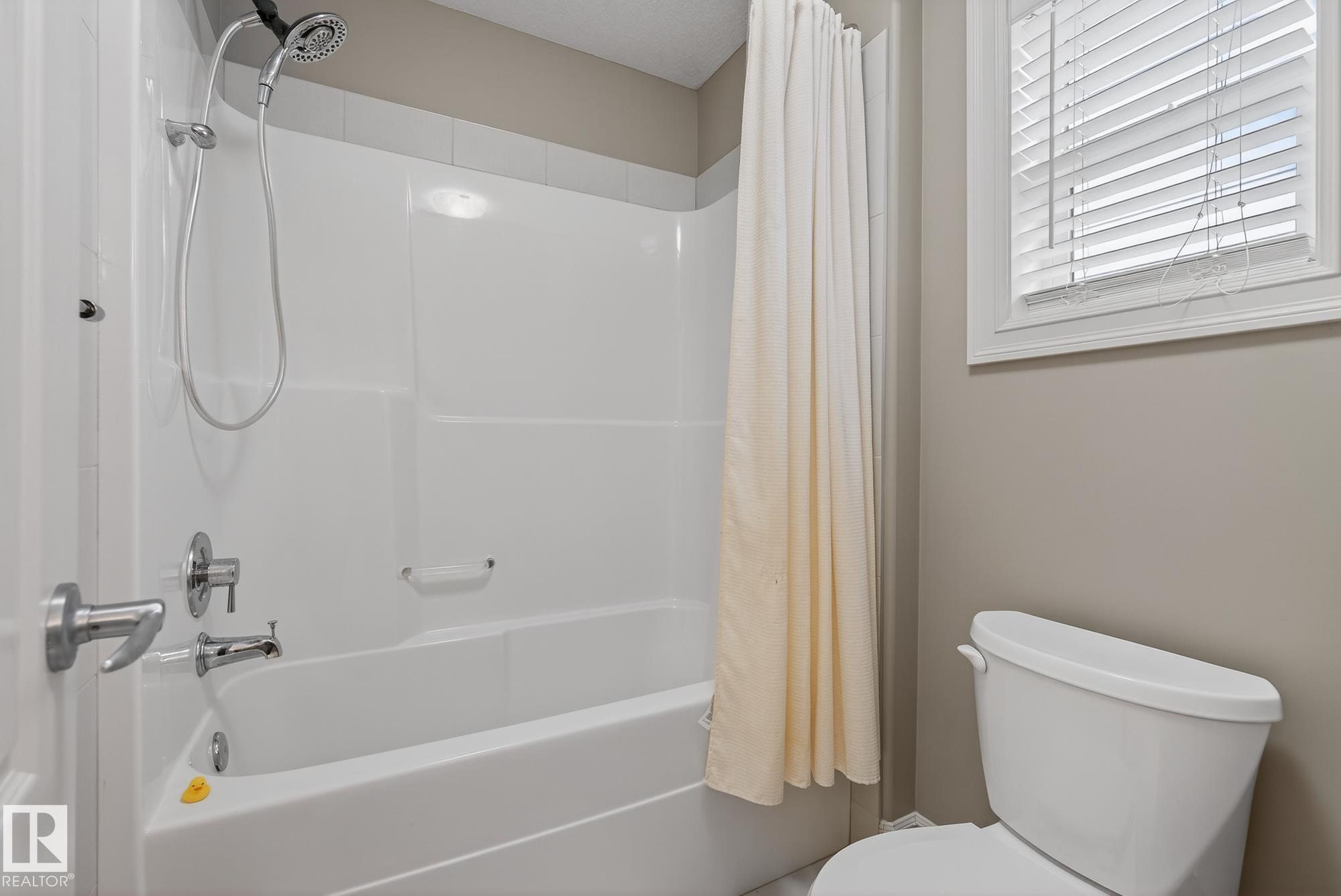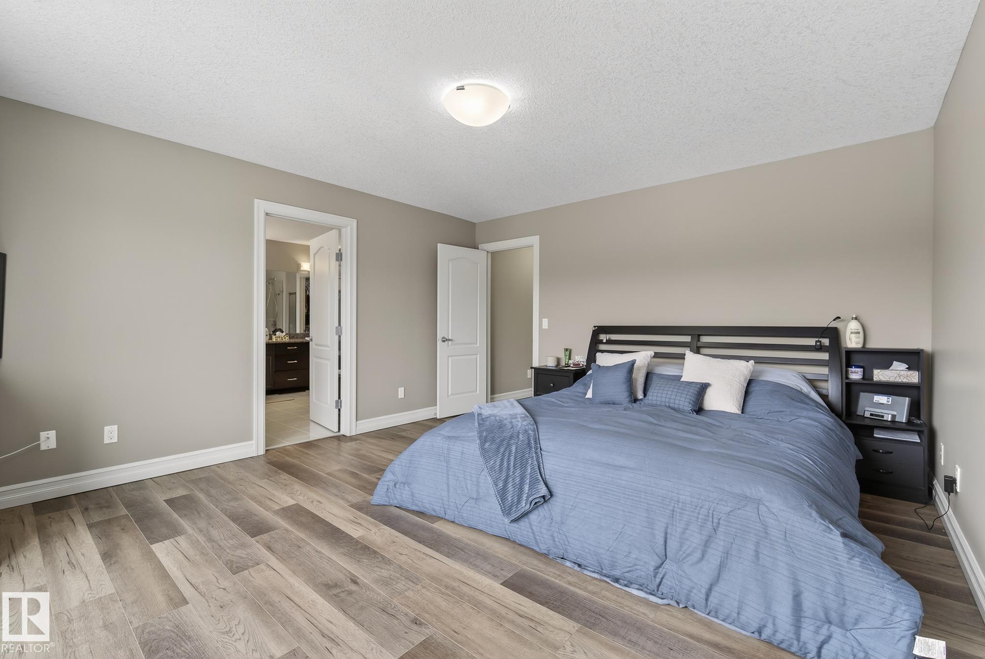 Beautiful two-storey home backing green space, just steps to a pond and within walking distance to many major amenities! This home checks all the boxes with an oversized heated double garage, functional mudroom, and large pantry. The main floor features a den/flex space, perfect for a home office and an open-concept kitchen, dining, and living area with granite countertops, hardwood floors, and a cozy gas fireplace. Step outside to a large composite deck and enjoy a low-maintenance backyard with artificial turf and a beautifully finished stone fire pit area, ideal for entertaining. Upstairs you'll find a spacious bonus room, large laundry room, a primary retreat with a walk-in closet, soaker tub, separate shower, and private water closet, plus two additional bedrooms and a 5-piece bathroom with a smart pocket door design. The unfinished basement with completed stairwell offers endless possibilities.