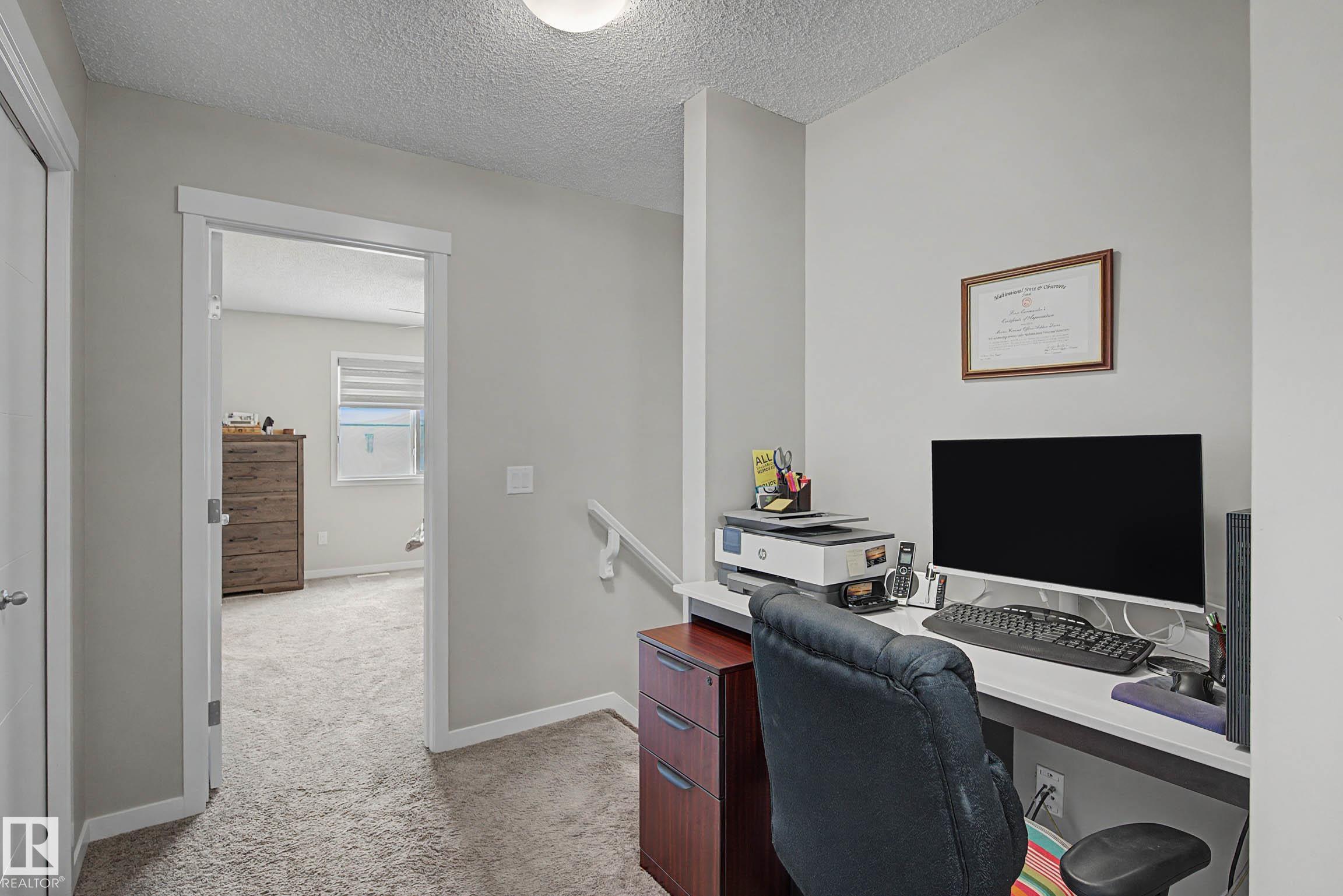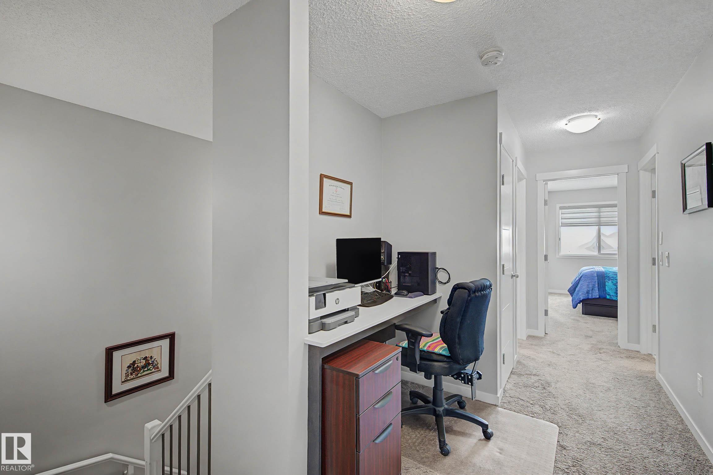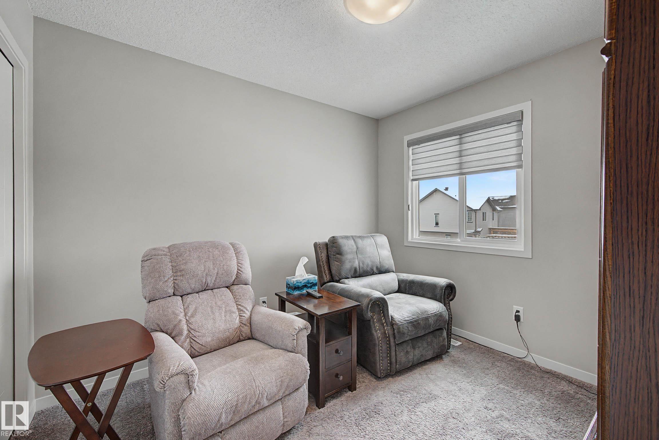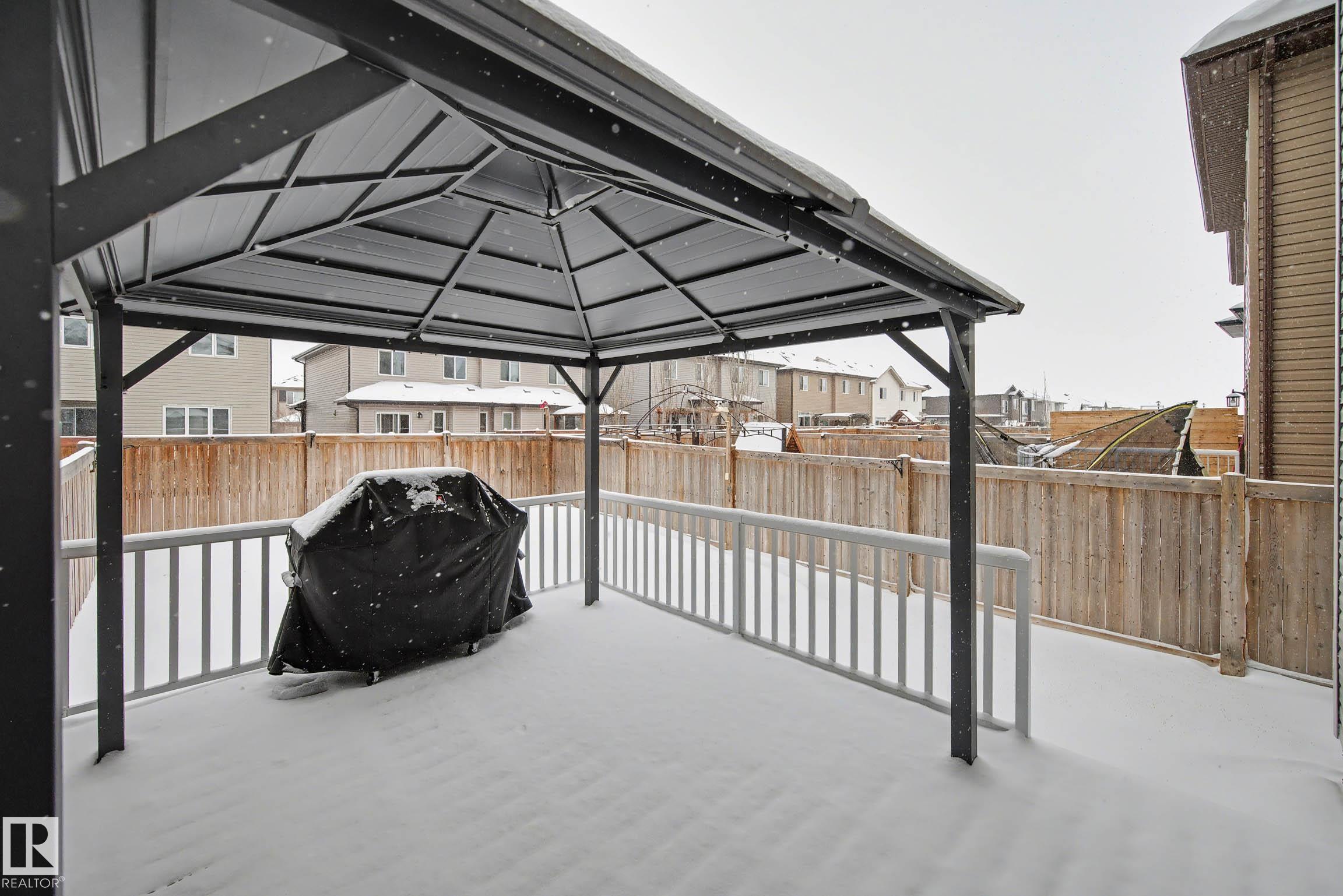 Beautifully finished 2-storey half-duplex offering 3 bedrooms and 3 bathrooms, complete with a single attached garage. The main floor features impressive 9' ceilings and an open-concept layout with laminate flooring throughout. The kitchen is well-appointed with maple cabinetry, a central island with eating ledge, and a convenient walk-through pantry, flowing into a spacious dining nook with patio doors leading to the backyard. Outside, enjoy the durable and low-maintenance composite deck & the front porch/steps are also finished in matching composite decking for added curb appeal and longevity. A stylish half bath with pedestal sink completes the main level. Upstairs, you'll find a convenient laundry area, a primary suite with walk-in closet and 4-piece ensuite, plus two additional well-sized bedrooms and a full bathroom. The unfinished basement offers endless potential for future development. This home offers plenty of outdoor space and is ideally located near parks with quick access to the Henday!