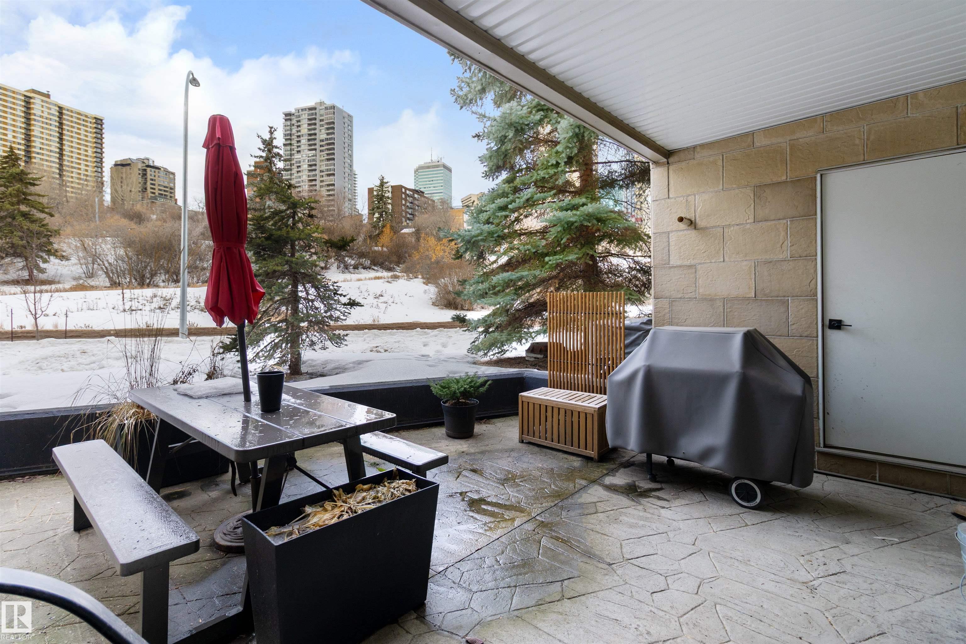 Experience the convenience of downtown living without the constant noise and congestion. This spacious 1,013 sq. ft. condo offers a bright open-concept design that makes the most of every square foot. Ideally located just minutes from the UofA, the downtown core, RE/MAX Field, and the extensive walking and biking trails throughout the River Valley. Inside, the home is move-in ready with durable vinyl plank flooring, high-end appliances, and the practicality of in-suite laundry and additional storage. The generous primary bedroom features a convenient "cheater" door providing direct access to the 4-piece bathroom. Step outside to the large concrete patio complete with a natural gas BBQ hookup, perfect for relaxing or entertaining. This well-cared-for property offers exceptional value with LOW monthly condo fees of $385.42. The unit also includes secure underground parking with a storage cage, plus a pet-friendly building. An outstanding opportunity in a sought-after location and should not be missed.