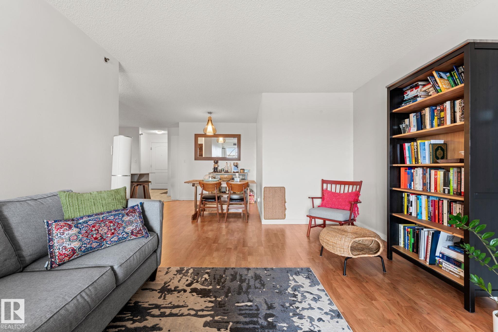 River Valley Views!! This downtown stunner boasts 959 sq ft, 2 bedrooms, 2 full bathrooms, and faces east with a gorgeous view of the river valley below. Expansive windows create a bright, inviting atmosphere by filling the home with natural lighting. The open-concept living space centers on a cozy fireplace and a fully updated, modern kitchen that's perfect for entertaining. The primary bedroom has a large closet & 4-piece ensuite. Step out onto your balcony which overlooks the river valley and baseball field to enjoy coffee at sunrise or game-day views. This home offers comfort AND convenience with it's prime location including air conditioning, heated underground parking, and reasonable condo fees (includes heat/water/sewer!). Located on the edge of the downtown core you've got easy access to the river valley, legislature grounds, restaurants/shops, public transit, U of A, MacEwan, and so much more! Meticulously maintained, move-in ready, and waiting for it's new owner to enjoy!