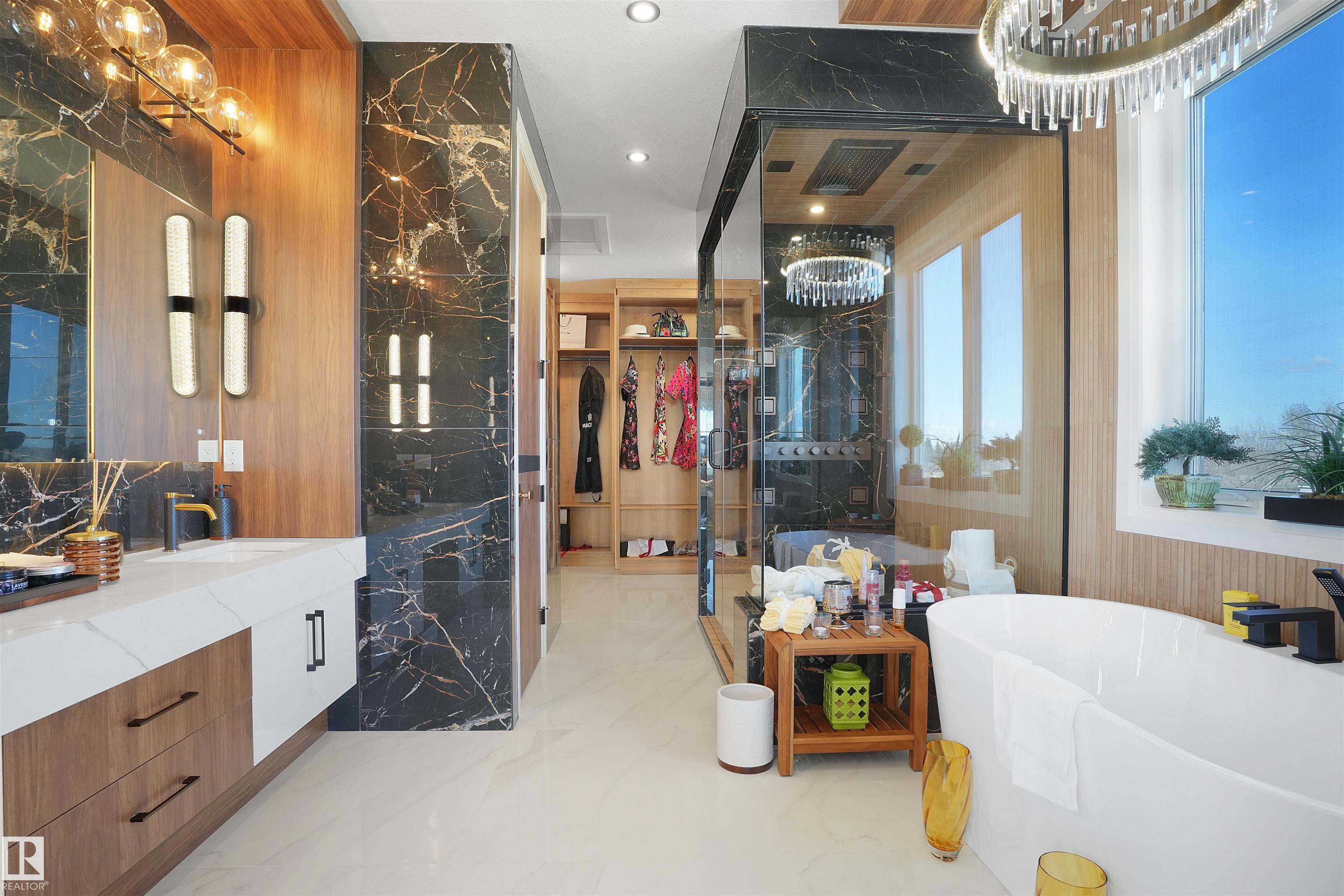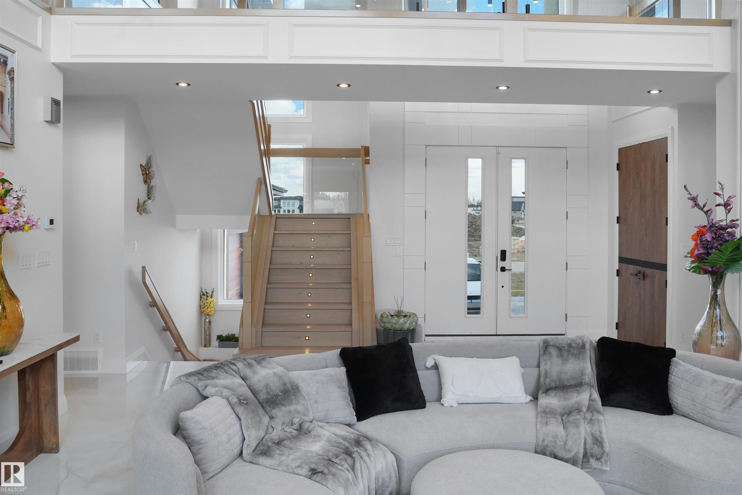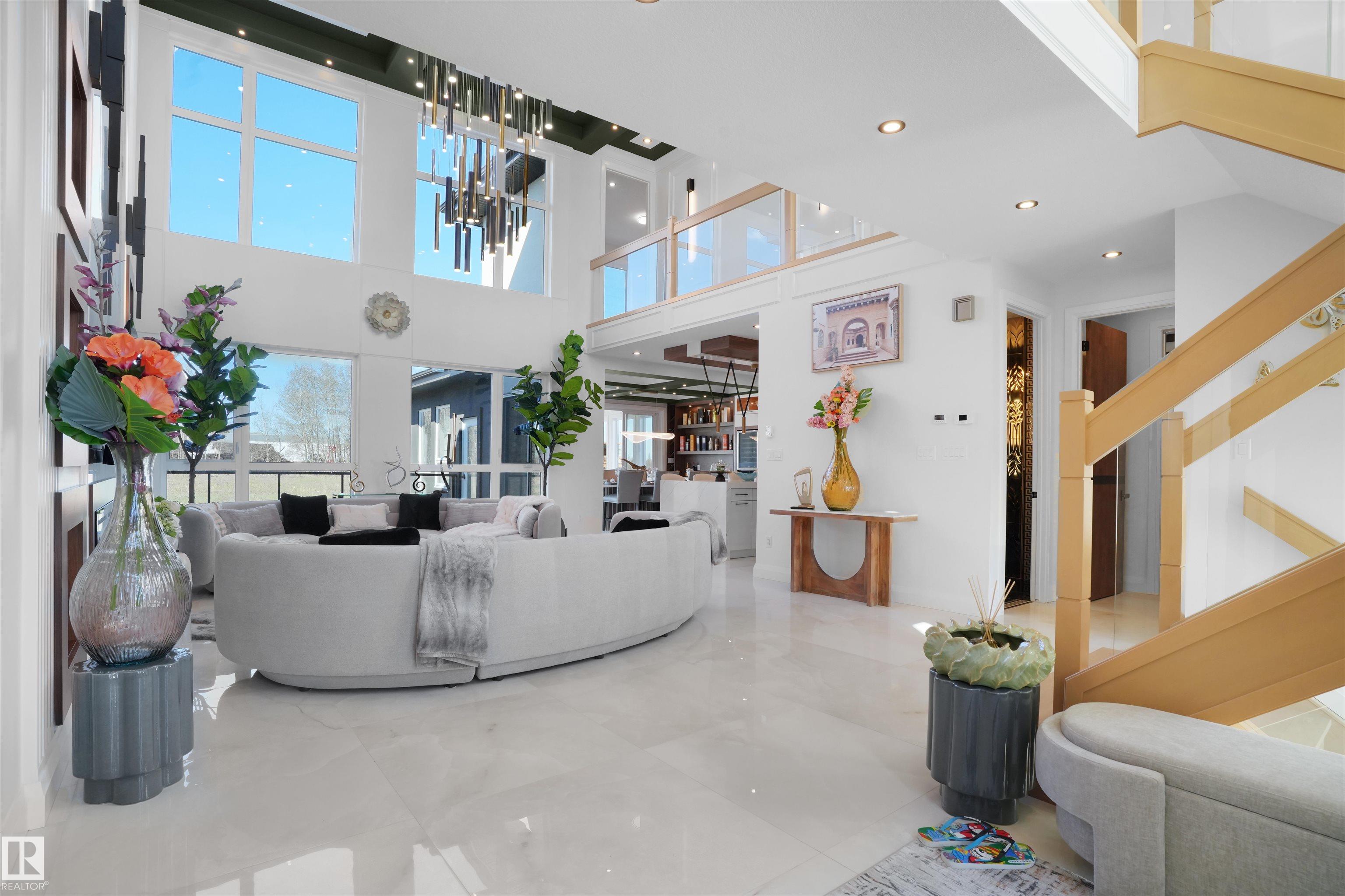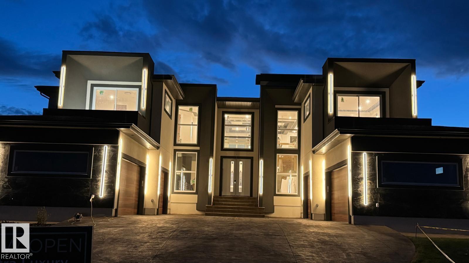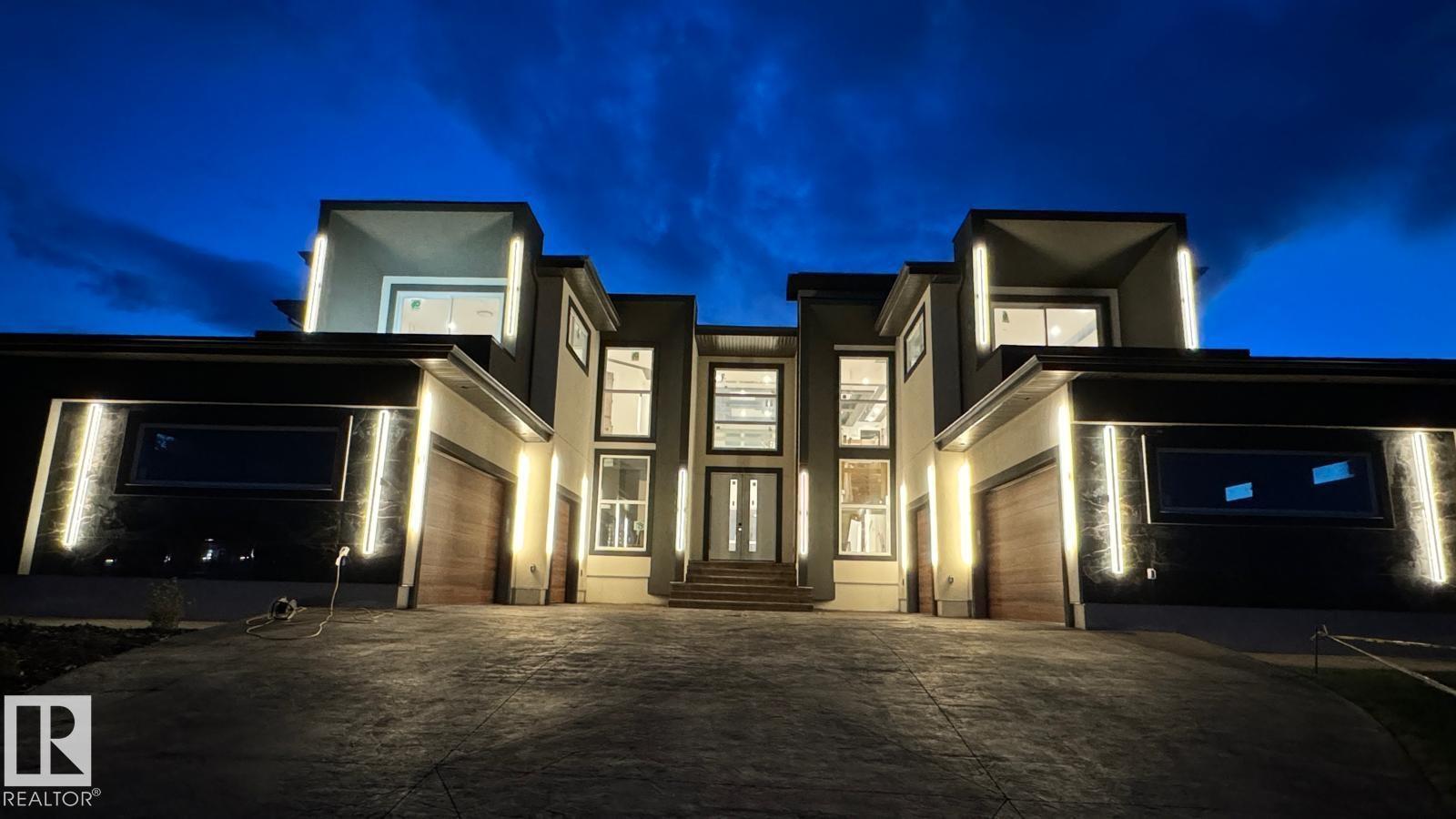 Completed, 1 + Year Labour of Love Must View !! Stunning Turn Key Luxury Spectacular Modern 6000 + sq ft of Prime Living area w 6 car plus 2 att triple garages. Hundreds of Thousands of Dollars Spent on Ultimate Living Built ins, Caifornia Wardrobe Closets Throughout, 68 inch fridge, HighTech Night Lighting, Expoy Floor, Wall Mounted Washrms, Dream Kitchen w Extra Spice Kit, Gorgeous Entrance, 1 acre city water, sewer, 8 min paved road to WEM. Main flr den-bdrm w 4 piece ensuite, sunroom, great room, mudroom, etc., 6 bedrms, 7 washrms total. Up 4 bedrms - 4 ensuites, loft, laundry, balcony areas, covered decks add magic to fabulous floor plan ! 4300 sq ft above ground incl approx 380 sq ft of sun room heated with doors open, 1763 sq ft lower. Separate Entrance Stairs to fully dev lower, privacy ... Lower lev has Theatre Room, Gym, Rec Room with bar, 6th bdrm, two 4 piece washrooms, seller now open to landscape etc. TBD mutually agreed by buyer, seller. Immediate poss ! Photos are actual & rendering