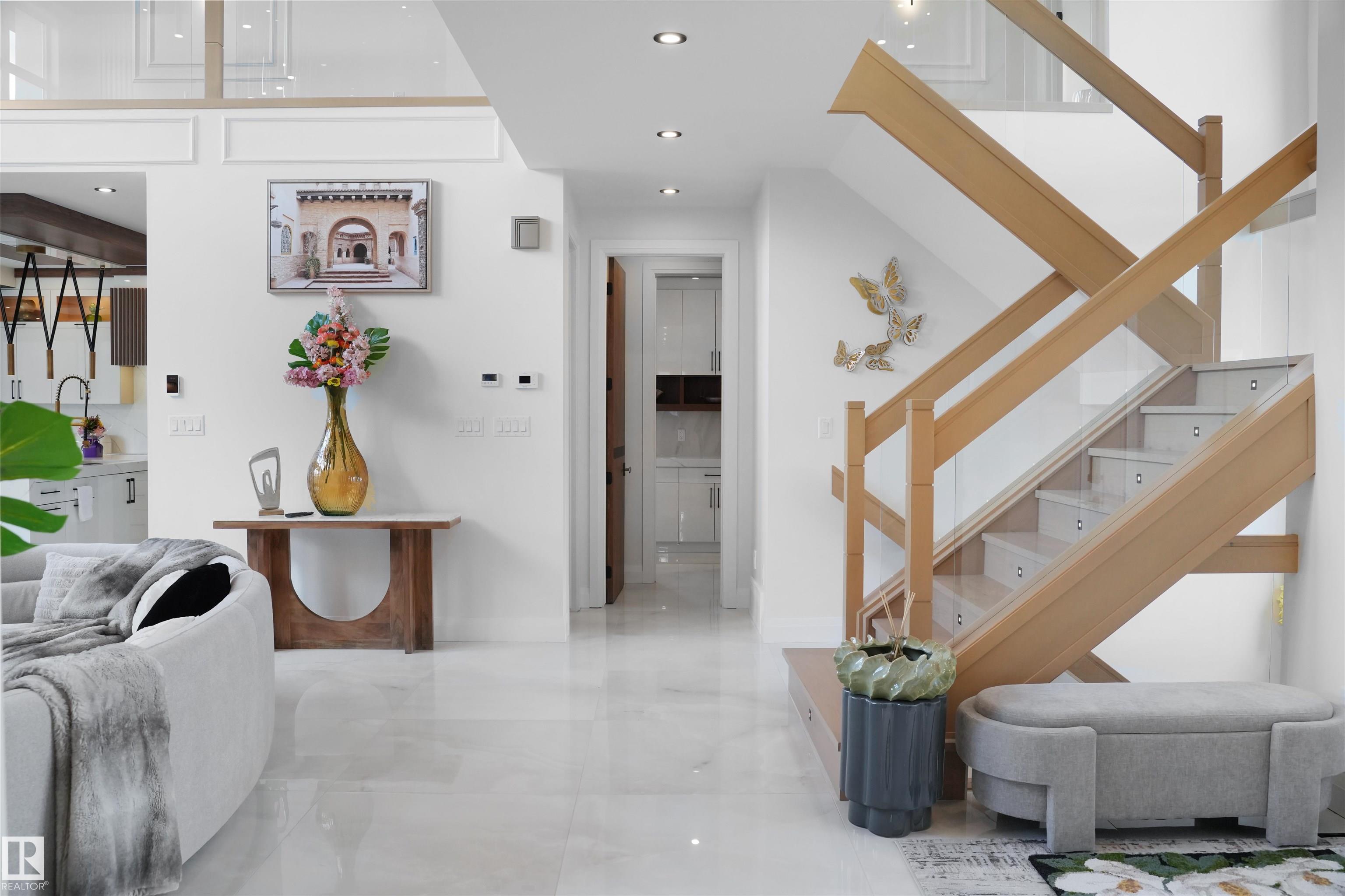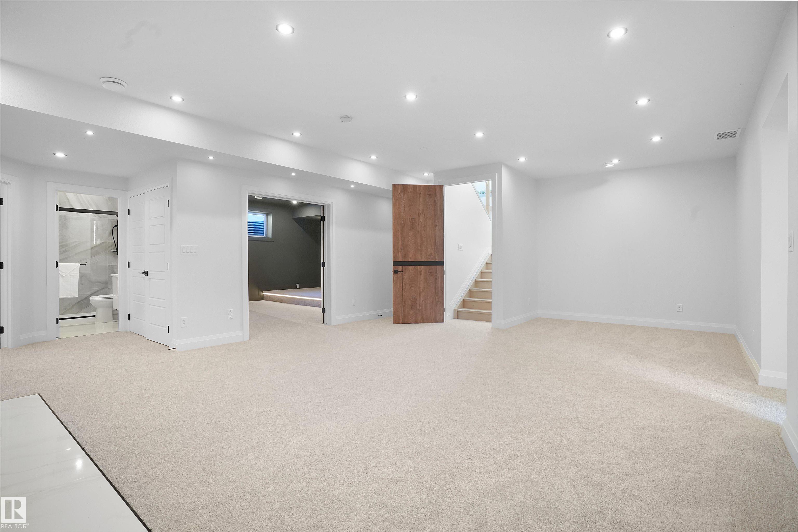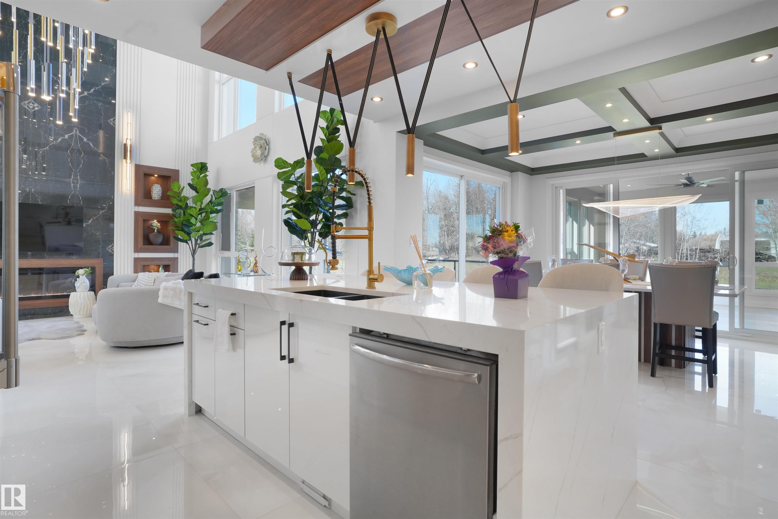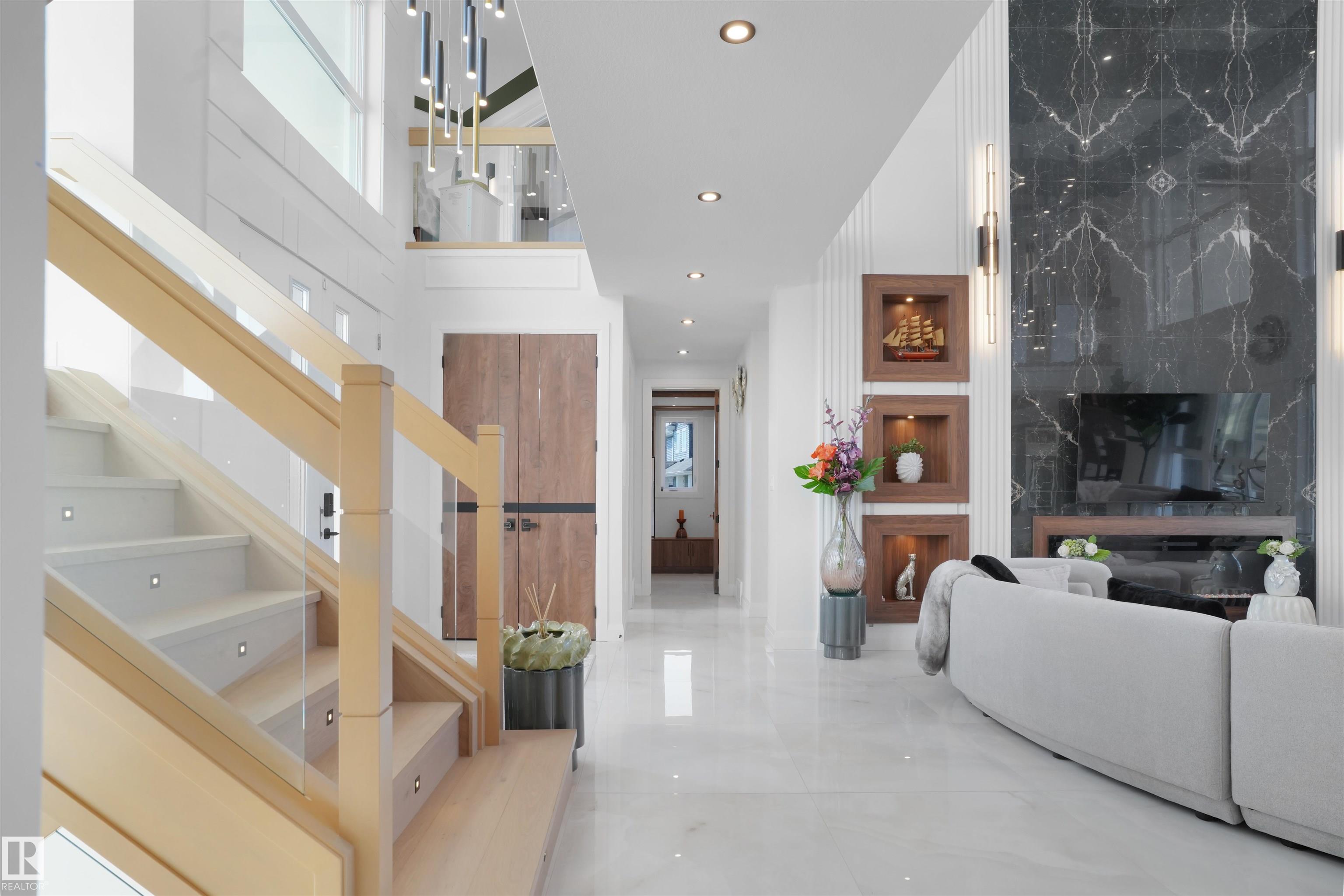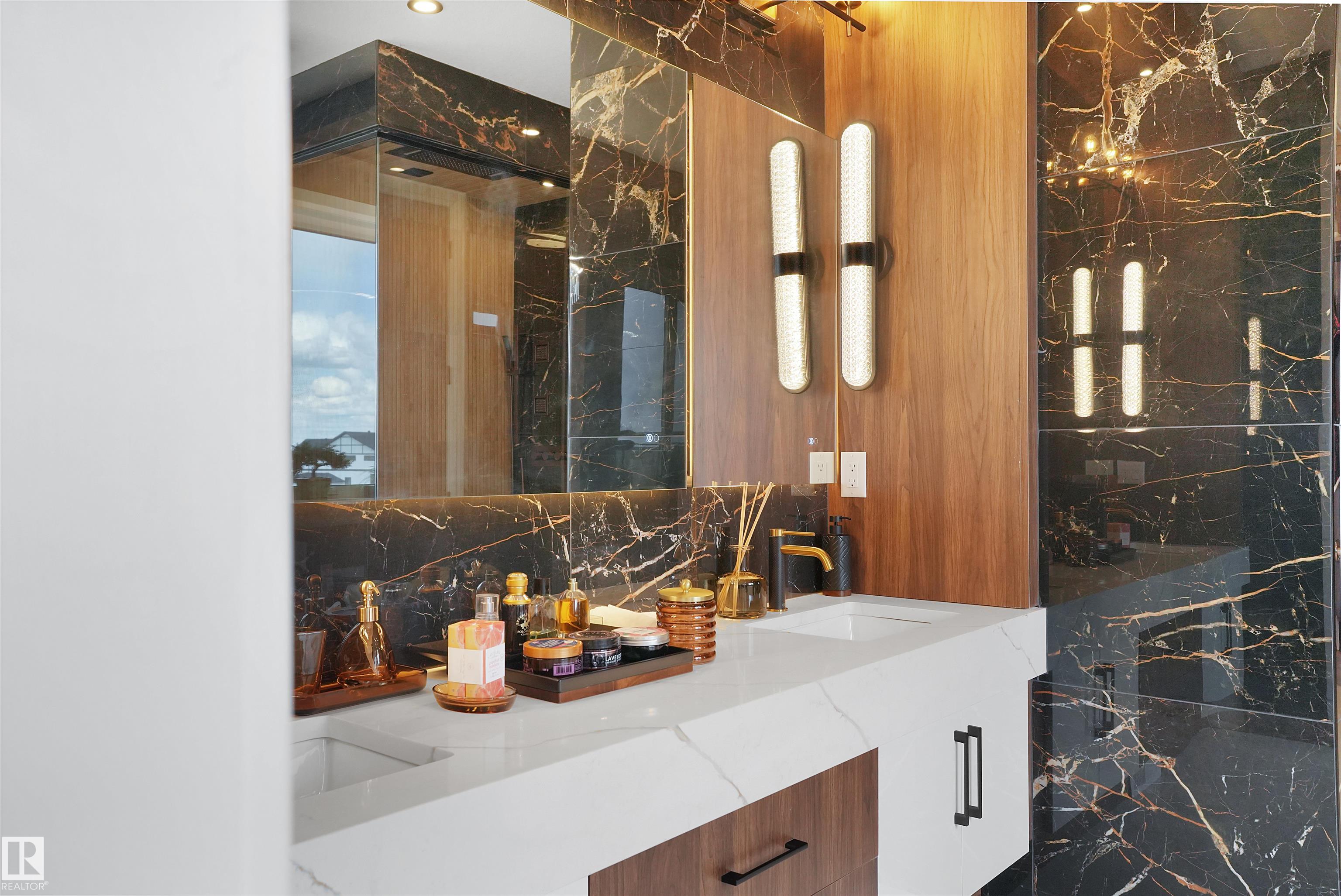Completed, 1 + Year Labour of Love Must View !! Stunning Turn Key Luxury Spectacular Modern 6000 + sq ft of Prime Living area w 6 car plus 2 att triple garages. Hundreds of Thousands of Dollars Spent on Ultimate Living Built ins, Caifornia Wardrobe Closets Throughout, 68 inch fridge, HighTech Night Lighting, Expoy Floor, Wall Mounted Washrms, Dream Kitchen w Extra Spice Kit, Gorgeous Entrance, 1 acre city water, sewer, 8 min paved road to WEM. Main flr den-bdrm w 4 piece ensuite, sunroom, great room, mudroom, etc., 6 bedrms, 7 washrms total. Up 4 bedrms - 4 ensuites, loft, laundry, balcony areas, covered decks add magic to fabulous floor plan ! 4300 sq ft above ground incl approx 380 sq ft of sun room heated with doors open, 1763 sq ft lower. Separate Entrance Stairs to fully dev lower, privacy ... Lower lev has Theatre Room, Gym, Rec Room with bar, 6th bdrm, two 4 piece washrooms, seller now open to landscape etc. TBD mutually agreed by buyer, seller. Immediate poss ! Photos are actual & rendering