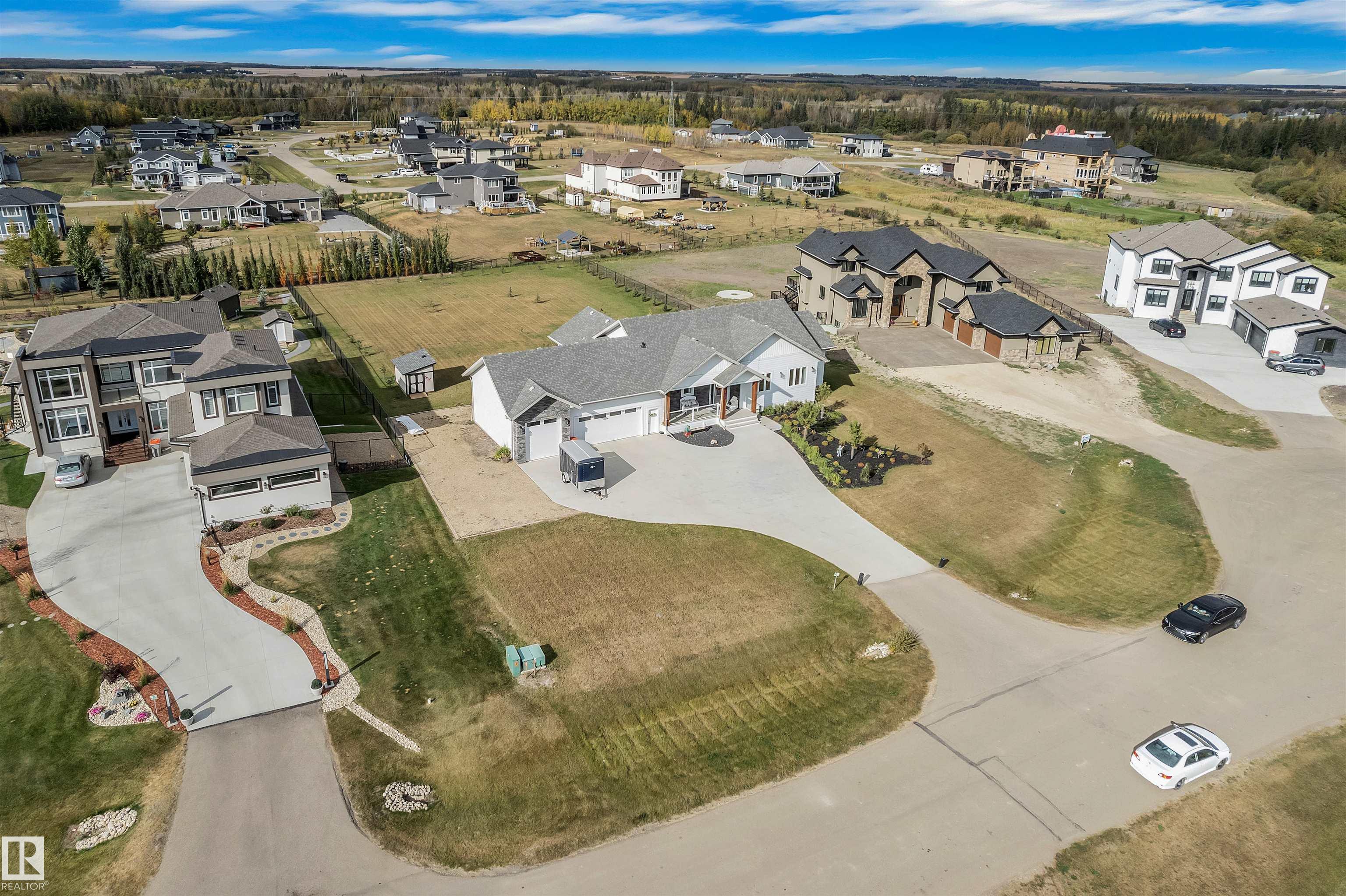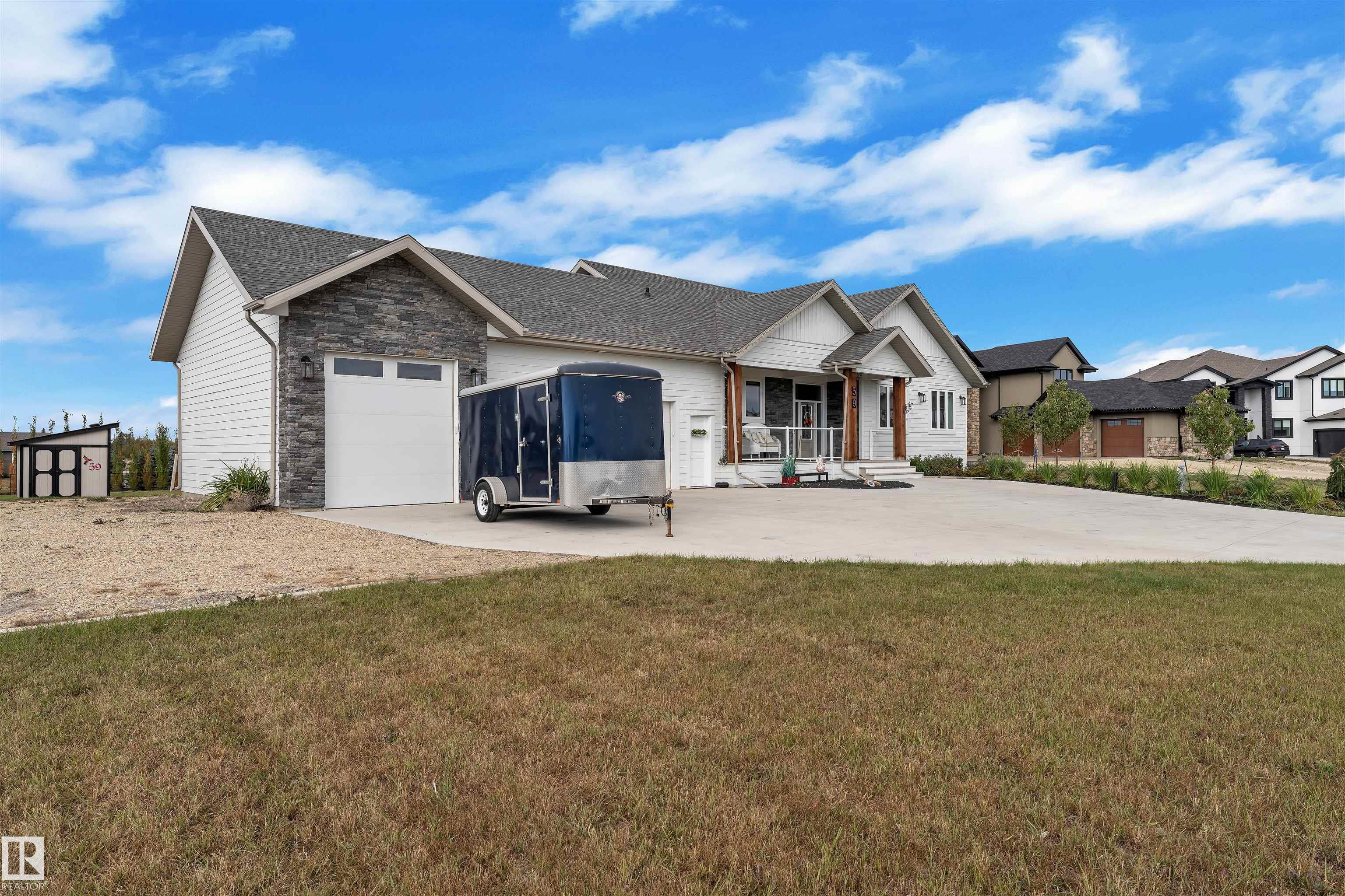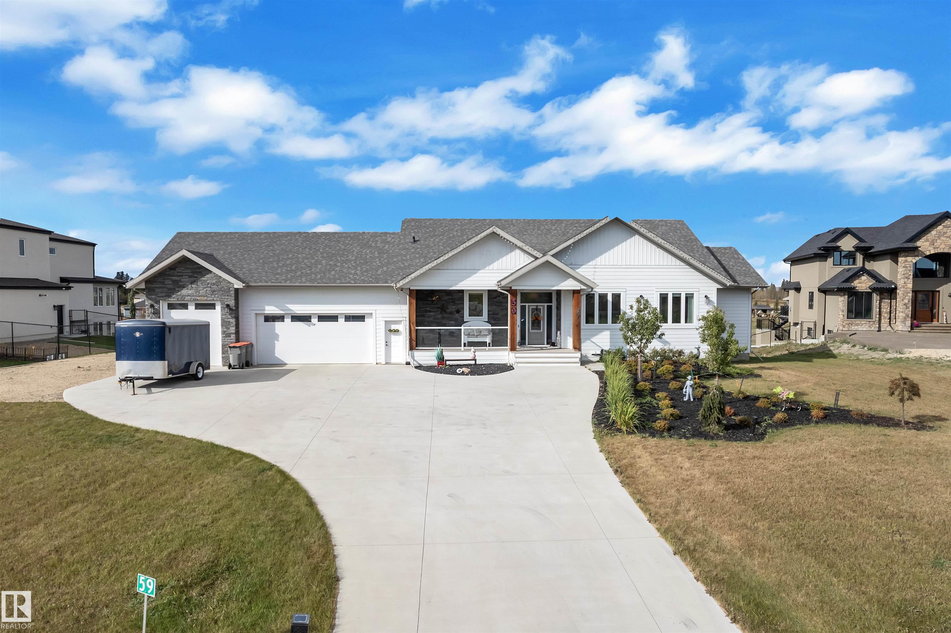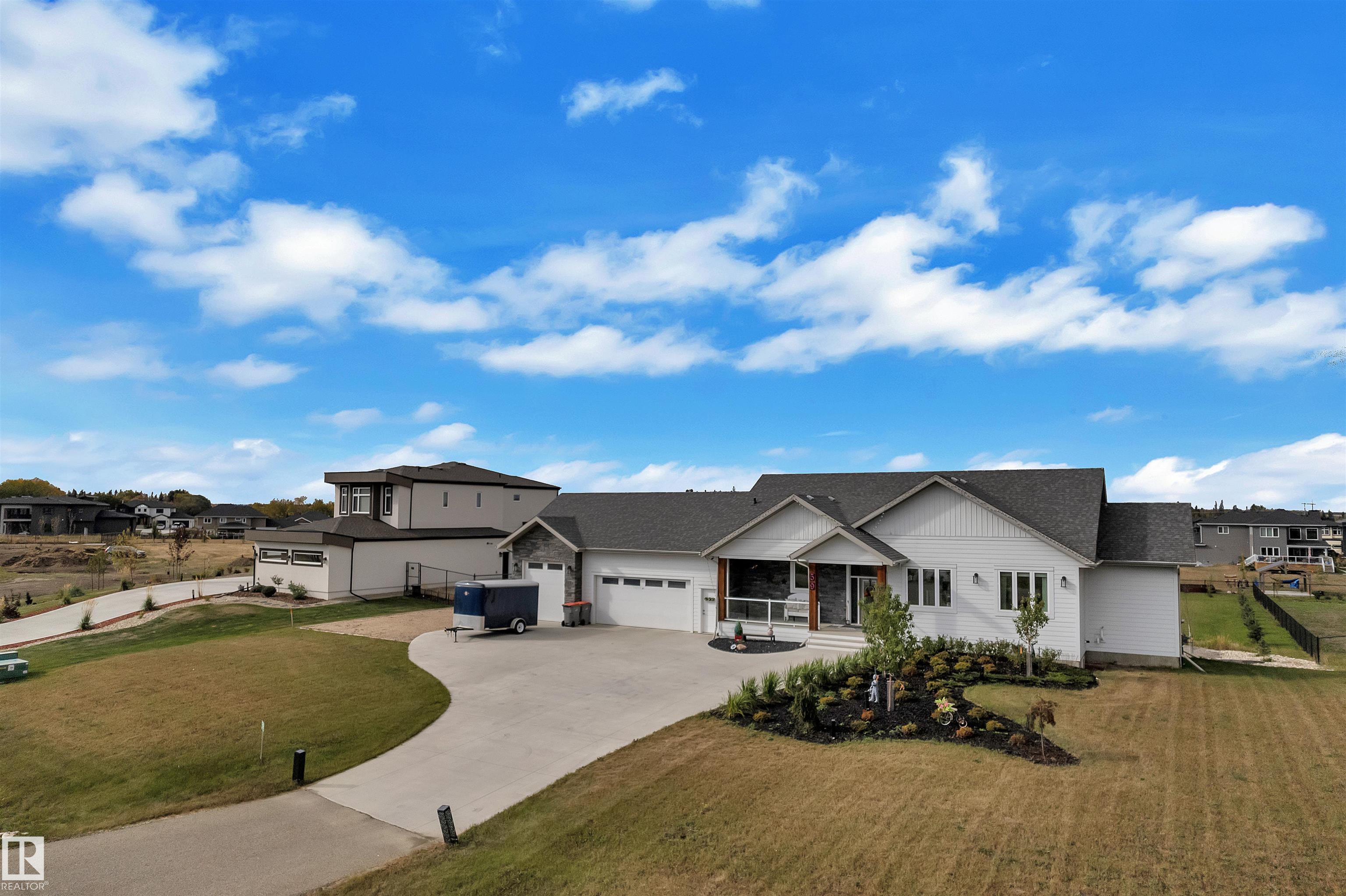 Custom built walk out bungalow on a prime cul-de-sac lot in Spring Meadow Estates. 10 feet ceiling on main floor. Great open floor plan with a modern finishes, center island, Granite counter, large double fridge/freezer opening , walk through pantry, Dining area with garden door to covered deck, living room with gas fireplace , Hardwood floors and high flat finished ceilings. Master bedroom with 5 piece ensuite and a walk in closet. 2 additional bedrooms, mudroom / Laundry room off garage entrance. Fully developed walkout basement with a huge family room, 2 bedrooms , 4 pc bath and a large storage/Furnace room. Home is finished with top quality throughout including hardwood, full Led lighting package, vinyl plank in basement, Concrete , Hardie plank and stone exterior. Concrete patio at the back & Heated triple garage. 8 minutes to Edmonton & Spruce Grove.