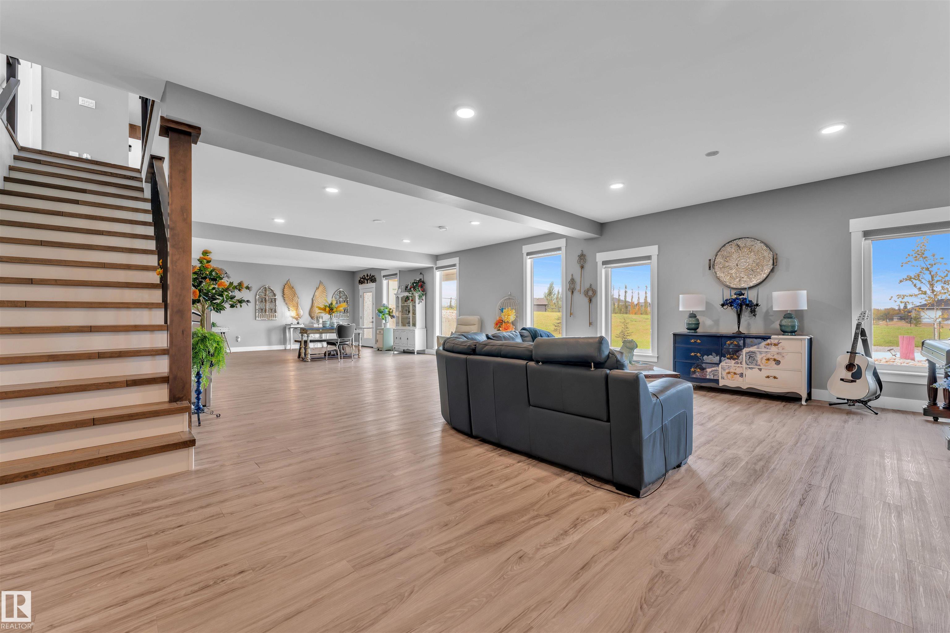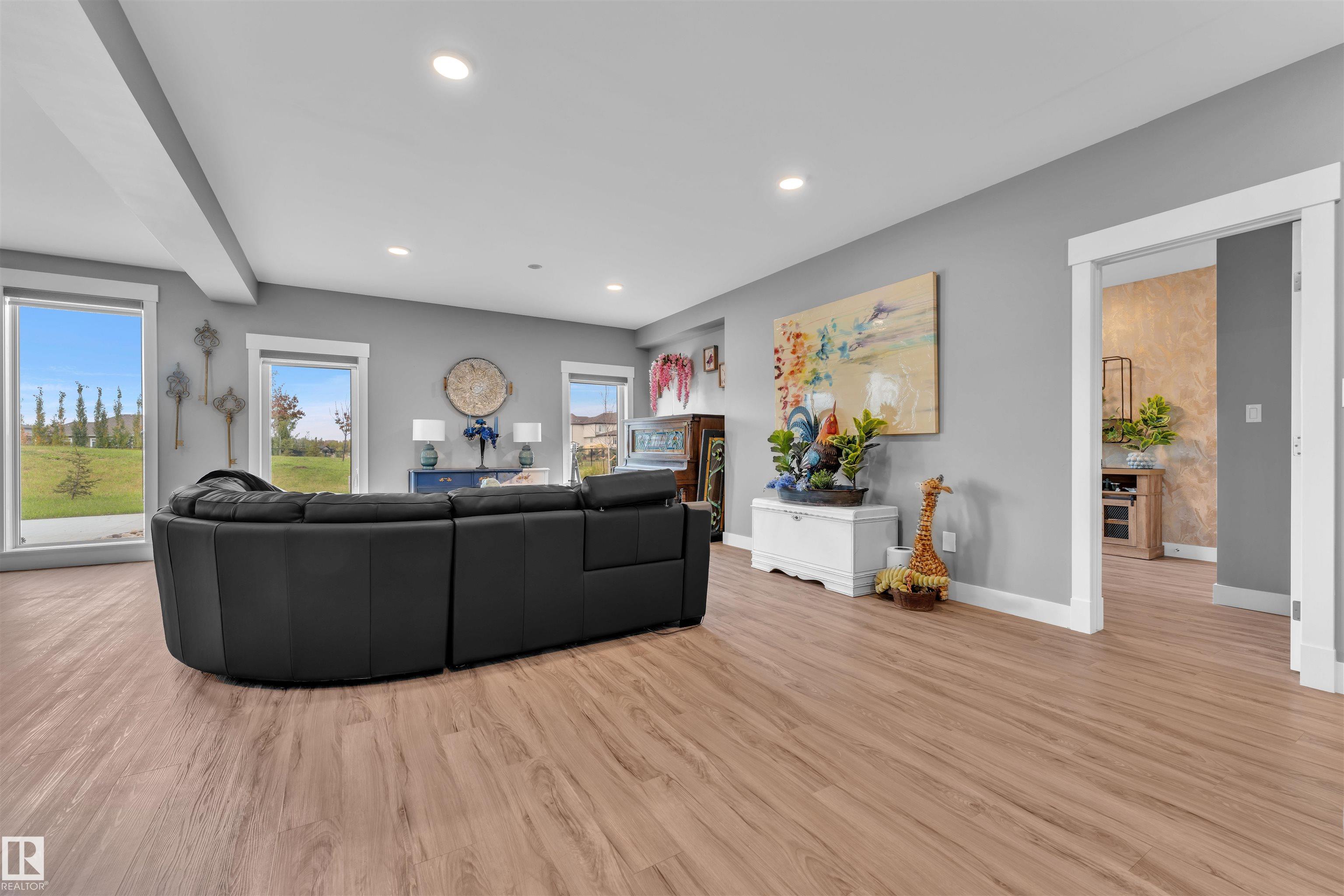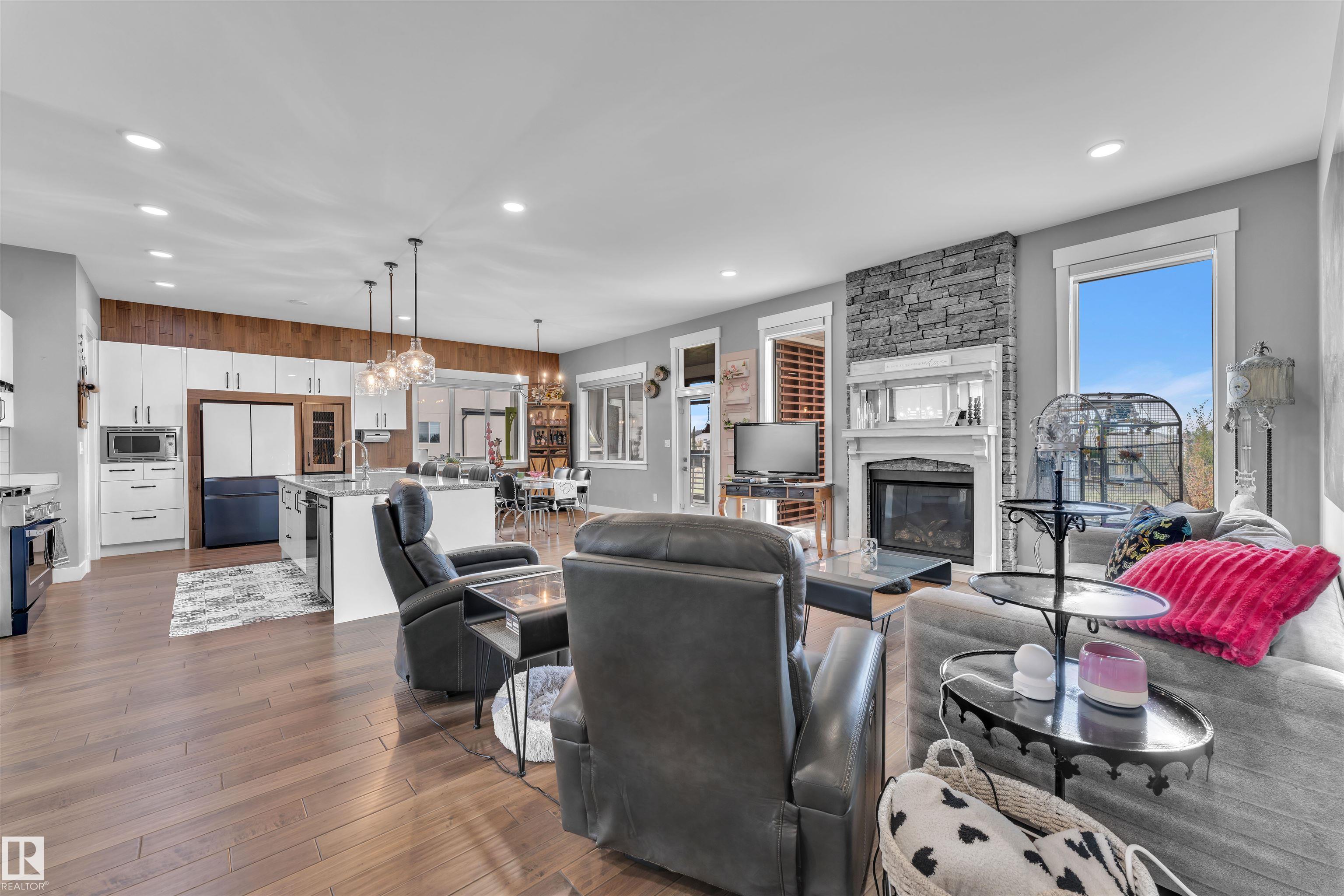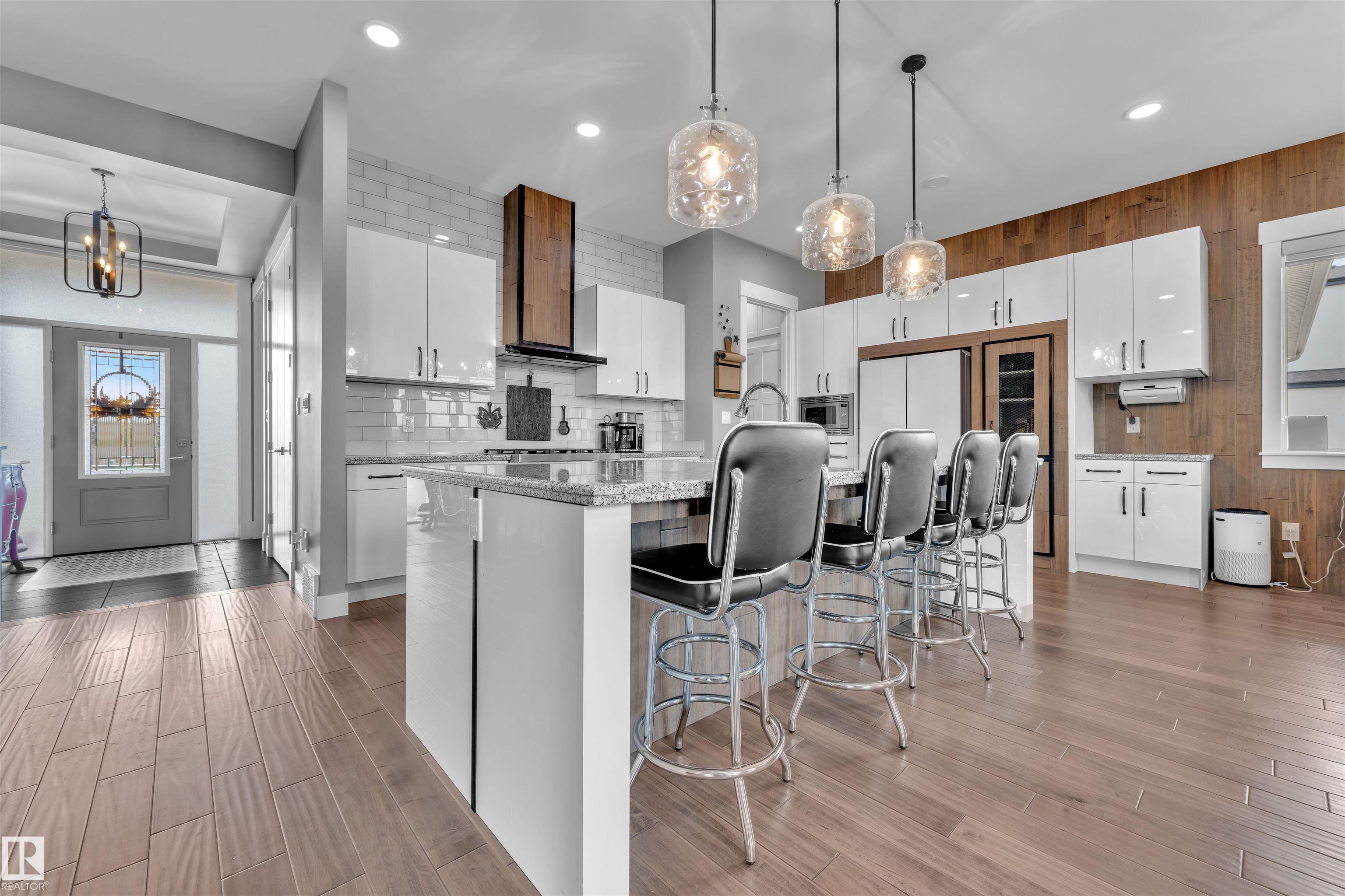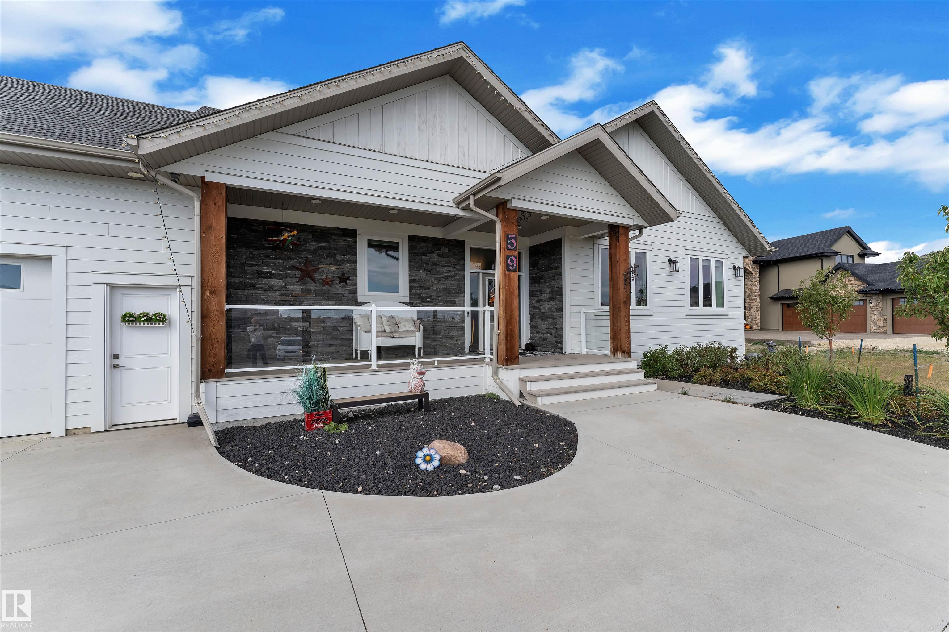 Custom built walk out bungalow on a prime cul-de-sac lot in Spring Meadow Estates. 10 feet ceiling on main floor. Great open floor plan with a modern finishes, center island, Granite counter, large double fridge/freezer opening , walk through pantry, Dining area with garden door to covered deck, living room with gas fireplace , Hardwood floors and high flat finished ceilings. Master bedroom with 5 piece ensuite and a walk in closet. 2 additional bedrooms, mudroom / Laundry room off garage entrance. Fully developed walkout basement with a huge family room, 2 bedrooms , 4 pc bath and a large storage/Furnace room. Home is finished with top quality throughout including hardwood, full Led lighting package, vinyl plank in basement, Concrete , Hardie plank and stone exterior. Concrete patio at the back & Heated triple garage. 8 minutes to Edmonton & Spruce Grove.