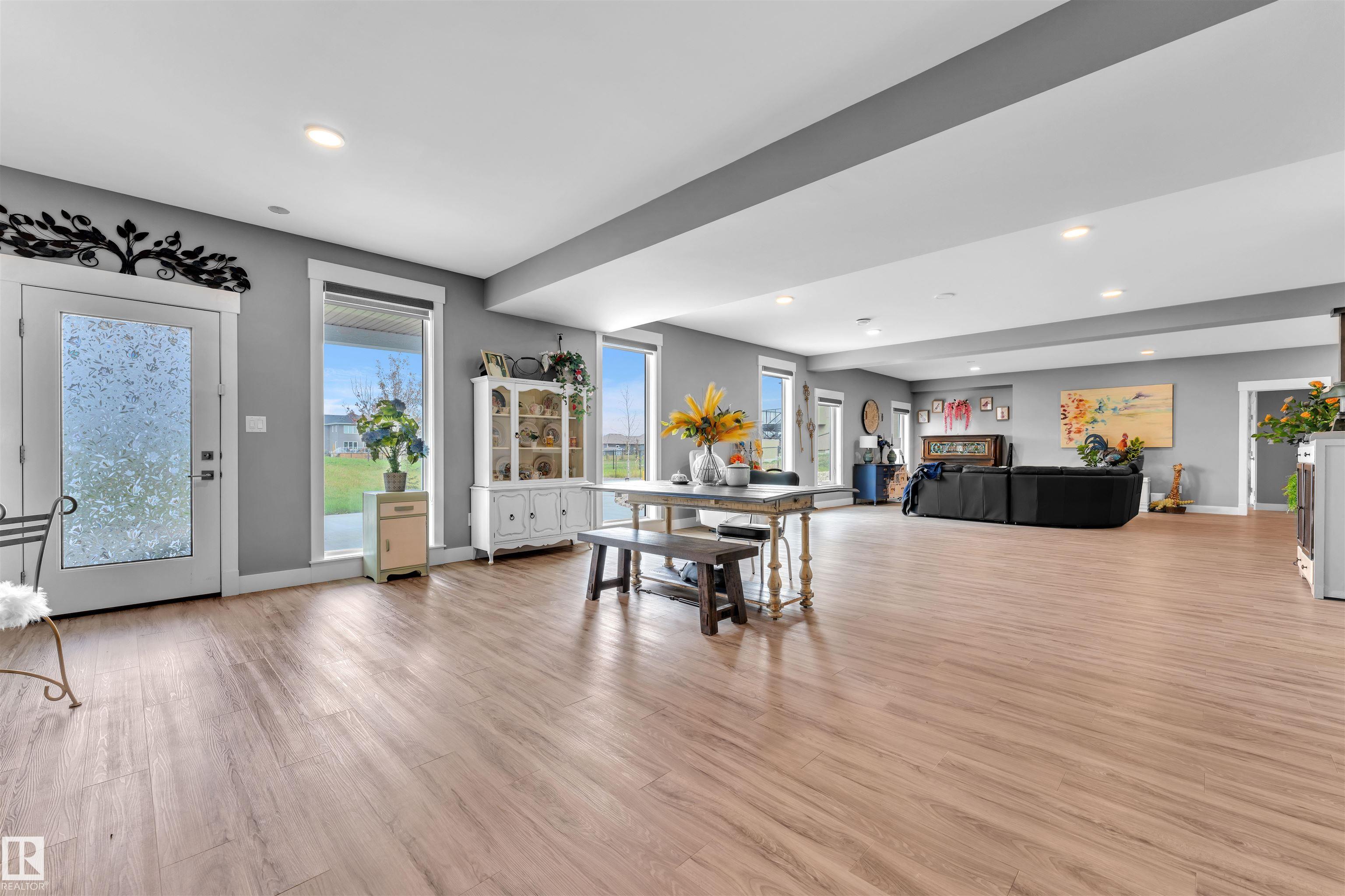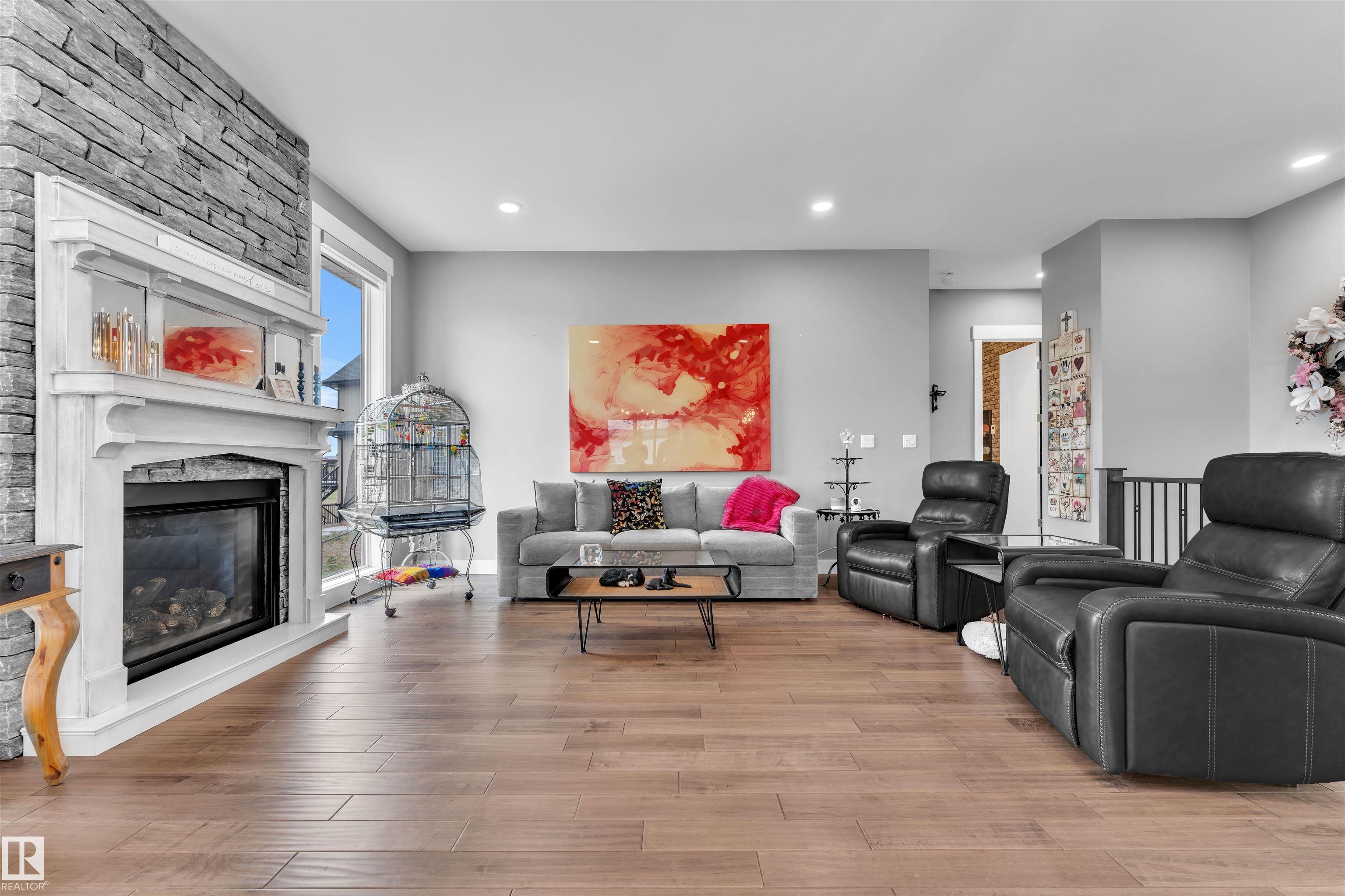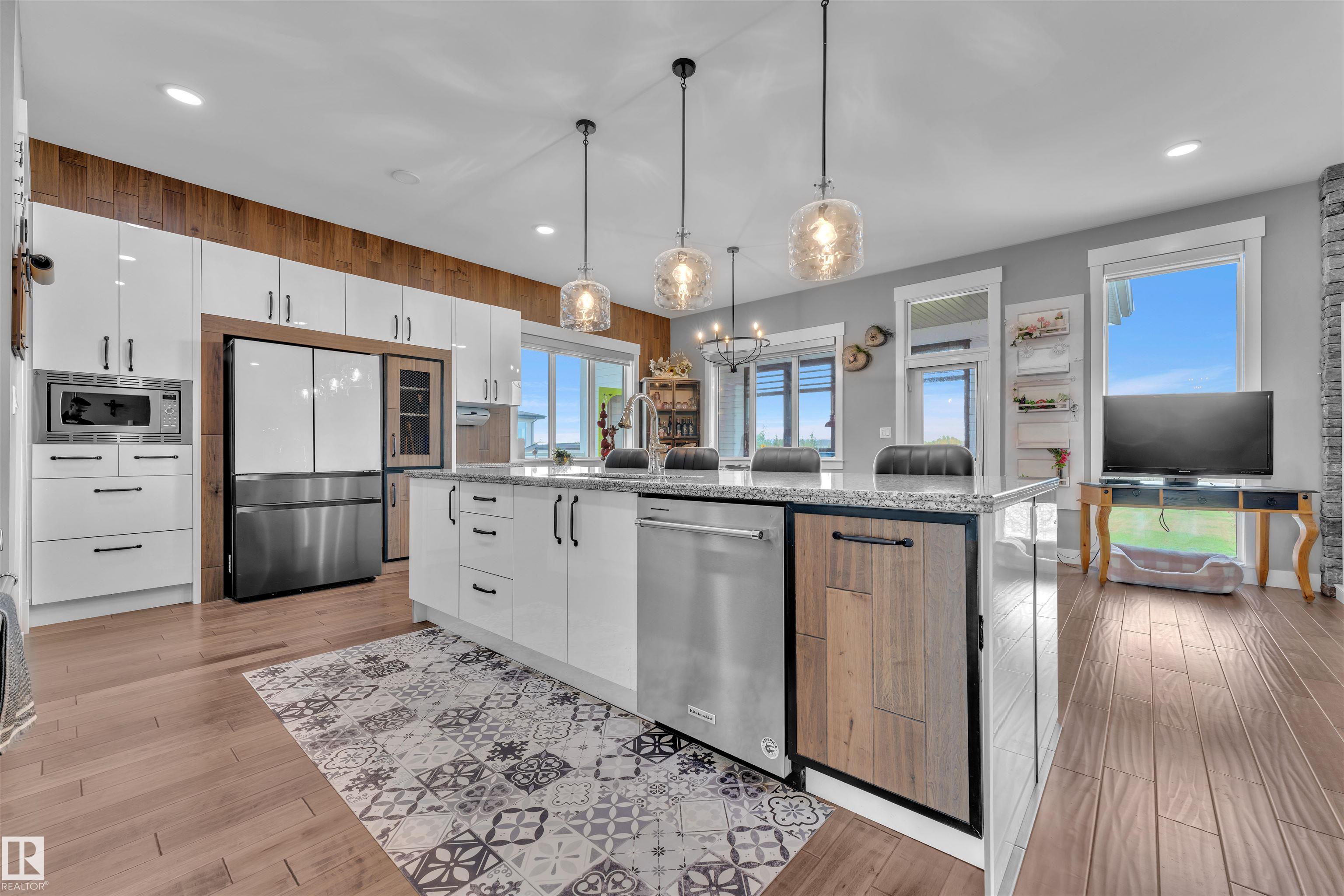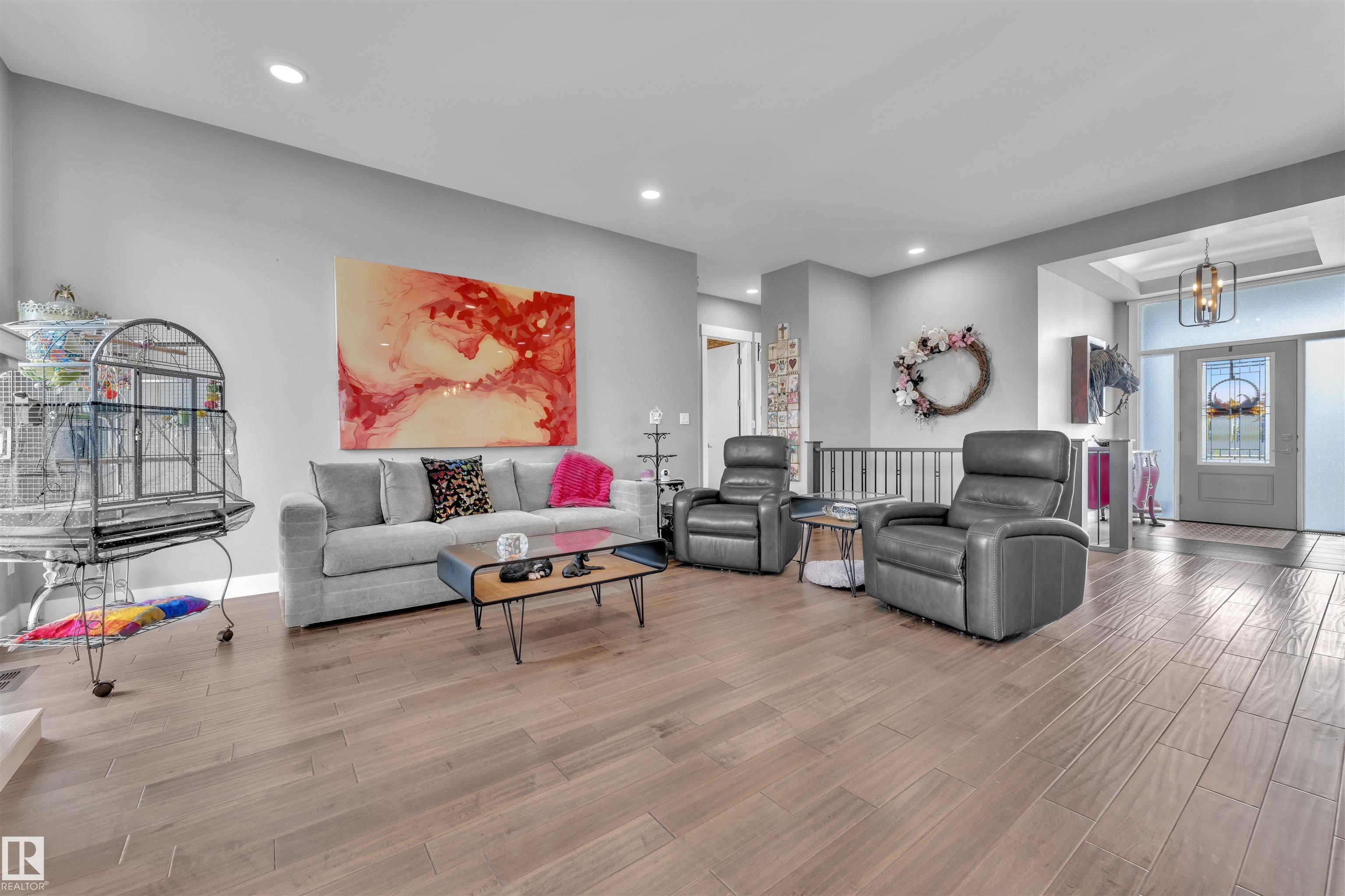 Custom built walk out bungalow on a prime cul-de-sac lot in Spring Meadow Estates. 10 feet ceiling on main floor. Great open floor plan with a modern finishes, center island, Granite counter, large double fridge/freezer opening , walk through pantry, Dining area with garden door to covered deck, living room with gas fireplace , Hardwood floors and high flat finished ceilings. Master bedroom with 5 piece ensuite and a walk in closet. 2 additional bedrooms, mudroom / Laundry room off garage entrance. Fully developed walkout basement with a huge family room, 2 bedrooms , 4 pc bath and a large storage/Furnace room. Home is finished with top quality throughout including hardwood, full Led lighting package, vinyl plank in basement, Concrete , Hardie plank and stone exterior. Concrete patio at the back & Heated triple garage. 8 minutes to Edmonton & Spruce Grove.
