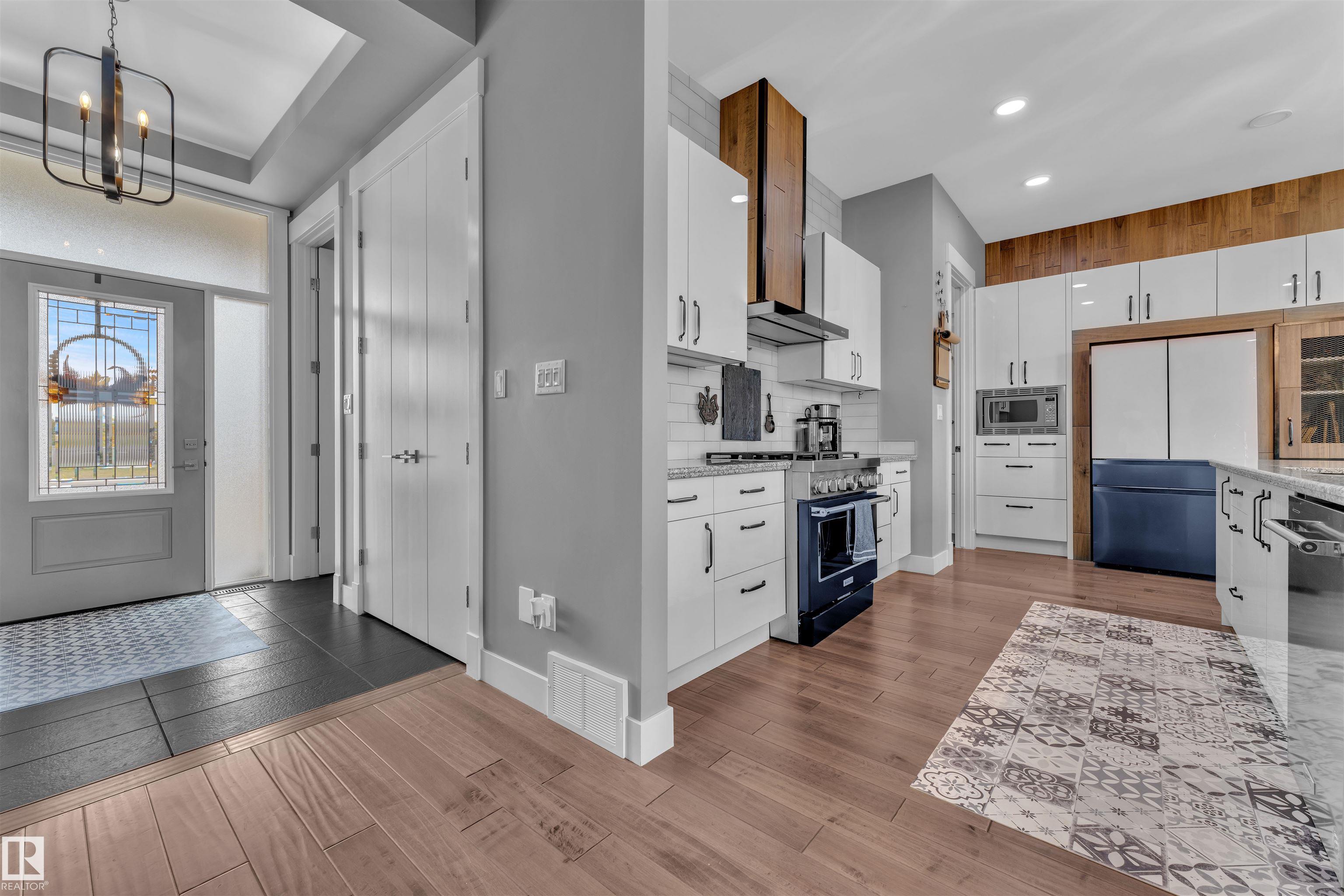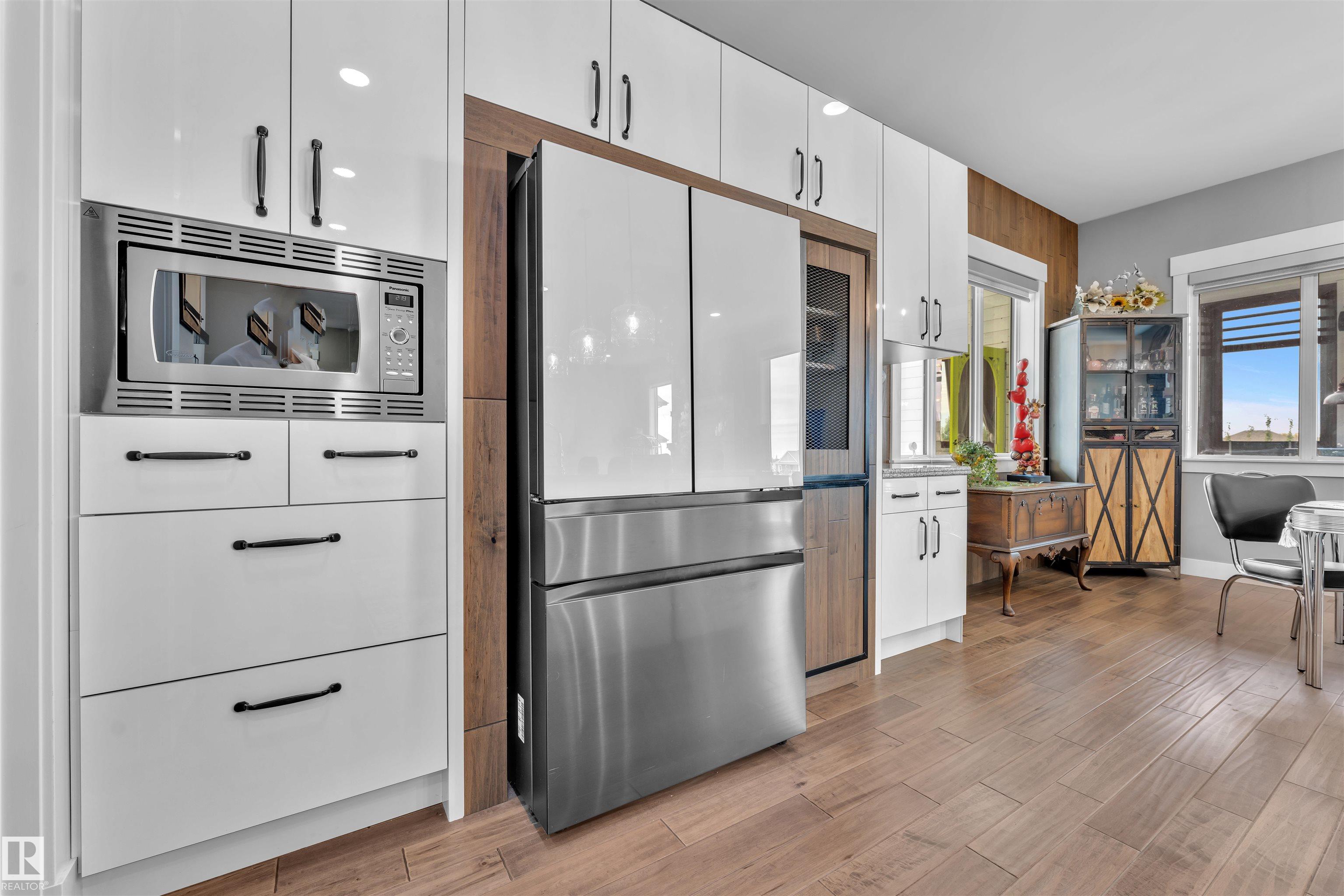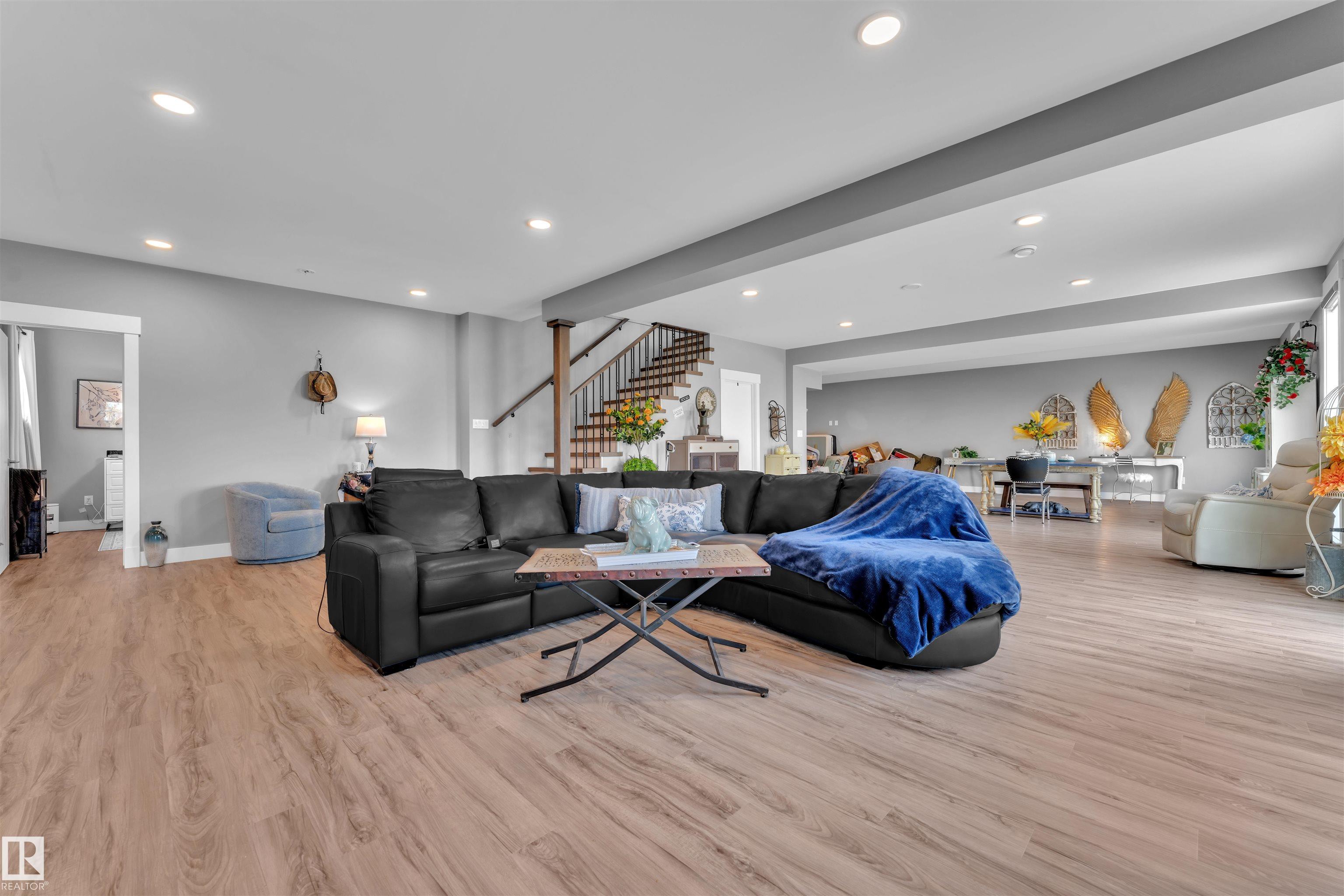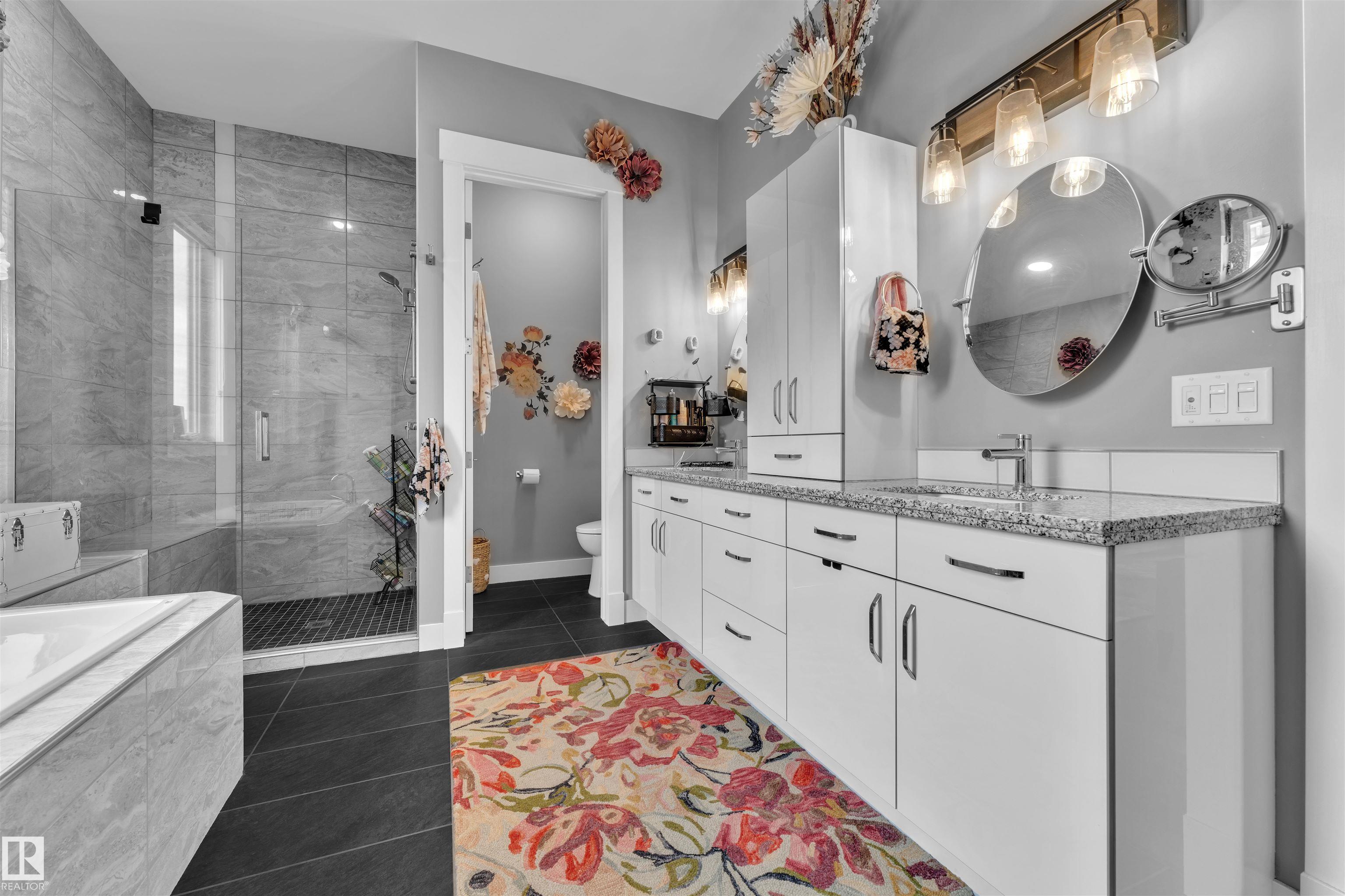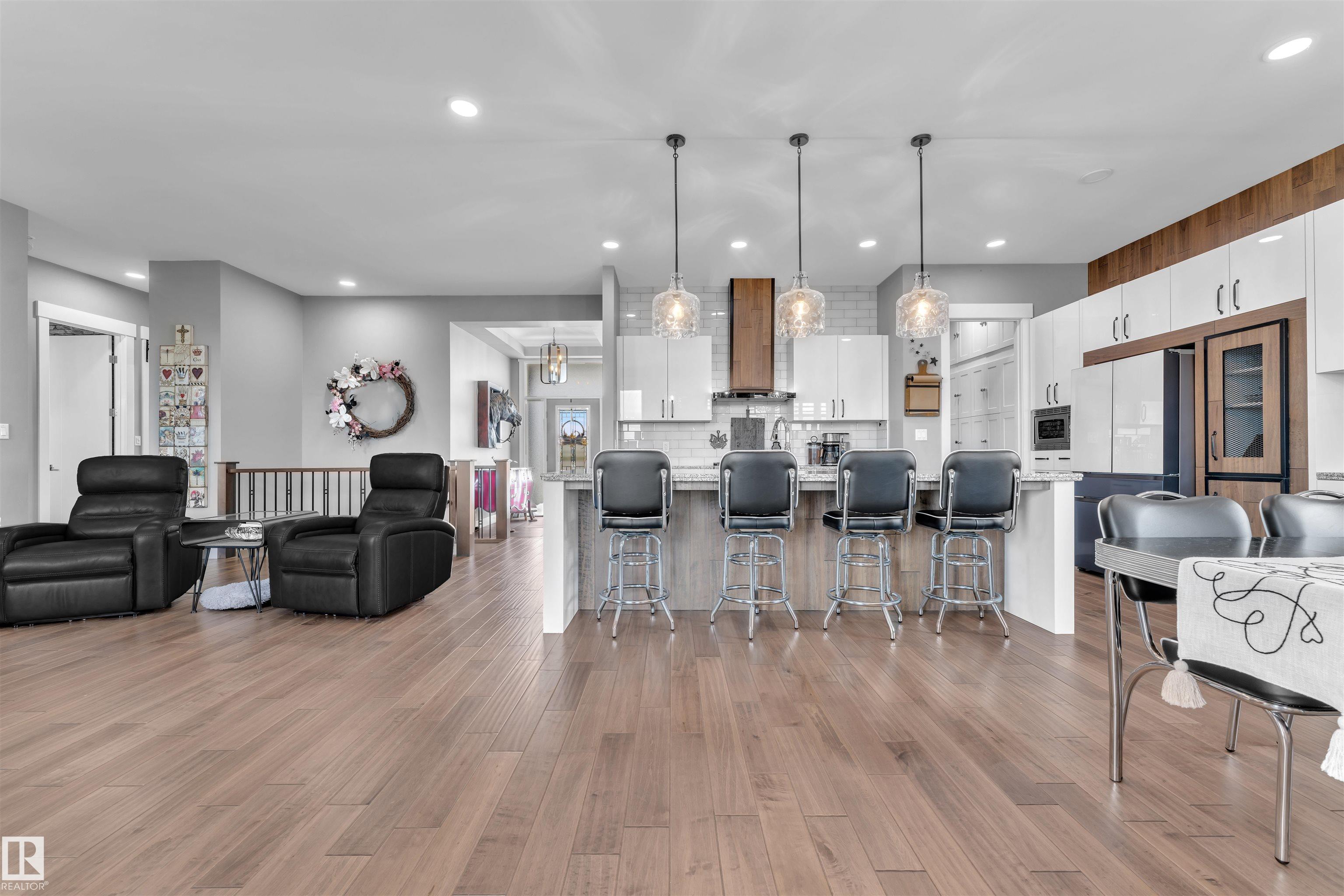 Custom built walk out bungalow on a prime cul-de-sac lot in Spring Meadow Estates. 10 feet ceiling on main floor. Great open floor plan with a modern finishes, center island, Granite counter, large double fridge/freezer opening , walk through pantry, Dining area with garden door to covered deck, living room with gas fireplace , Hardwood floors and high flat finished ceilings. Master bedroom with 5 piece ensuite and a walk in closet. 2 additional bedrooms, mudroom / Laundry room off garage entrance. Fully developed walkout basement with a huge family room, 2 bedrooms , 4 pc bath and a large storage/Furnace room. Home is finished with top quality throughout including hardwood, full Led lighting package, vinyl plank in basement, Concrete , Hardie plank and stone exterior. Concrete patio at the back & Heated triple garage. 8 minutes to Edmonton & Spruce Grove.