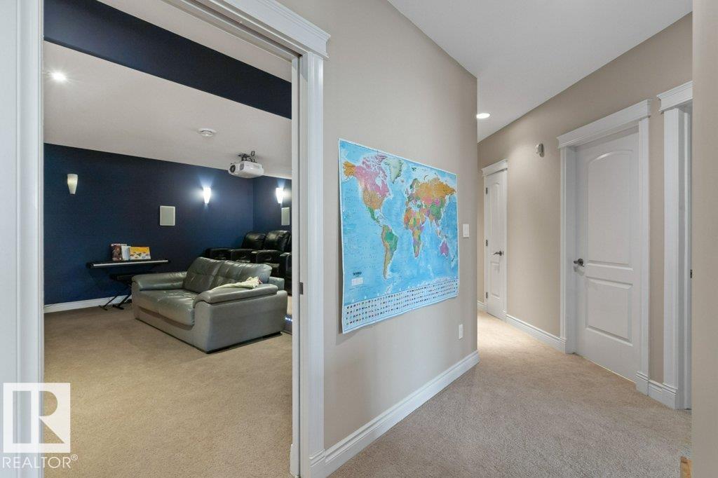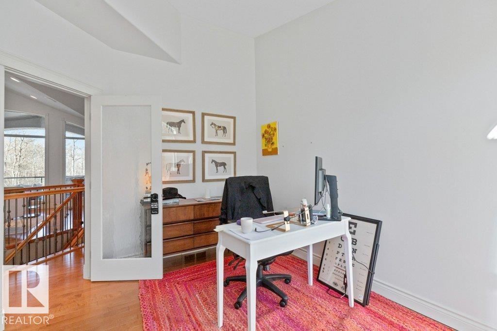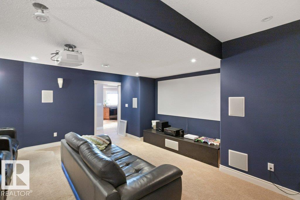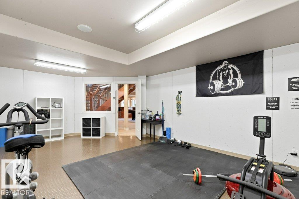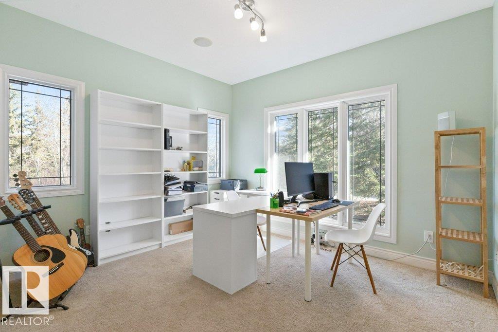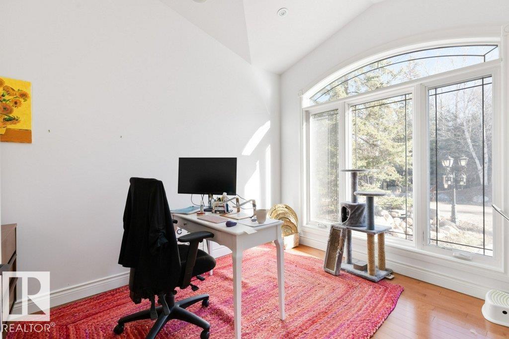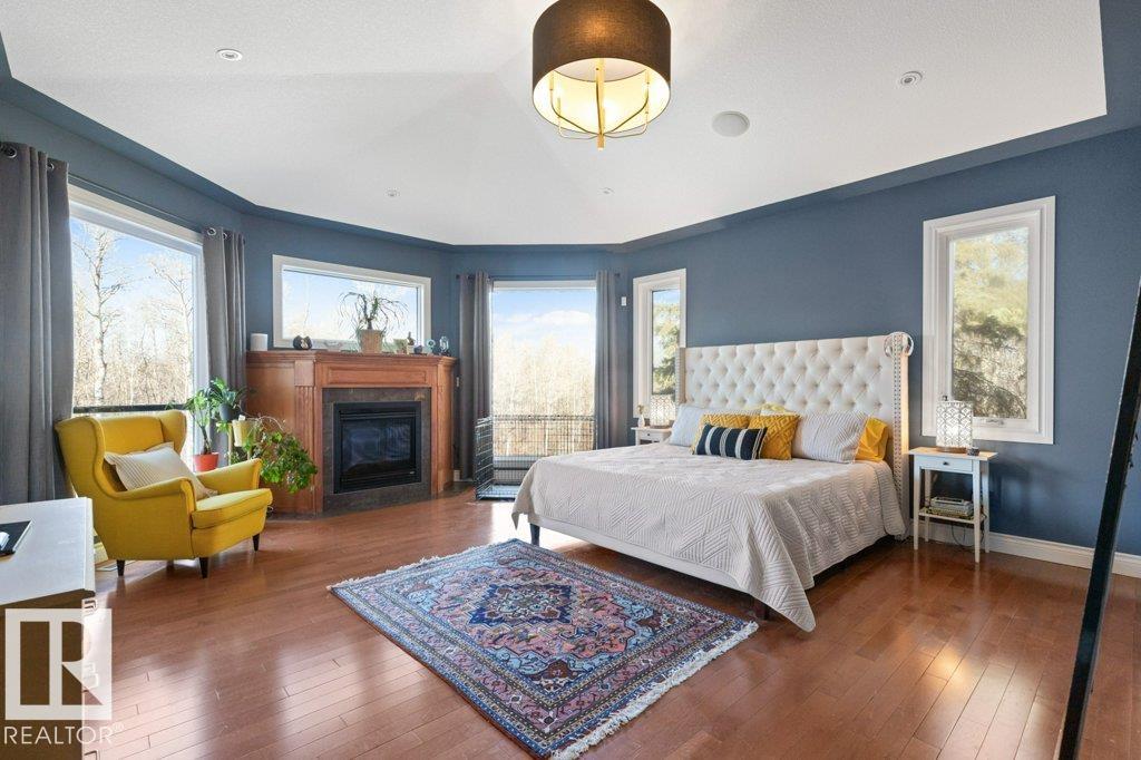 Discover an exquisite executive custom bungalow nestled on 2.45 treed acres, just minutes from Edmonton. This stunning home features soaring ceilings and expansive windows that highlight the beautiful grounds, creating a bright and inviting atmosphere. The main floor, expertly renovated by Weaver Design, boasts a chef-style kitchen w/ updated cabinetry, granite countertops, & stainless steel appliances. Enjoy seamless entertaining in the open-concept living room, formal dining area, & family room. The primary suite is a serene retreat with a fireplace, deck access, & a reno'd spa-inspired ensuite w/ a walk-in closet. Also includes a second bedroom, office, laundry, & bathroom leading to a hot tub. The fully finished basement offers 3 more bedrooms, a full kitchen, games & theater rooms, exercise area, & bathrooms. Both levels access 4 car garage w/ infloor heat. Outside, relax around the firepit or on the expansive deck & patio, complementing the luxurious indoor spaces & exceptional location.