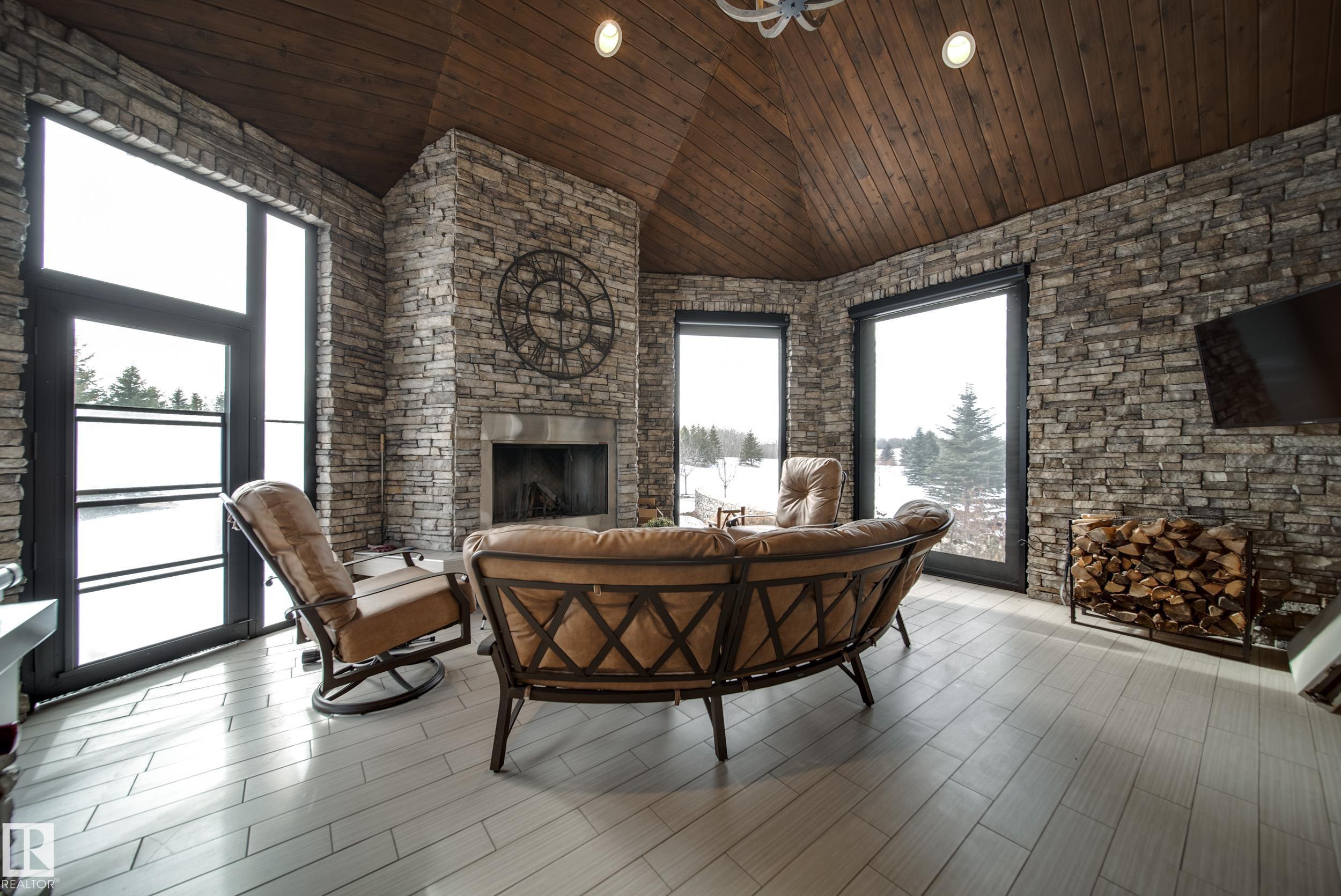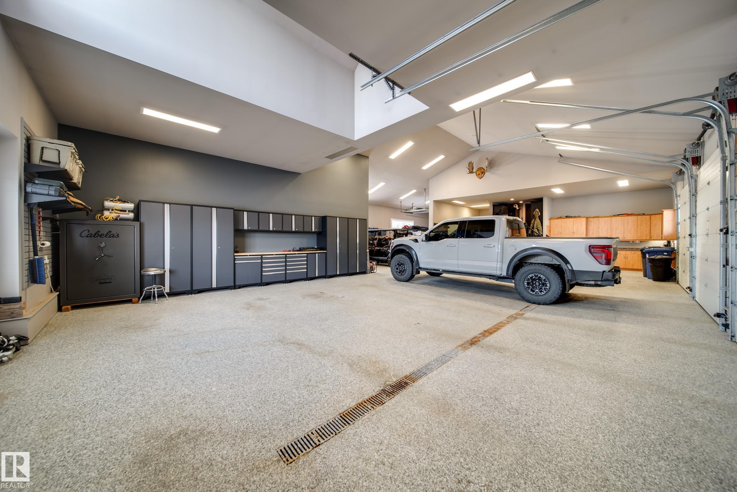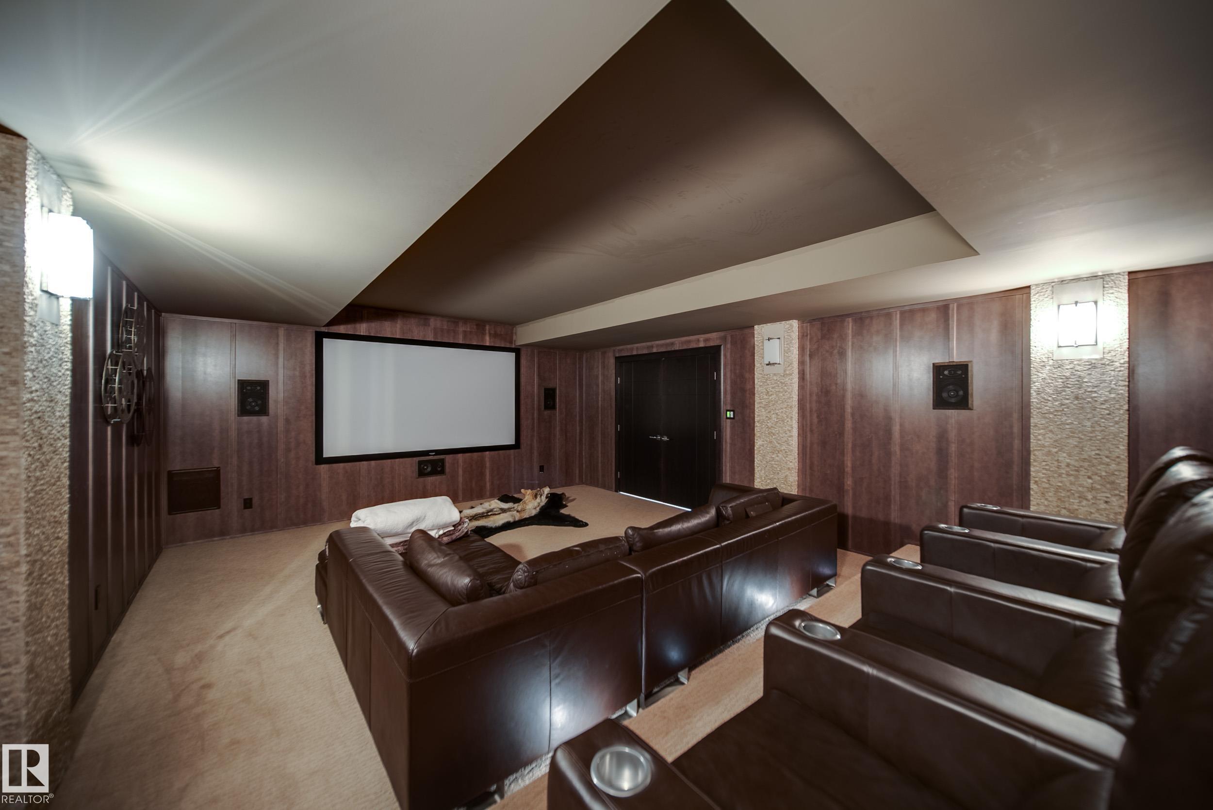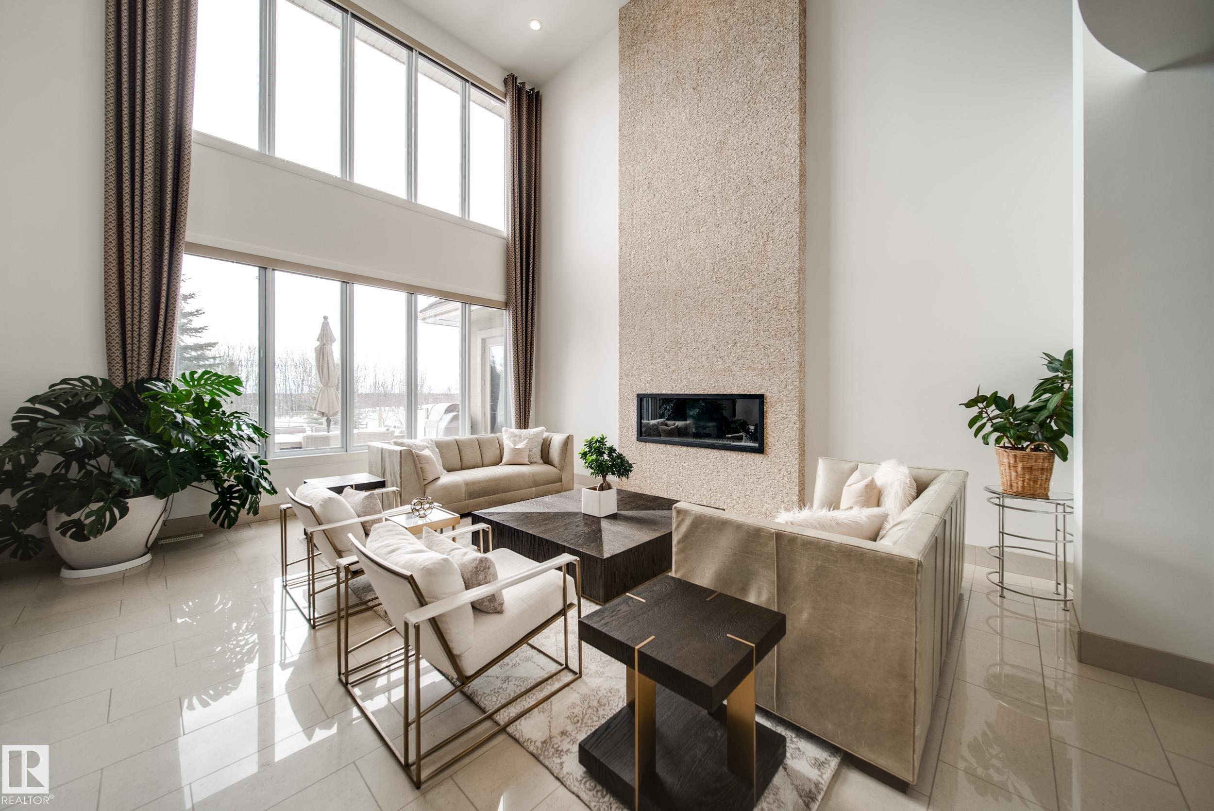 Luxury living in prestigious Blackhawk Estates, just 15 minutes southwest of Edmonton. Situated on a beautifully landscaped 1-acre lot, this exceptional two-storey home backs onto the North Saskatchewan River and fronts the 4th fairway of the renowned Blackhawk Golf Club--hop in your golf cart and head to the course. Offering over 9,000 sq ft of living space with 6,041 sq ft above grade, the home features a main-floor primary retreat with spa-inspired ensuite and dual walk-in closets, plus a private office. Expansive living areas include a chef's kitchen with dining area and cozy living room. A formal great room, wine cellar, and five fireplaces, including a wood-burning fireplace in the three-season room, add warmth and elegance. Upstairs offers 3 bedrooms plus a flex room, while the basement includes a theatre, gym, games area with mini hockey rink, rec room, and bedroom. A true car enthusiast's dream, the 2,400 sq ft garage features vaulted ceilings and a wash bay. This is the best of acreage living!