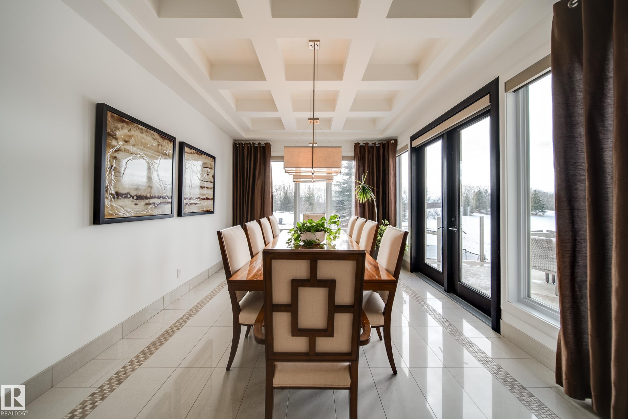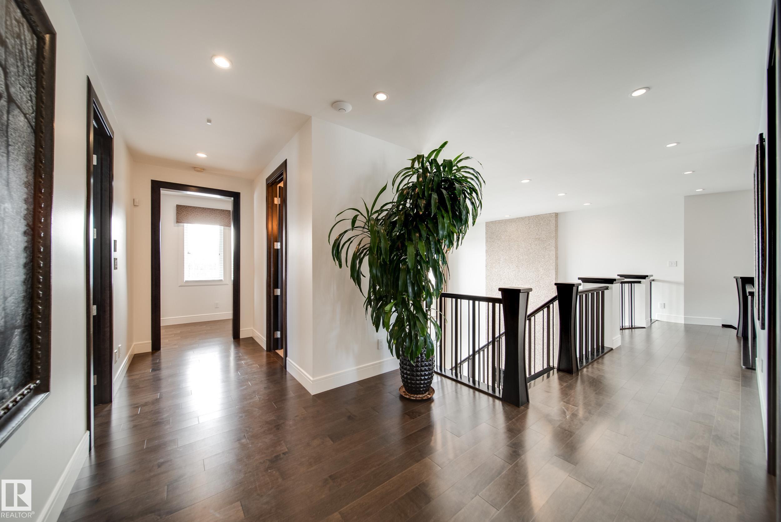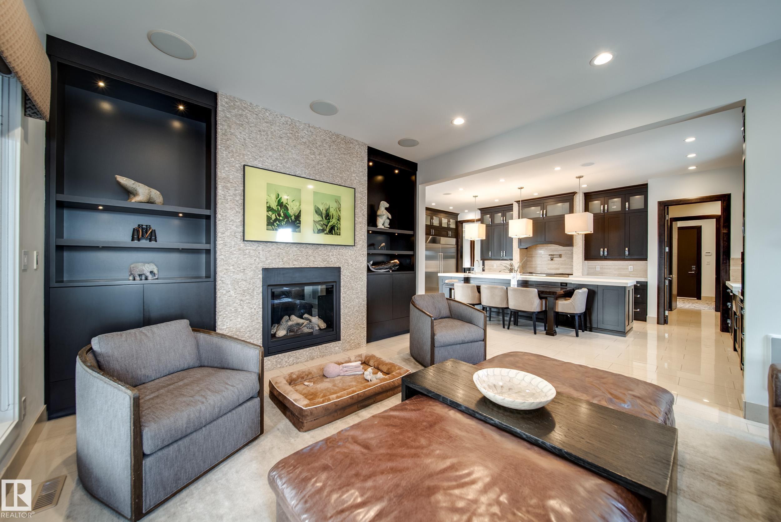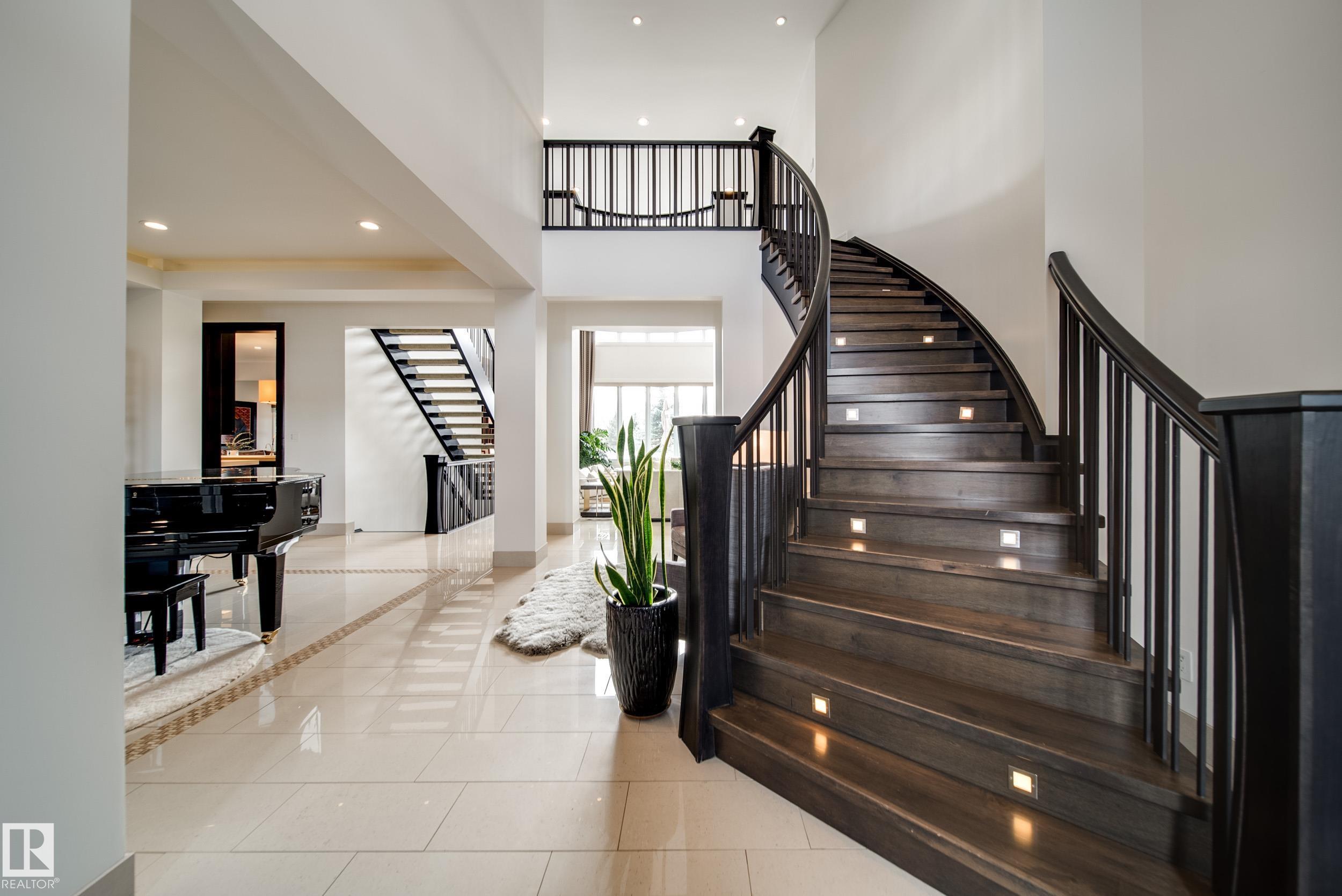 Luxury living in prestigious Blackhawk Estates, just 15 minutes southwest of Edmonton. Situated on a beautifully landscaped 1-acre lot, this exceptional two-storey home backs onto the North Saskatchewan River and fronts the 4th fairway of the renowned Blackhawk Golf Club--hop in your golf cart and head to the course. Offering over 9,000 sq ft of living space with 6,041 sq ft above grade, the home features a main-floor primary retreat with spa-inspired ensuite and dual walk-in closets, plus a private office. Expansive living areas include a chef's kitchen with dining area and cozy living room. A formal great room, wine cellar, and five fireplaces, including a wood-burning fireplace in the three-season room, add warmth and elegance. Upstairs offers 3 bedrooms plus a flex room, while the basement includes a theatre, gym, games area with mini hockey rink, rec room, and bedroom. A true car enthusiast's dream, the 2,400 sq ft garage features vaulted ceilings and a wash bay. This is the best of acreage living!