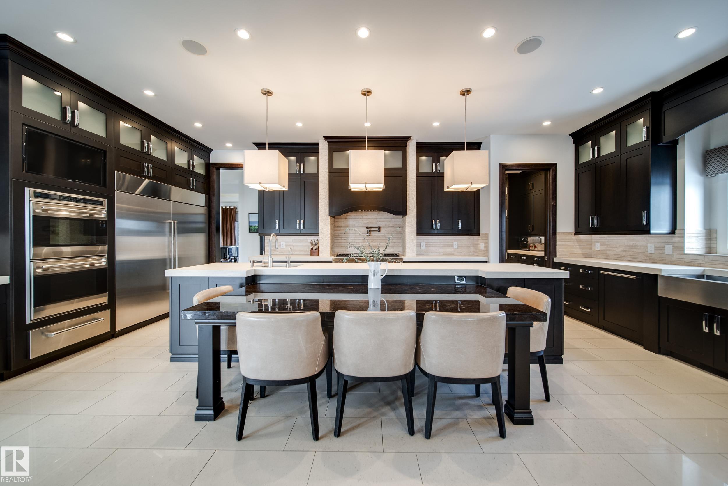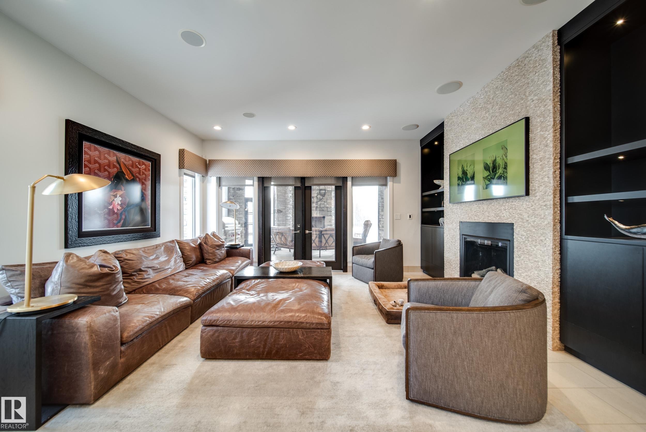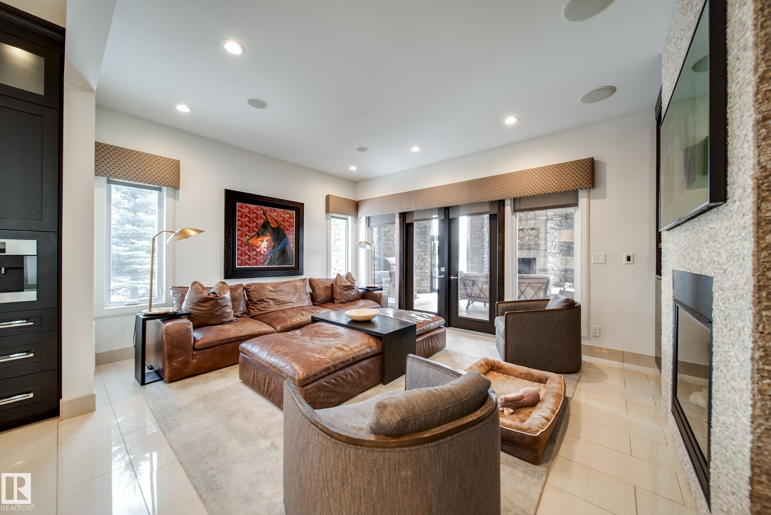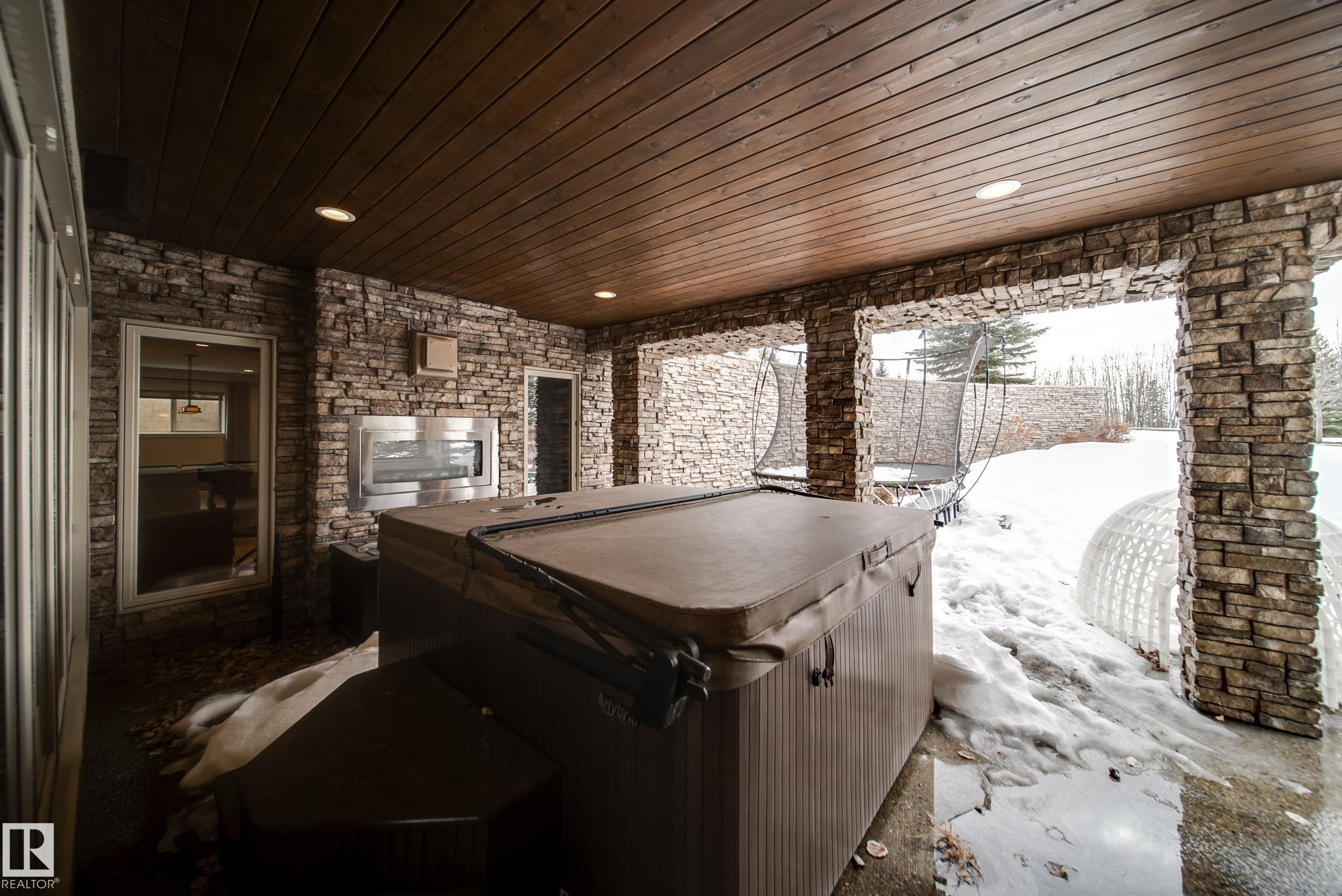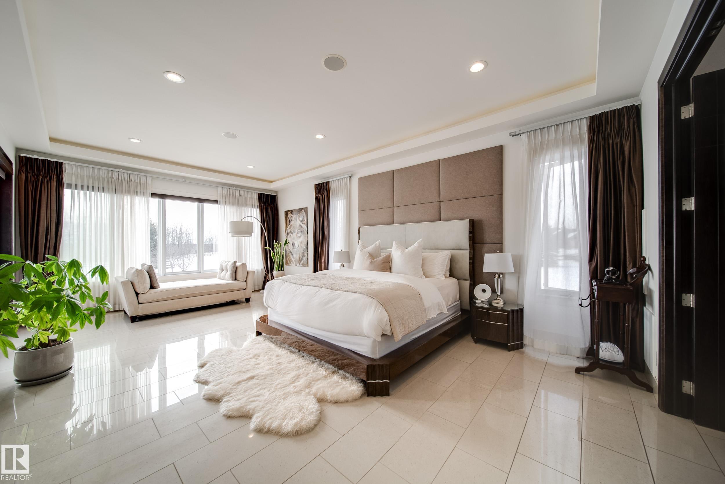 Luxury living in prestigious Blackhawk Estates, just 15 minutes southwest of Edmonton. Situated on a beautifully landscaped 1-acre lot, this exceptional two-storey home backs onto the North Saskatchewan River and fronts the 4th fairway of the renowned Blackhawk Golf Club--hop in your golf cart and head to the course. Offering over 9,000 sq ft of living space with 6,041 sq ft above grade, the home features a main-floor primary retreat with spa-inspired ensuite and dual walk-in closets, plus a private office. Expansive living areas include a chef's kitchen with dining area and cozy living room. A formal great room, wine cellar, and five fireplaces, including a wood-burning fireplace in the three-season room, add warmth and elegance. Upstairs offers 3 bedrooms plus a flex room, while the basement includes a theatre, gym, games area with mini hockey rink, rec room, and bedroom. A true car enthusiast's dream, the 2,400 sq ft garage features vaulted ceilings and a wash bay. This is the best of acreage living!