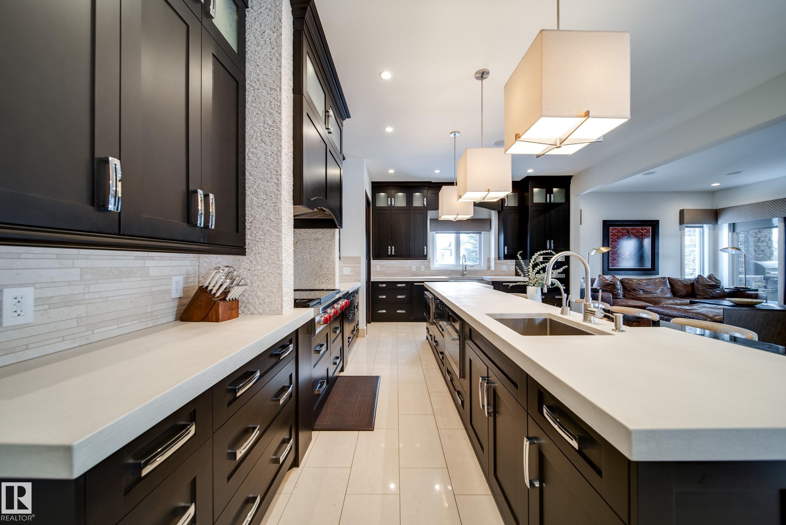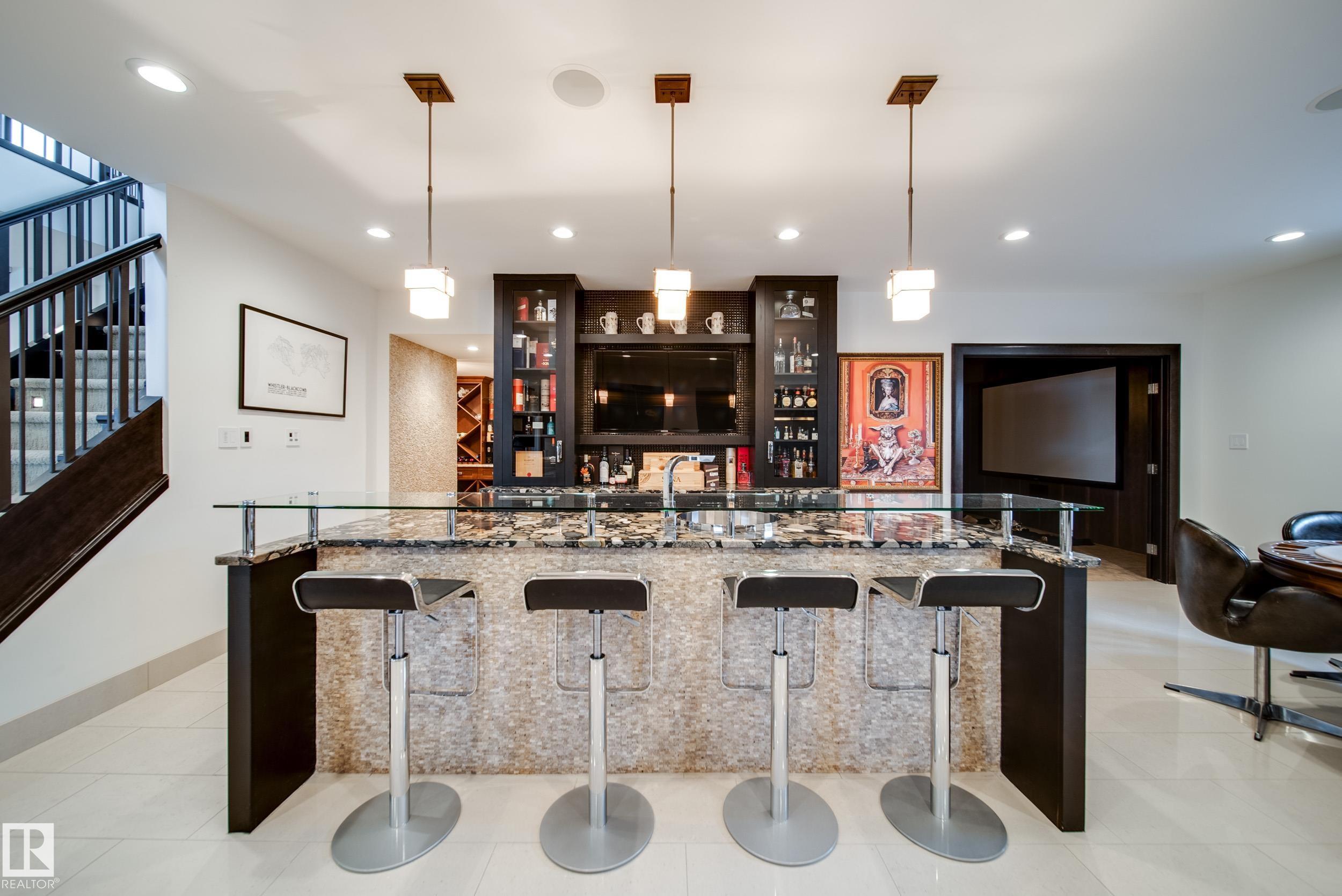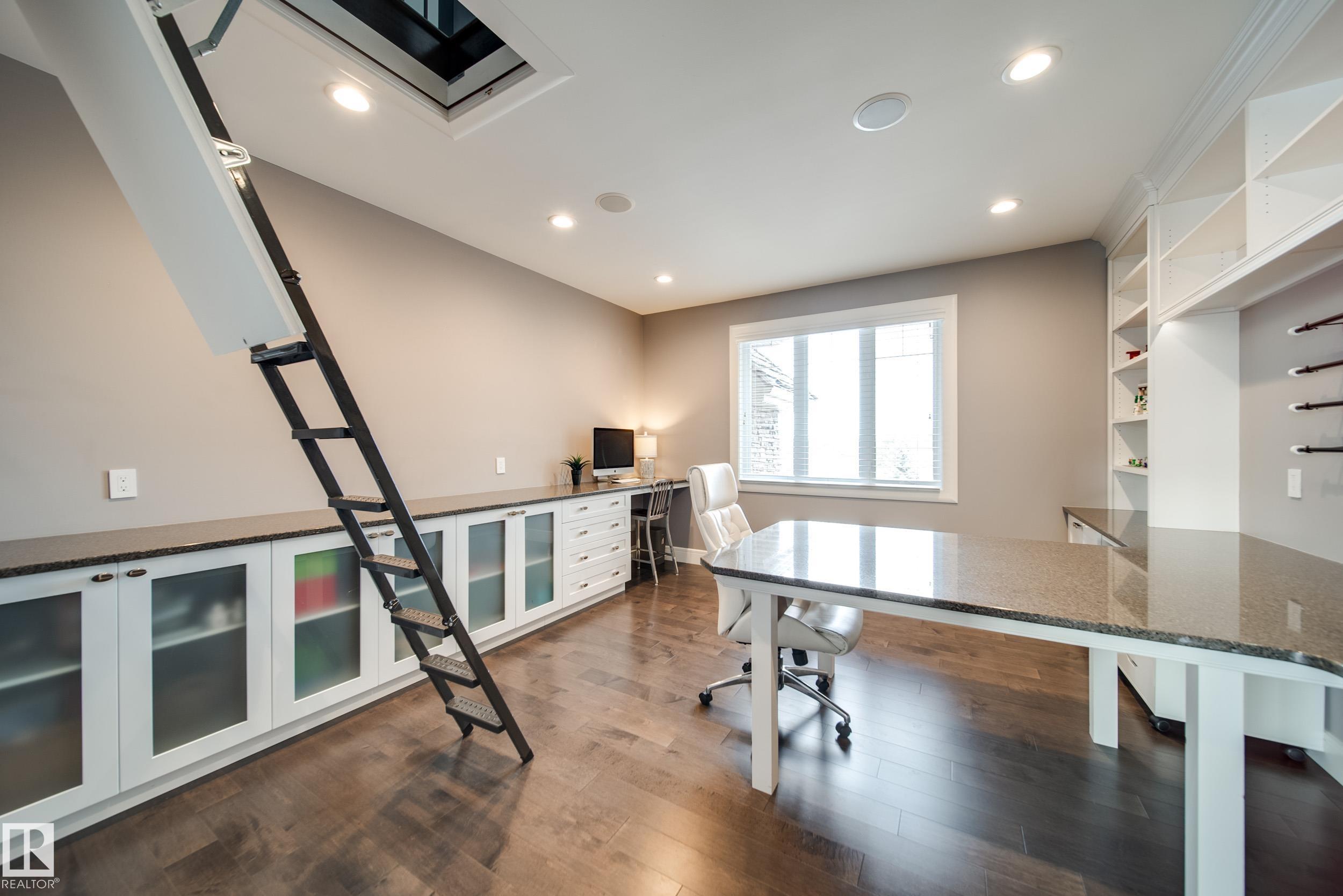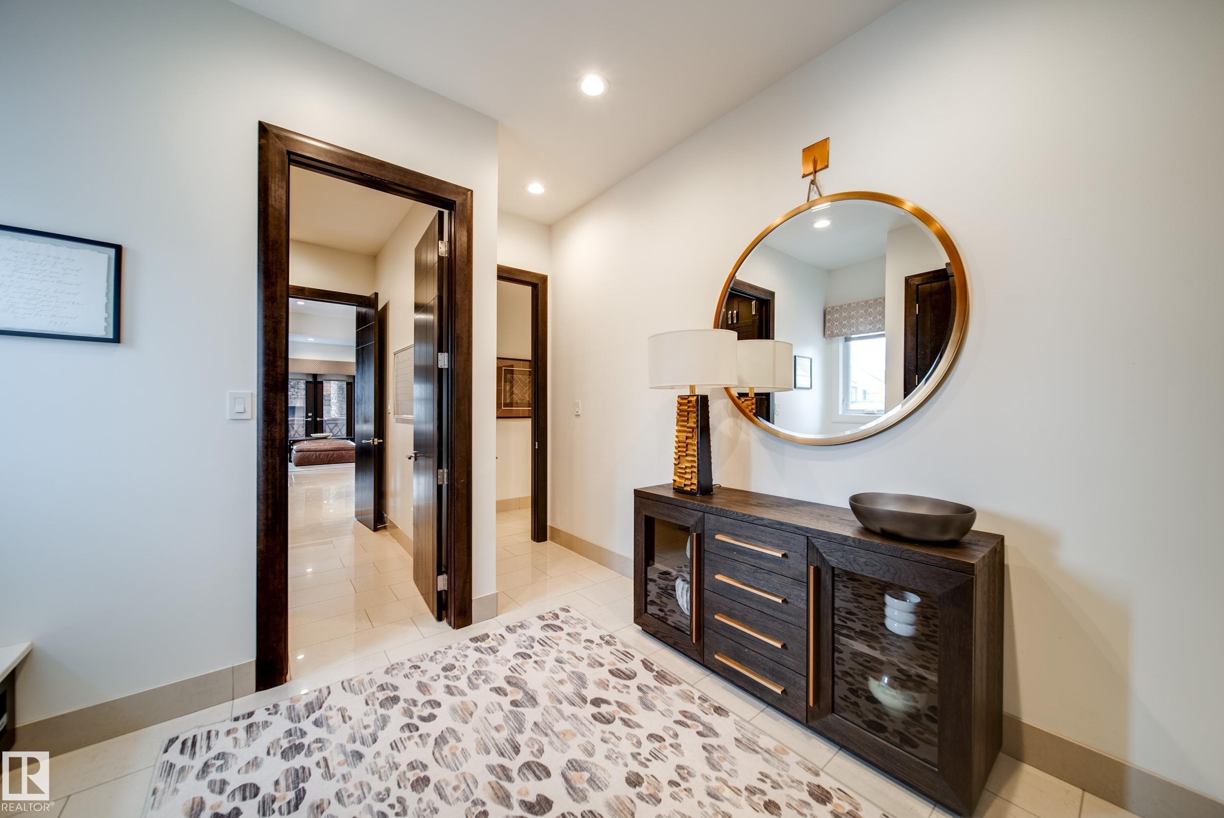 Luxury living in prestigious Blackhawk Estates, just 15 minutes southwest of Edmonton. Situated on a beautifully landscaped 1-acre lot, this exceptional two-storey home backs onto the North Saskatchewan River and fronts the 4th fairway of the renowned Blackhawk Golf Club--hop in your golf cart and head to the course. Offering over 9,000 sq ft of living space with 6,041 sq ft above grade, the home features a main-floor primary retreat with spa-inspired ensuite and dual walk-in closets, plus a private office. Expansive living areas include a chef's kitchen with dining area and cozy living room. A formal great room, wine cellar, and five fireplaces, including a wood-burning fireplace in the three-season room, add warmth and elegance. Upstairs offers 3 bedrooms plus a flex room, while the basement includes a theatre, gym, games area with mini hockey rink, rec room, and bedroom. A true car enthusiast's dream, the 2,400 sq ft garage features vaulted ceilings and a wash bay. This is the best of acreage living!