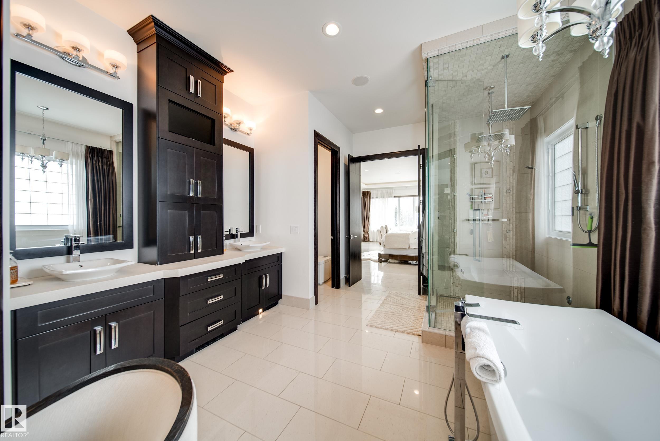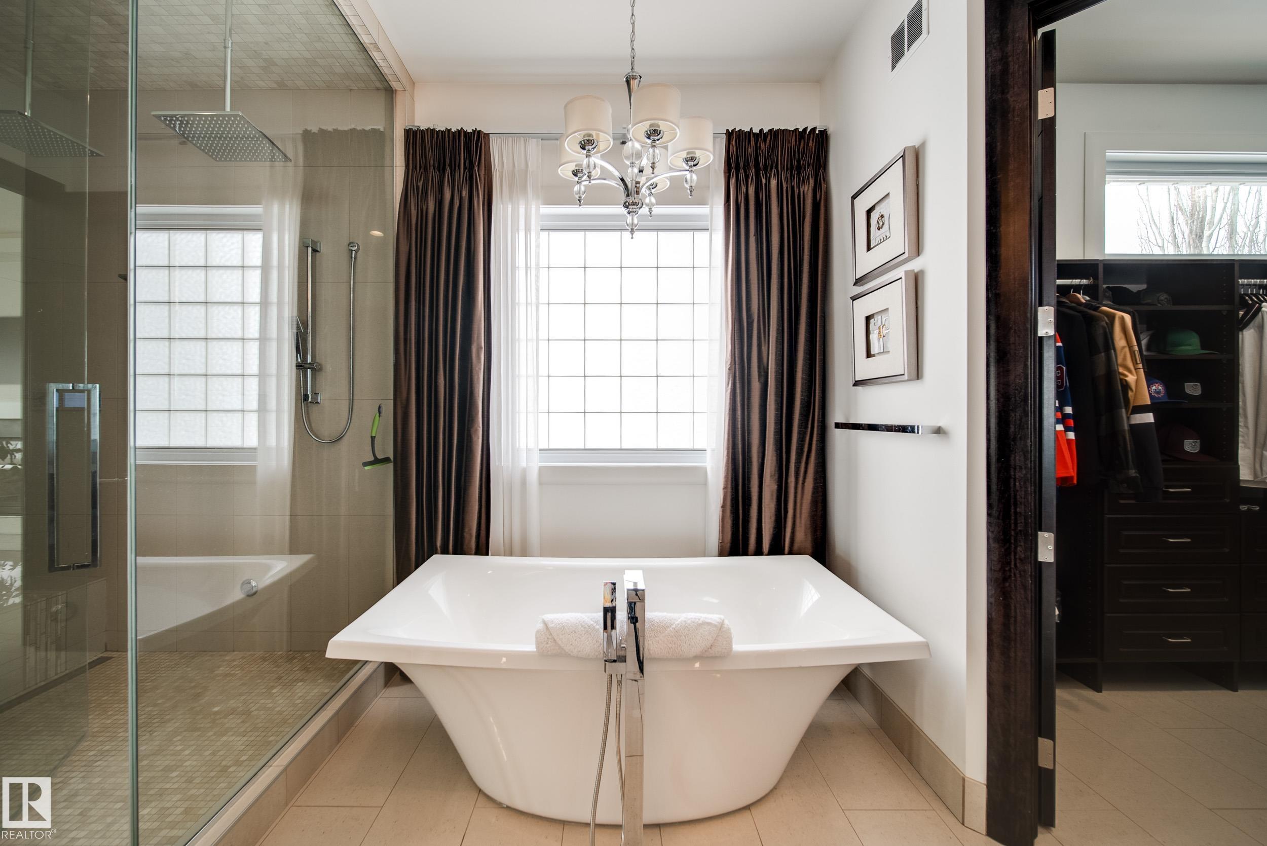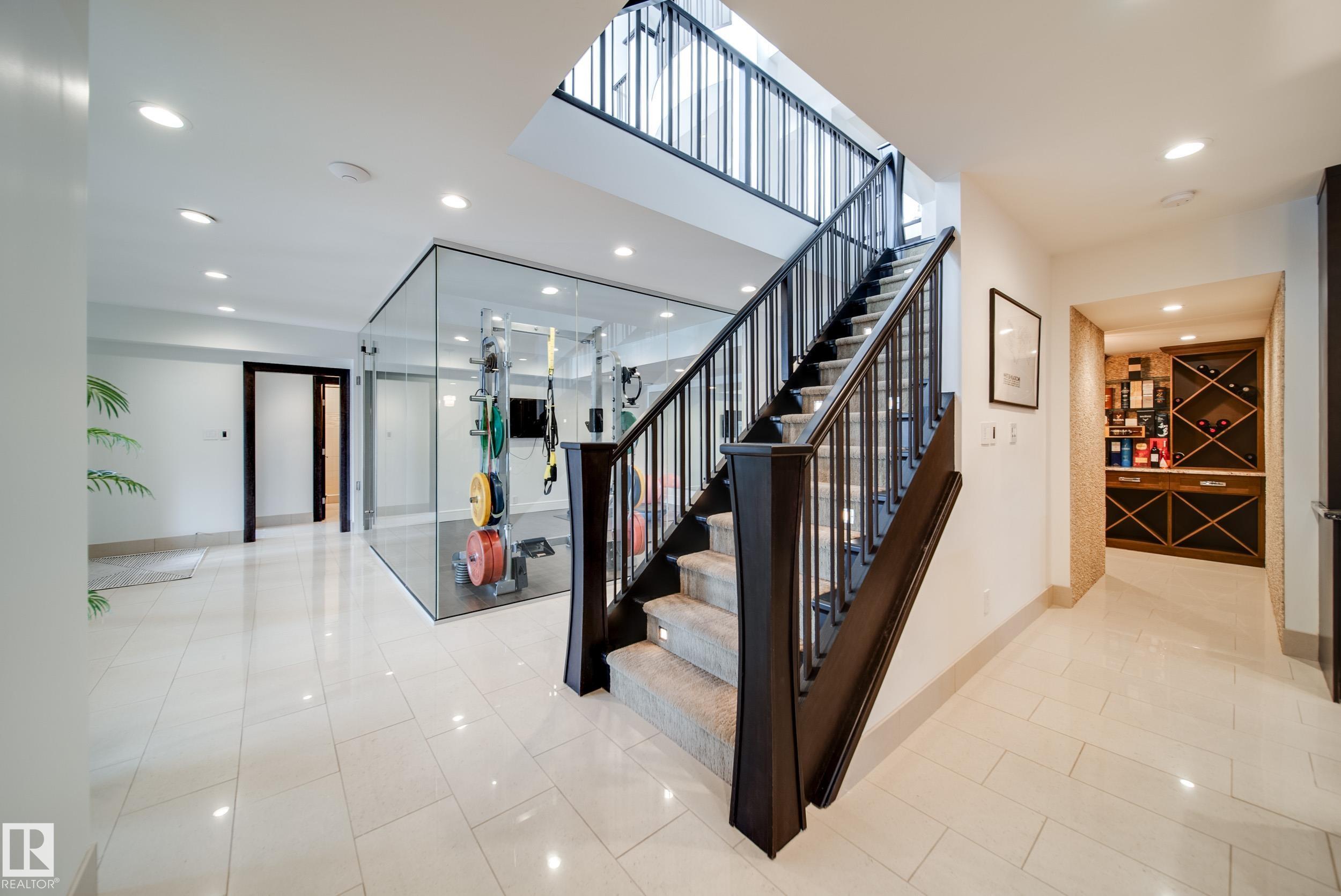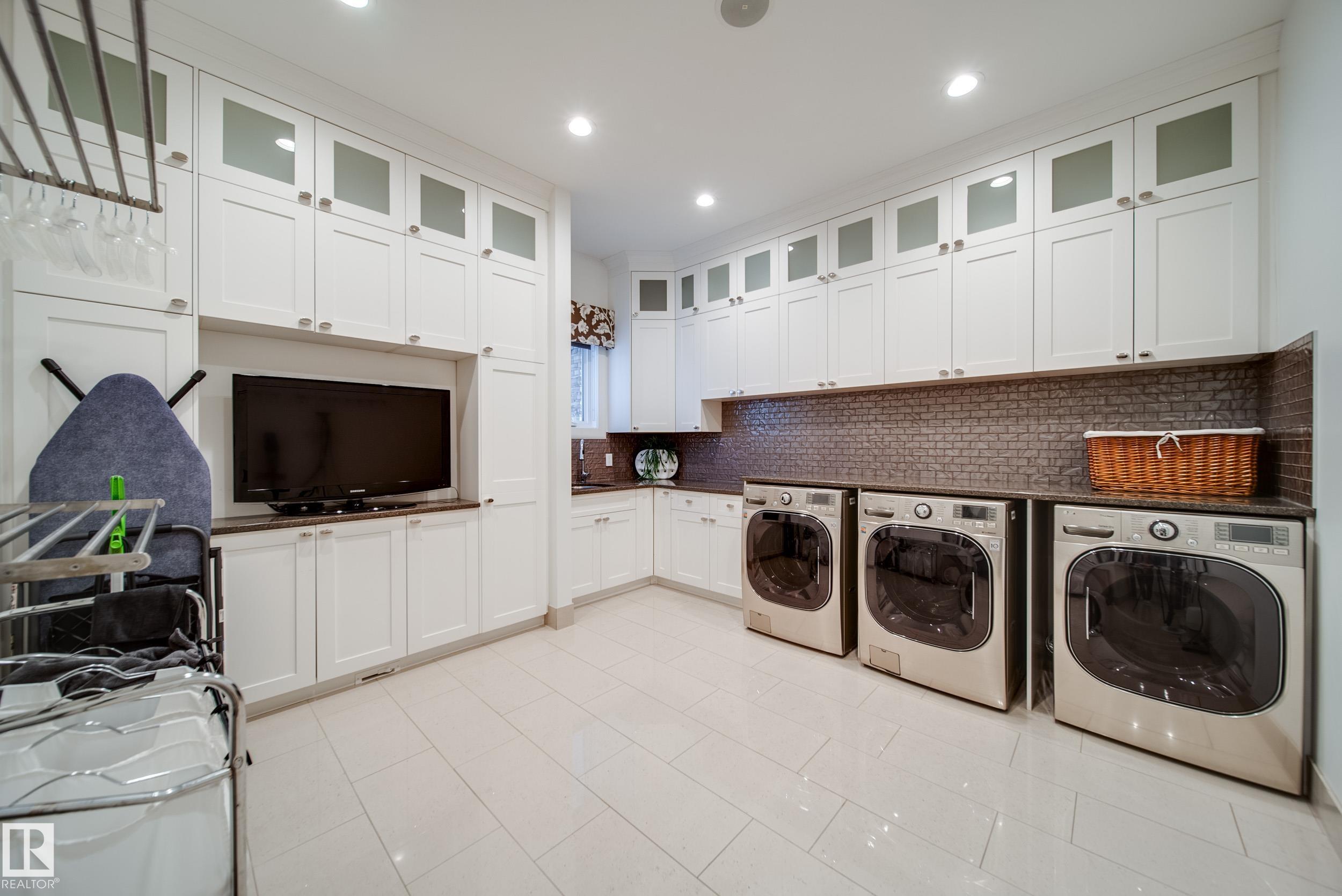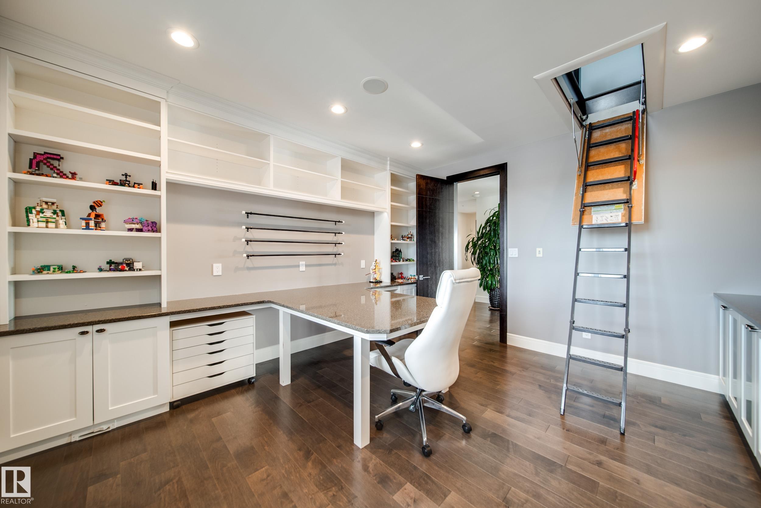 Luxury living in prestigious Blackhawk Estates, just 15 minutes southwest of Edmonton. Situated on a beautifully landscaped 1-acre lot, this exceptional two-storey home backs onto the North Saskatchewan River and fronts the 4th fairway of the renowned Blackhawk Golf Club--hop in your golf cart and head to the course. Offering over 9,000 sq ft of living space with 6,041 sq ft above grade, the home features a main-floor primary retreat with spa-inspired ensuite and dual walk-in closets, plus a private office. Expansive living areas include a chef's kitchen with dining area and cozy living room. A formal great room, wine cellar, and five fireplaces, including a wood-burning fireplace in the three-season room, add warmth and elegance. Upstairs offers 3 bedrooms plus a flex room, while the basement includes a theatre, gym, games area with mini hockey rink, rec room, and bedroom. A true car enthusiast's dream, the 2,400 sq ft garage features vaulted ceilings and a wash bay. This is the best of acreage living!