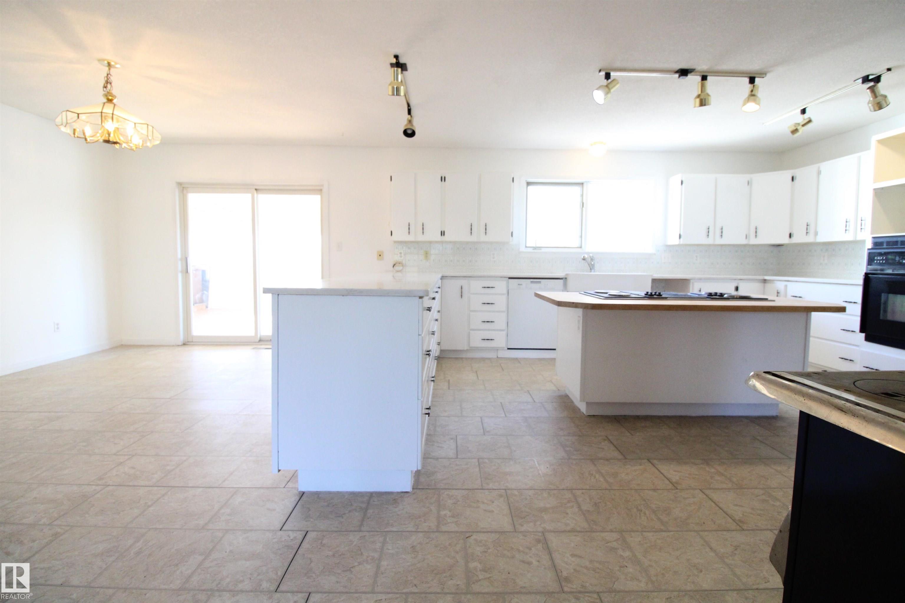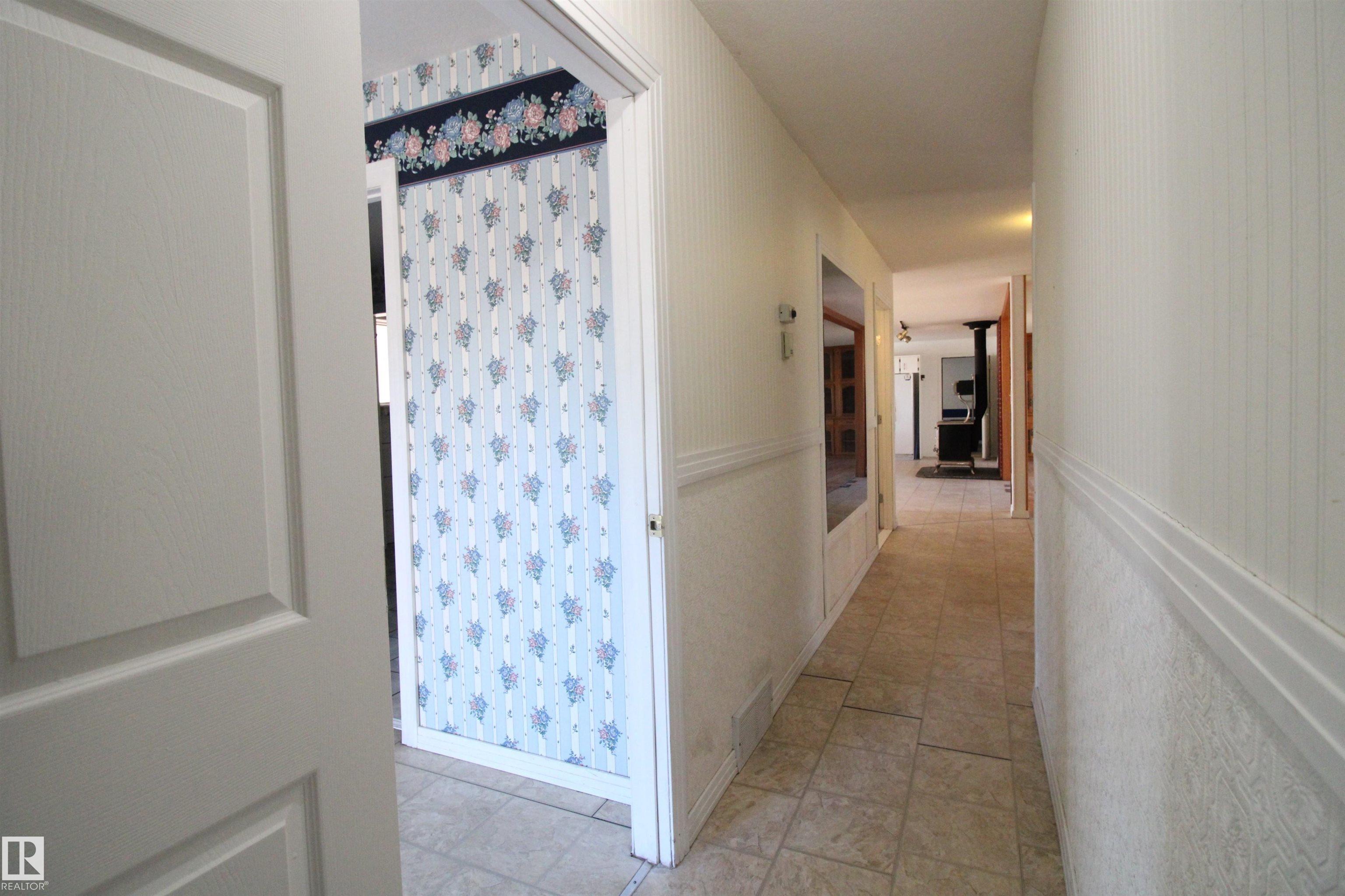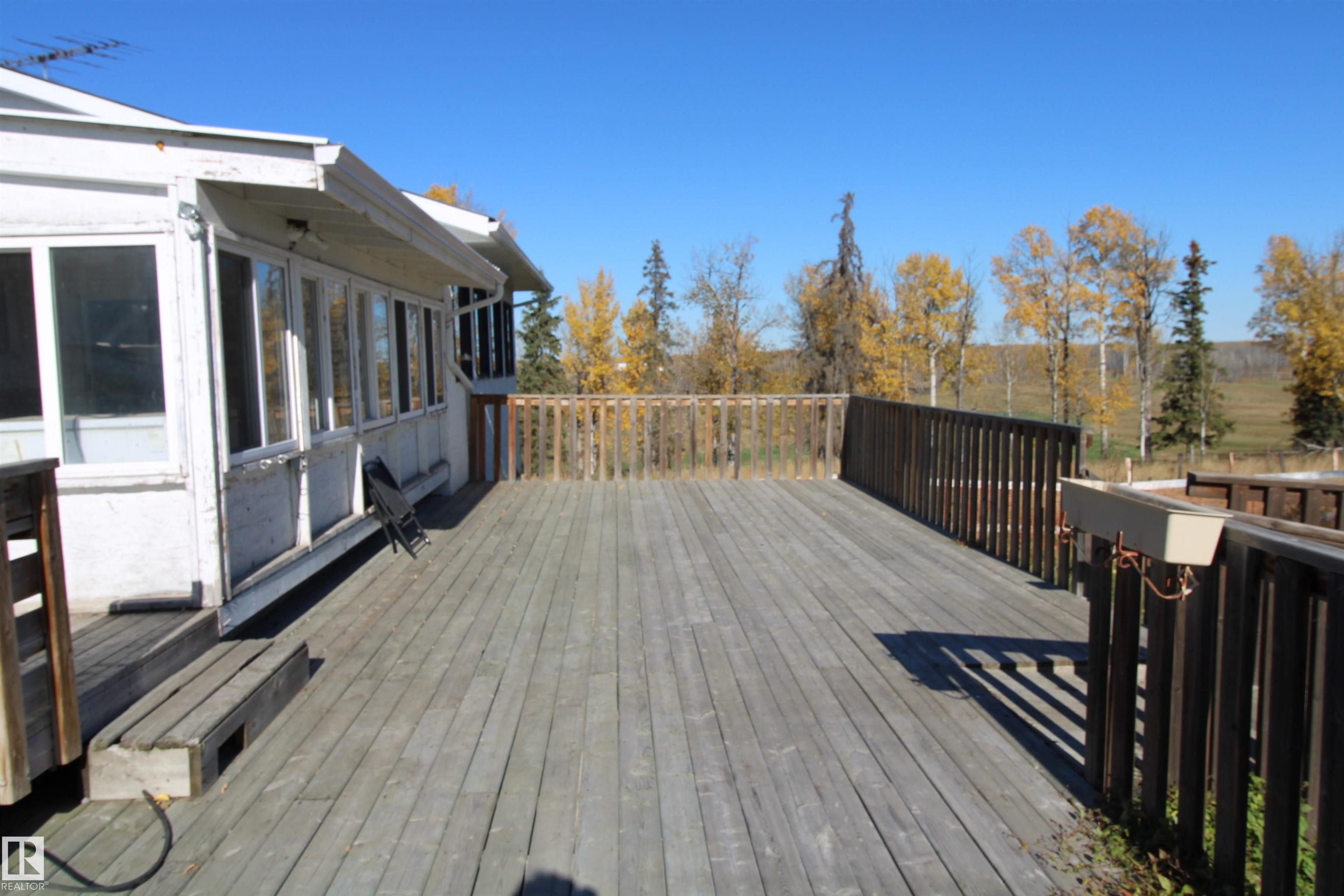 Built for the Doer: Heated Shop, Paved Access, and Room to Run Your Business from Home. Over 4,500 sq ft on 5 private, tree-lined acres minutes from Entwistle--featuring a heated 32 ž 36 shop, paved access, and clear potential for buyers ready to update. This spacious bi-level offers 5 bedrooms, 3 baths, and dual living areas suited to multi-generational families, home-based businesses, or income potential. The lower level includes in-floor heat, a second kitchen, and full-height windows, creating a bright, comfortable suite. A 14 ž 20 sunroom connects to an 800 sq ft deck adding everyday function and flexibility. The paved driveway leads to the heated shop with 12-ft ceilings and attached greenhouse--ideal for trades, storage, or serious hobby use. Original finishes provide a strong opportunity to build equity through renovation, supported by solid construction, metal roof, and reliable mechanical systems. A rare chance to secure space, privacy, and long-term upside in a well-located rural setting.