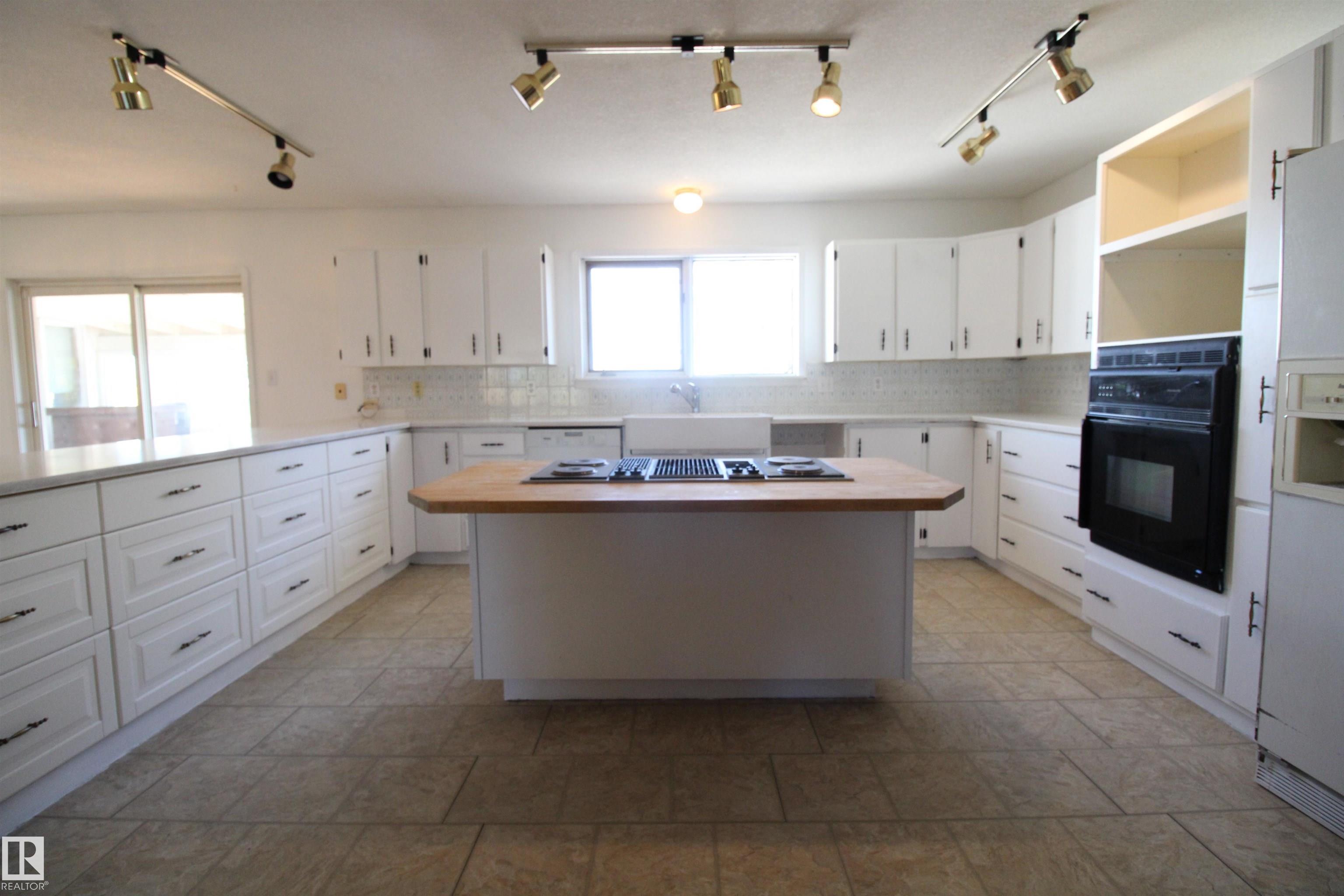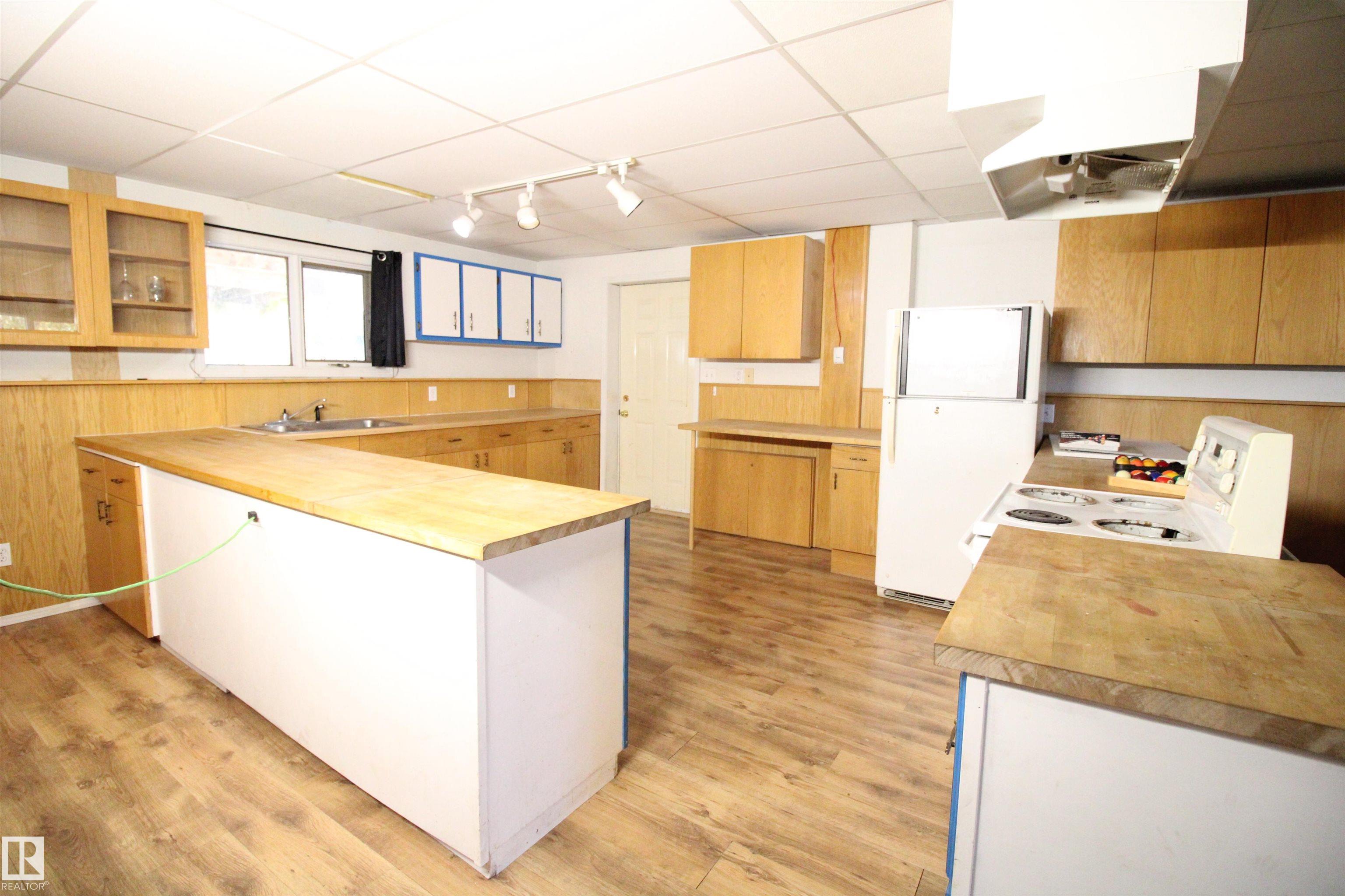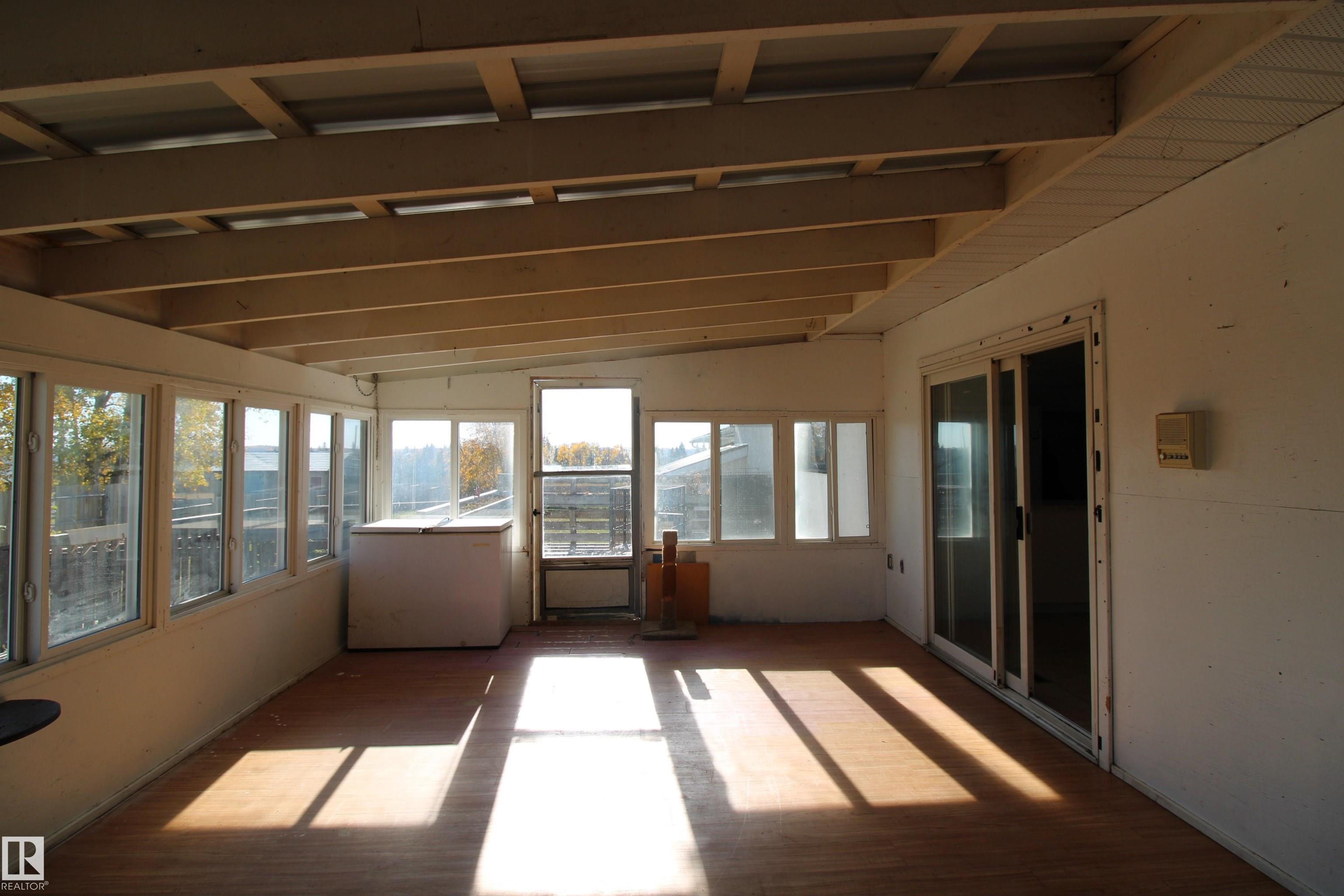 Built for the Doer: Heated Shop, Paved Access, and Room to Run Your Business from Home. Over 4,500 sq ft on 5 private, tree-lined acres minutes from Entwistle--featuring a heated 32 ž 36 shop, paved access, and clear potential for buyers ready to update. This spacious bi-level offers 5 bedrooms, 3 baths, and dual living areas suited to multi-generational families, home-based businesses, or income potential. The lower level includes in-floor heat, a second kitchen, and full-height windows, creating a bright, comfortable suite. A 14 ž 20 sunroom connects to an 800 sq ft deck adding everyday function and flexibility. The paved driveway leads to the heated shop with 12-ft ceilings and attached greenhouse--ideal for trades, storage, or serious hobby use. Original finishes provide a strong opportunity to build equity through renovation, supported by solid construction, metal roof, and reliable mechanical systems. A rare chance to secure space, privacy, and long-term upside in a well-located rural setting.