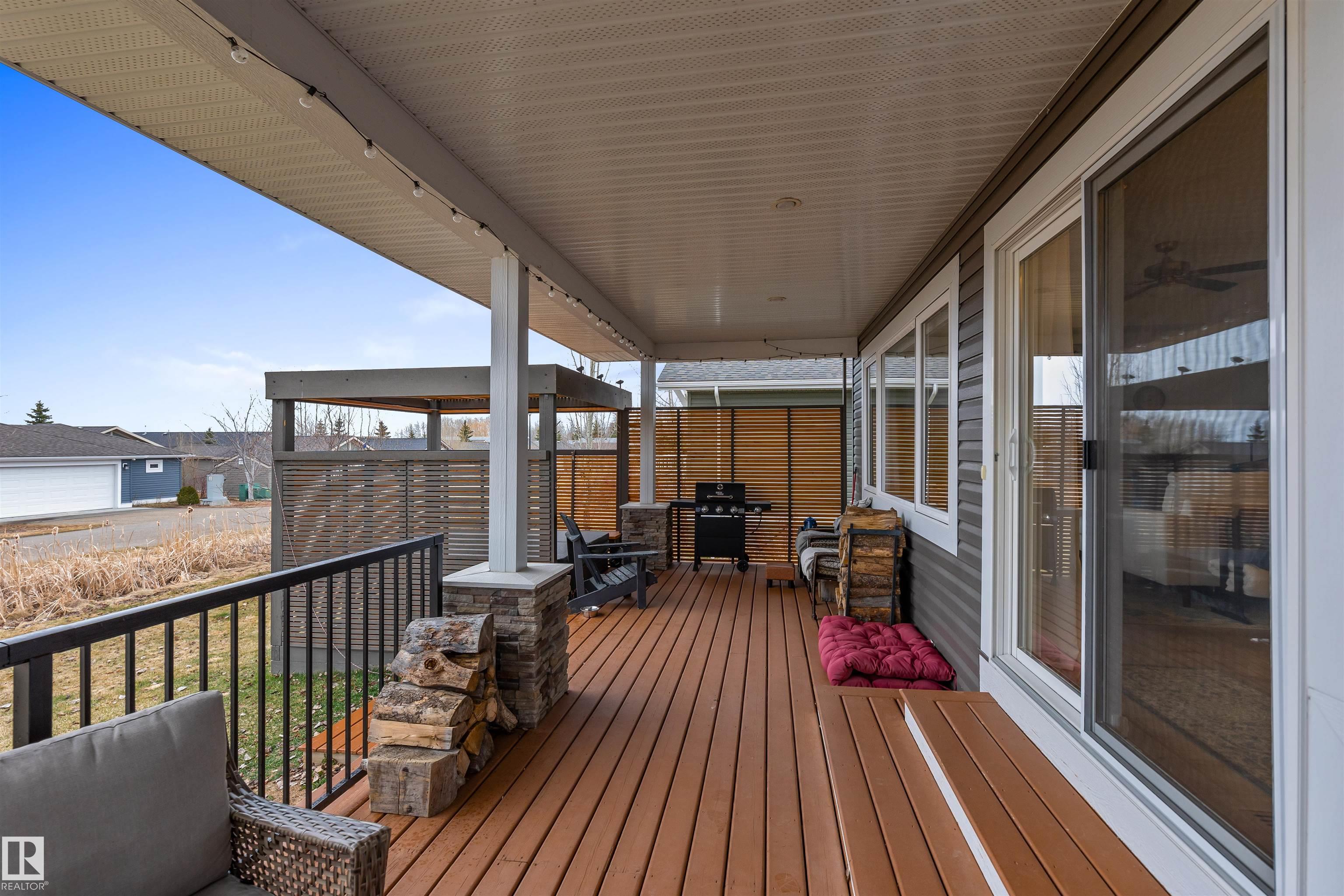 Discover this stunning bungalow in the Estates At Water's Edge. The kitchen is spacious and features white cabinetry, tile backsplash, stainless steel appliances (including a GAS STOVE), a huge eating bar island, corner pantry and an abundance of storage! The living room features a GAS FIREPLACE and has patio doors. The covered deck faces south with partial lake views and a private hot tub! The primary bedroom has a three-piece ensuite and a walk-in closet. Two additional bedrooms, a four piece main bathroom and a laundry room with sink complete the main floor. Crafted directly on the property, this home includes a solid concrete crawlspace, offering generous room for storage. A double attached HEATED OVERSIZED GARAGE completes this home. Additional features include VINYL PLANK flooring throughout the main floor and on demand hot water! A gated community, municipal water/sewer, private marina, outdoor heated pool, beachfront park and clubhouse are all amazing features in Estates at Water's Edge!