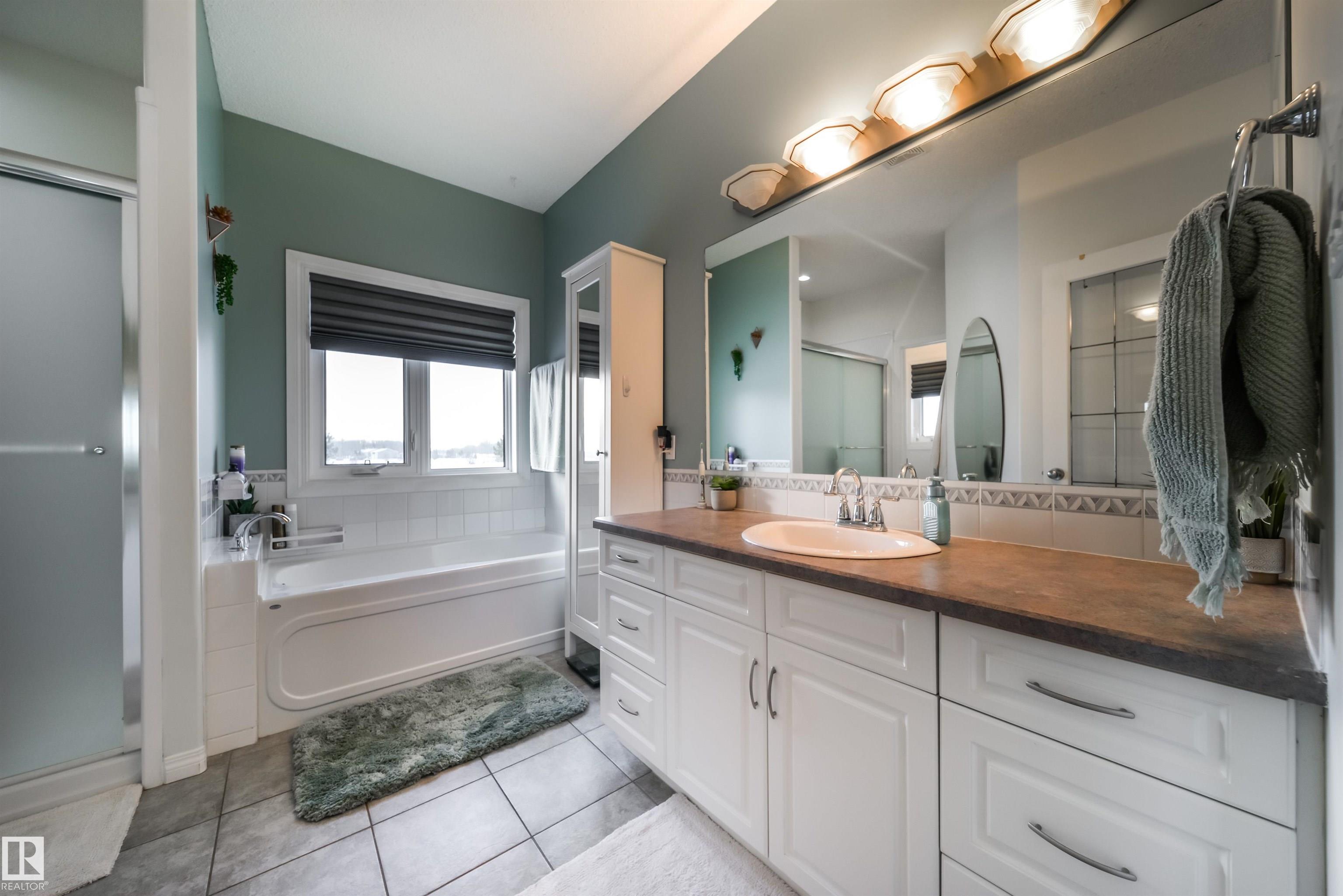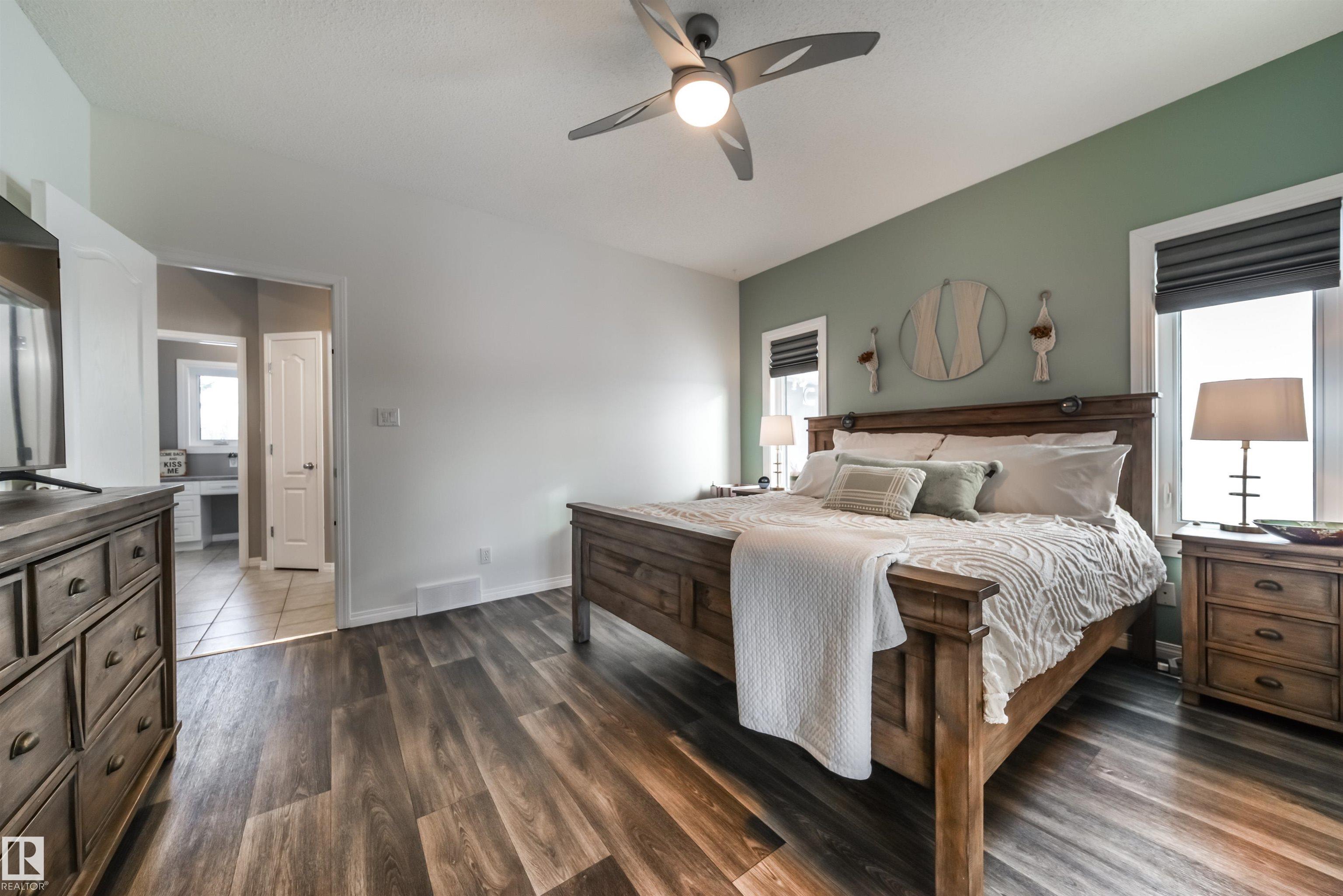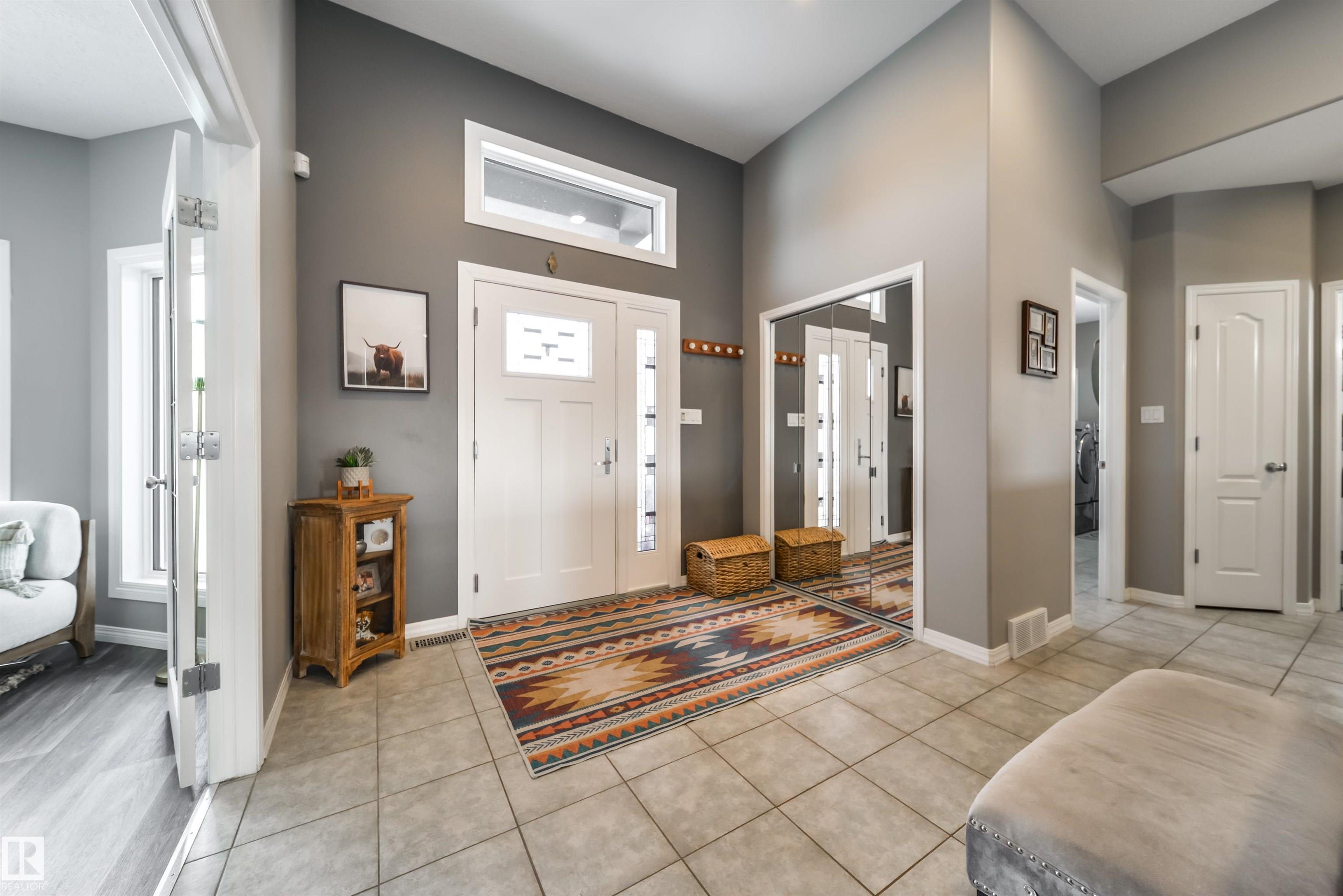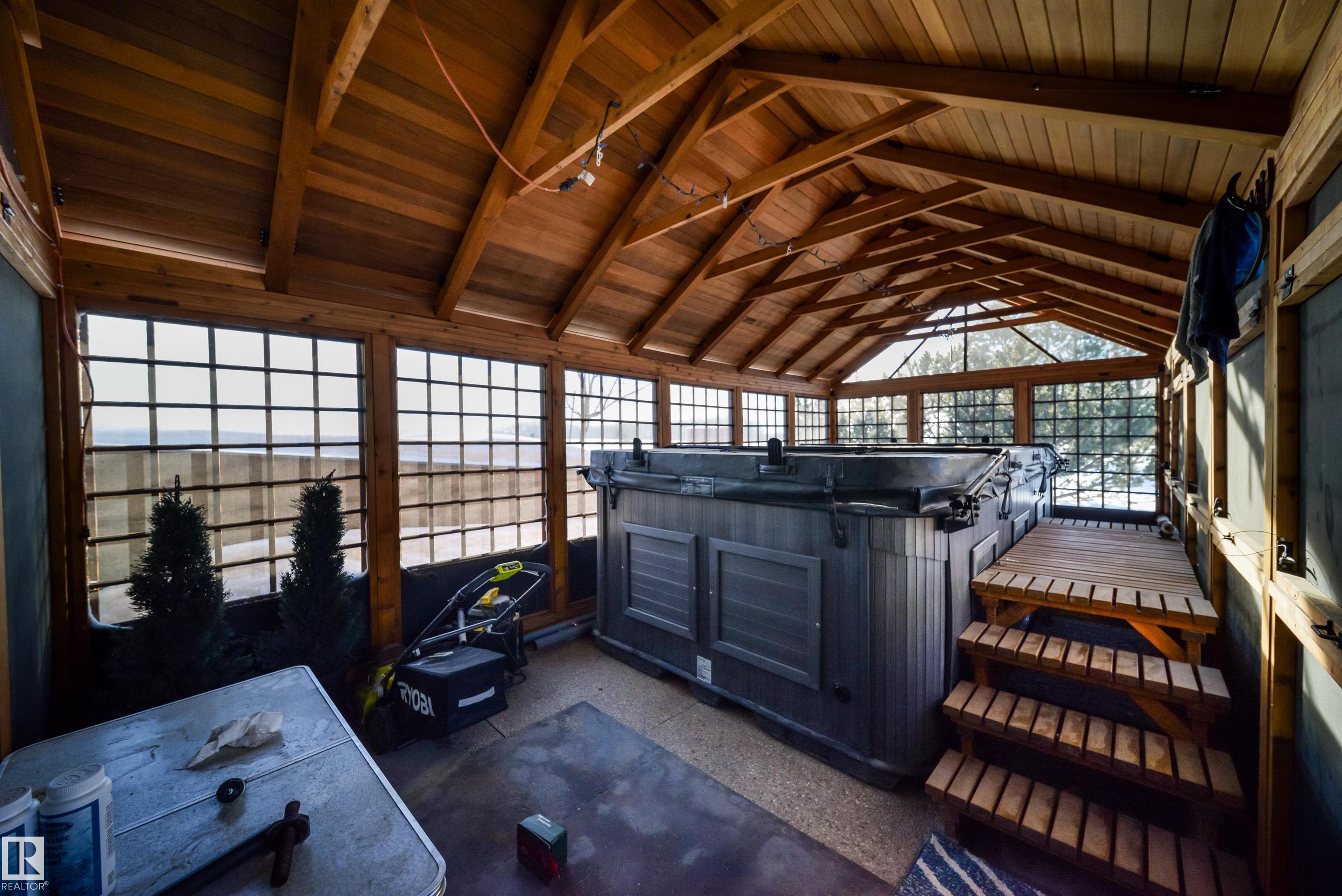 Bring the family and the horses! This beautifully updated 3 bedroom, 3 bath walkout bungalow sits on 12.92 acres just 20 minutes from St. Albert and blends modern comfort with acreage living. The bright open-concept main floor features beautiful kitchen with quartz island, stainless appliances, walk-in pantry, and south-facing views from the dining area with access to a covered deck. The living room offers 11' ceilings, large windows, and a cozy gas fireplace. A spacious den, laundry/boot room, full bath, and primary suite with ensuite complete the main level. The finished walkout basement includes two bedrooms, hobby room, full bath, and large rec room with pellet stove. Outside you'll find corrals, riding area, heated 5-stall barn, 2016 massive 78x42 in-floor heated shop with 14' x14' doors, shed, heated triple attached garage, plus a private 2017 Artic Ozone salt water swim spa with beach house for year-round relaxation. Acreage living done right. Railroad tracks are decommissioned.