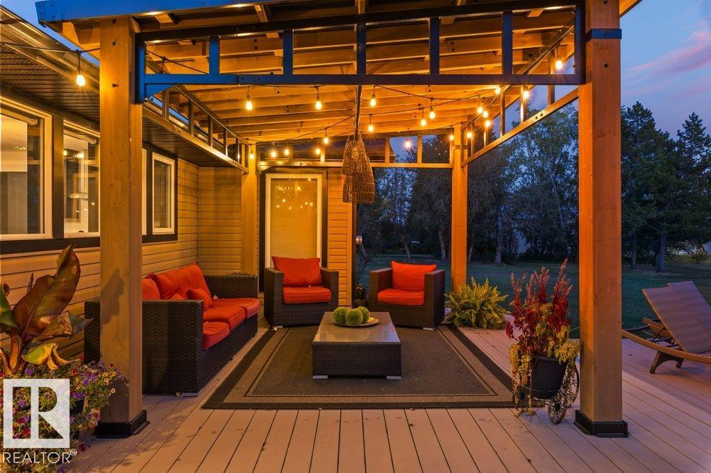 PRIVATE COUNTRY OASIS ON 114 ACRES Just minutes from St. Albert & Morinville sits this stunning 2495sqft bungalow with TRIPLE CAR GARAGE, NEW ROOF & NEW 1000sqft SHOP. Located on pavement with full city water, this home features 4900sqft of family living space, 6 bedroom, 4 baths & is filled with SUNDRENCHED ROOMS AND ENDLESS UPGRADES. The dream kitchen offers S/S appliances, granite counters, a 7' island that opens to two living areas with cozy gas fireplaces. The main floor also features a luxurious primary with spa-inspired ensuite & W/I closet, second & third bedrooms, 4 pc bath & large mudroom. Fully renovated in 2008, no detail missed: windows, doors, insulation, siding, furnaces, electrical & plumbing. The finished basement showcases 3 bedrooms, a gym, games/entertainment room & 4pc bath. Outdoors enjoy your recreation area featuring multiple decks, hot tub & a poured concrete fire pit area. With CORRALS AND LIVESTOCK SHEDS this rare opportunity for a hobby farm or private family living awaits.