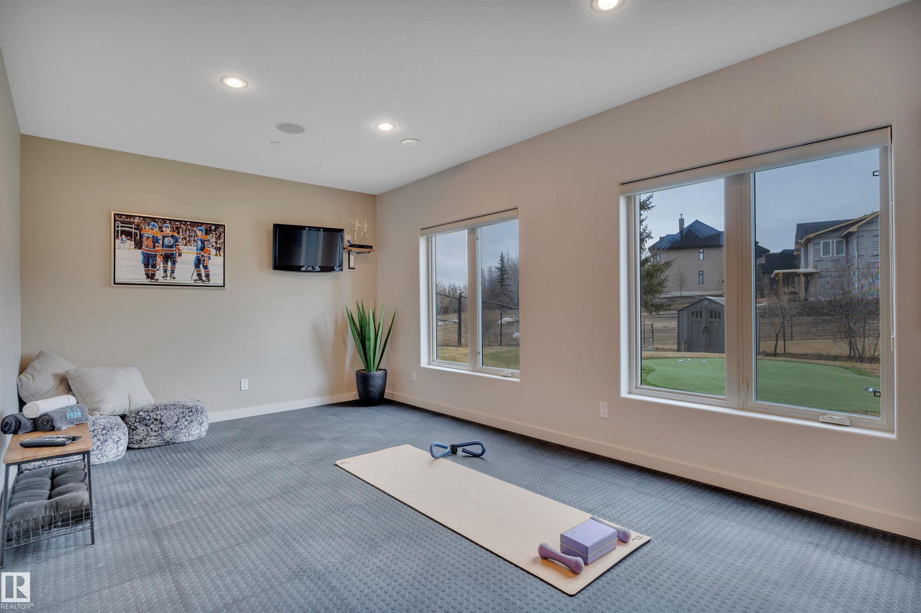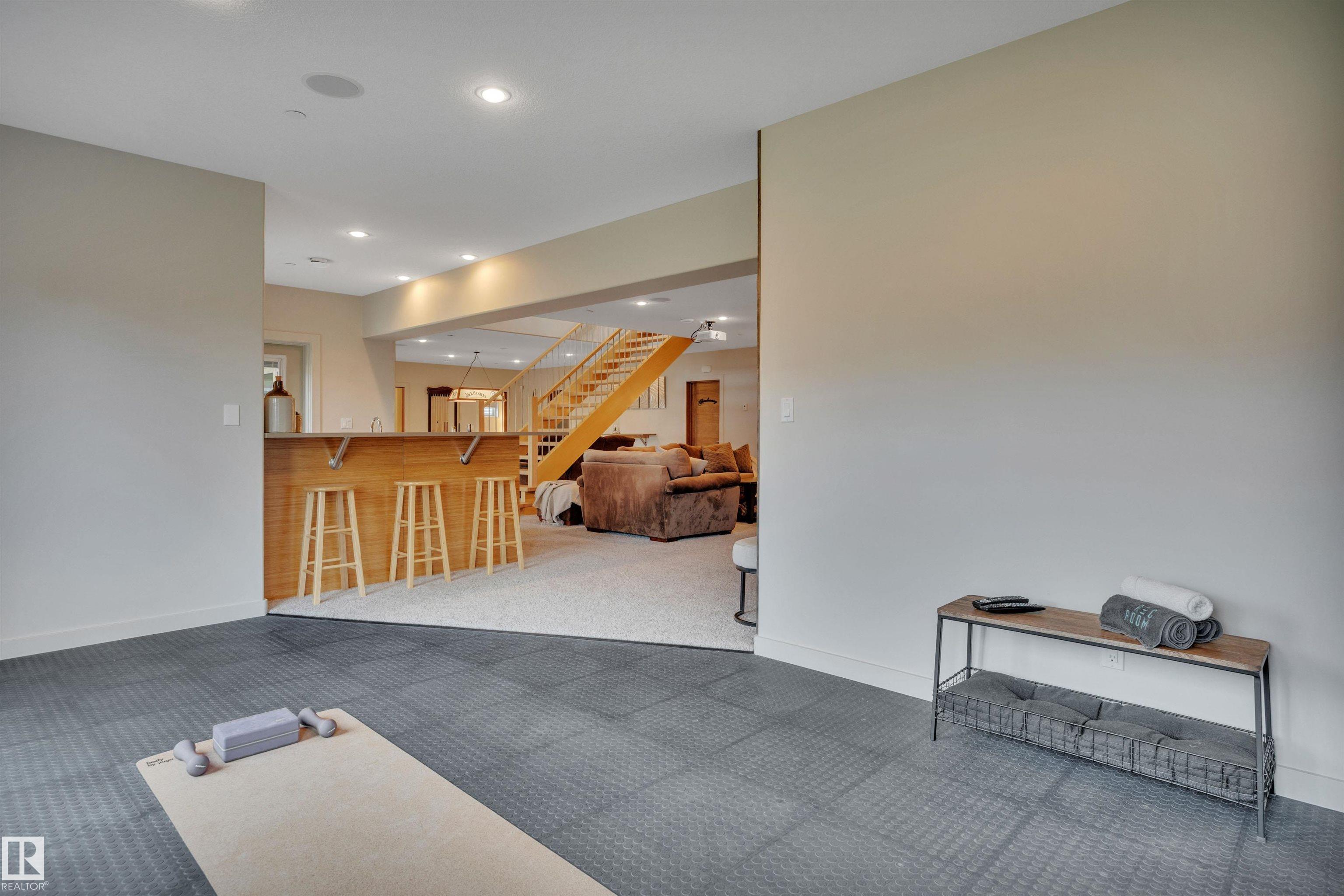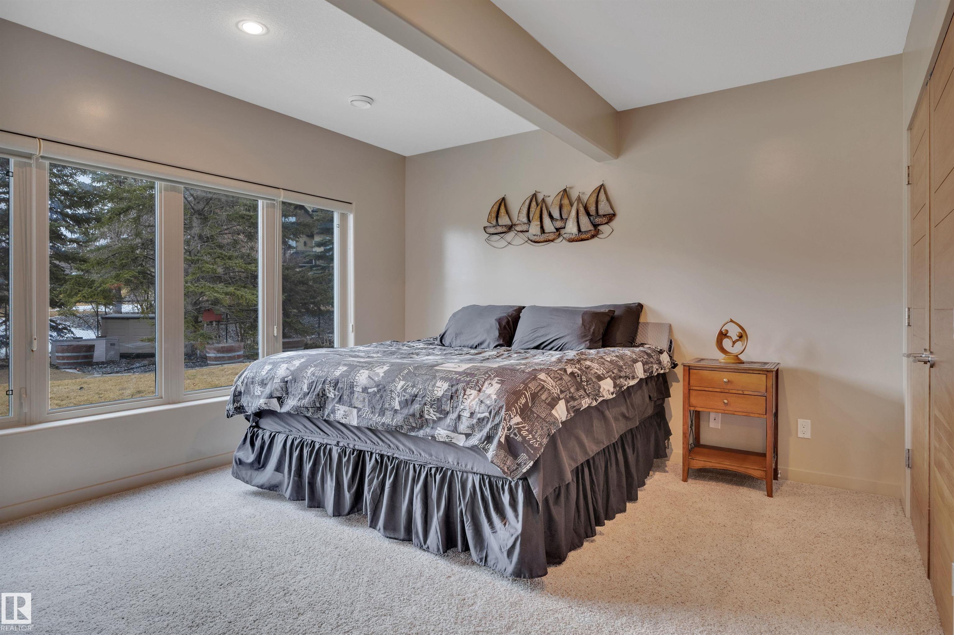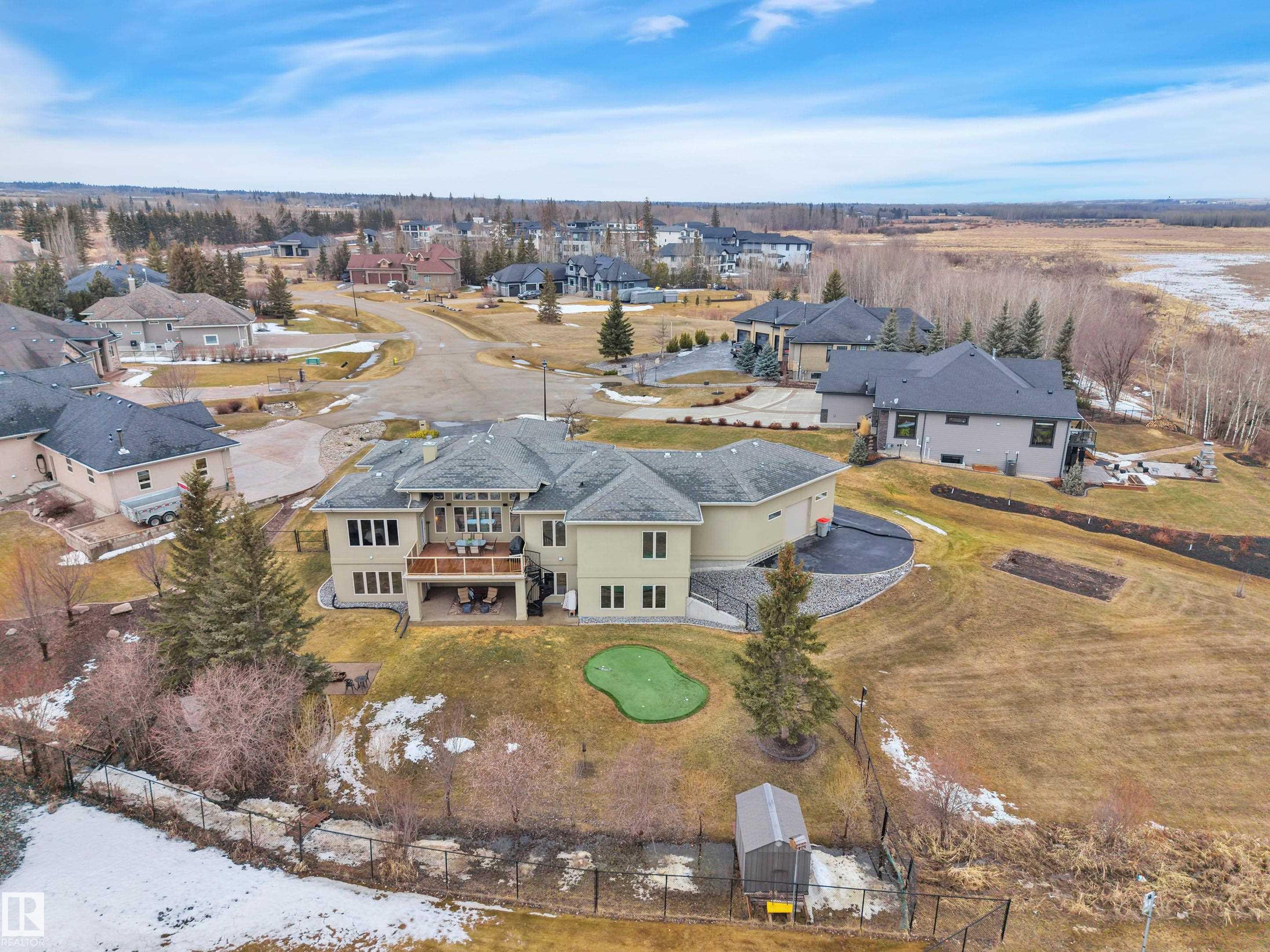 Executive walkout bungalow on « acre lot in prestigious Lake Ridge Estates -- where refined country living meets uncompromising luxury. Over 4,300 sq ft of masterfully finished space where soaring rock walls, towering windows & open-concept layout create a breathtaking first impression. The chef's kitchen stuns with quartz countertops, bamboo cabinetry, gas range & a huge eat-up island. Entertain in your formal dining area or on the huge deck with whole-home sound & smart home tech throughout. Watch the game on the 125" projector screen from the bar or over a game of pool! Then retreat to your spa-inspired master suite with double-sided fireplace designed for pure indulgence. In-floor heat on both levels, triple-pane windows & R60 insulation ensure year-round comfort. The triple heated garage features a drive-through door, dual floor drains & hot/cold taps. Approved shop development permit & full drawings in hand -- truly rare. Exceptional inclusions. Flexible possession. Country prestige. City convenience.