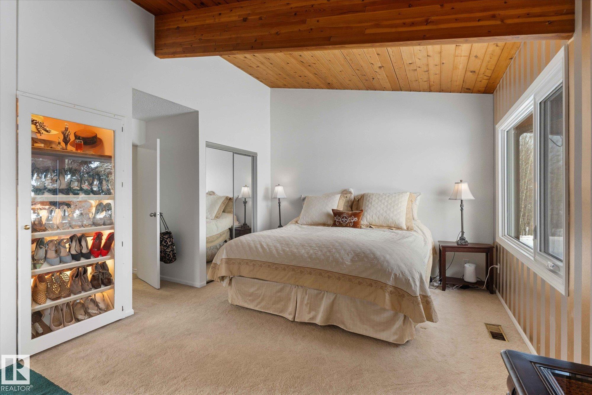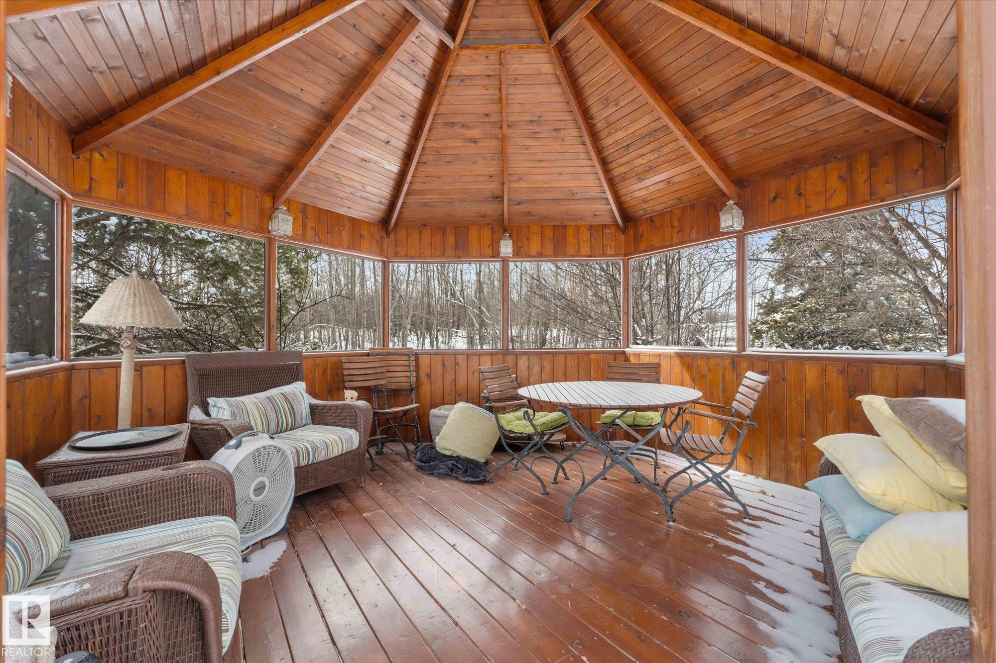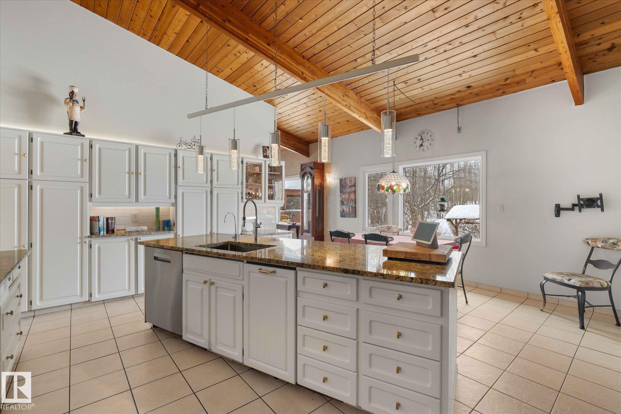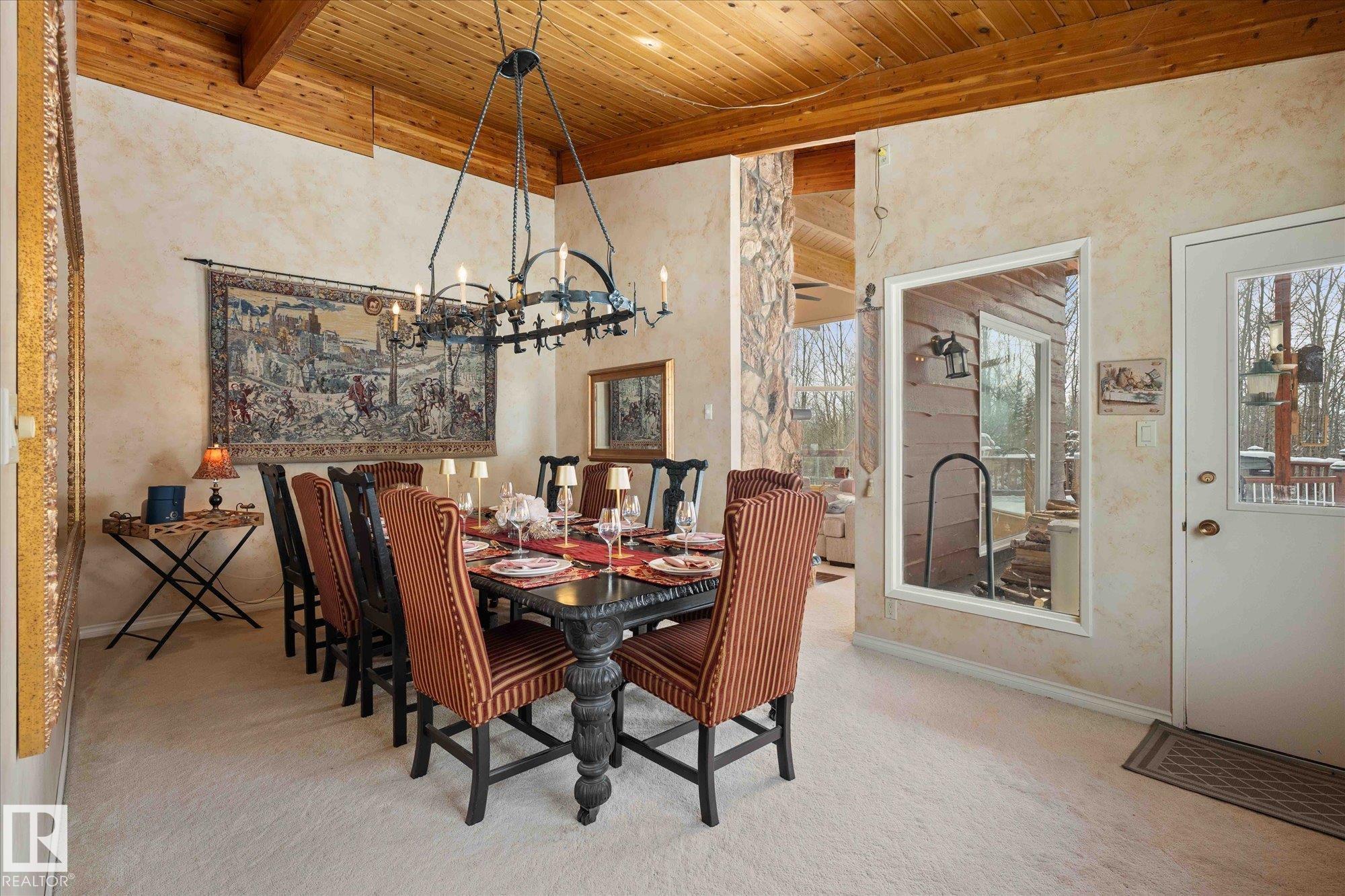 JUST 6 KMS FROM STONY PLAIN SITS THIS INCREDIBLE CUSTOM BUILT HOME ON 17.8 ACRES! What a special property this one is. It offers peace, tranquility, views, wildlife, serenity and location! Many updates done over the years including house shingles (2016), garage roof (2022), septic tanks (2014), house exterior re-stained, barn painted, downstairs bathroom redone, kitchen spruce up including gorgeous granite countertops! The main floor offers a gorgeous and cozy living room surrounded by large windows with a wonderful wood burning fireplace. The Chefs kitchen boasts many extras such as a food warmer, sub zero fridge, wine cooler and double ovens plus a top of the line stove! The bright primary bedroom offers great views and door to deck! The lower level in this walk up has 2 bedrooms, a living room with fireplace, 3 pc bath, sitting area, laundry and cold rooms. The land is rolling and partly treed! The barn is perfect and offers storage on top! Hot tub, gazebo, decks - the list is too long! Must be seen!