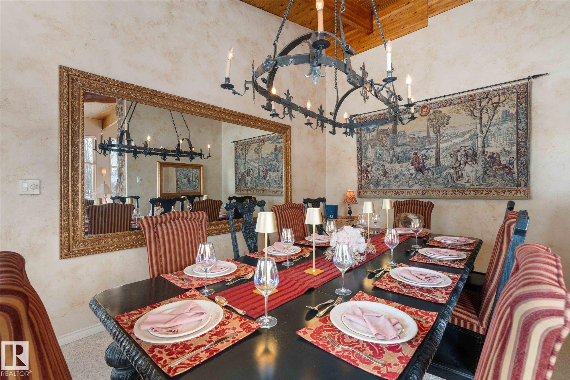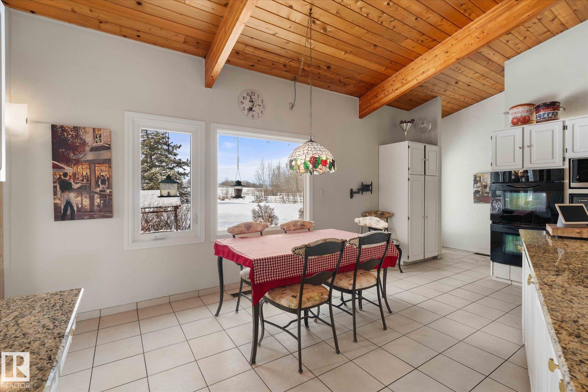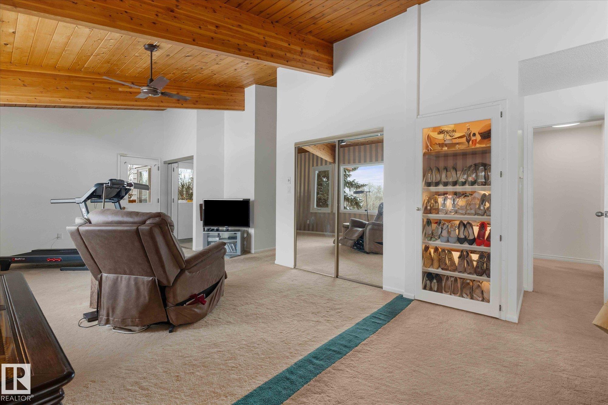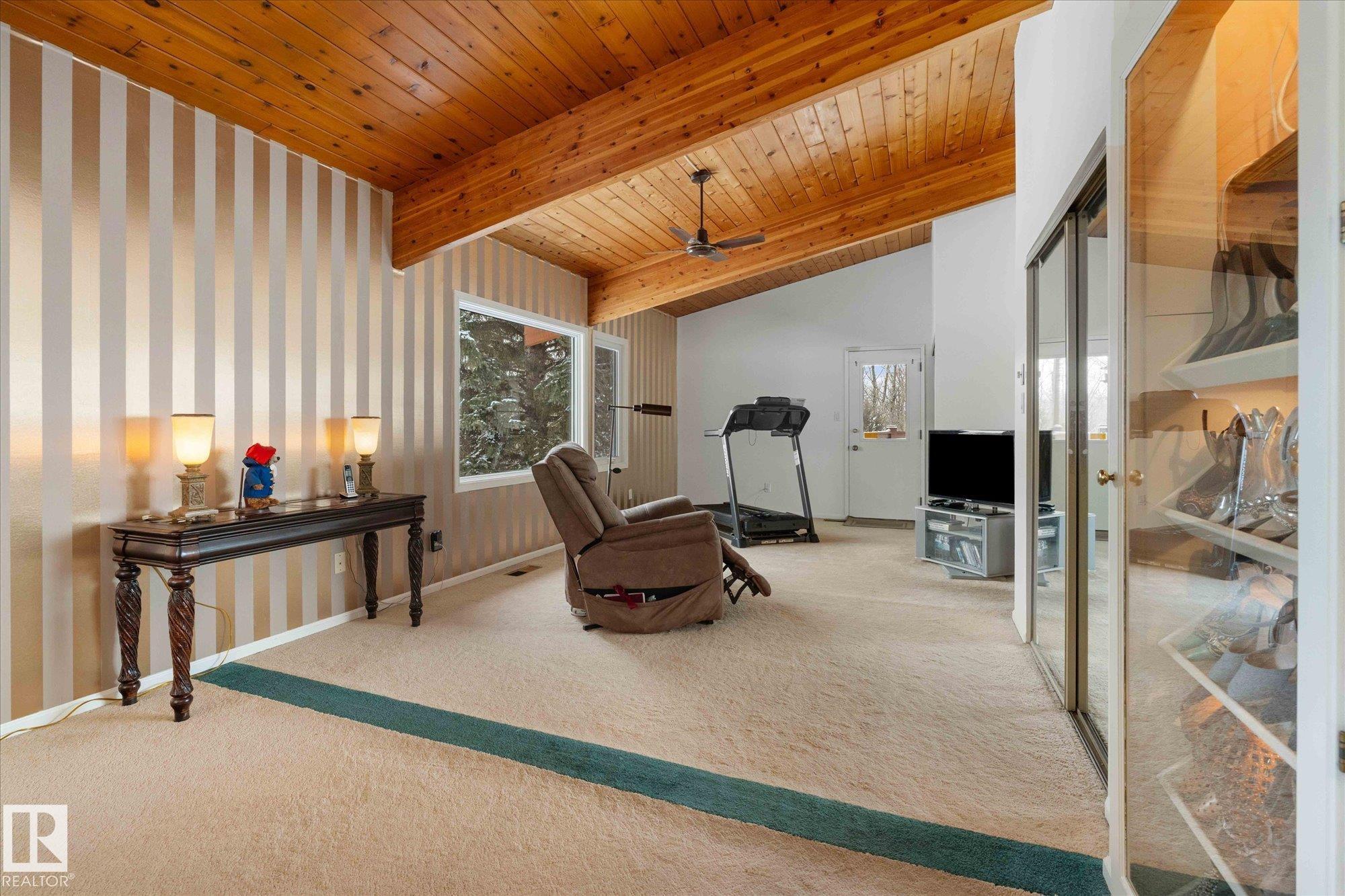 JUST 6 KMS FROM STONY PLAIN SITS THIS INCREDIBLE CUSTOM BUILT HOME ON 17.8 ACRES! What a special property this one is. It offers peace, tranquility, views, wildlife, serenity and location! Many updates done over the years including house shingles (2016), garage roof (2022), septic tanks (2014), house exterior re-stained, barn painted, downstairs bathroom redone, kitchen spruce up including gorgeous granite countertops! The main floor offers a gorgeous and cozy living room surrounded by large windows with a wonderful wood burning fireplace. The Chefs kitchen boasts many extras such as a food warmer, sub zero fridge, wine cooler and double ovens plus a top of the line stove! The bright primary bedroom offers great views and door to deck! The lower level in this walk up has 2 bedrooms, a living room with fireplace, 3 pc bath, sitting area, laundry and cold rooms. The land is rolling and partly treed! The barn is perfect and offers storage on top! Hot tub, gazebo, decks - the list is too long! Must be seen!