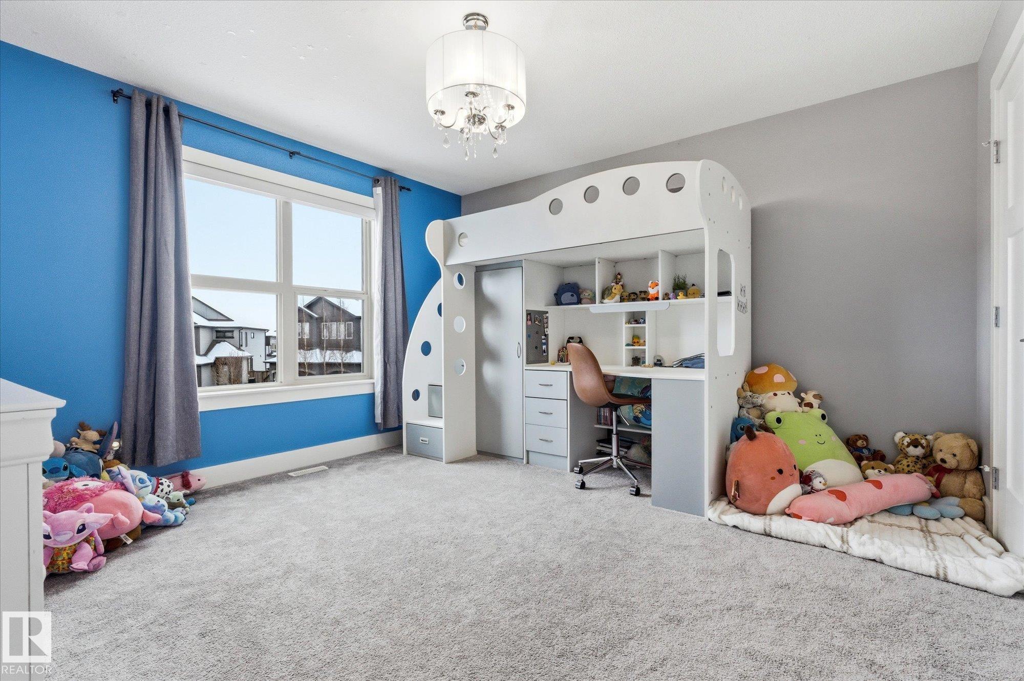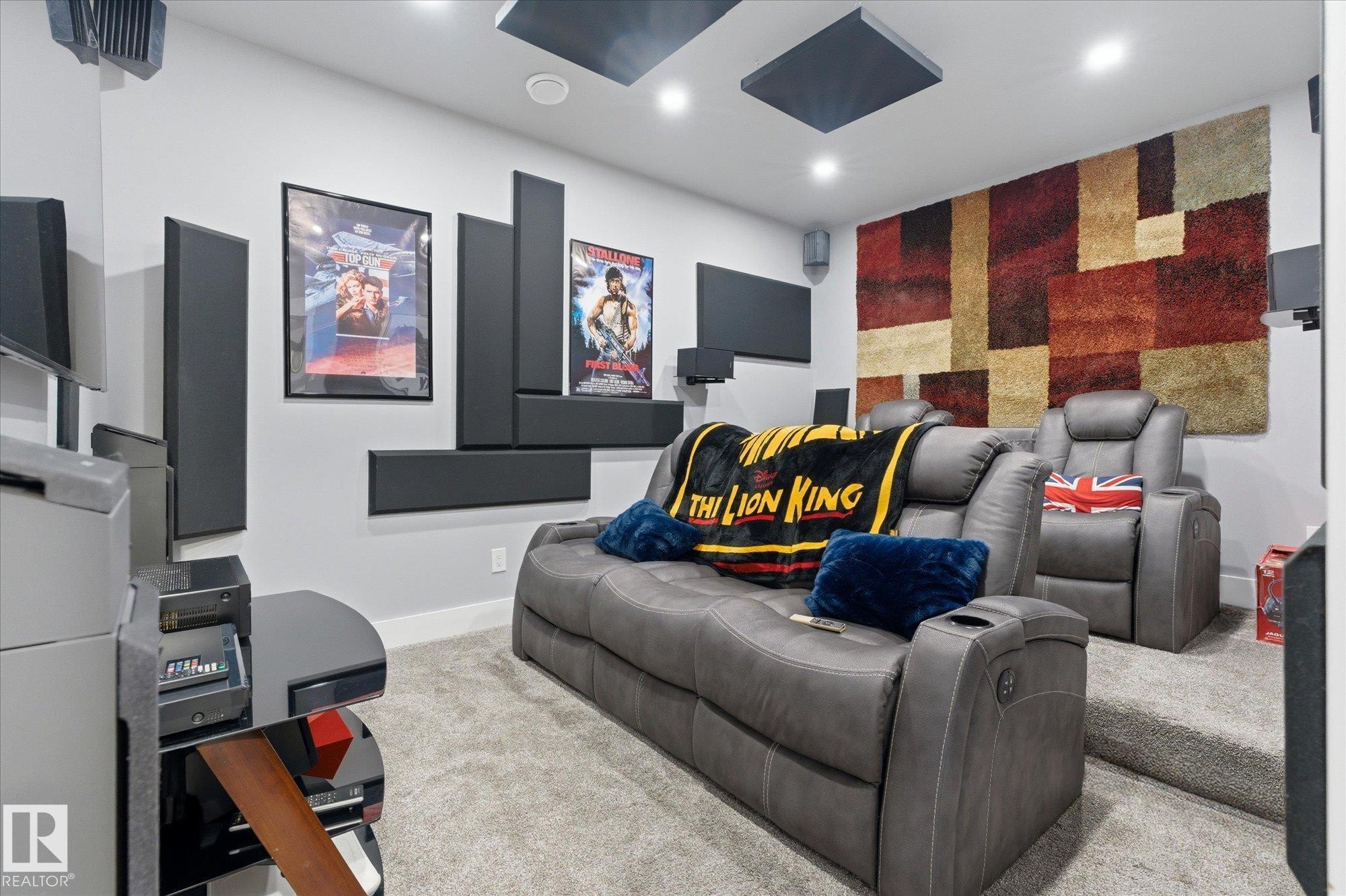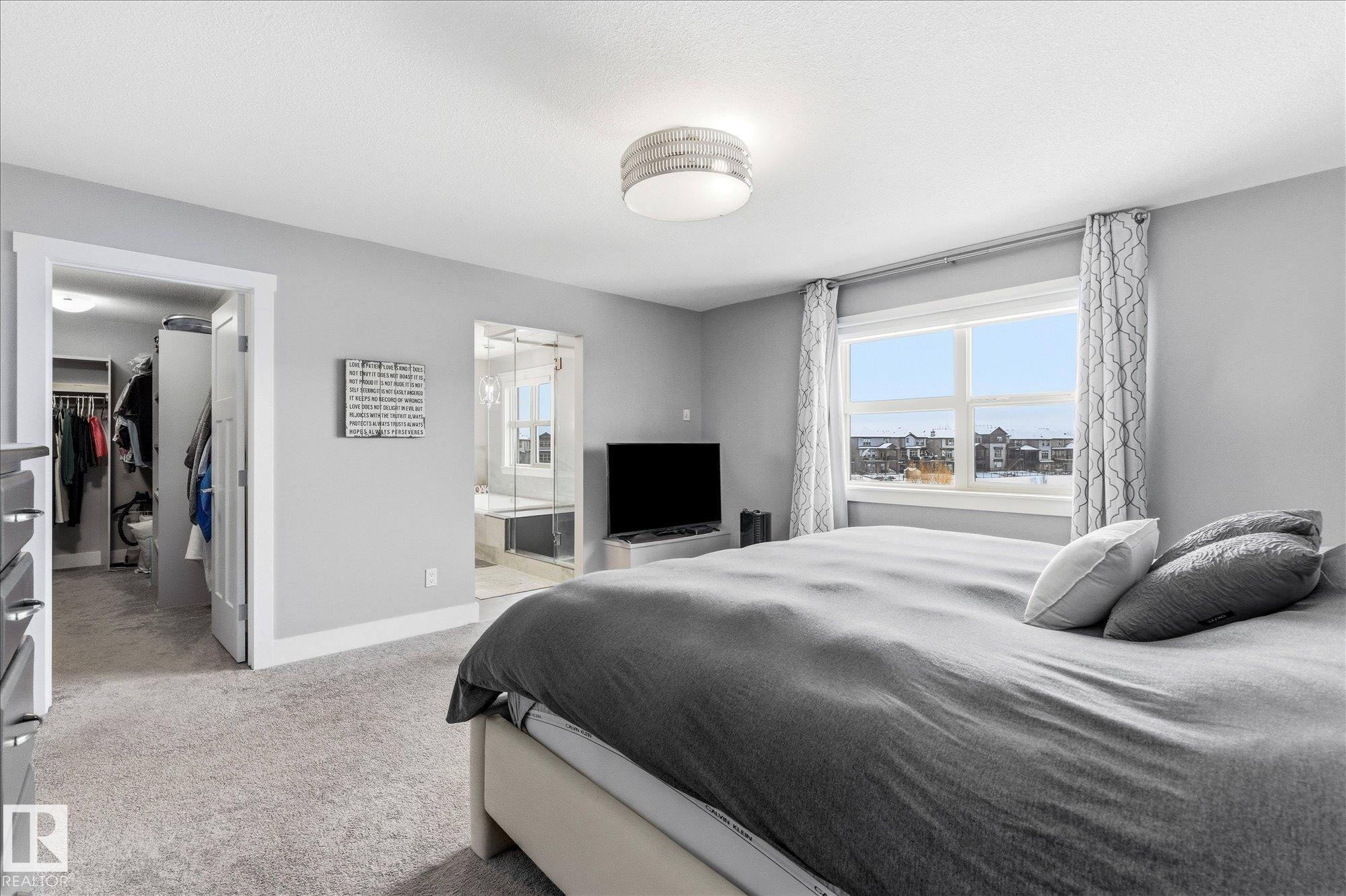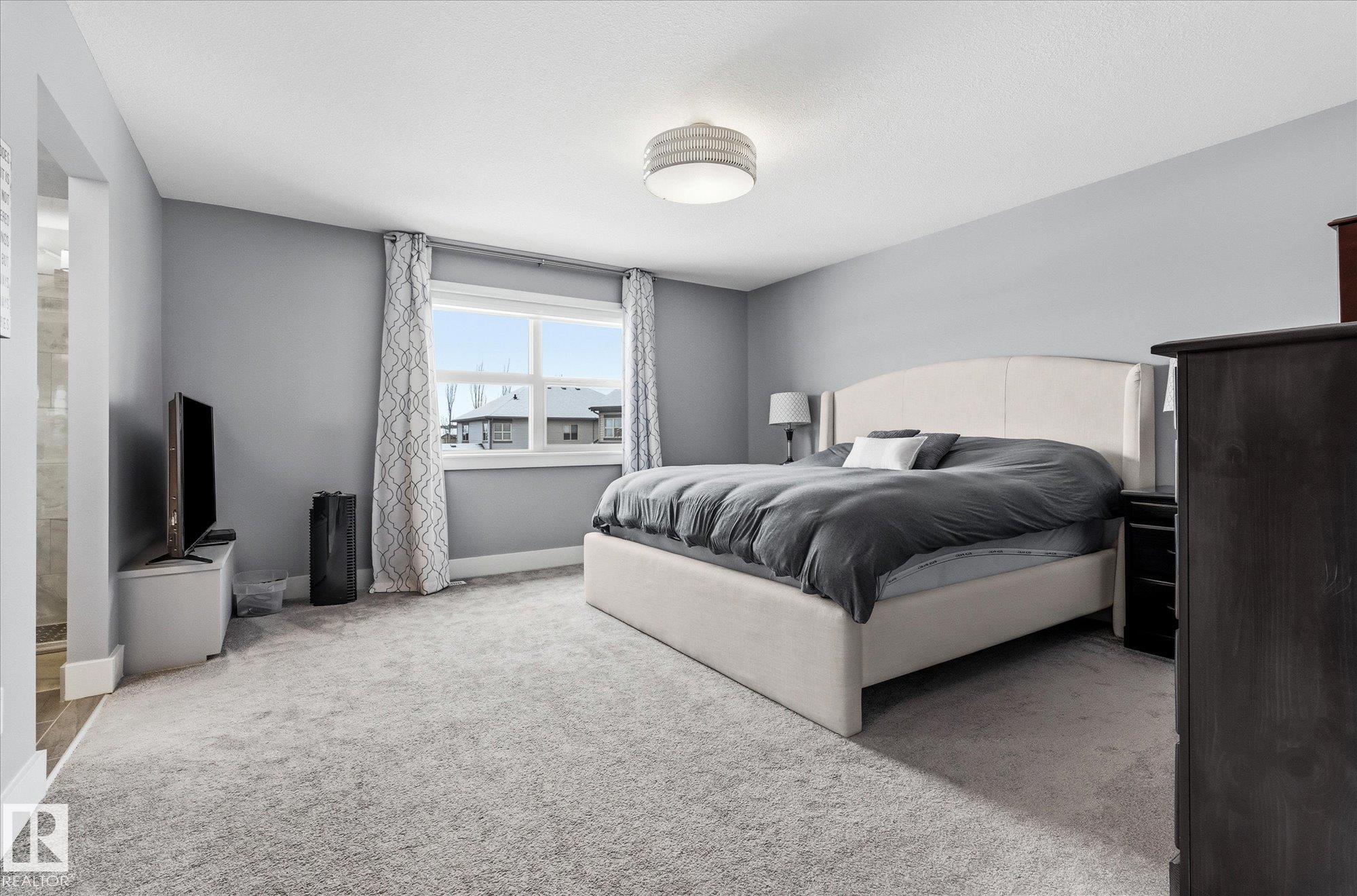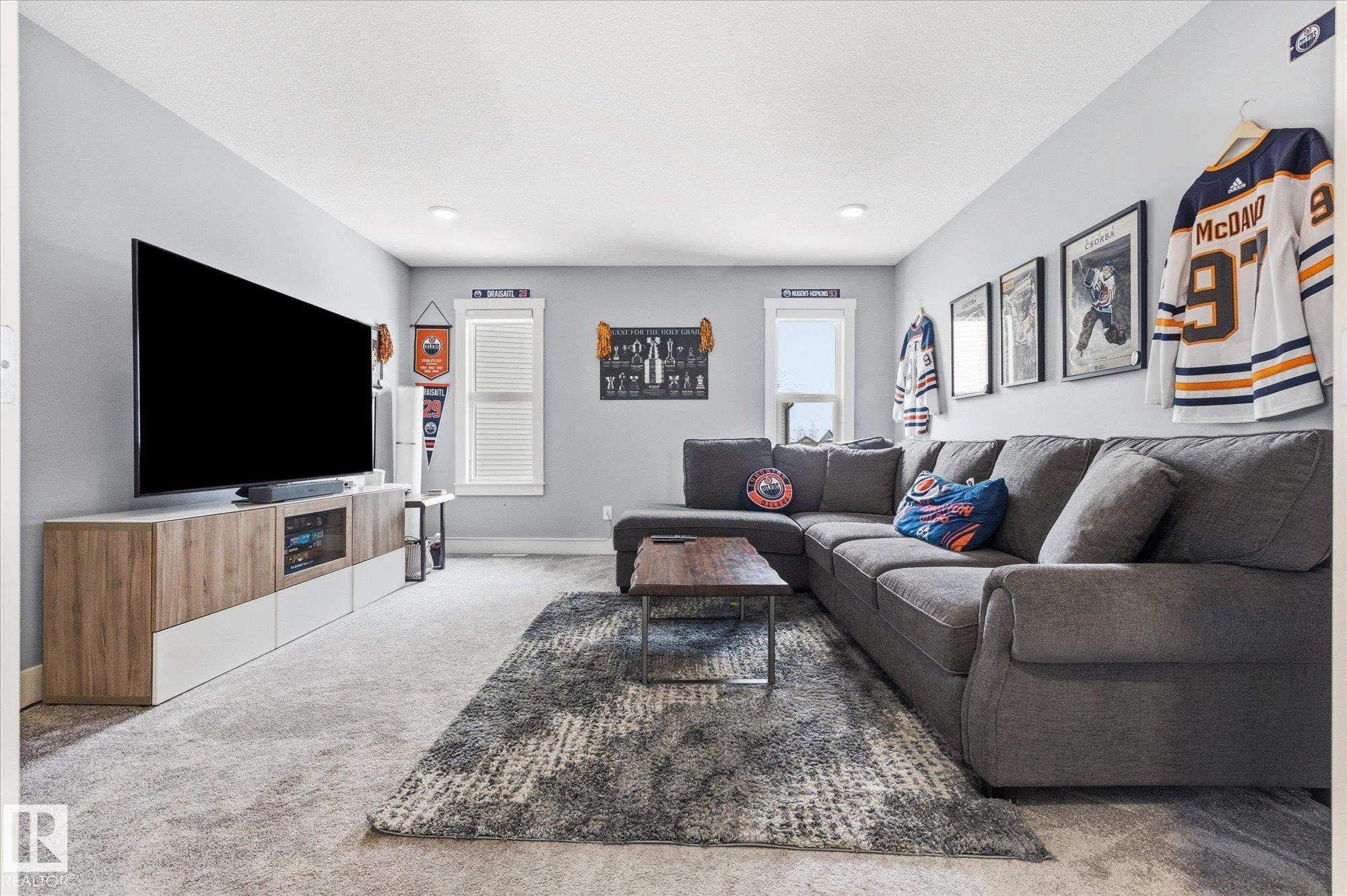 Functional sophistication meets elevated living in this fully finished & upgraded home. Over 2,800 sq.ft., this Western Living built property is designed for both everyday comfort & entertaining. Heart of the home is an exceptional chef's kitchen featuring gas range, commercial-sized fridge, stone countertops, ceiling-height cabinetry, massive island, & walk-through pantry. Open-concept dining area is surrounded by windows showcasing serene greenspace views, while living room is anchored by stylish gas fireplace. Main floor den, mudroom with convenient dog wash, & thoughtful design details throughout complete the main level. Upstairs offers generously sized bedrooms, stunning primary retreat with spa-inspired ensuite, bonus room, & convenient second-floor laundry. Fully developed basement features impressive ceiling height, industrial-inspired finishes, soundproof theatre/gaming room, an additional bedroom, & full bath. Home features oversized garage (25'10"x27'5"), in-floor heat in basement, A/C