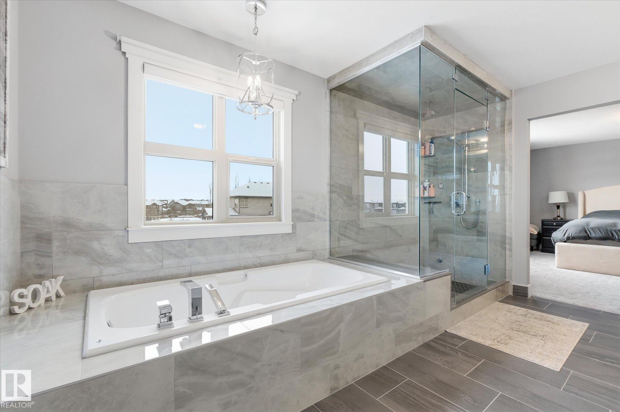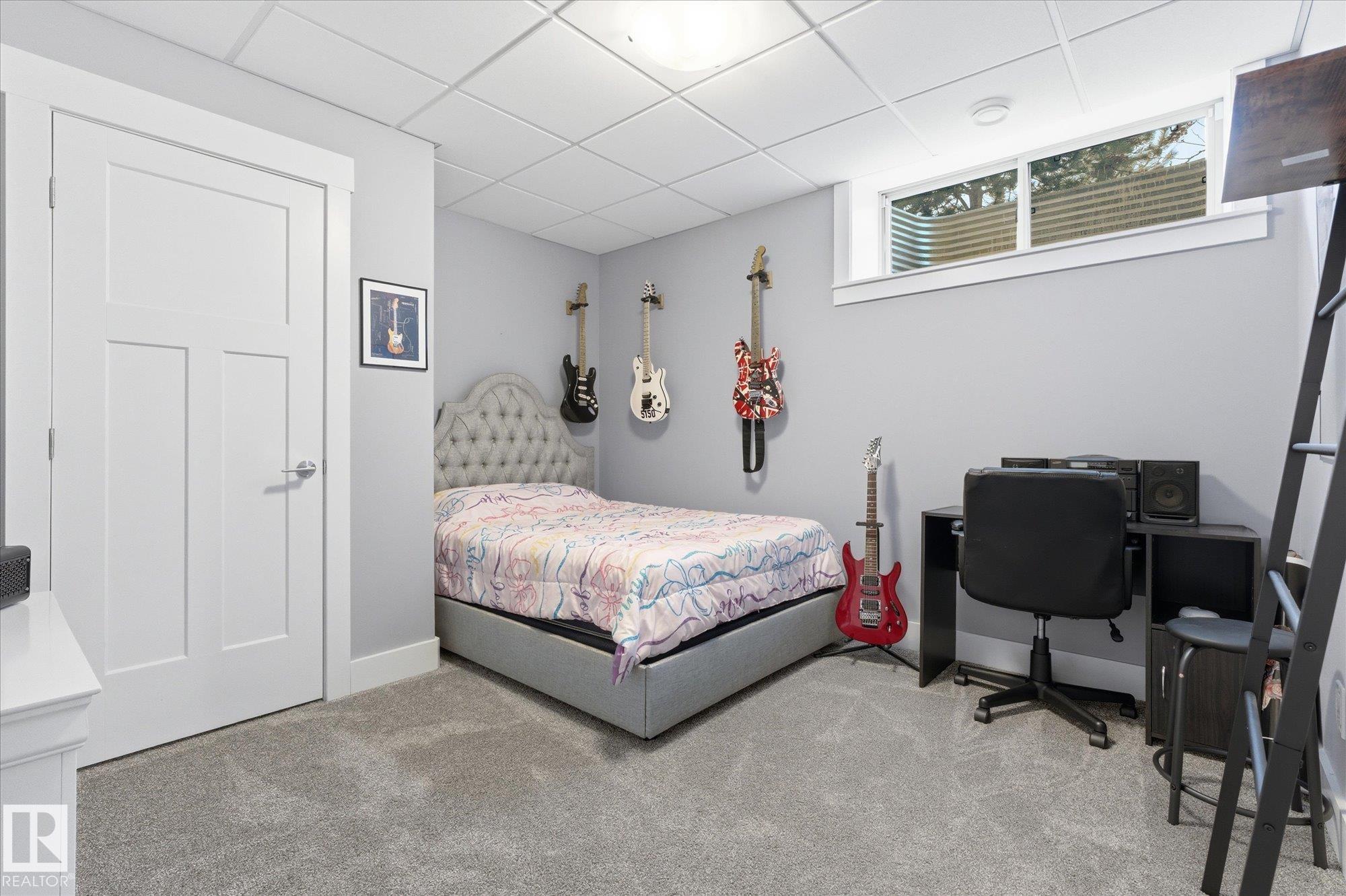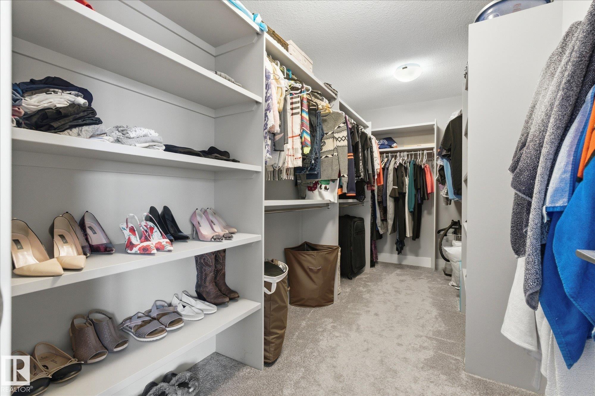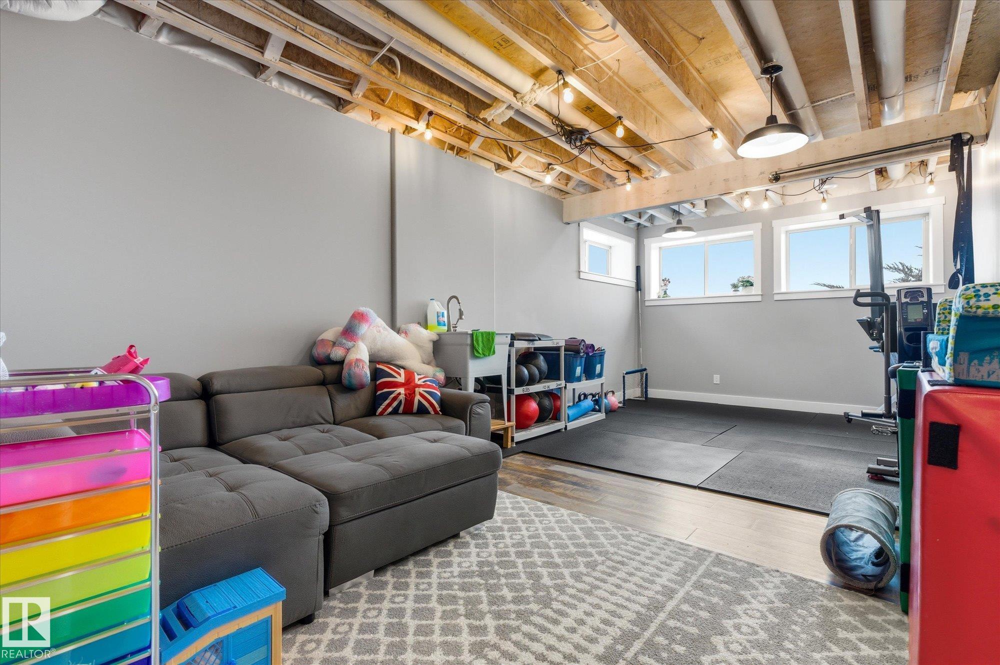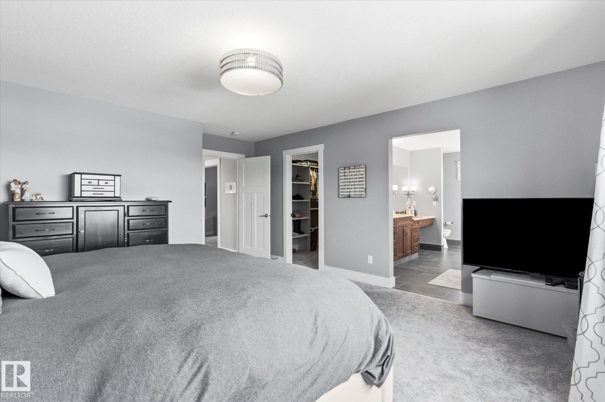 Functional sophistication meets elevated living in this fully finished & upgraded home. Over 2,800 sq.ft., this Western Living built property is designed for both everyday comfort & entertaining. Heart of the home is an exceptional chef's kitchen featuring gas range, commercial-sized fridge, stone countertops, ceiling-height cabinetry, massive island, & walk-through pantry. Open-concept dining area is surrounded by windows showcasing serene greenspace views, while living room is anchored by stylish gas fireplace. Main floor den, mudroom with convenient dog wash, & thoughtful design details throughout complete the main level. Upstairs offers generously sized bedrooms, stunning primary retreat with spa-inspired ensuite, bonus room, & convenient second-floor laundry. Fully developed basement features impressive ceiling height, industrial-inspired finishes, soundproof theatre/gaming room, an additional bedroom, & full bath. Home features oversized garage (25'10"x27'5"), in-floor heat in basement, A/C