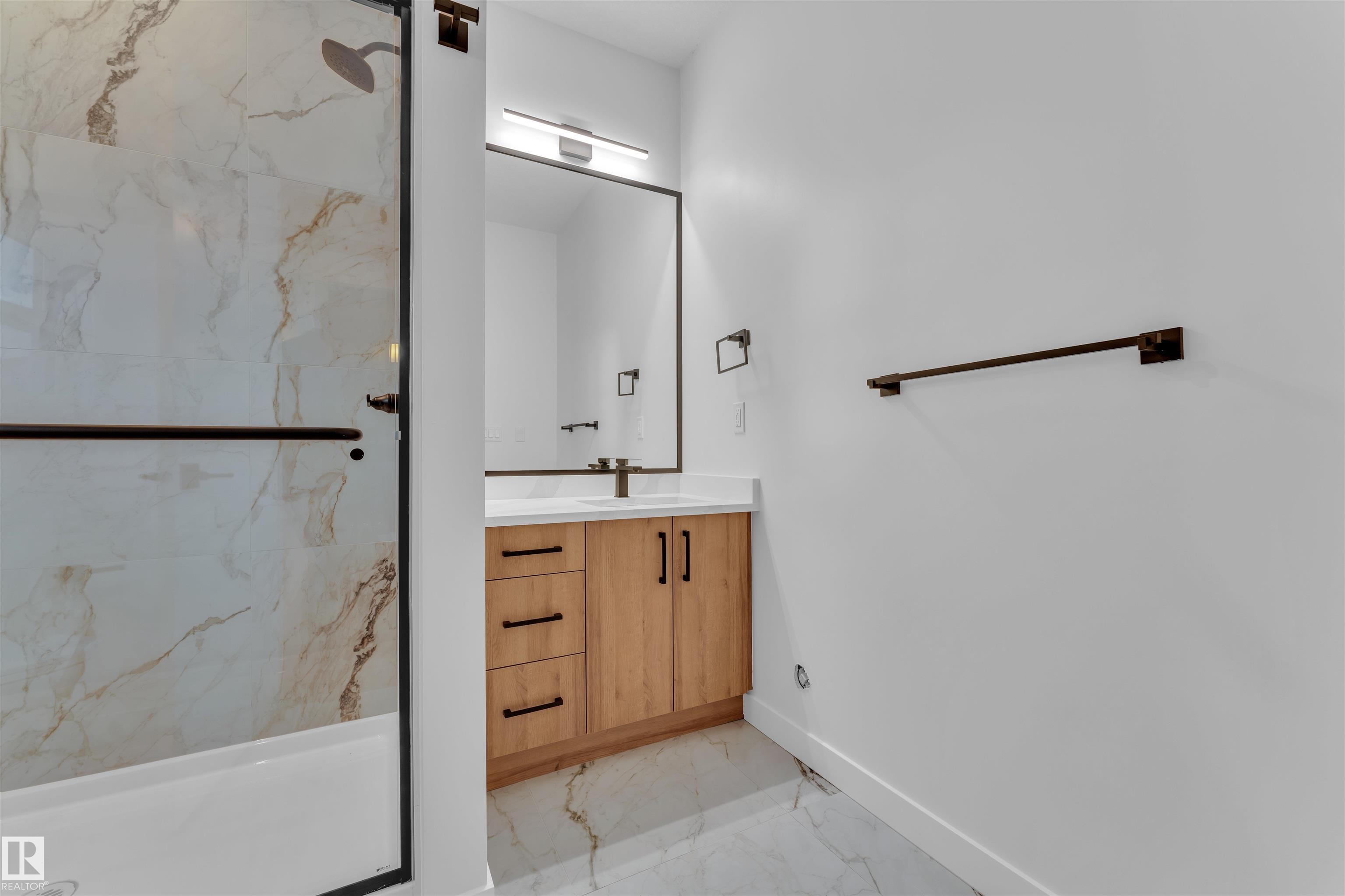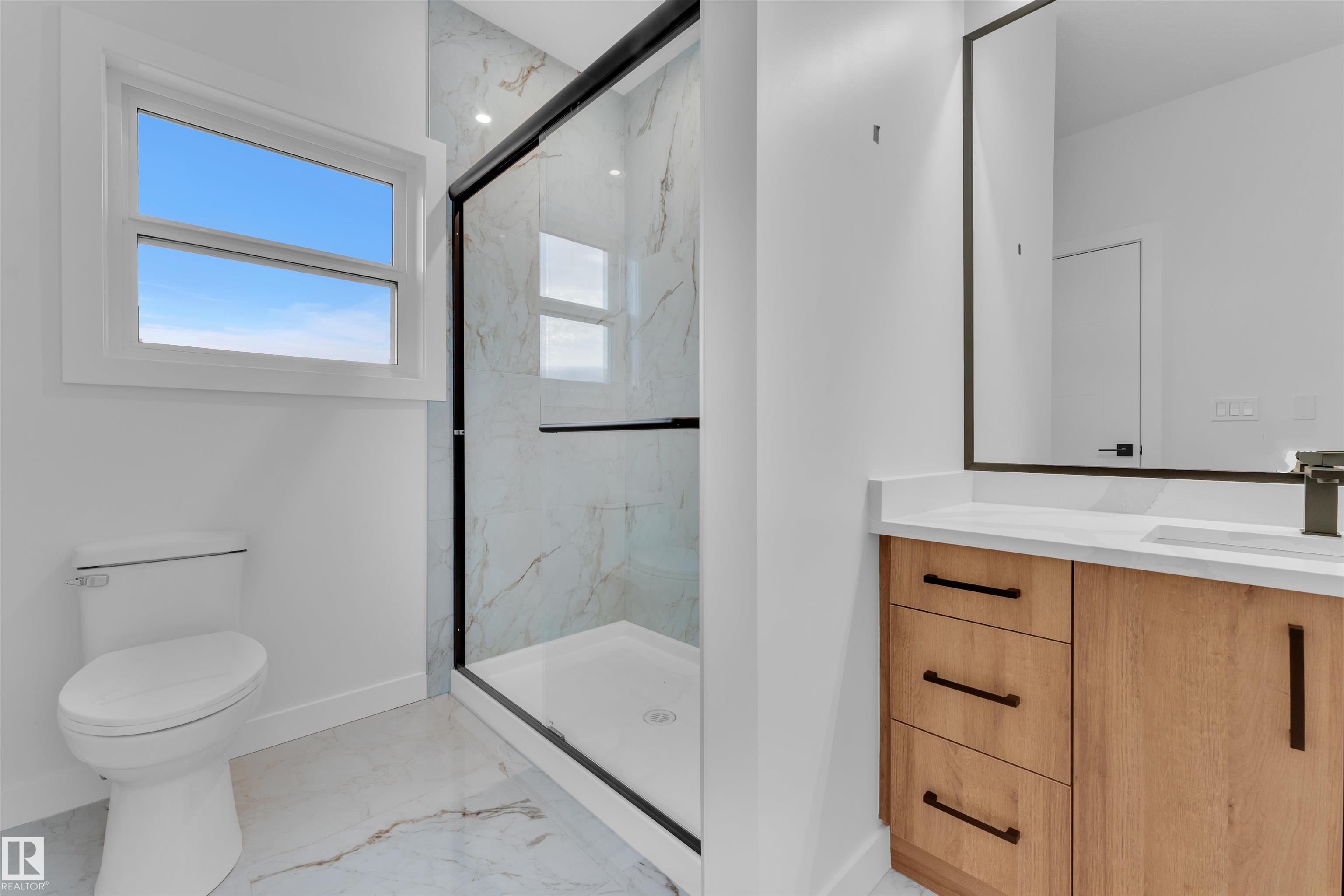 Welcome to this beautifully upgraded half duplex on a large pie-shaped lot in the heart of Hilldowns. Offering approximately 1,730 sq. ft. of modern and functional living space, this home features an open-to-below living room, a stylish kitchen with center island, a spacious dining area, and a mudroom with access to the double attached garage. The main floor also includes a bedroom/den and a full bath, perfect for guests or multi-generational living.Upstairs, you'll find 3 bedrooms, including a spacious primary suite with walk-in closet and private ensuite, plus a bonus room and convenient upper-floor laundry. Additional highlights include a separate side entrance and two large basement windows, ideal for future suite potential. Located close to schools, parks, trails, shopping, and the transit centre, with easy access to Highway 16A, this home is perfect for families, investors, or first-time buyers alike.