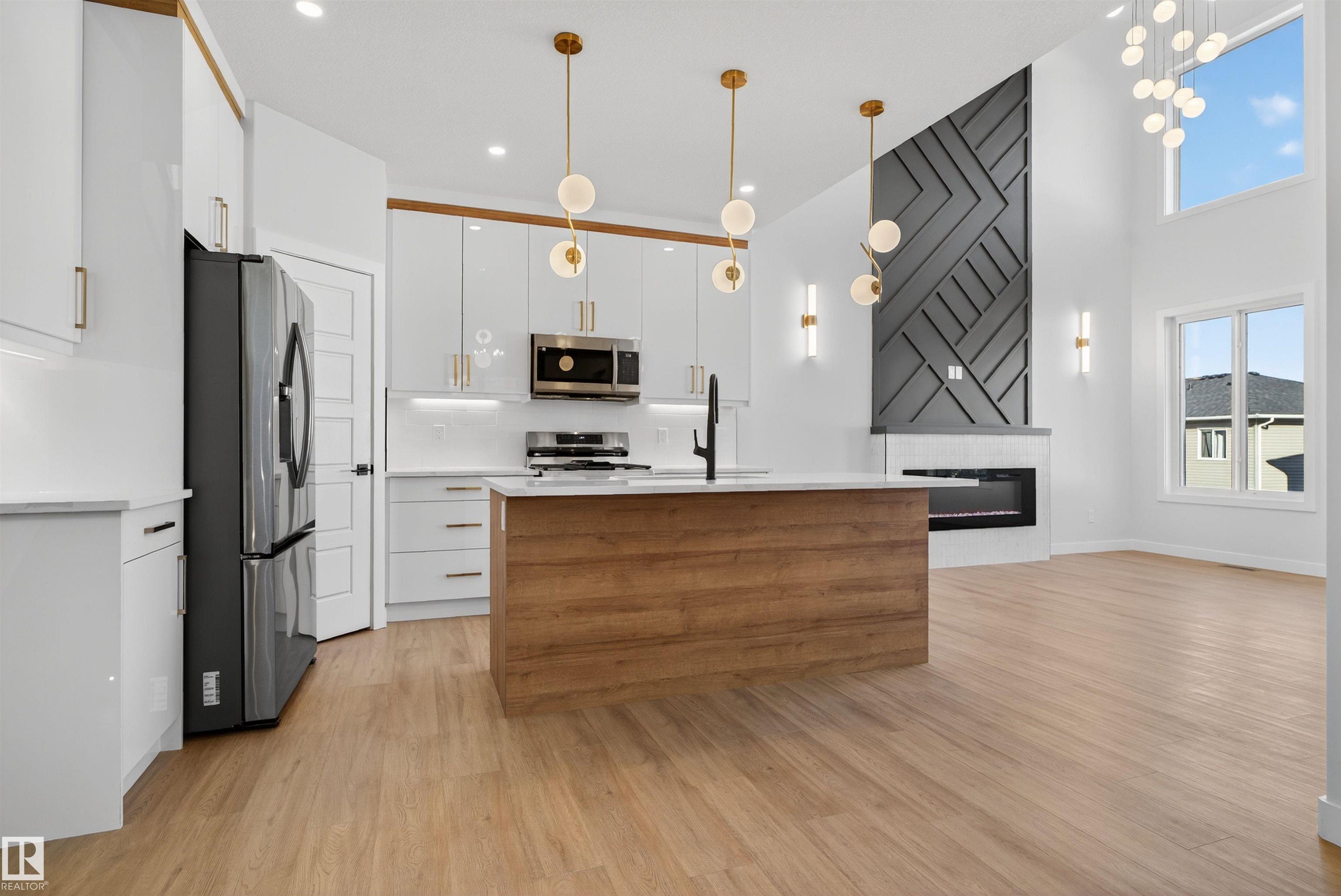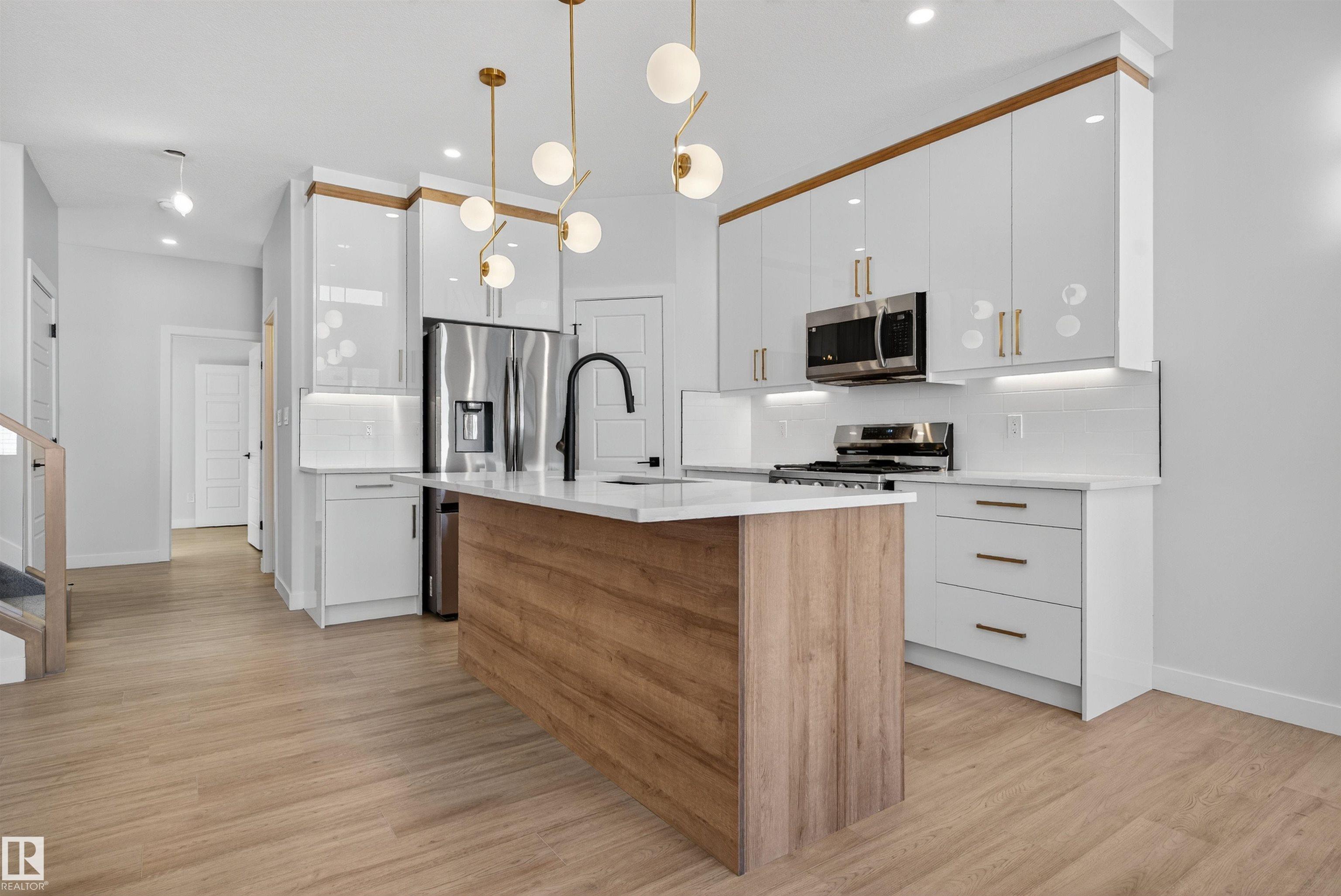 RARE FIND! This half duplex with dbl attached garage offers the space and feel of a detached single-family home. Built by Sunnyview Homes- Only two of its kind in the area. The main floor features a bedroom and a full bath. The open to below living room boasts an electric fireplace with feature wall. The upgraded kitchen with a central island, quartz countertops, 2-toned ceiling-height cabinetry with built in organizers, water line to the refrigerator, a gas line to the stove and a corner WI pantry and a good sized dining area. Going upstairs you'll find glass railing with maple handrail and step lighting, a bonus room, WI laundry room with sink. The primary bedroom features a WIC, coffered ceiling, accent wall, a luxurious 5-pc ensuite including a 6-jet Jacuzzi tub. This level has 2 additional good sized bedrooms sharing a 4 piece bathroom. Situated on a generous lot, this home offers a SEPARATE SIDE entrance to the bsmt. The garage is equipped with a gas line and floor drain. All Appliances included!