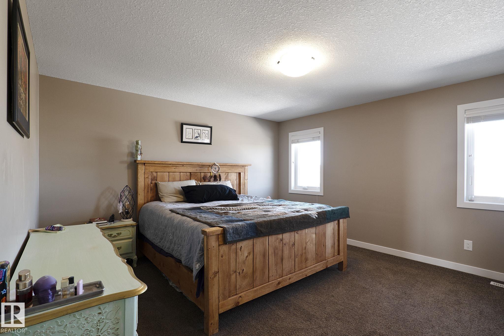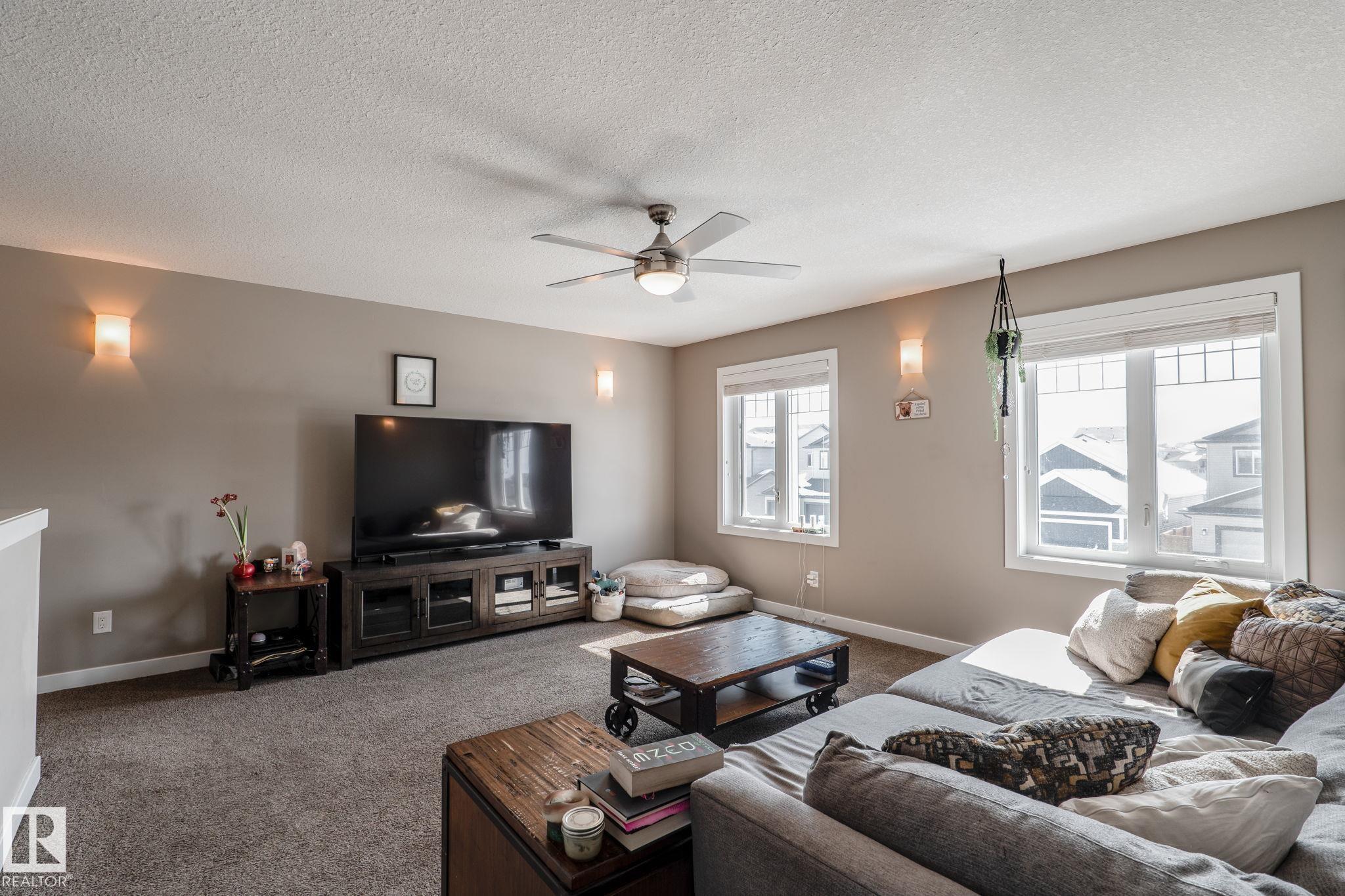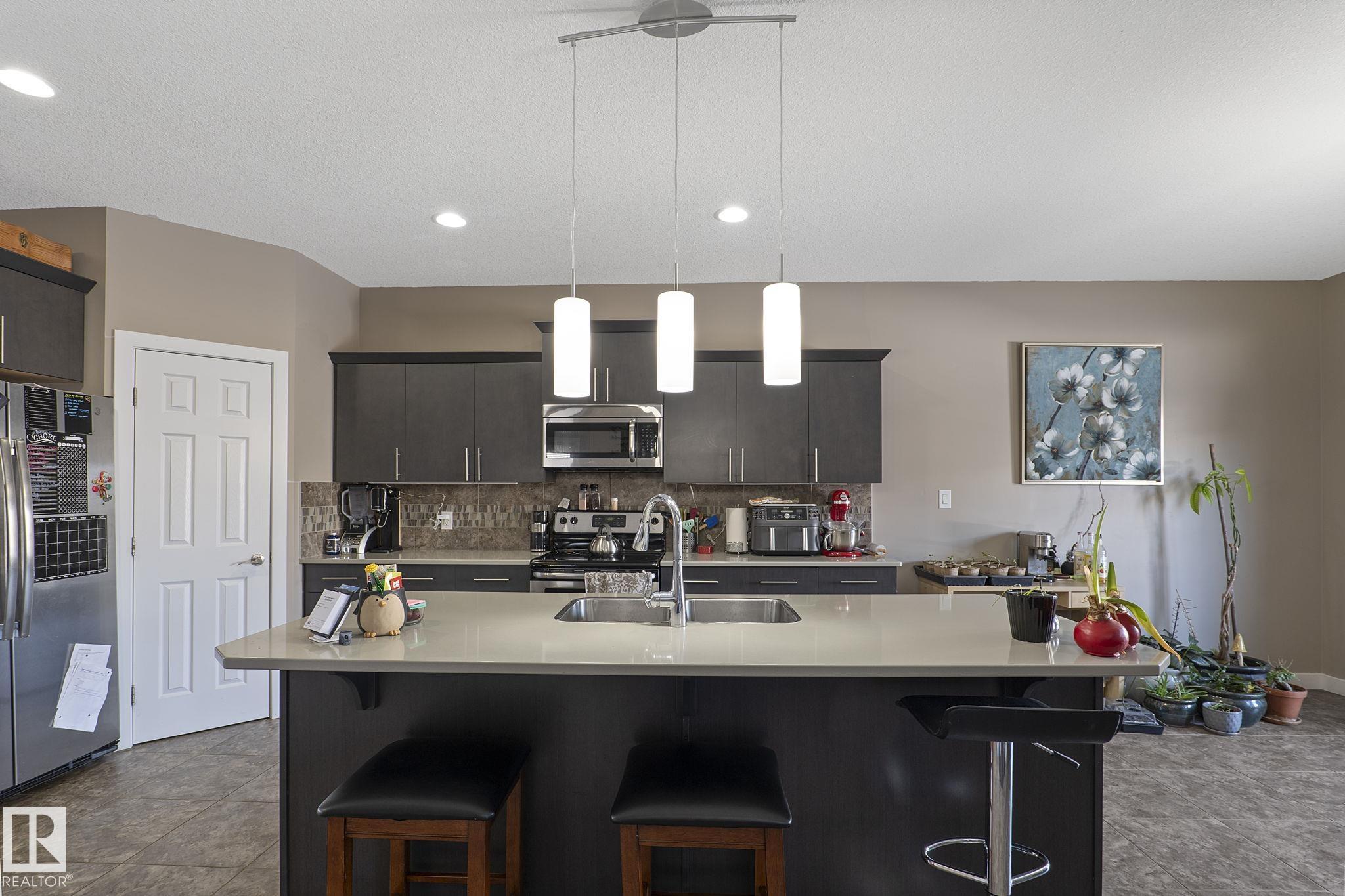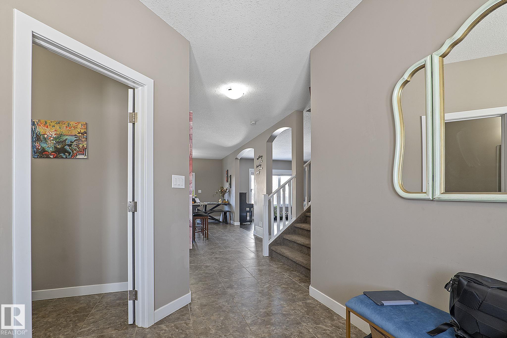 Welcome to this well cared for 4 bedroom, 2 story home in Hilldowns with central A/C! The large foyer and convenient 2 pc bath leads to the open concept main floor. Massive kitchen/dining area with dark wood cabinets, 2 toned island, walk-in pantry, stainless steel appliances and quartz countertops. The main floor also features a spacious living room with gas fireplace and the mudroom off the garage. Upstairs includes a second bright and spacious family room, 2 Bedrooms, 4 Piece bathroom along with huge primary bedroom, 4 Piece en-suite with soaker tub, stand up shower and his a hers walk-in closets. A nice sized laundry room completes this 2nd level. Downstairs has a den/flex room, spacious bedroom and family room. Other features include an over sized double car garage and wood deck with gas hookup for BBQ over looking the large backyard. All of the pilings are in place for a hottub off of the deck. Walking distance to schools, shopping, & The Links Golf Course, this 2-story is sure to impress! Act Fast!