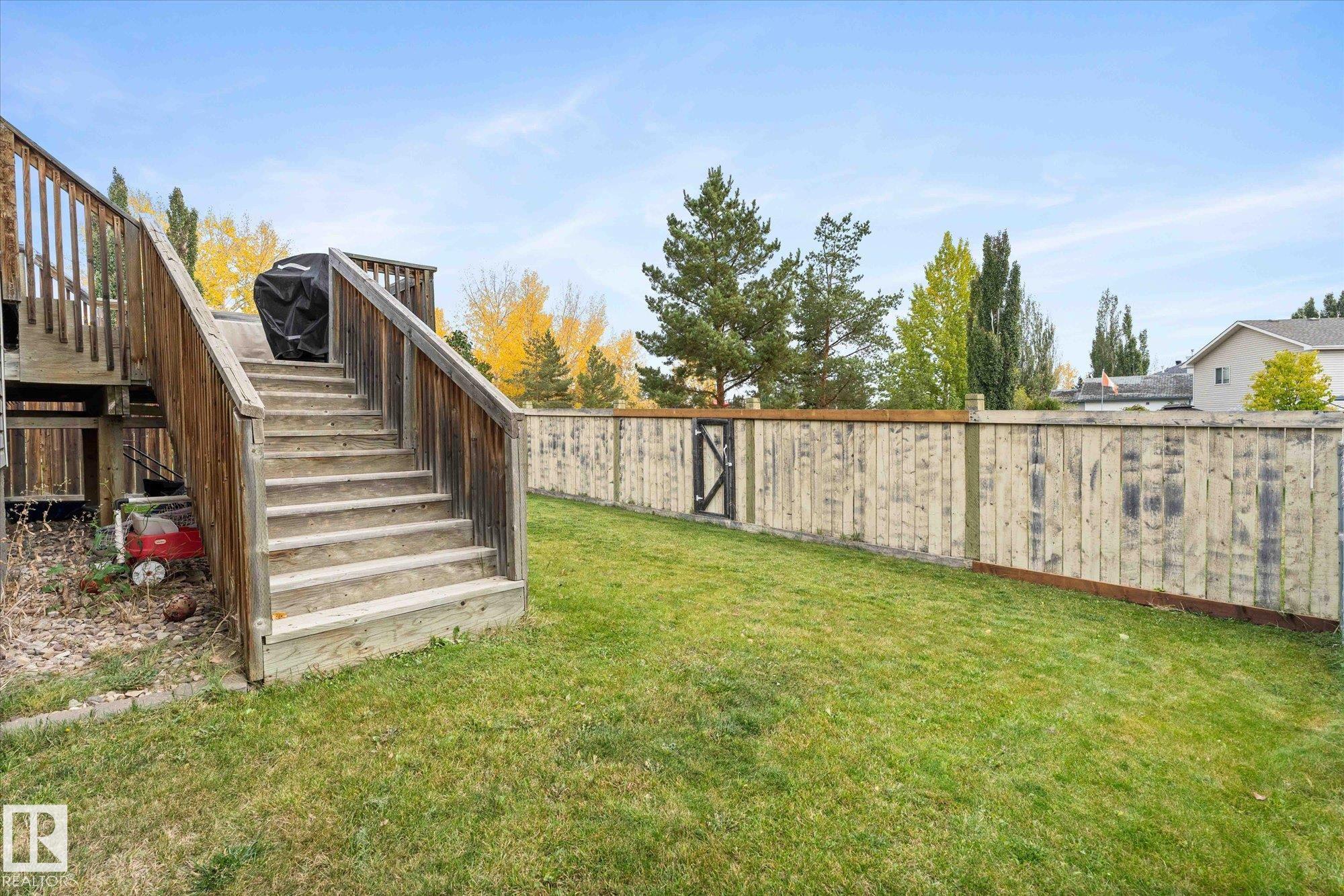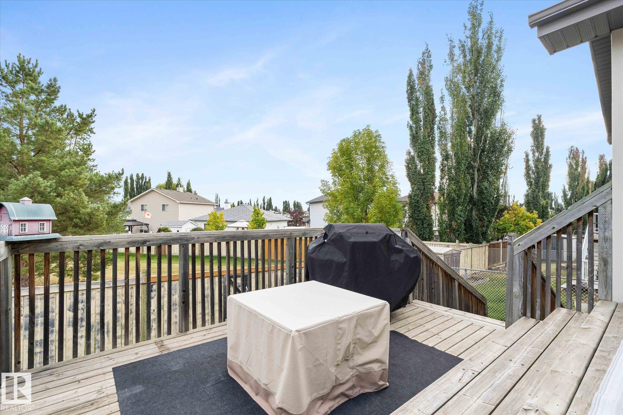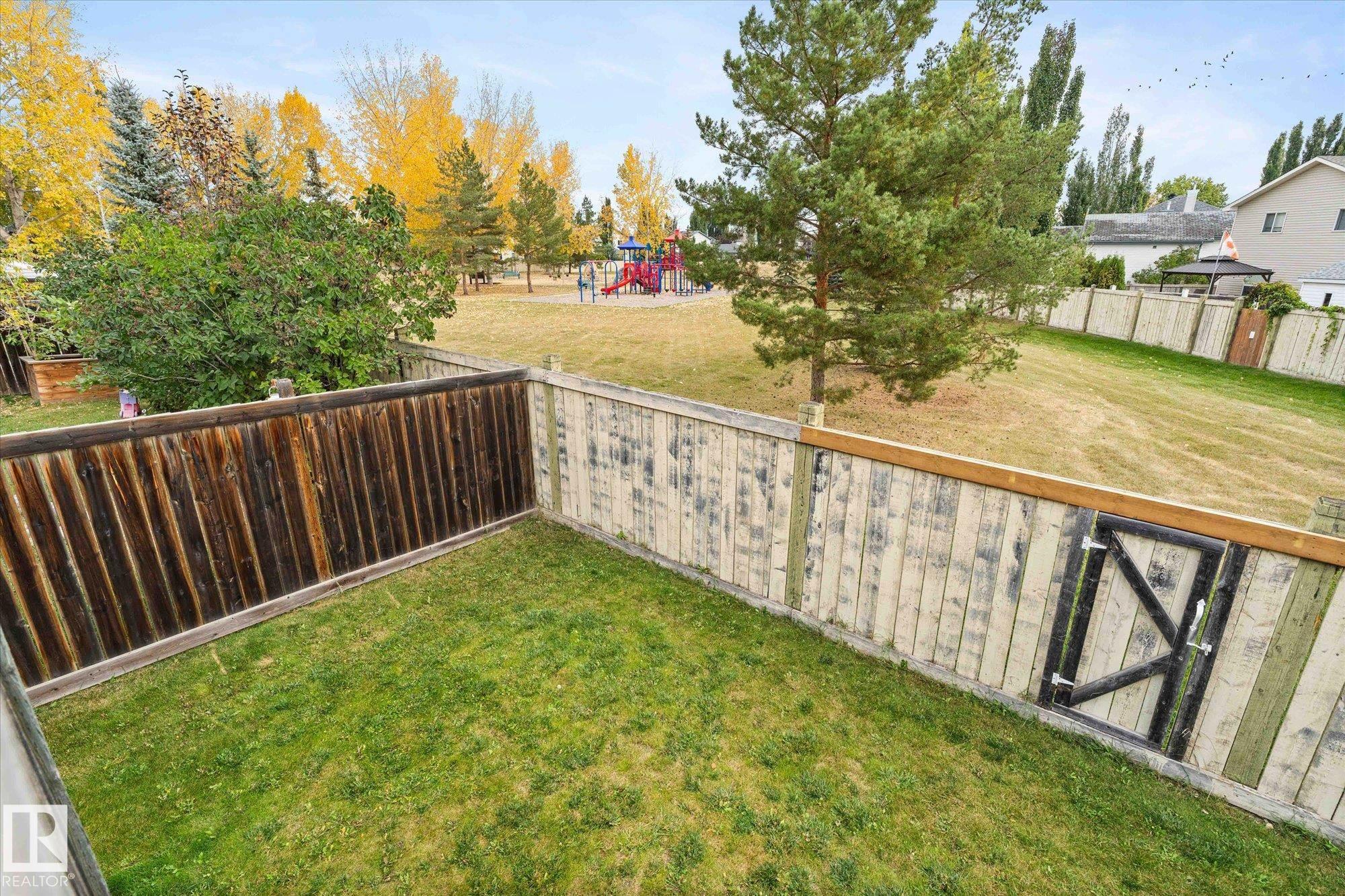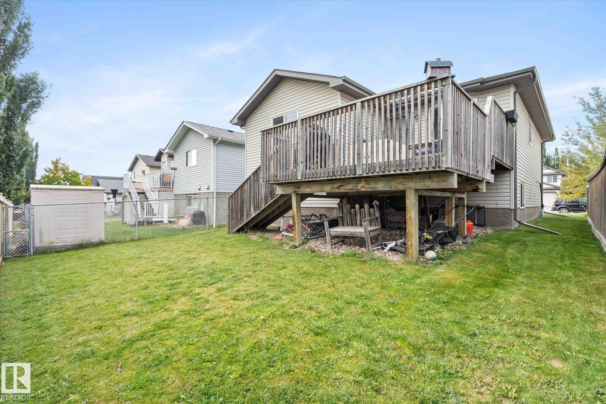 Welcome to this spacious 5-bedroom, 3-bathroom home in the desirable Lakewood community of Spruce Grove. Backing onto a green space with a park, this home offers privacy and great views. The main floor features vaulted ceilings, a bright living room, a roomy kitchen, and a dining area with a large bay window overlooking the park. The primary bedroom includes a walk-in closet and a 4-piece ensuite, with two more bedrooms and a full bath completing the main level. The fully finished lower level offers large windows, a generous family room, two additional bedrooms, a full bath with laundry, and plenty of storage. Enjoy outdoor living on the large two-tiered deck and a backyard that opens directly to green space. Double attached garage. Close to schools, shopping, golf, and amenities, with easy access to the city while maintaining a quiet suburban feel.