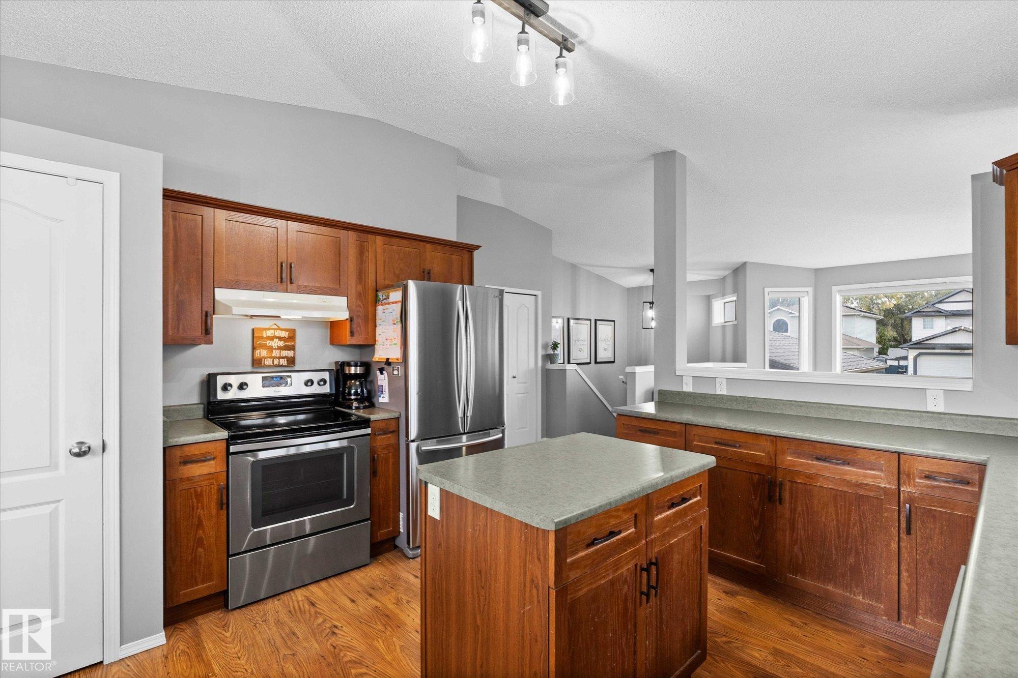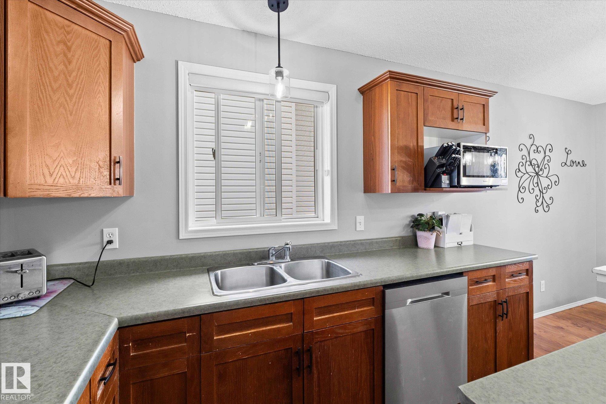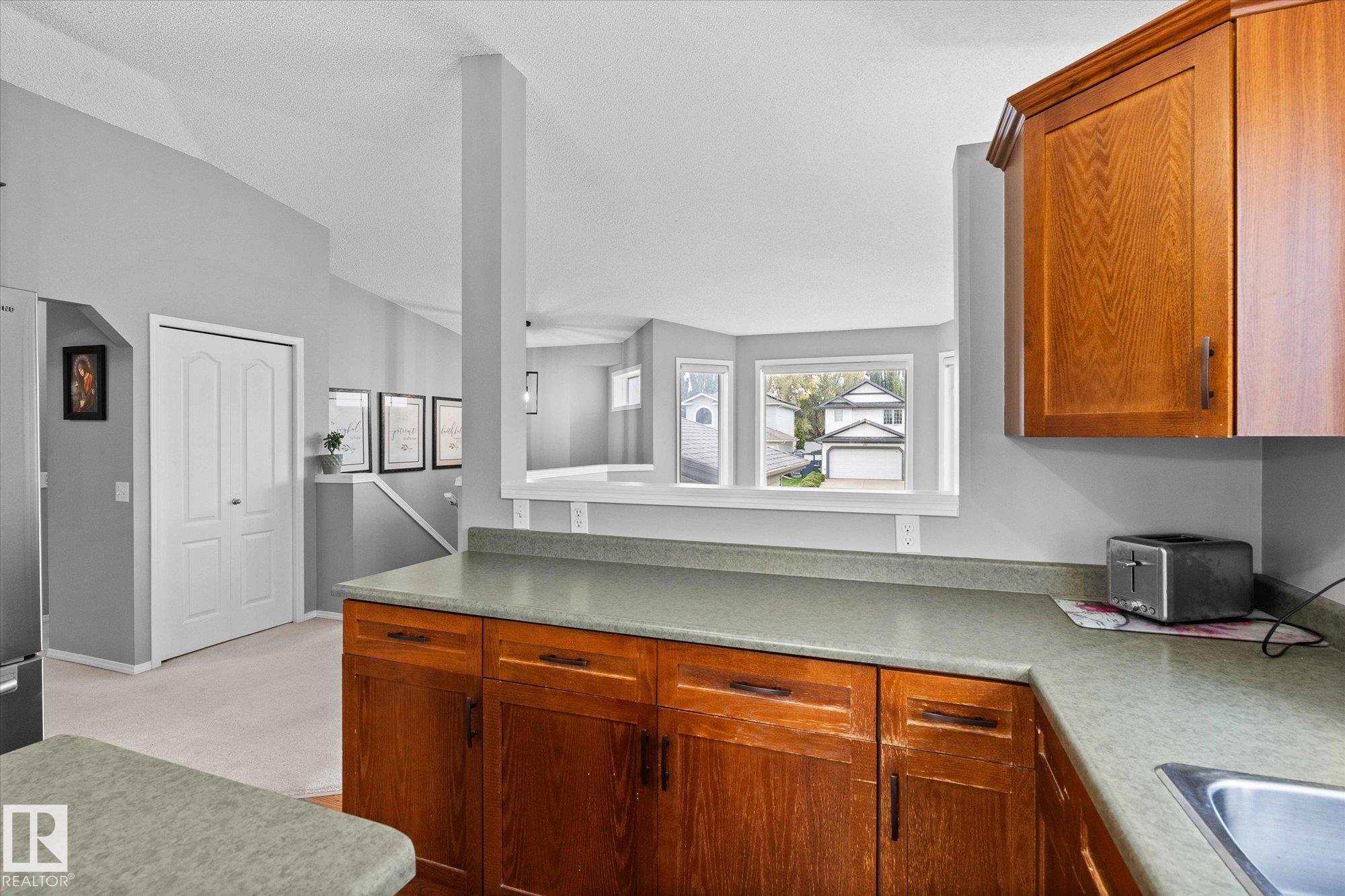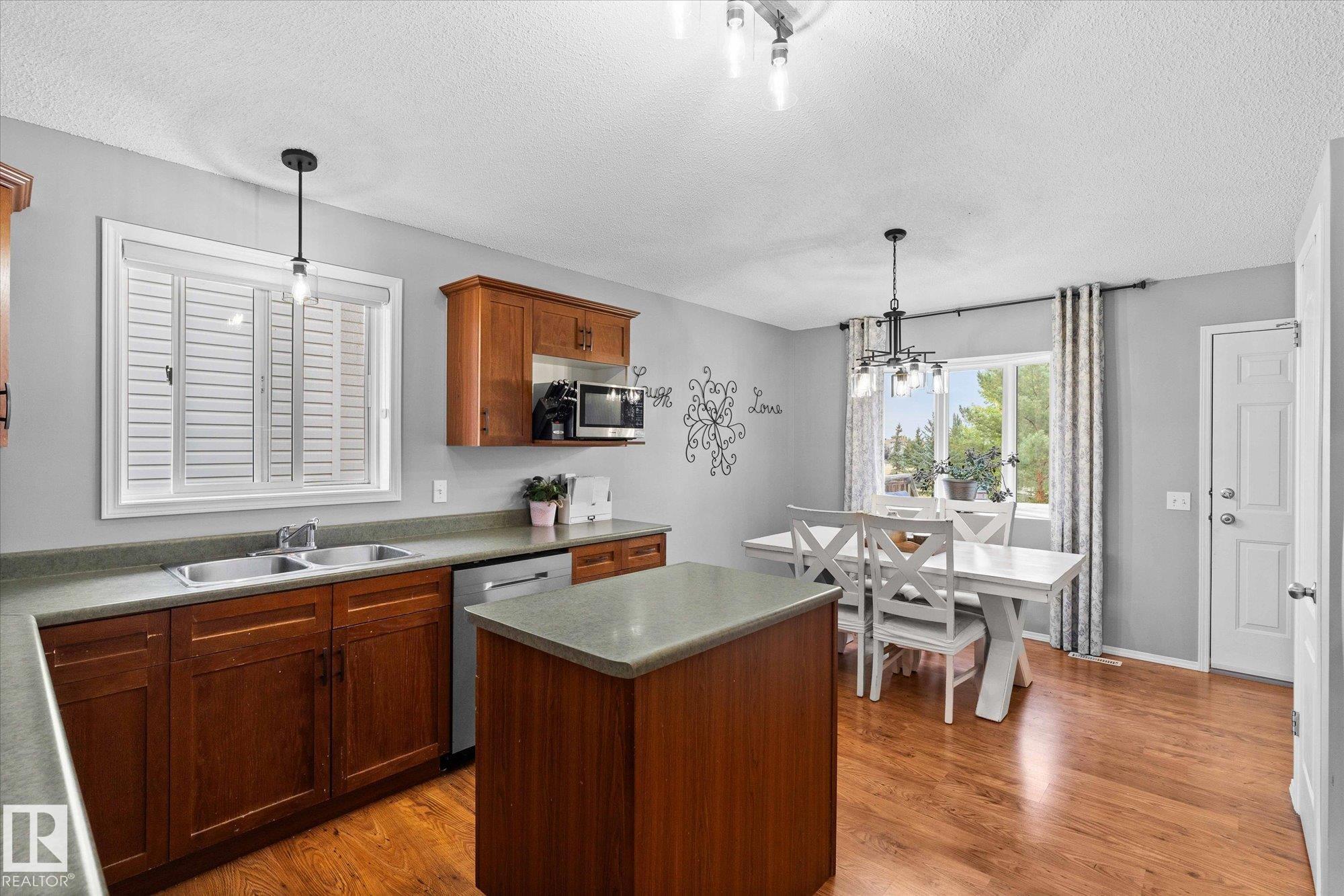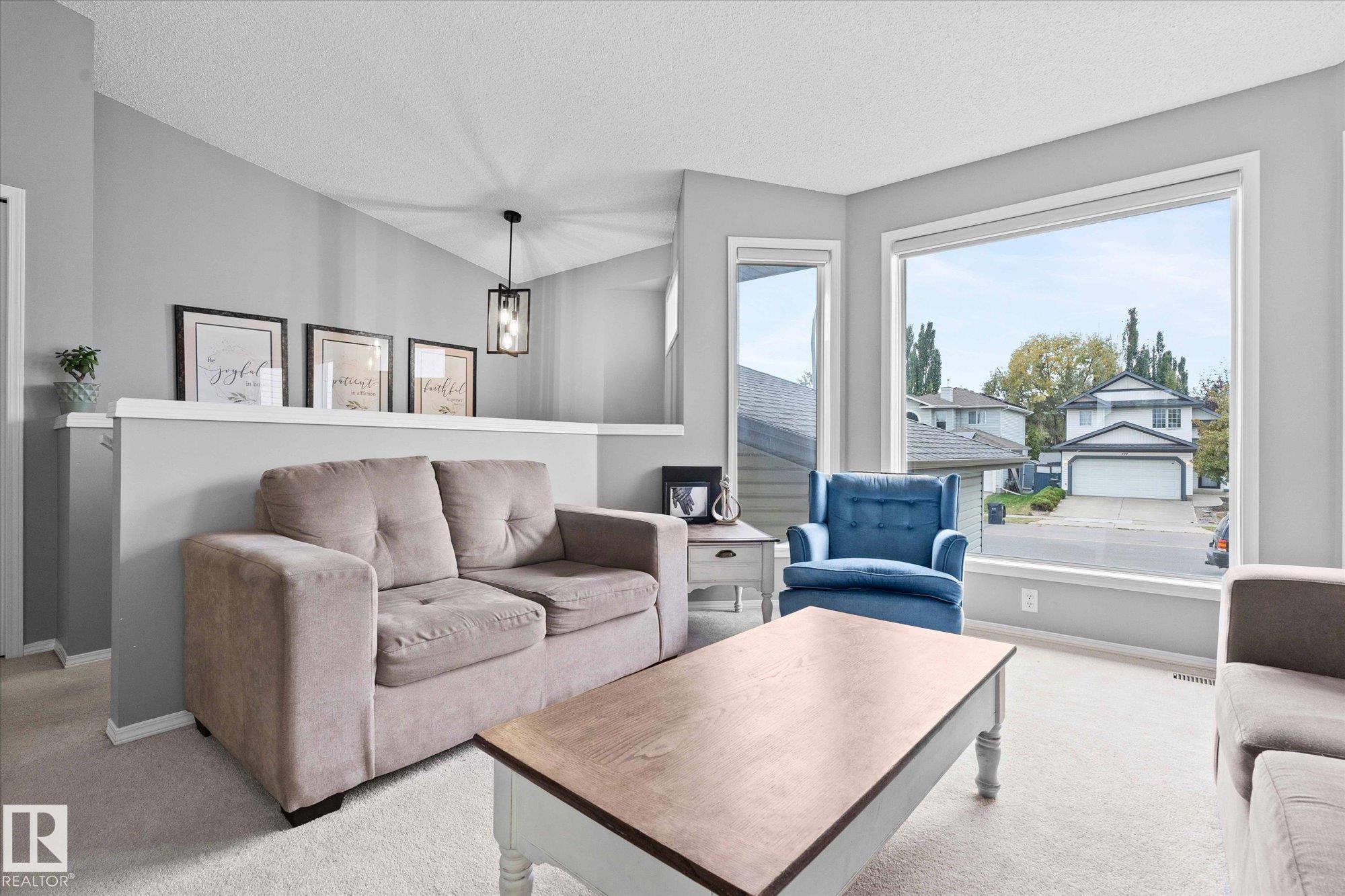 Welcome to this spacious 5-bedroom, 3-bathroom home in the desirable Lakewood community of Spruce Grove. Backing onto a green space with a park, this home offers privacy and great views. The main floor features vaulted ceilings, a bright living room, a roomy kitchen, and a dining area with a large bay window overlooking the park. The primary bedroom includes a walk-in closet and a 4-piece ensuite, with two more bedrooms and a full bath completing the main level. The fully finished lower level offers large windows, a generous family room, two additional bedrooms, a full bath with laundry, and plenty of storage. Enjoy outdoor living on the large two-tiered deck and a backyard that opens directly to green space. Double attached garage. Close to schools, shopping, golf, and amenities, with easy access to the city while maintaining a quiet suburban feel.