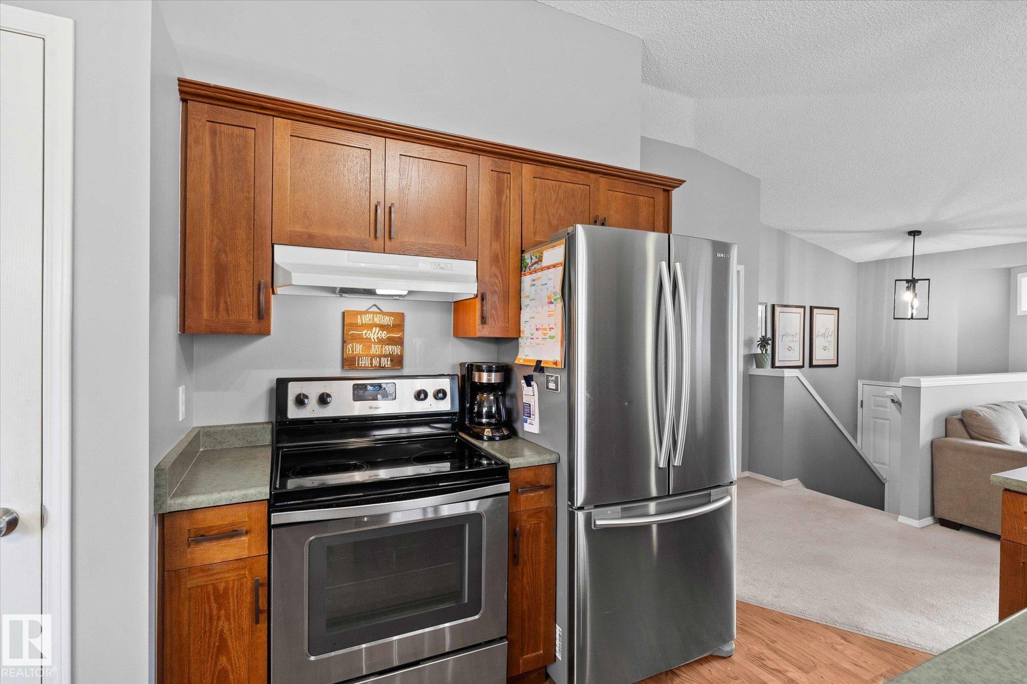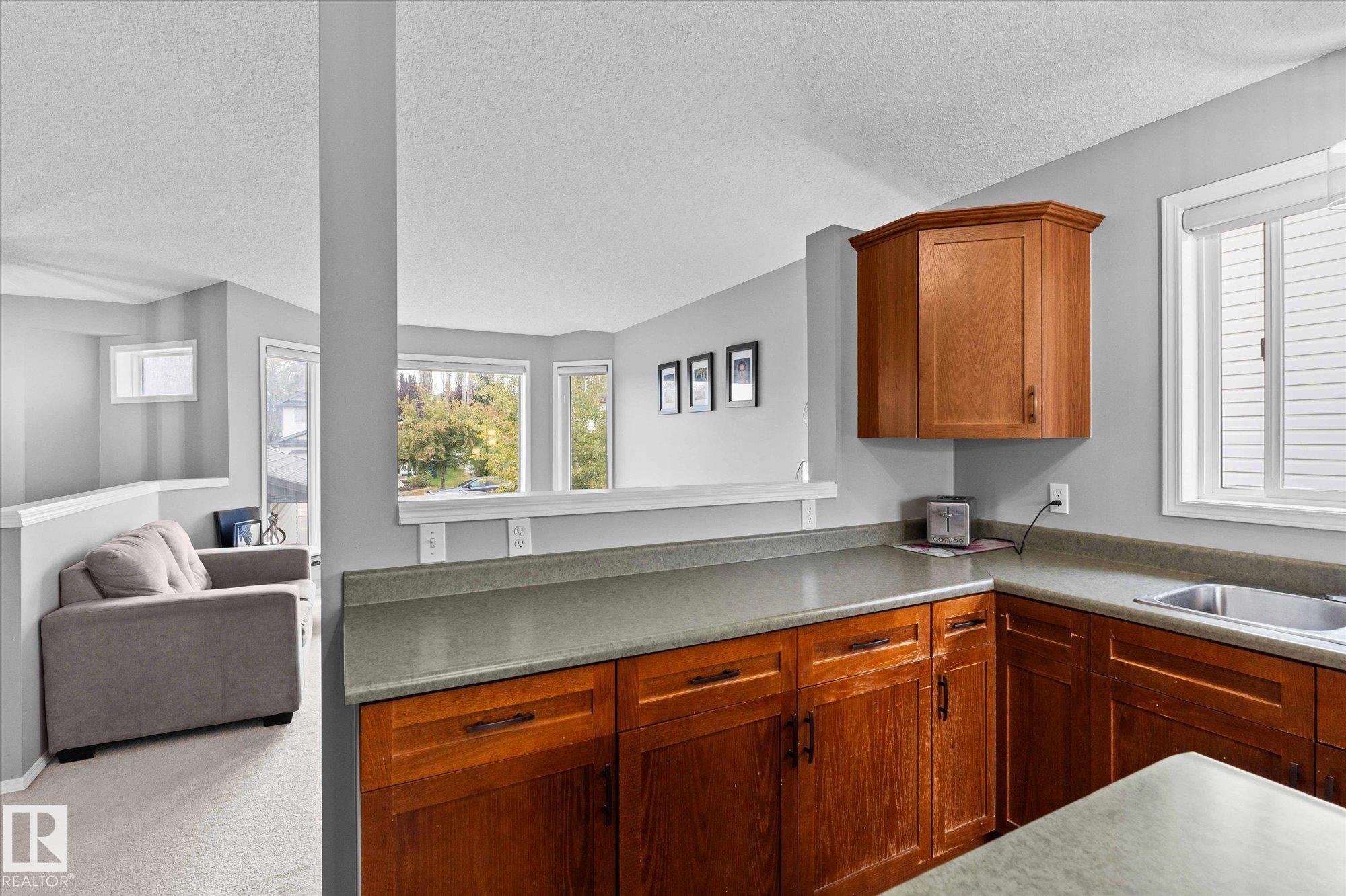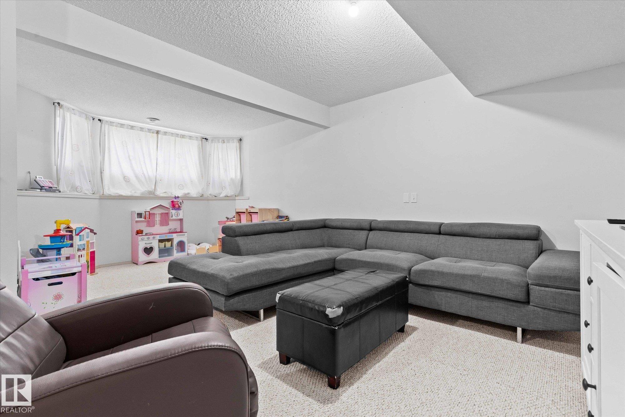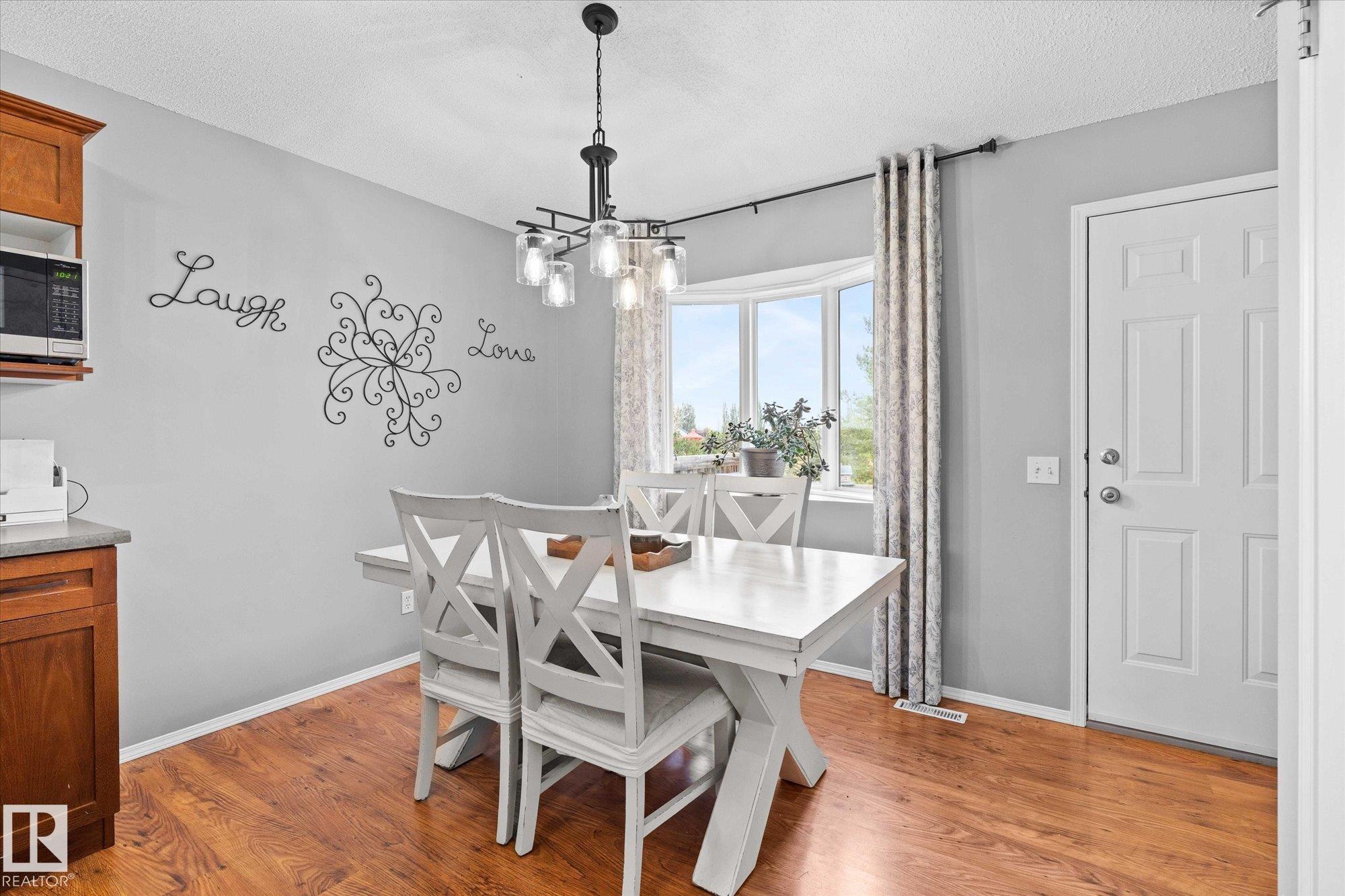 Welcome to this spacious 5-bedroom, 3-bathroom home in the desirable Lakewood community of Spruce Grove. Backing onto a green space with a park, this home offers privacy and great views. The main floor features vaulted ceilings, a bright living room, a roomy kitchen, and a dining area with a large bay window overlooking the park. The primary bedroom includes a walk-in closet and a 4-piece ensuite, with two more bedrooms and a full bath completing the main level. The fully finished lower level offers large windows, a generous family room, two additional bedrooms, a full bath with laundry, and plenty of storage. Enjoy outdoor living on the large two-tiered deck and a backyard that opens directly to green space. Double attached garage. Close to schools, shopping, golf, and amenities, with easy access to the city while maintaining a quiet suburban feel.