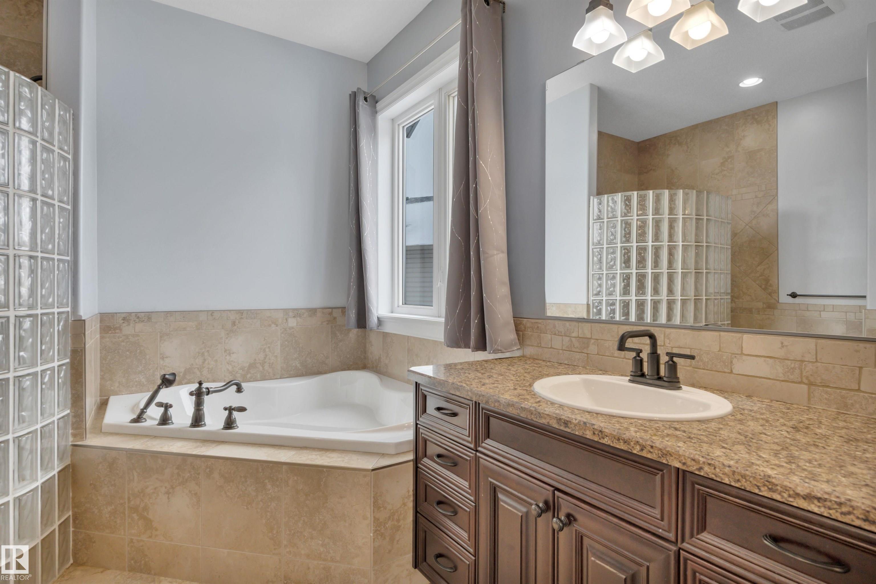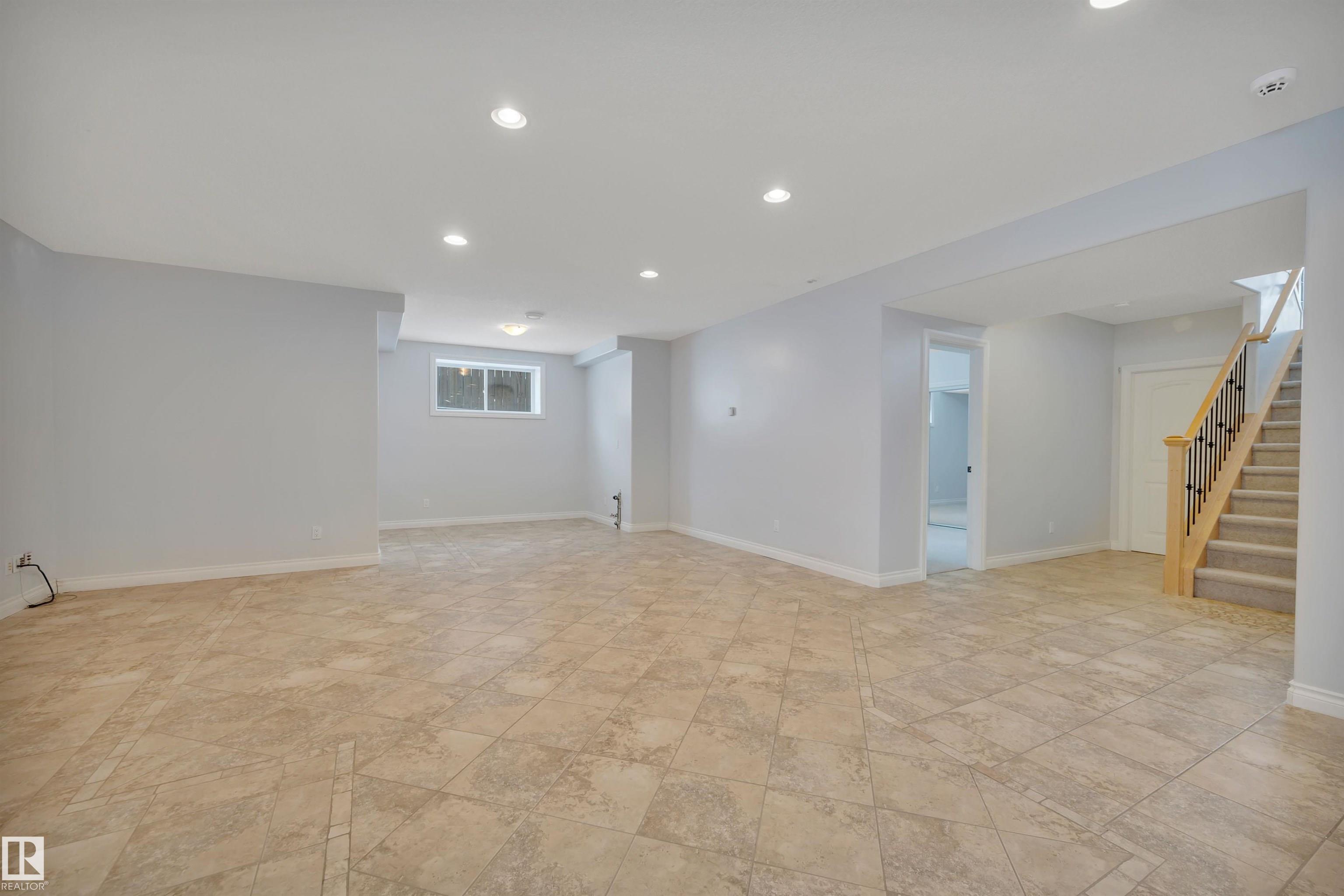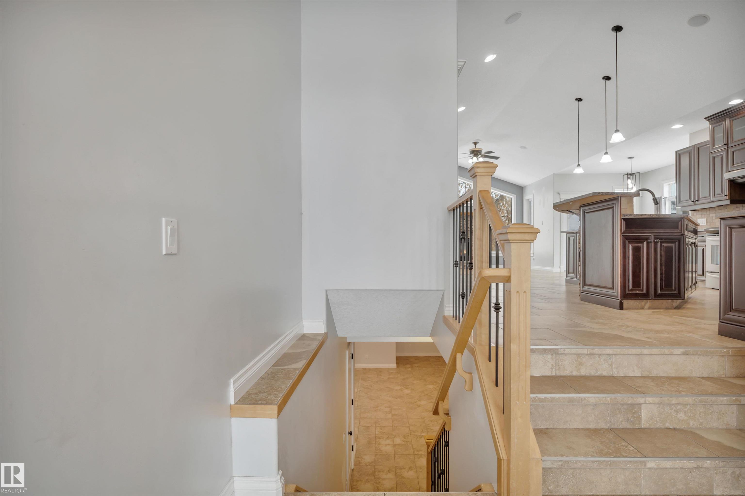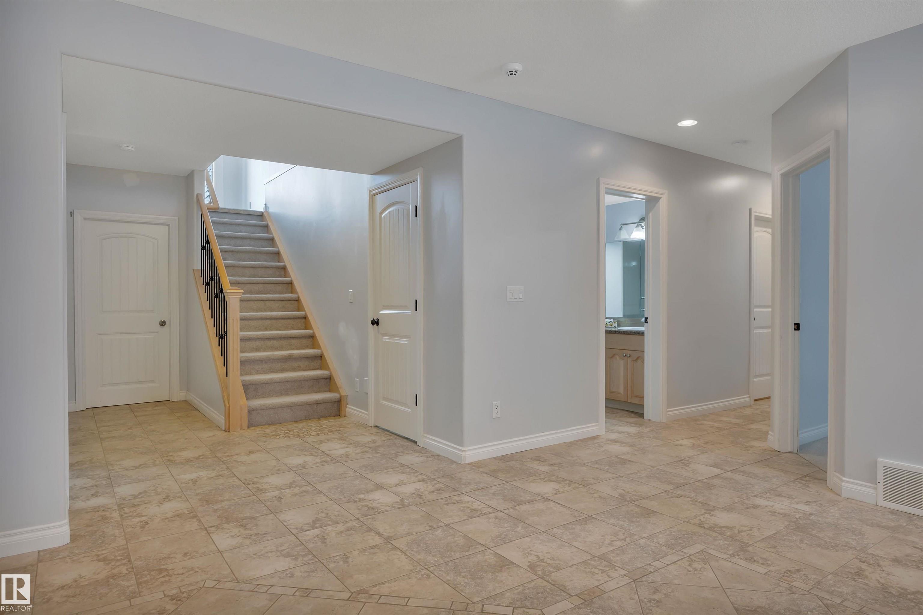 Welcome to a home that truly has room for everyone. Offering over 3,000 sq ft of living space, this thoughtfully designed property blends comfort, functionality, and style. The open-concept kitchen, dining, and living area with vaulted ceiling creates the perfect hub for everyday life, enhanced by custom tile flooring and warm wood accents. The primary suite provides a peaceful retreat with a custom walk-in closet with laundry chute and a luxurious 4-piece ensuite featuring a soaker tub and walk-in shower. A second main floor bedroom adds flexibility for guests, The main floor den is perfect for working at home. The fully finished basement includes three spacious bedrooms, each with walk-in closets, plus a large recreation room with a wet bar rough-in. The in floor heating is perfect for keeping you warm all winter long. Enjoy the private backyard, along with practical features like a heated, insulated garage with overhead storage, large mudroom, and spacious laundry room. This home truly has it all
