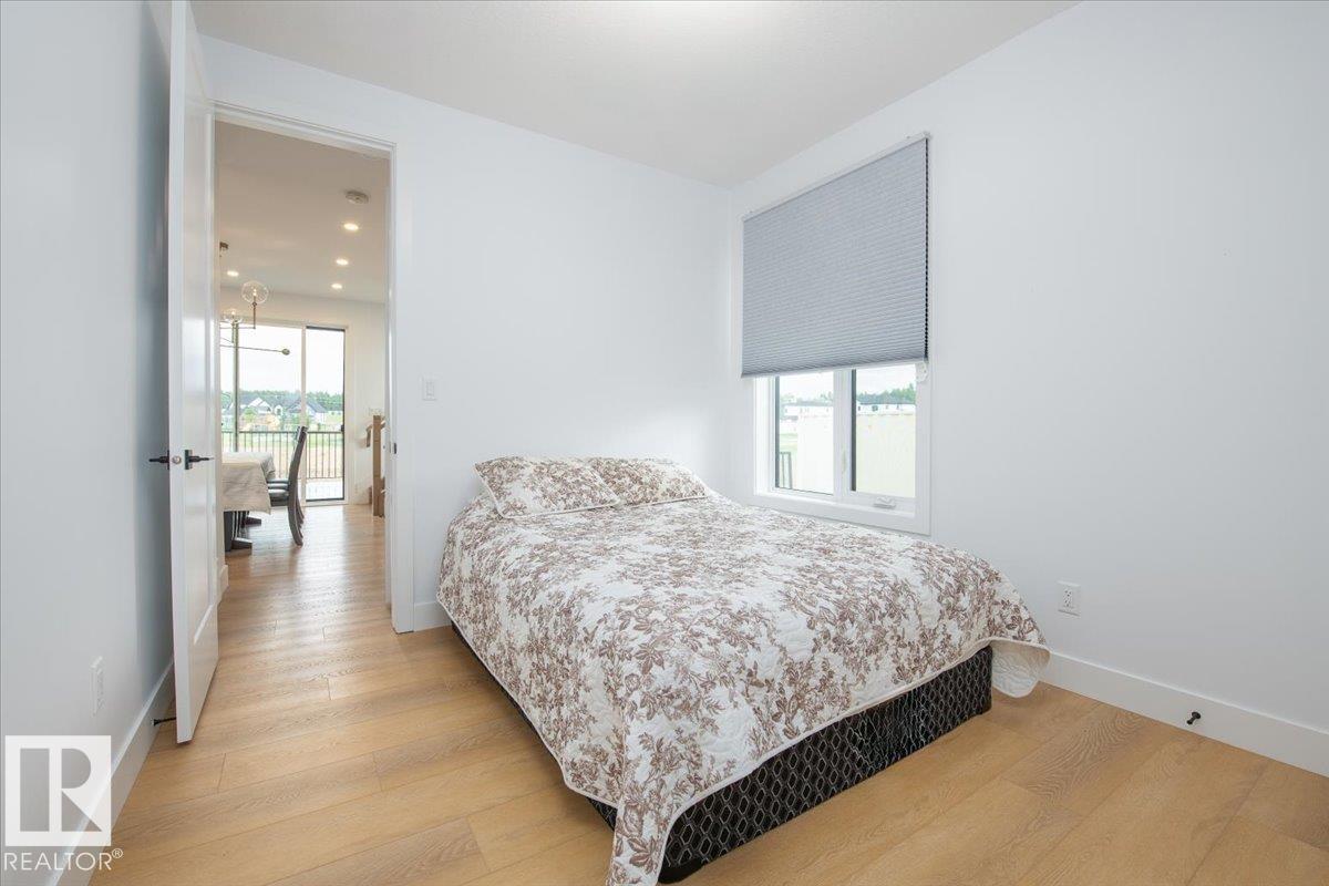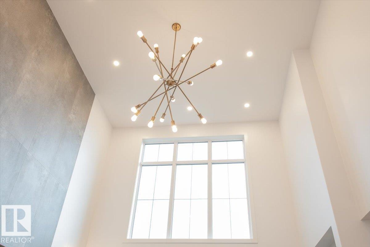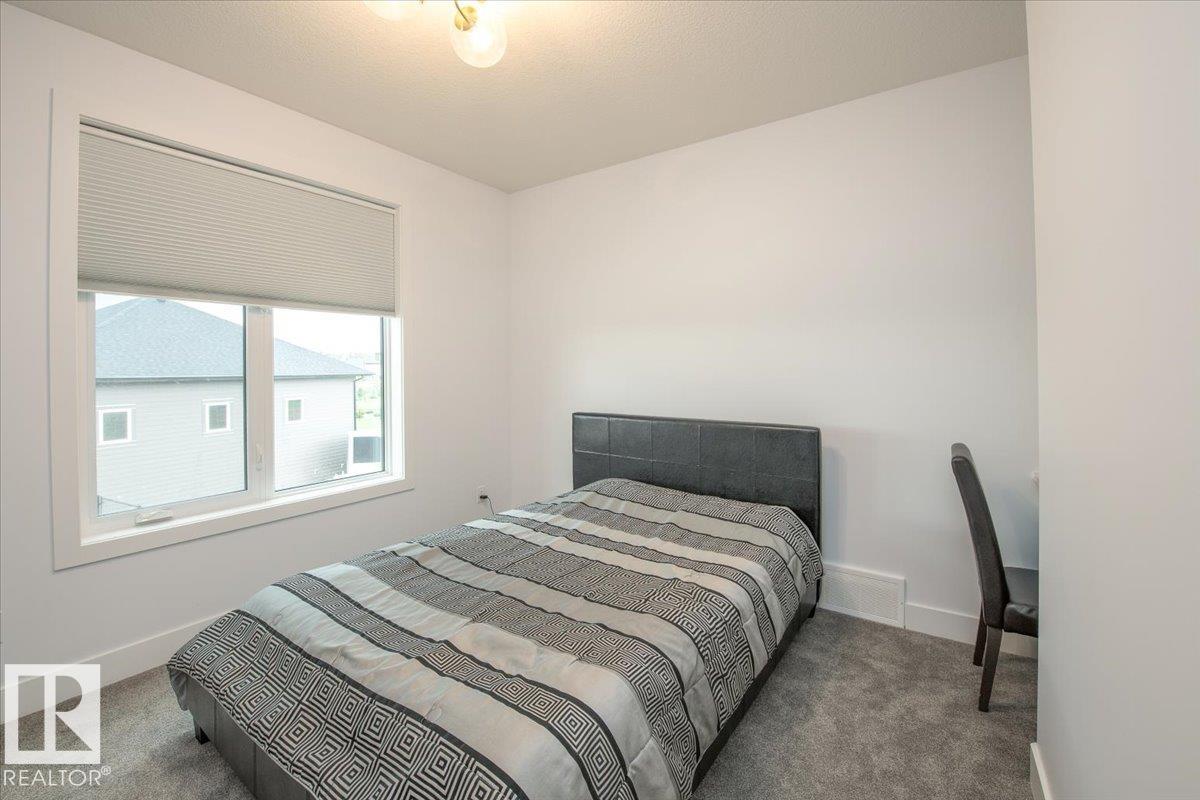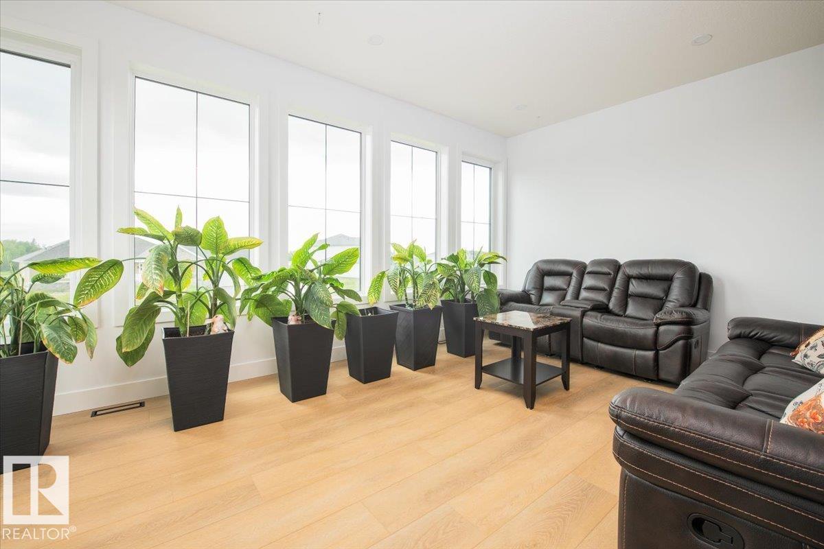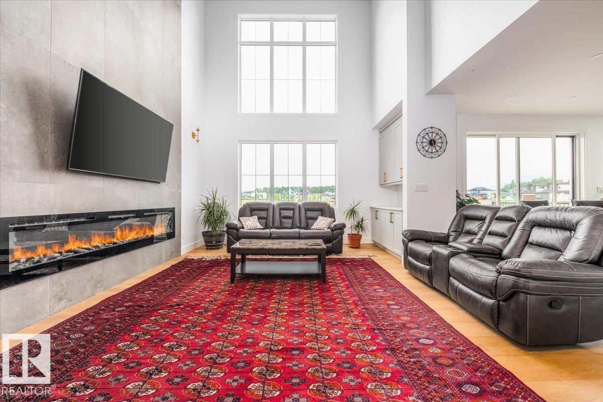 Experience luxury living in this stunning 2023 custom estate, just 15 minutes west of Edmonton. Designed to impress, this 6-bedroom, 4-bath home combines modern elegance with family-friendly comfort. The open-concept main floor boasts soaring 10-ft ceilings, luxury vinyl plank flooring, and a chef's dream kitchen with gas range, quartz counters, oversized island, and soft-close cabinetry--perfect for both everyday living and entertaining. A main-floor bedroom and full bath add convenience for guests or multigenerational living. Upstairs, the showstopping primary suite offers a spa-like ensuite with soaking tub, dual sinks, and a walk-in closet. A wet bar, flex room, laundry, and two more bedrooms complete the upper level. The fully finished basement features two additional bedrooms, a spacious rec room with wet bar, and another full bath. Enjoy summer evenings on the large deck with gas BBQ hookup. With a triple garage and extra parking, this home checks every box.
