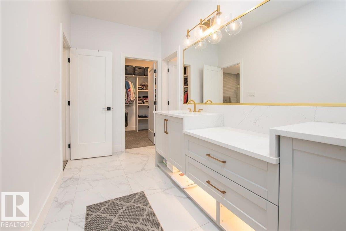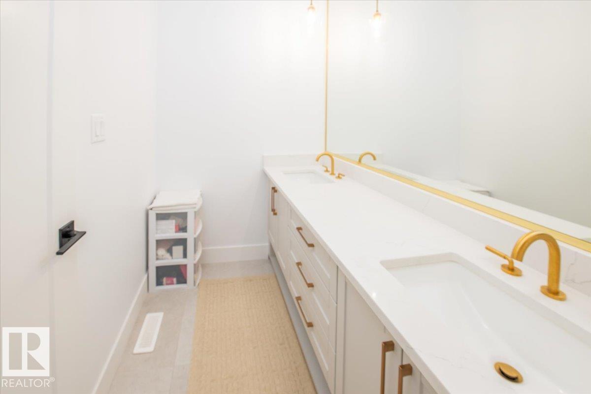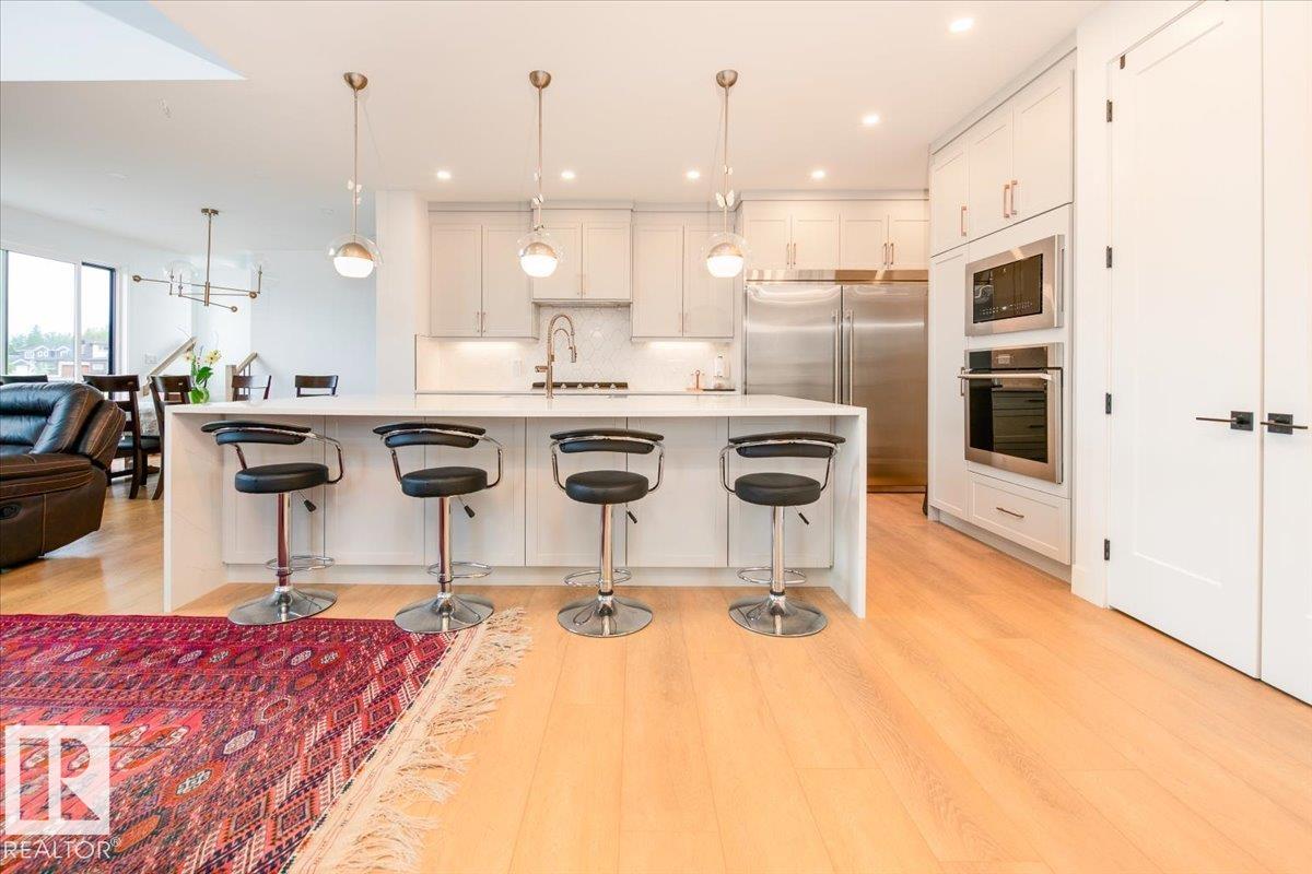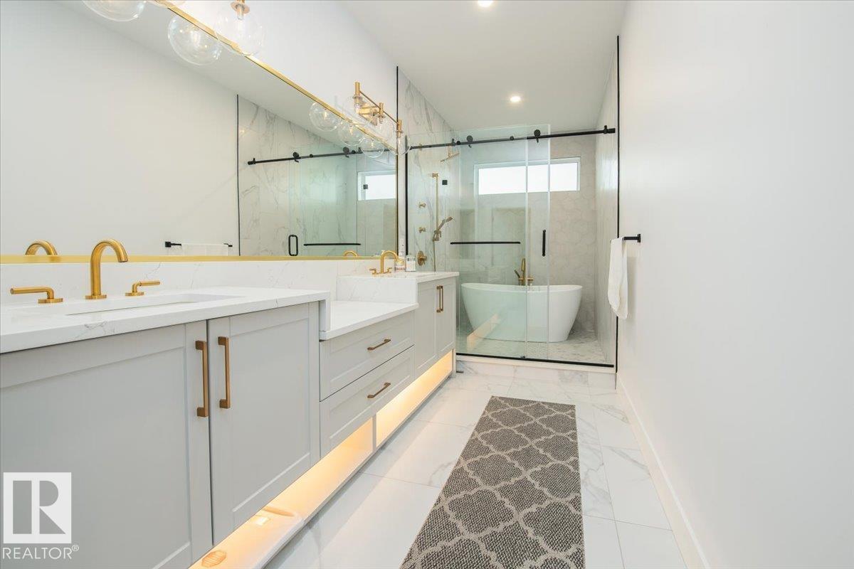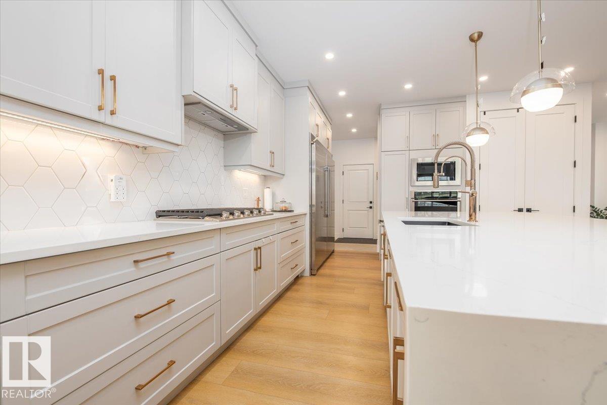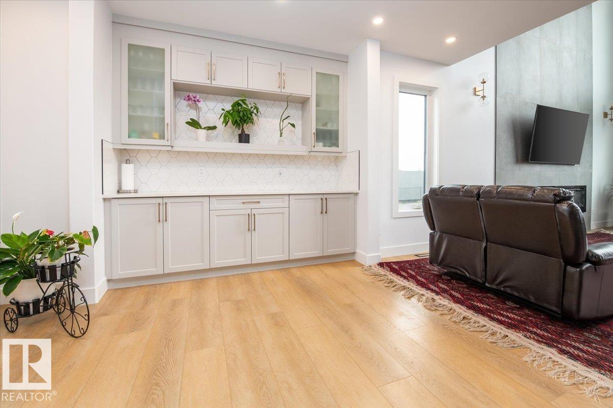 Experience luxury living in this stunning 2023 custom estate, just 15 minutes west of Edmonton. Designed to impress, this 6-bedroom, 4-bath home combines modern elegance with family-friendly comfort. The open-concept main floor boasts soaring 10-ft ceilings, luxury vinyl plank flooring, and a chef's dream kitchen with gas range, quartz counters, oversized island, and soft-close cabinetry--perfect for both everyday living and entertaining. A main-floor bedroom and full bath add convenience for guests or multigenerational living. Upstairs, the showstopping primary suite offers a spa-like ensuite with soaking tub, dual sinks, and a walk-in closet. A wet bar, flex room, laundry, and two more bedrooms complete the upper level. The fully finished basement features two additional bedrooms, a spacious rec room with wet bar, and another full bath. Enjoy summer evenings on the large deck with gas BBQ hookup. With a triple garage and extra parking, this home checks every box.