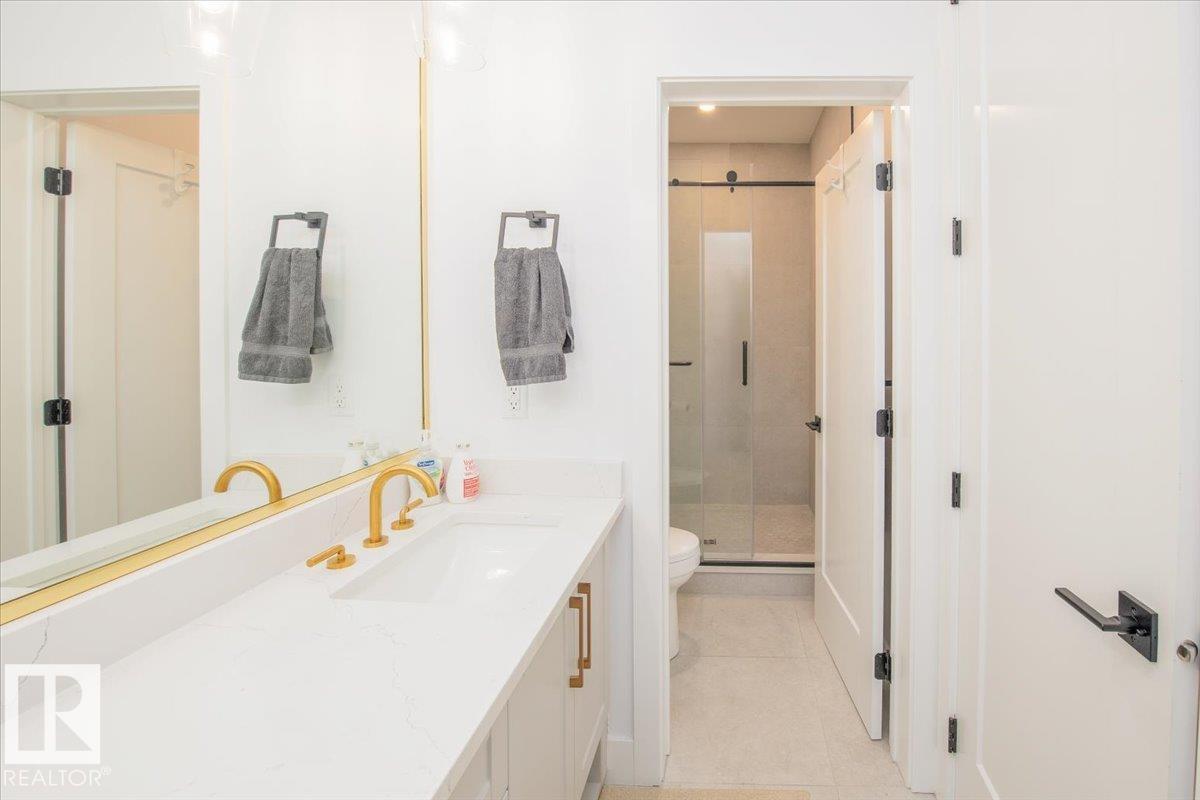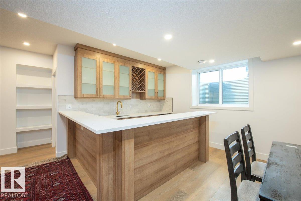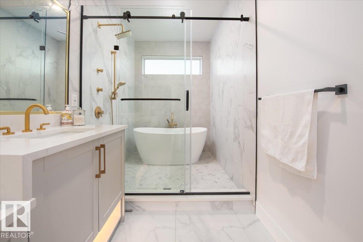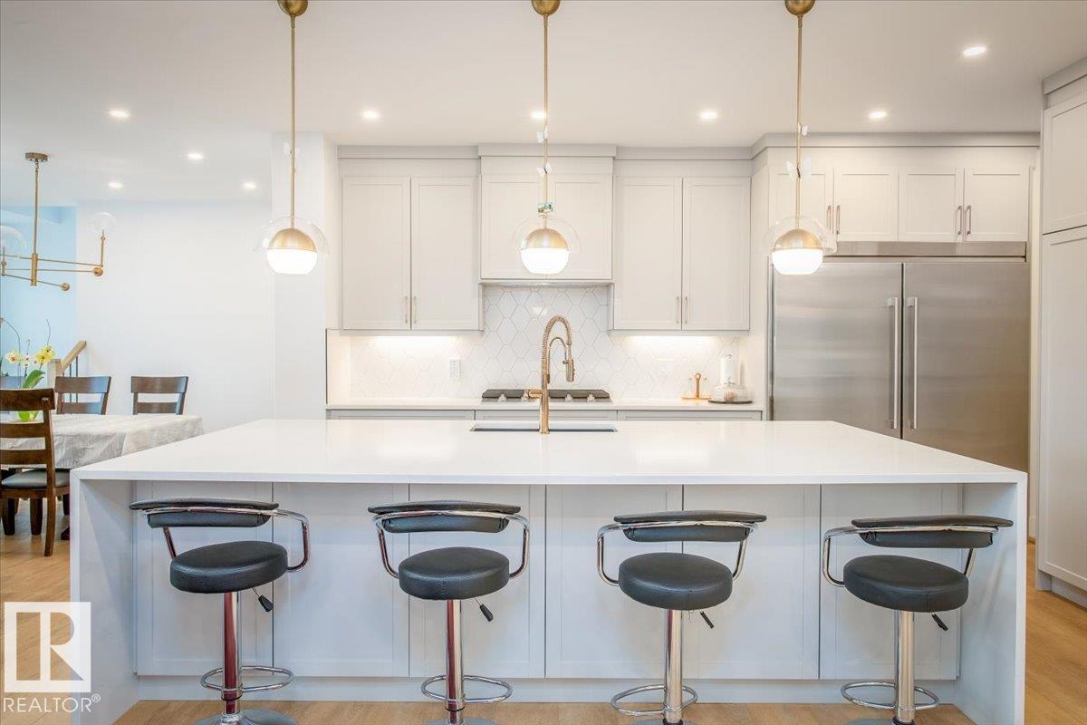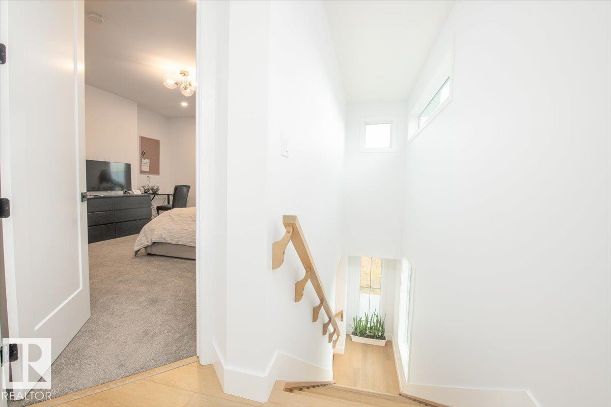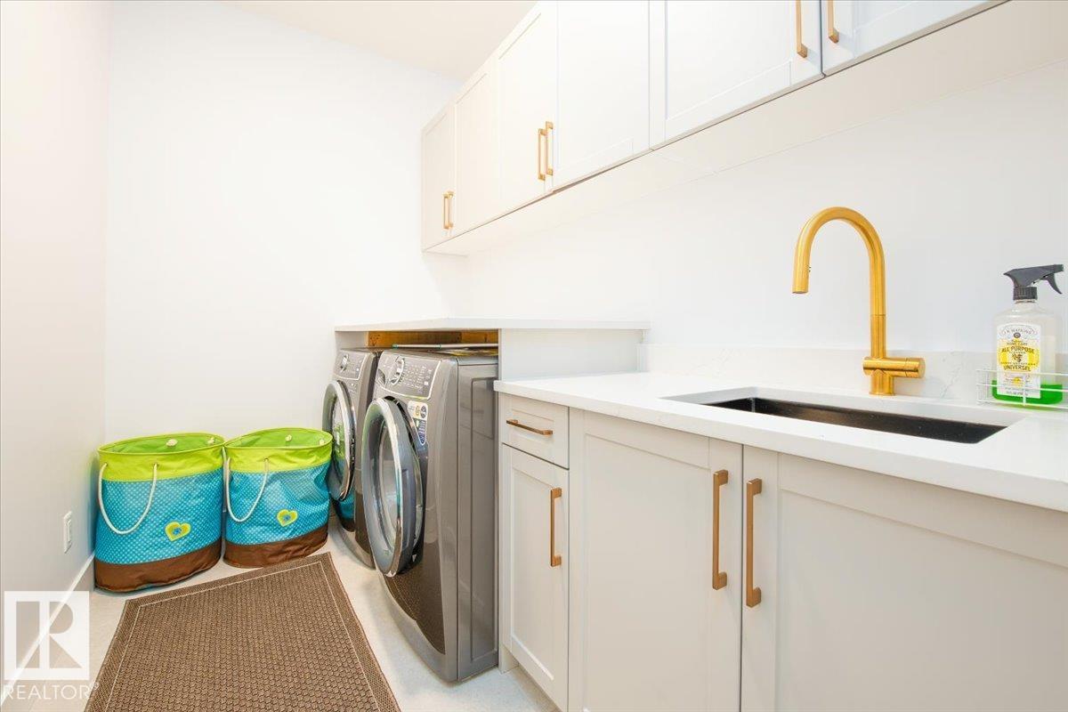 Experience luxury living in this stunning 2023 custom estate, just 15 minutes west of Edmonton. Designed to impress, this 6-bedroom, 4-bath home combines modern elegance with family-friendly comfort. The open-concept main floor boasts soaring 10-ft ceilings, luxury vinyl plank flooring, and a chef's dream kitchen with gas range, quartz counters, oversized island, and soft-close cabinetry--perfect for both everyday living and entertaining. A main-floor bedroom and full bath add convenience for guests or multigenerational living. Upstairs, the showstopping primary suite offers a spa-like ensuite with soaking tub, dual sinks, and a walk-in closet. A wet bar, flex room, laundry, and two more bedrooms complete the upper level. The fully finished basement features two additional bedrooms, a spacious rec room with wet bar, and another full bath. Enjoy summer evenings on the large deck with gas BBQ hookup. With a triple garage and extra parking, this home checks every box.