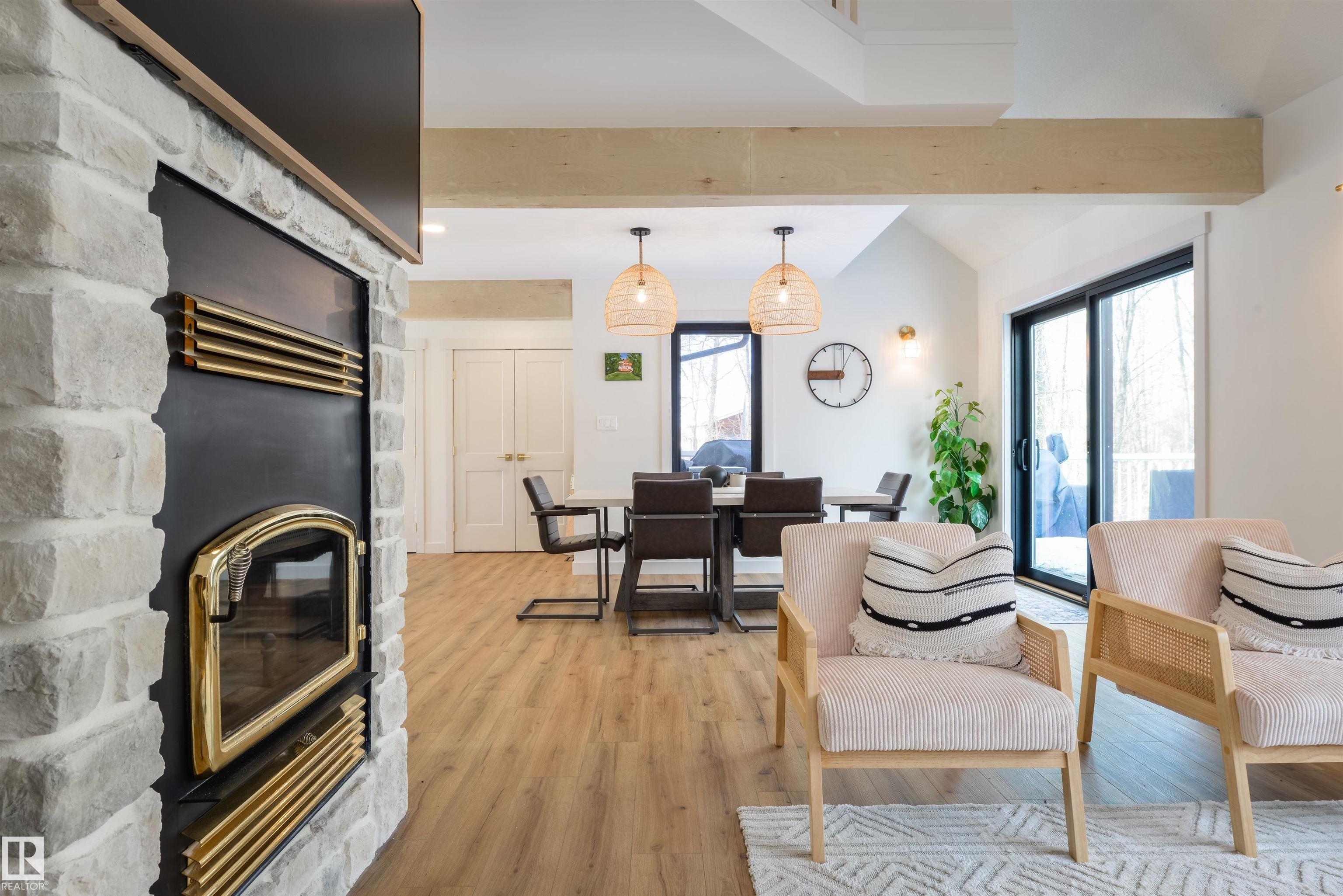 Some homes are just houses - this one is a life upgrade. Completely renovated and move-in ready, this 1,600 sq ft lakeside retreat sits on the shores of Jackfish Lake -- a full recreational lake where the only thing that changes with the seasons is how you enjoy it. It's the morning coffee on the two-tiered deck while the lake sits glass-still. Evenings around the stone firepit as the sun drops behind the treeline. The kind of quiet that's genuinely hard to find -- made possible by the treed backdrop that delivers both privacy and unobstructed access to the lake. Inside, the renovation is exquisite: exposed beam ceilings, wood-burning stone-facing fireplace, Chef's kitchen & modern accents throughout. Year-round mechanicals mean this home works as a full-time residence, not just a seasonal escape. Peaceful. Private. Fully loaded. The lake is calling... this is your answer.
