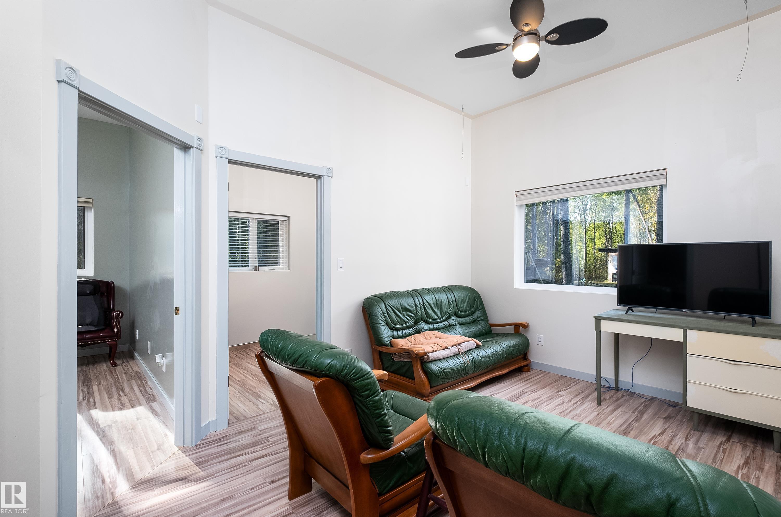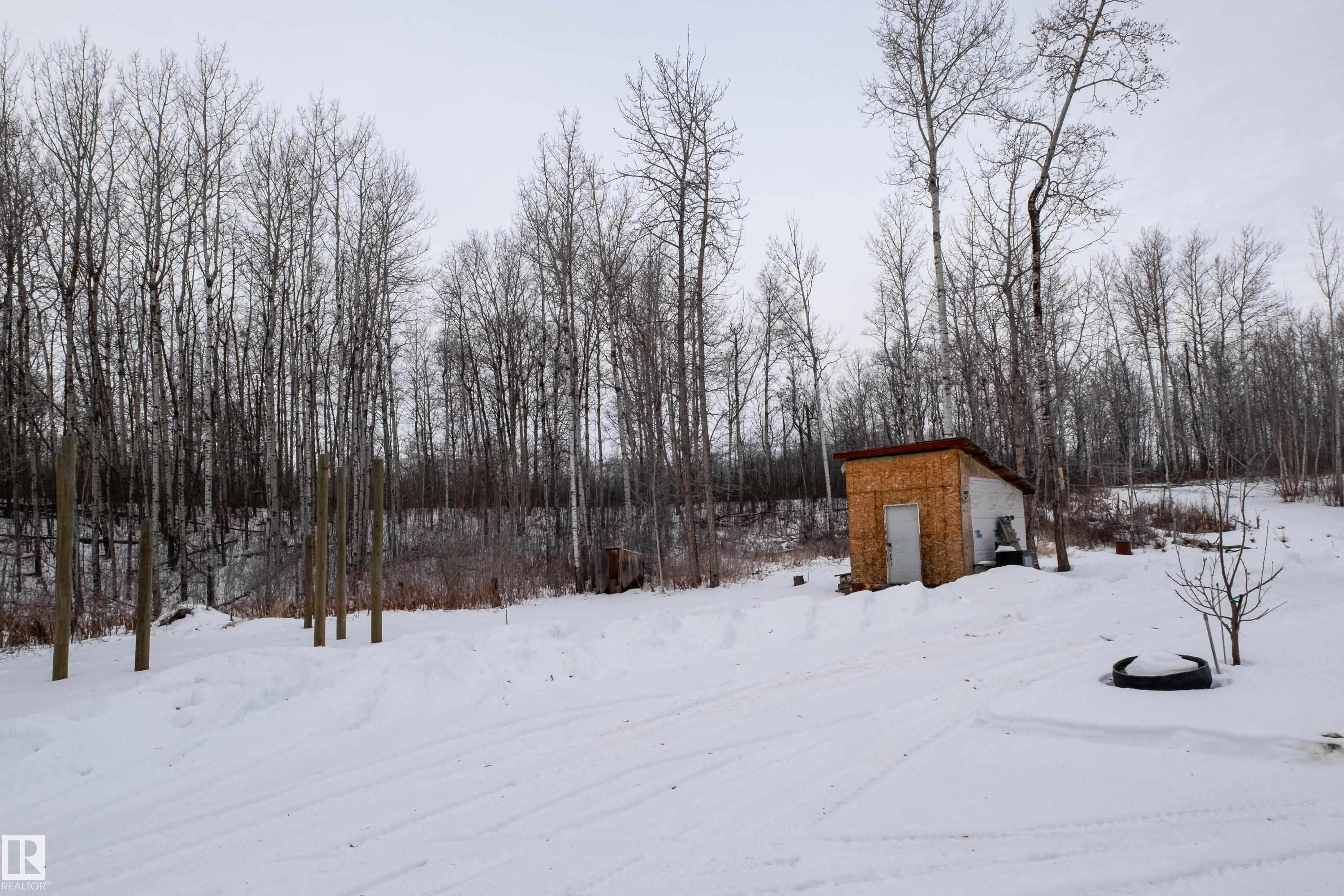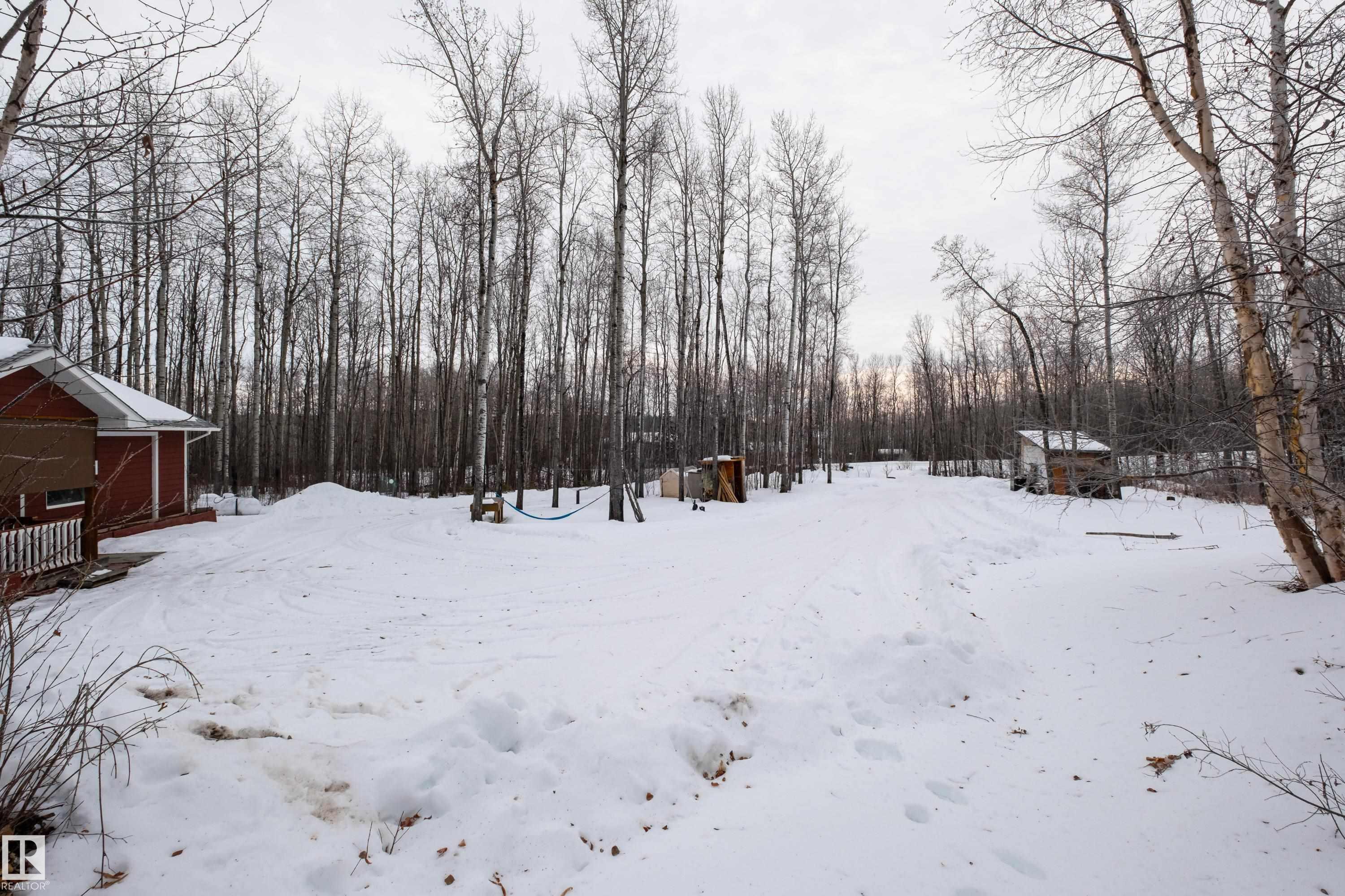 RARE ICF CONCRETE BUNGALOW ON 3.44 ACRES OF TREED PRIVACY NEAR JACKFISH LAKE! Bordered by crown land, this 2009-built home offers exceptional energy efficiency w/IN-FLOOR HEAT(new pump 2025), 6" CONCRETE WALLS & TRIPLE PANE WINDOWS! Heating costs only ~$1000/year! Follow the circle driveway to this charming home nestled amongst nature, w/upgraded HARDIE BOARD SIDING & sunny front porch. Inside you'll find soaring 10' CEILINGS, recently painted walls/cabinets/doors/trim(2024) & UPDATED MECHANICAL(HWT, pressure tank, & stove 2024). The kitchen offers durable concrete counters, S/S APPLIANCES, new upper cabinets(2024), 2 B/I hutches, a sizeable dining nook, laundry & access to the 4pce bath. A cozy living room is tucked away by the 3 well-sized bedrooms, incl. a primary w/access to the south-facing deck. There's plenty to entertain you outside w/raised garden beds, fruit trees & shrubs, fire pit, storage shed & a NEW GARGE TENT(2025). All just minutes away from day use areas at Jackfish, Mink & Star Lakes!