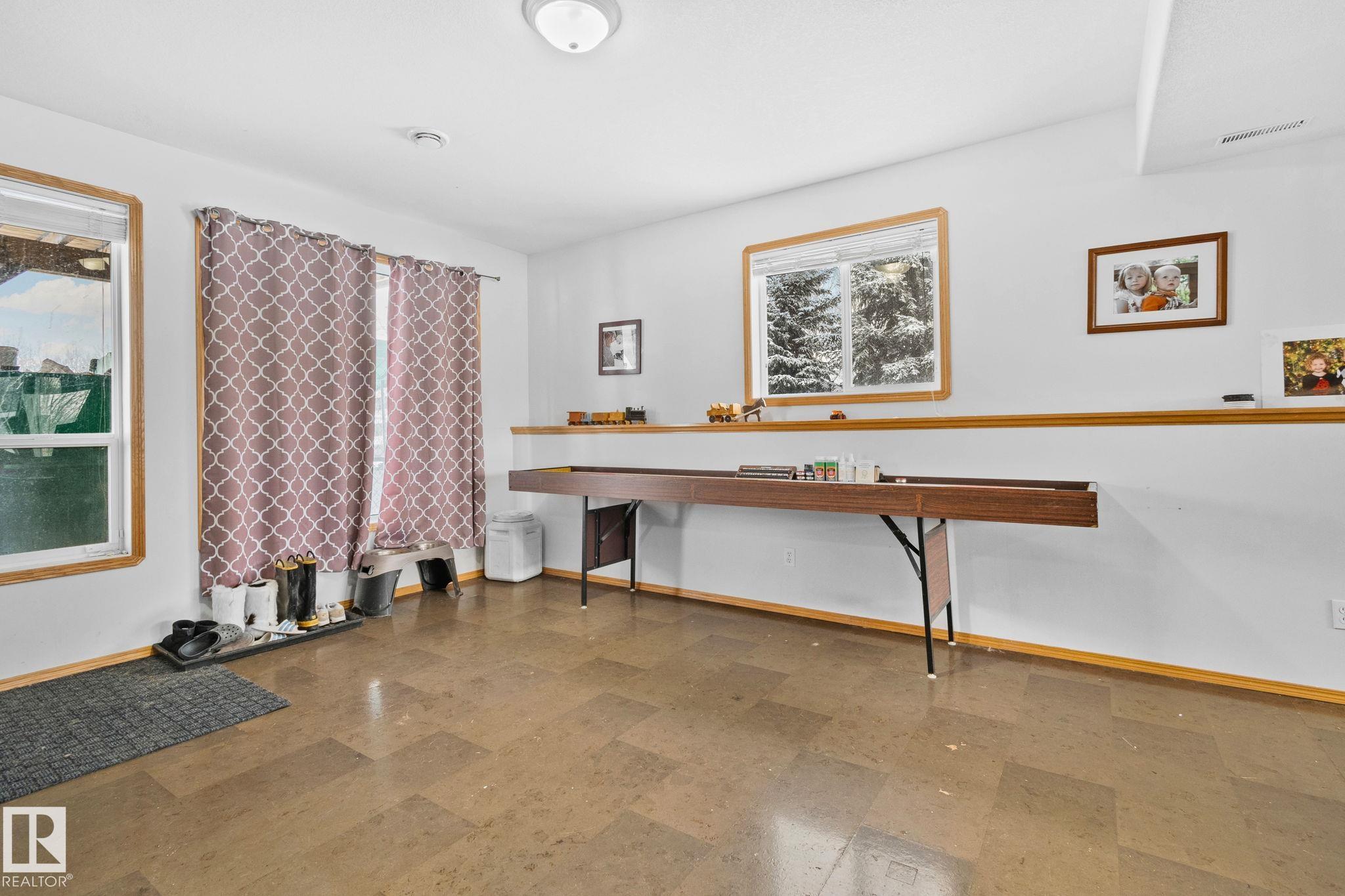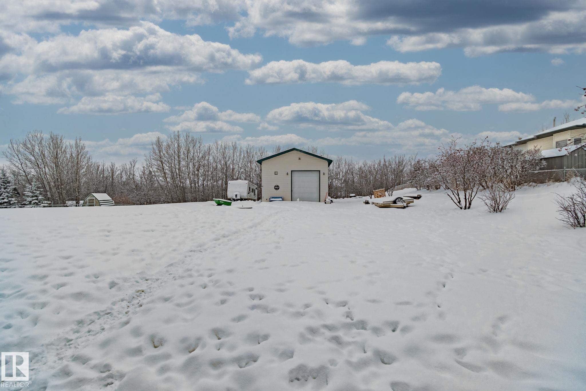 This four-bedroom home offers space to grow, gather, and unwind. Vaulted ceilings create an open feel on the main floor, where the kitchen and living area come together with an eat-up island, stainless steel appliances, hardwood and tile flooring, and a cozy gas fireplace. Three bedrooms are located on the main level, including a spacious primary suite with a walk-in closet. The walkout lower level adds flexibility with a large family room, a second gas fireplace, and an expansive recreation area--perfect for games, hobbies, or movie nights. A fourth bedroom, full bathroom, and bright laundry room complete the space. Outside, the 25x25 heated garage, 16x20 toy garage, and a showpiece 24x30 shop with a vaulted ceiling, loft, radiant heat, epoxy floors and 12ft garage door provide excellent storage and workspace - truly a handy mans oasis. The fenced yard, paved driveway, and ample RV parking make this acreage easy to enjoy, while close proximity to town and highway access offers everyday peace of mind.
