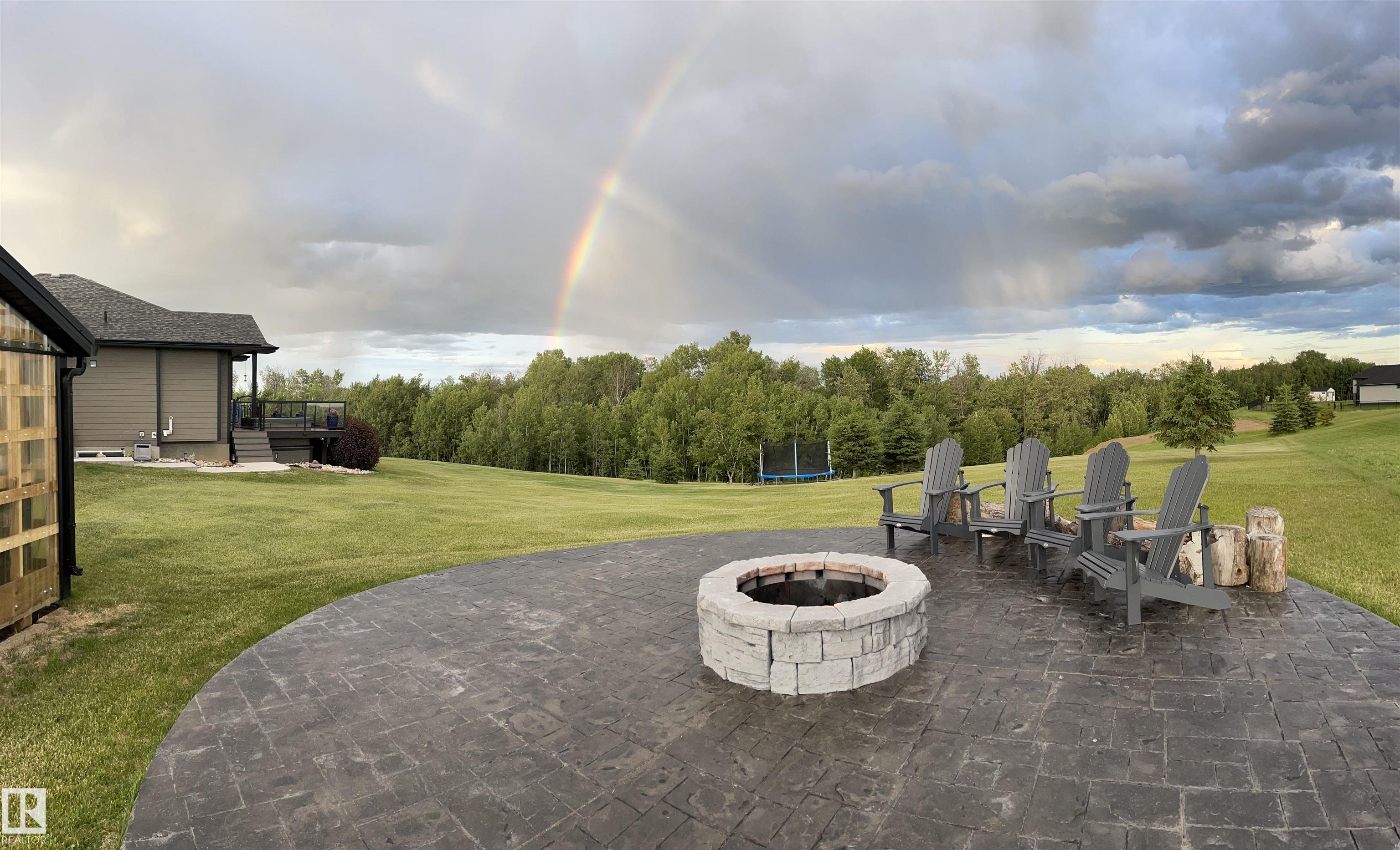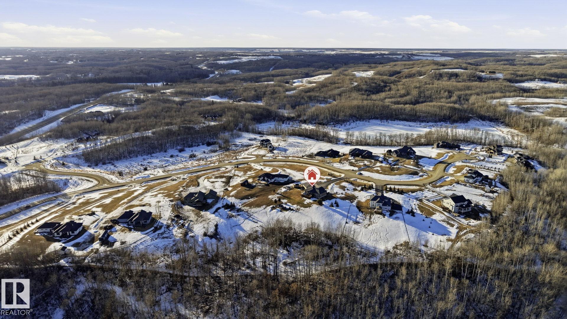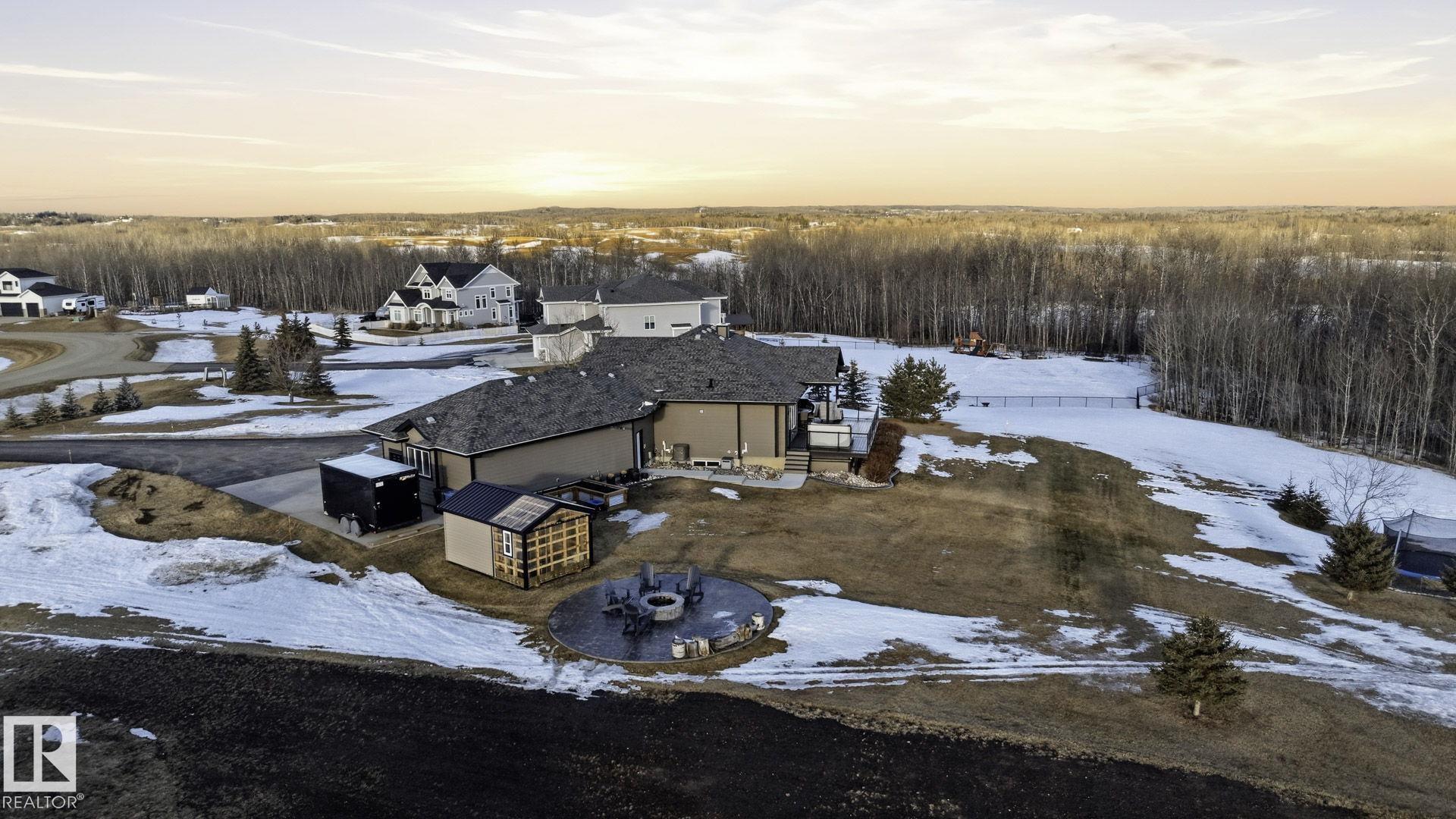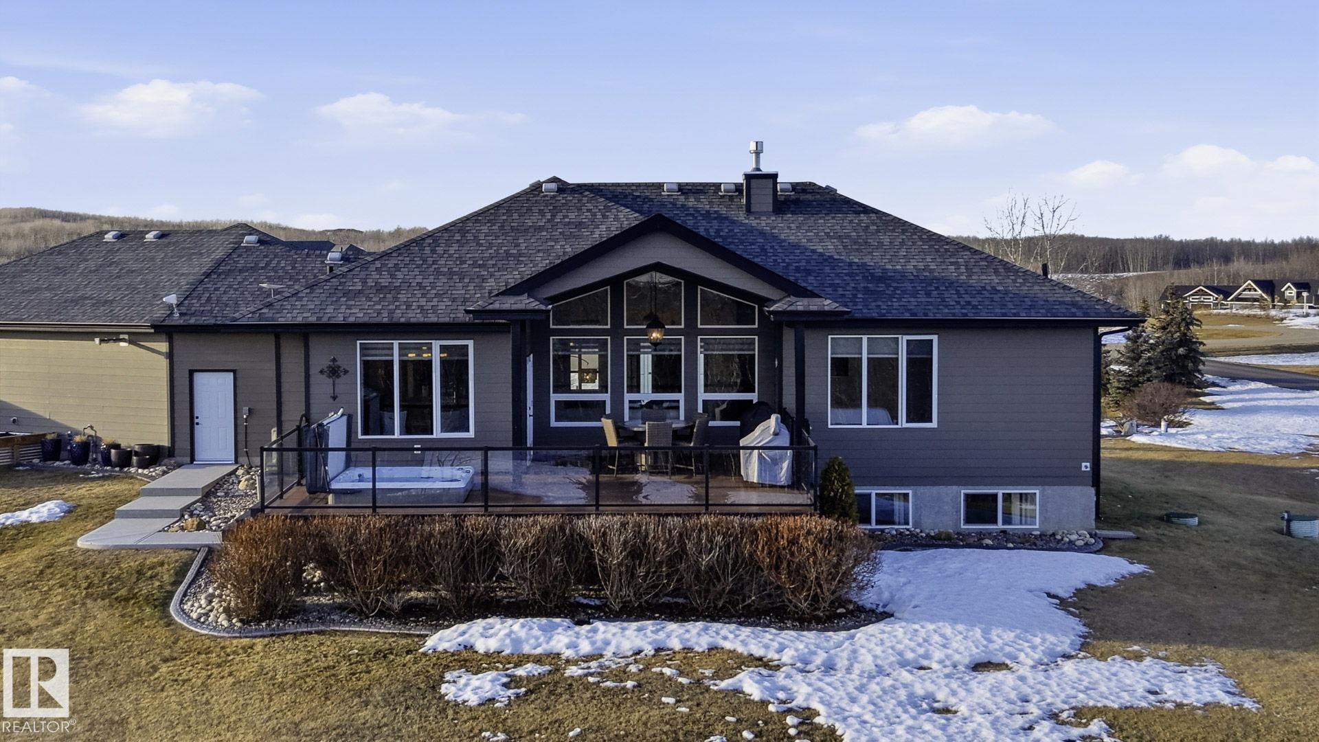 Discover this EXECUTIVE hilltop bungalow situated on 2.09 acres, just 5 minutes from Stony Plain w/paved access all the way. Nestled in the Hills of Twin Lakes--surrounded by beautiful homes, a nature reserve, & rolling landscapes--this home offers rare countryside views from your vaulted windows & covered deck. This luxurious home provides a serene country setting remarkably close to town, & only minutes away from the Chickakoo Lake Recreation Area. Upgrades to this home include Hardie board siding, 200Amp power service, 240 Volt plugs, RV plug in, no maintenance decking, irrigation for planters around the house, an oversized 40x25 heated garage w/floor drain, hot tub & many landscaping upgrades. Inside the home, features include vaulted ceilings, granite countertops, real wood cabinets, 9' ceilings in the basement creating exceptional added living space , a walk-through pantry, two gas fireplaces, hardwood floors, heated ensuite floors, a glass & tile shower & main floor laundry for added convenience.
