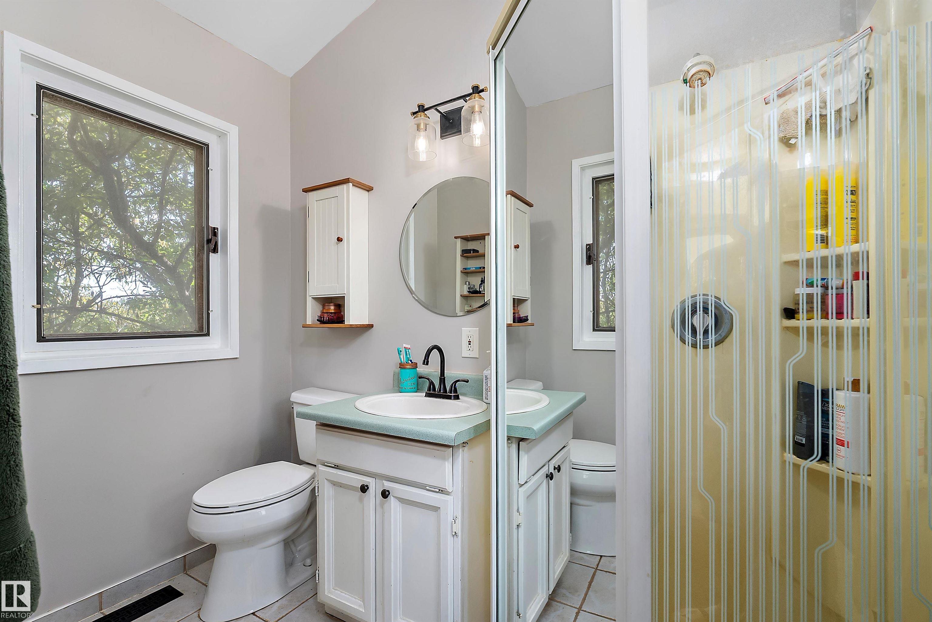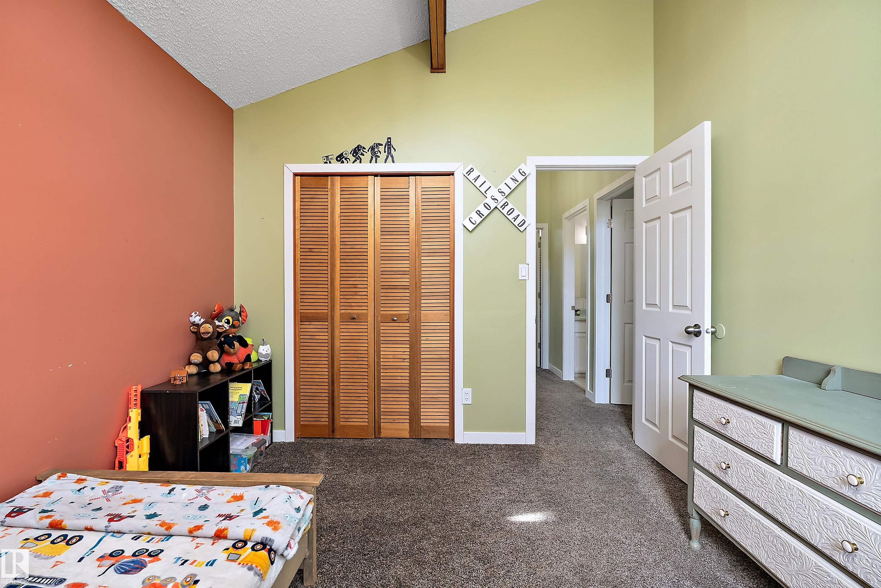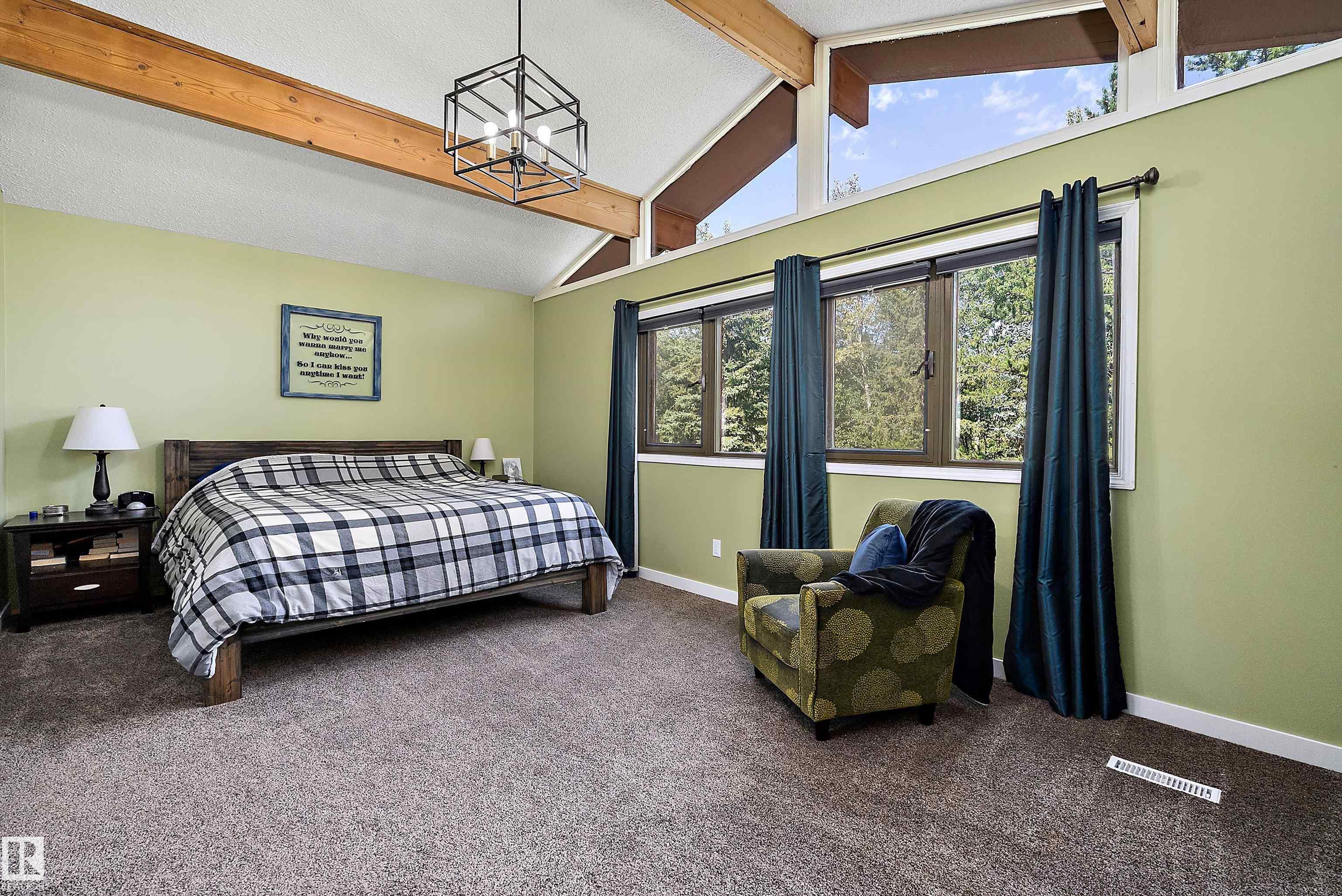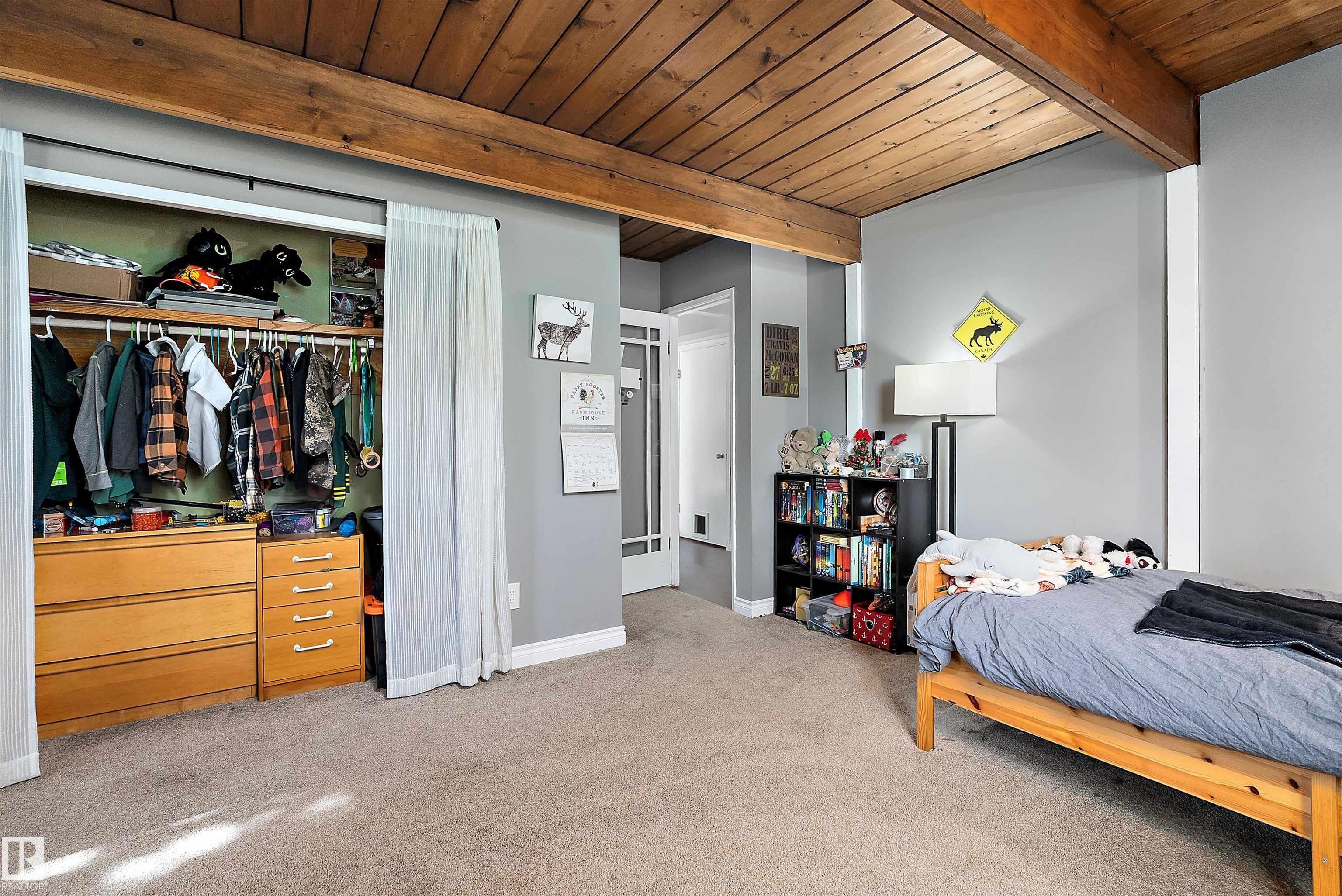 Minutes from town on paved roads, you'll find a private, tree lined driveway that leads you to this idyllic 3.4 acre acreage. It's a dreamy landscape of rolling hills & wide open spaces surrounded by trees. Inside you'll find over 2200 sq ft of finished living space with 5 huge bedrooms (4 up) and 3 baths. The home captivates with vaulted wood beam ceilings & soaring windows flooding the the living room in natural light, a sprawling kitchen with large island & a sunken cozy family room with gas fireplace. Shingles, both furnaces, hot water tank and 24x36' garage (with 8' doors & 10' ceilings & heater) were done in 2019. Induction cooktop in 2019, carpets 2020, AC in 2021, & dishwasher 2024. Zoned for stony plain school with bussing available & minutes to town - you can have the dream acreage without sacrificing convenience! If you've been waiting for a large home with room for everyone, character, most of 'the big stuff' done so you can unleash your creativity in cosmetic updates...welcome home!