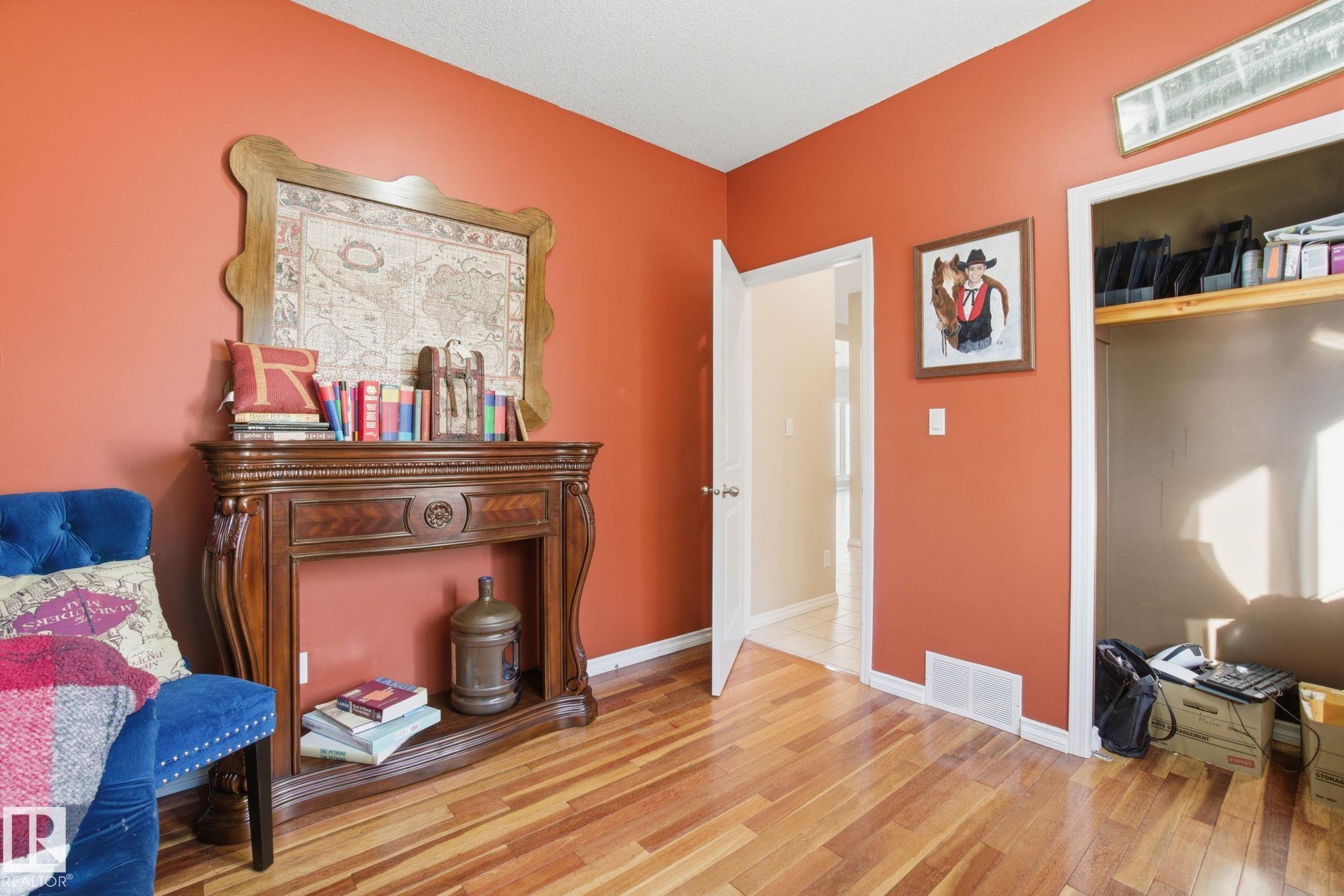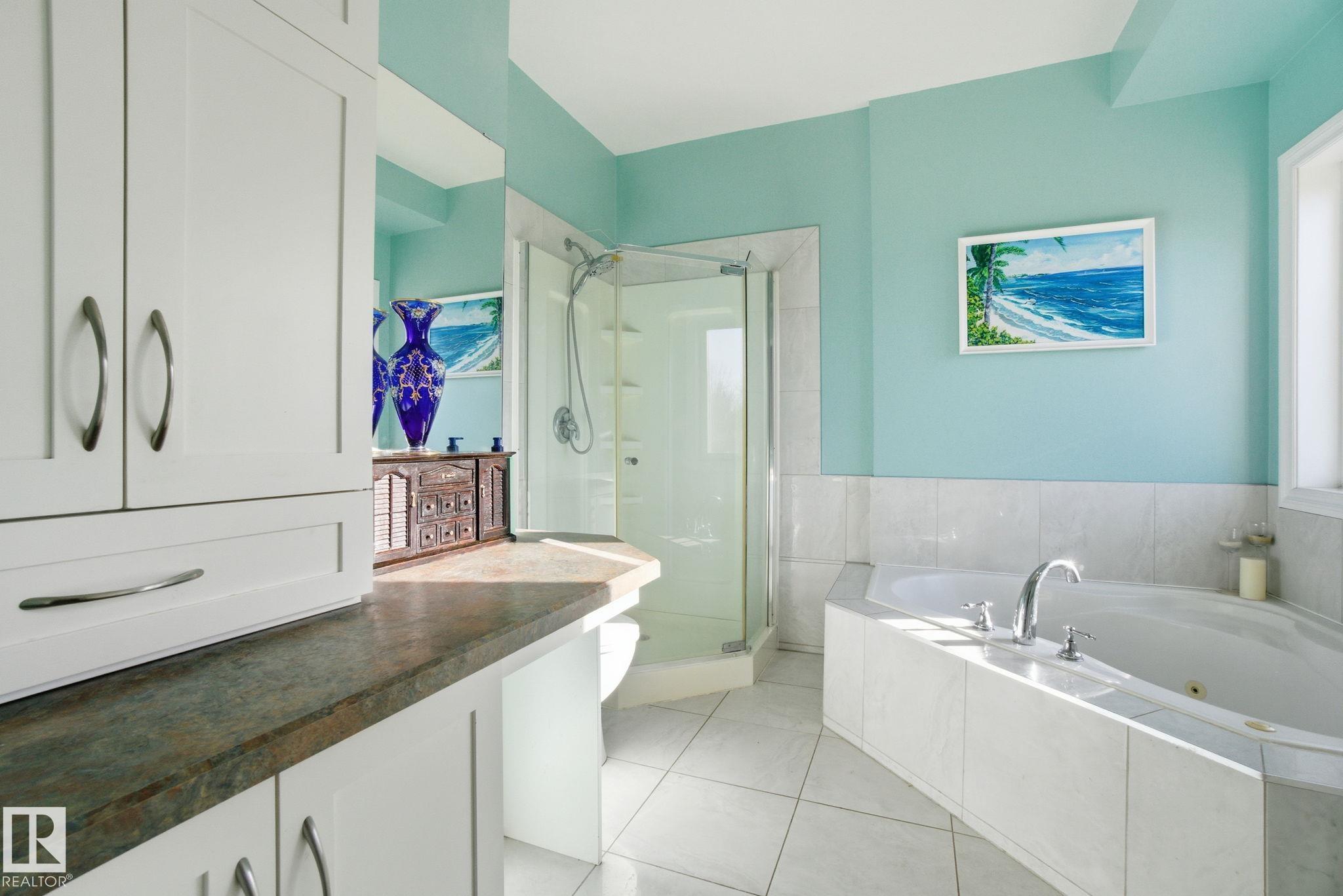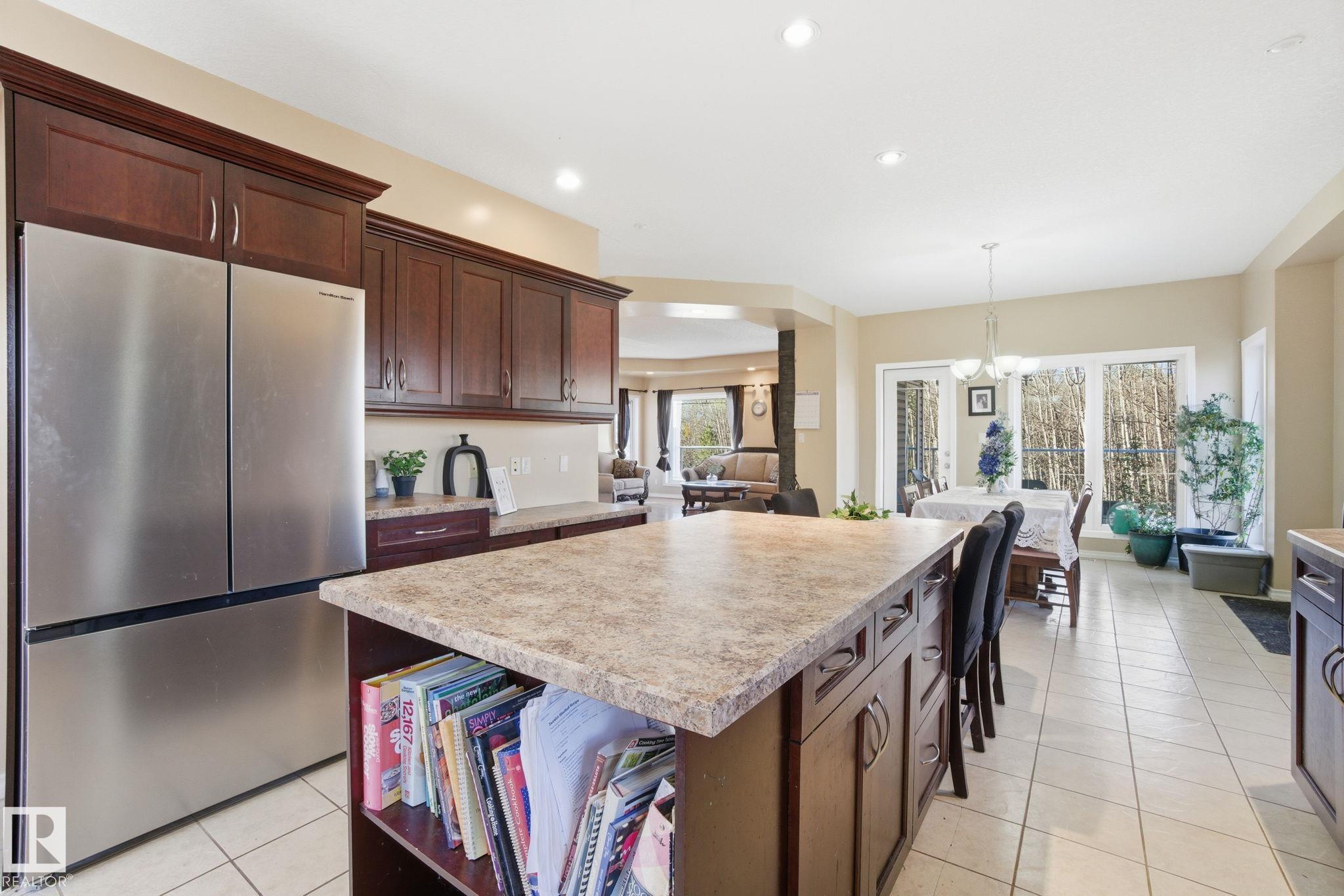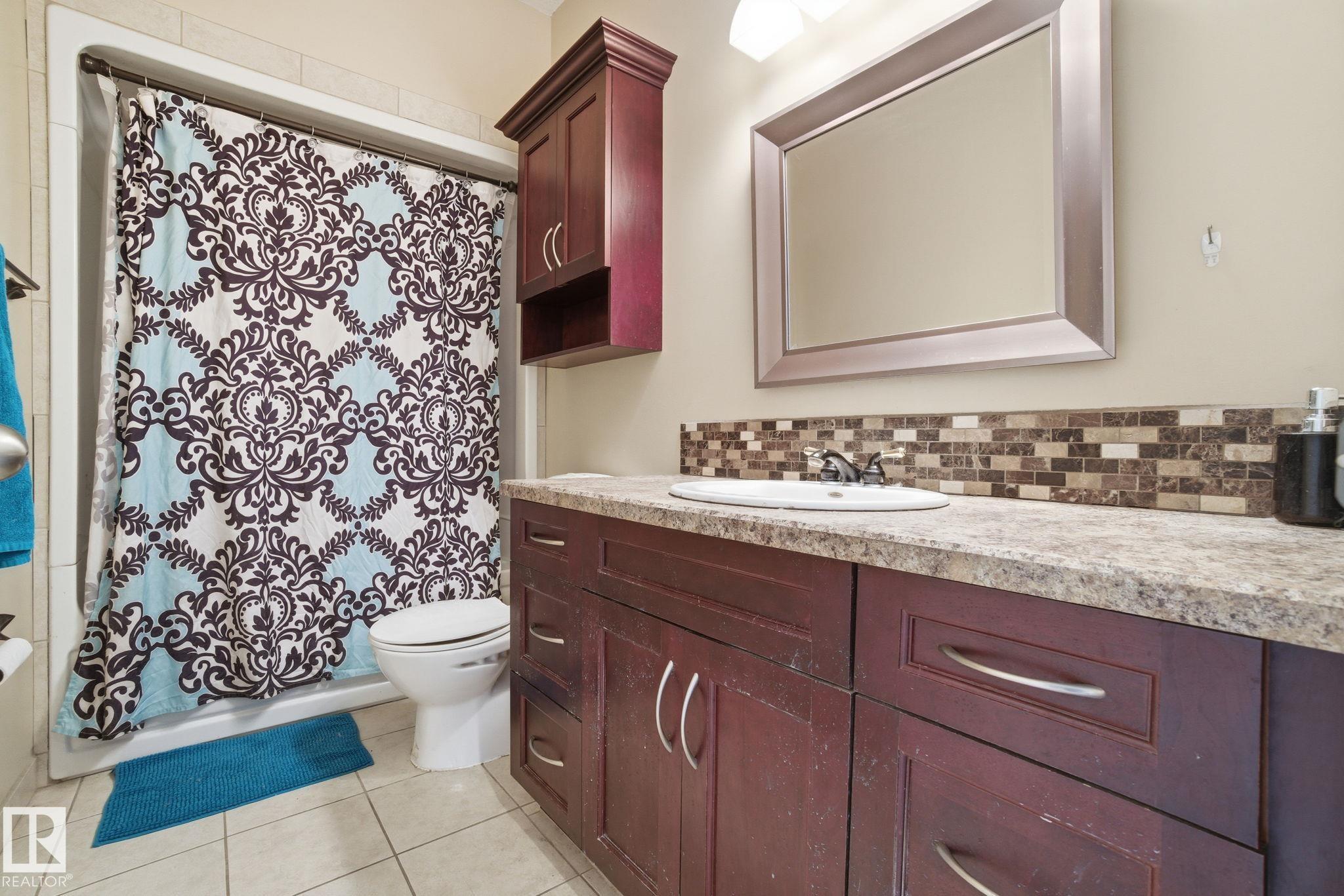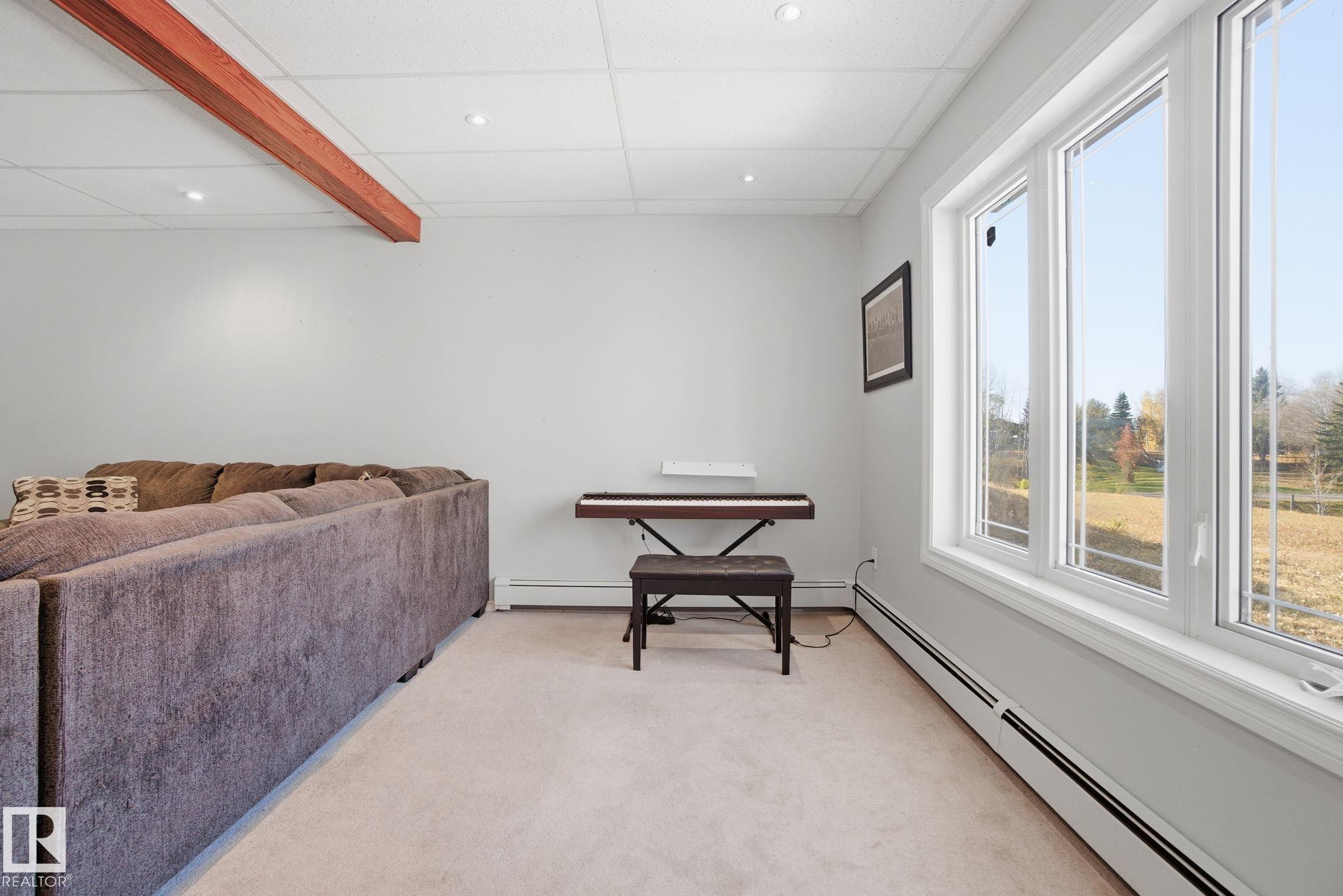Gorgeous 3.5 acre property in Mayfair Heights 12 min from Stony Plain. 1650 sf bungalow with a walkout basement. Beautifully finished inside with 9' ceillings, hardwood floors & ceramic tile upstairs. The kitchen has dark cabinets, mosaic backsplash, big island with drop down seating area, tons of storage & counter space, walk-in pantry. A nice dining area adjacent surrounded by windows with views of the forest surrounding the property & rolling hills. The living room is a great size with a wood burning fireplace to cozy up over the winter. A massive wrap around deck is mostly covered, with vinyl & aluminum and glass railing. 3 bedrooms upstairs & 2 full baths. The primary has a large walk-in closet with built-in organizers & ensuite has soaking tub & shower! The basement is finished with a large media room, a 4th bedroom & unfinished 5th bedroom, 3rd full bath, storage, utilities & garage access. The grounds are beautiful with a hill leading down to the fire pit area, sheds & TREE HOUSE!