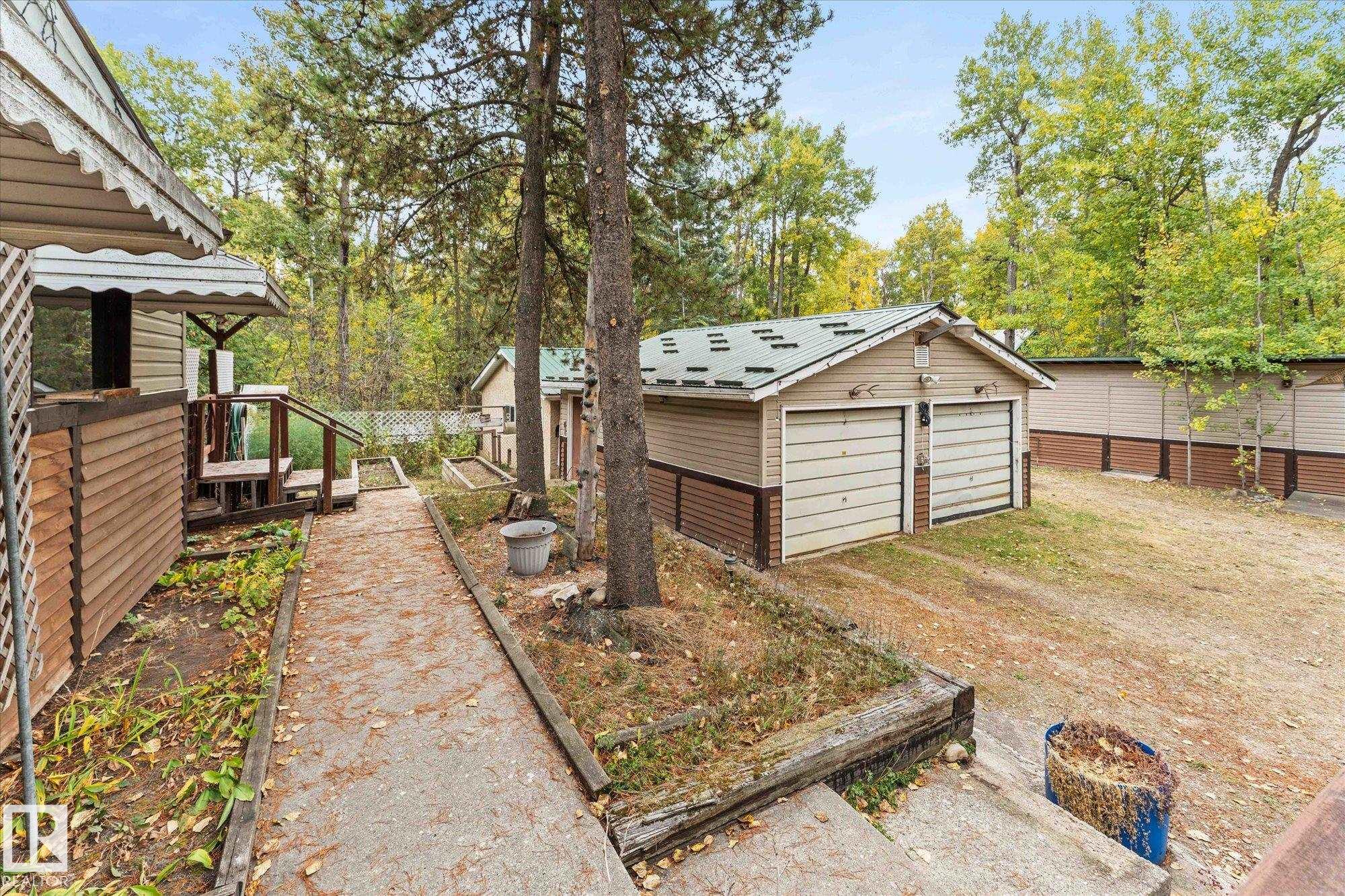Discover your own private oasis on 7+ treed acres in Parkland County! This serene & private property offers the perfect canvas for your dream home, with mature trees providing a natural canopy & ultimate privacy. Enjoy the wildlife while having a morning coffee on the covered back porch. The existing mobile home with 3 bedrooms , 2 baths and a renovated kitchen presents an opportunity for immediate country living, while you can build your dream home with services already in place. A drilled well & septic are already there. 2 detached garages and a shop that are ideal for a home based business, storing equipment or indulging in your favorite hobby. Enjoy the peace & quiet of rural life without sacrificing convenience. Close to Cougar Creek Golf Course, Wabamun & Stony Plain. Don't miss the opportunity to create the acreage lifestyle you always dreamed of!