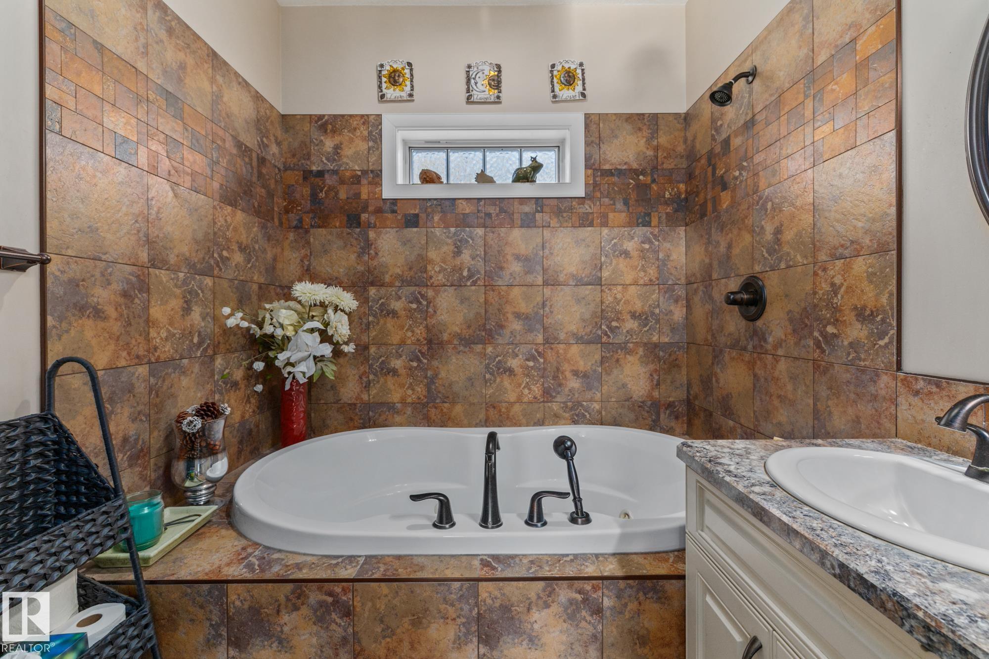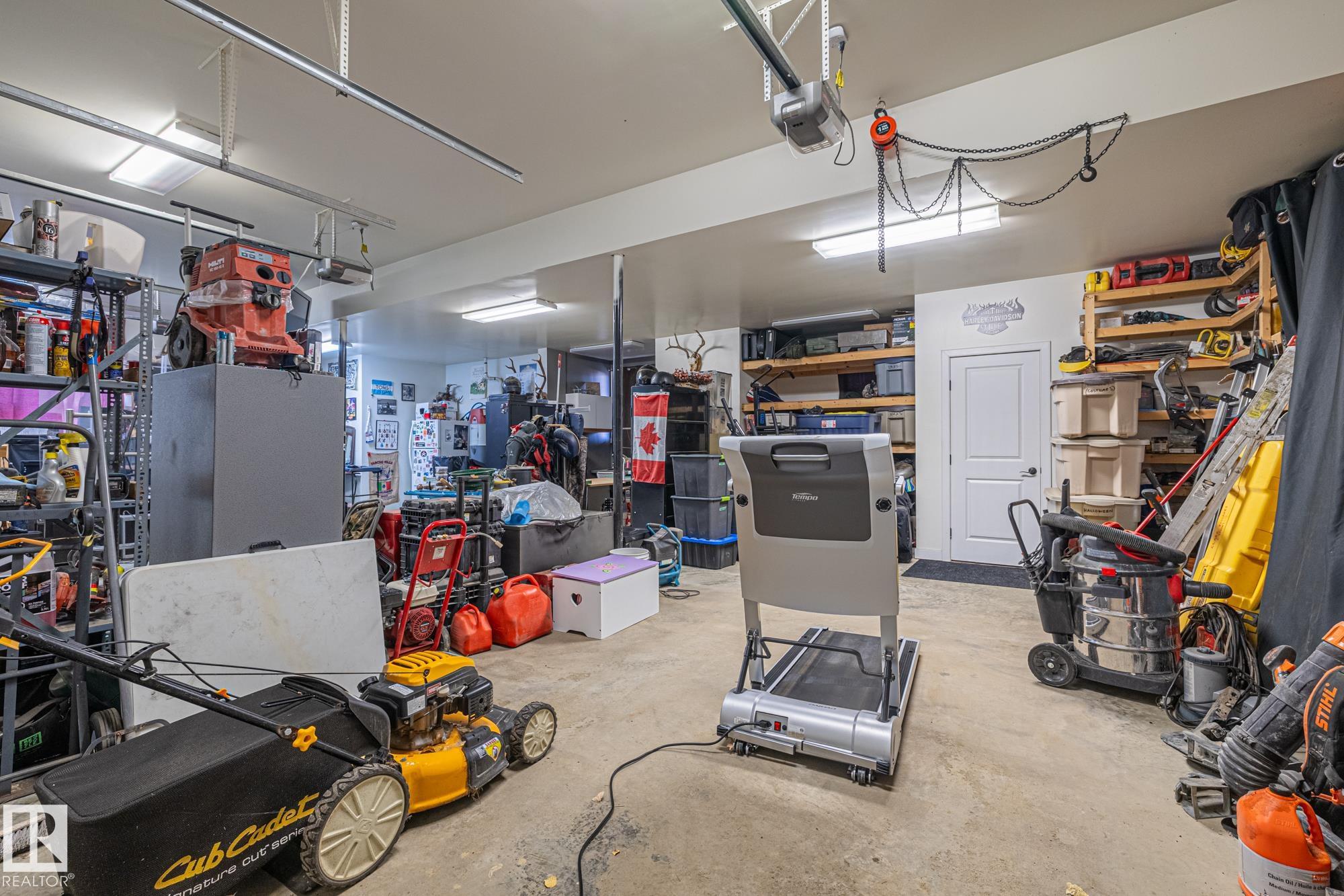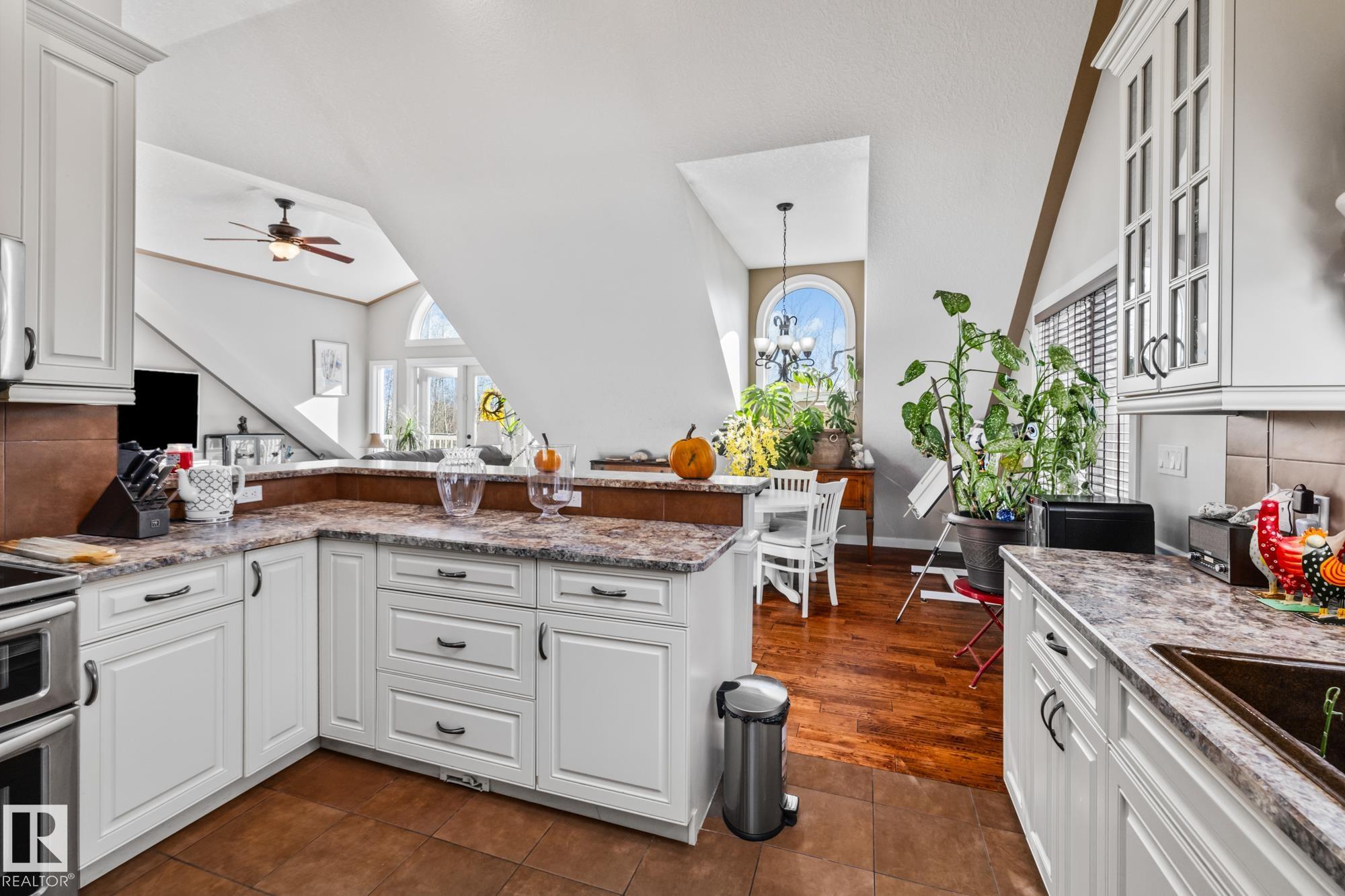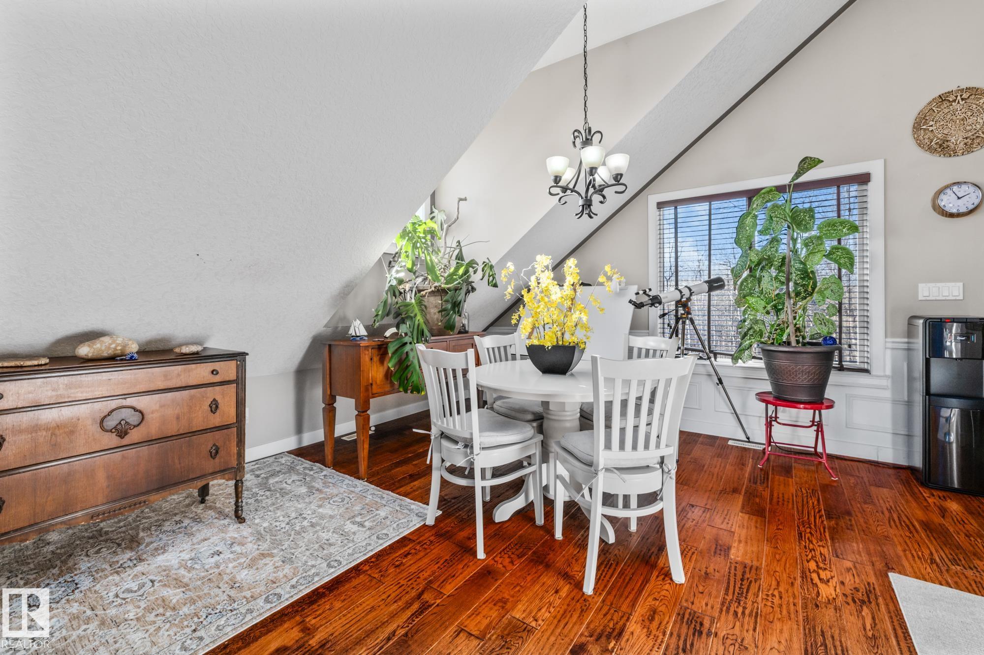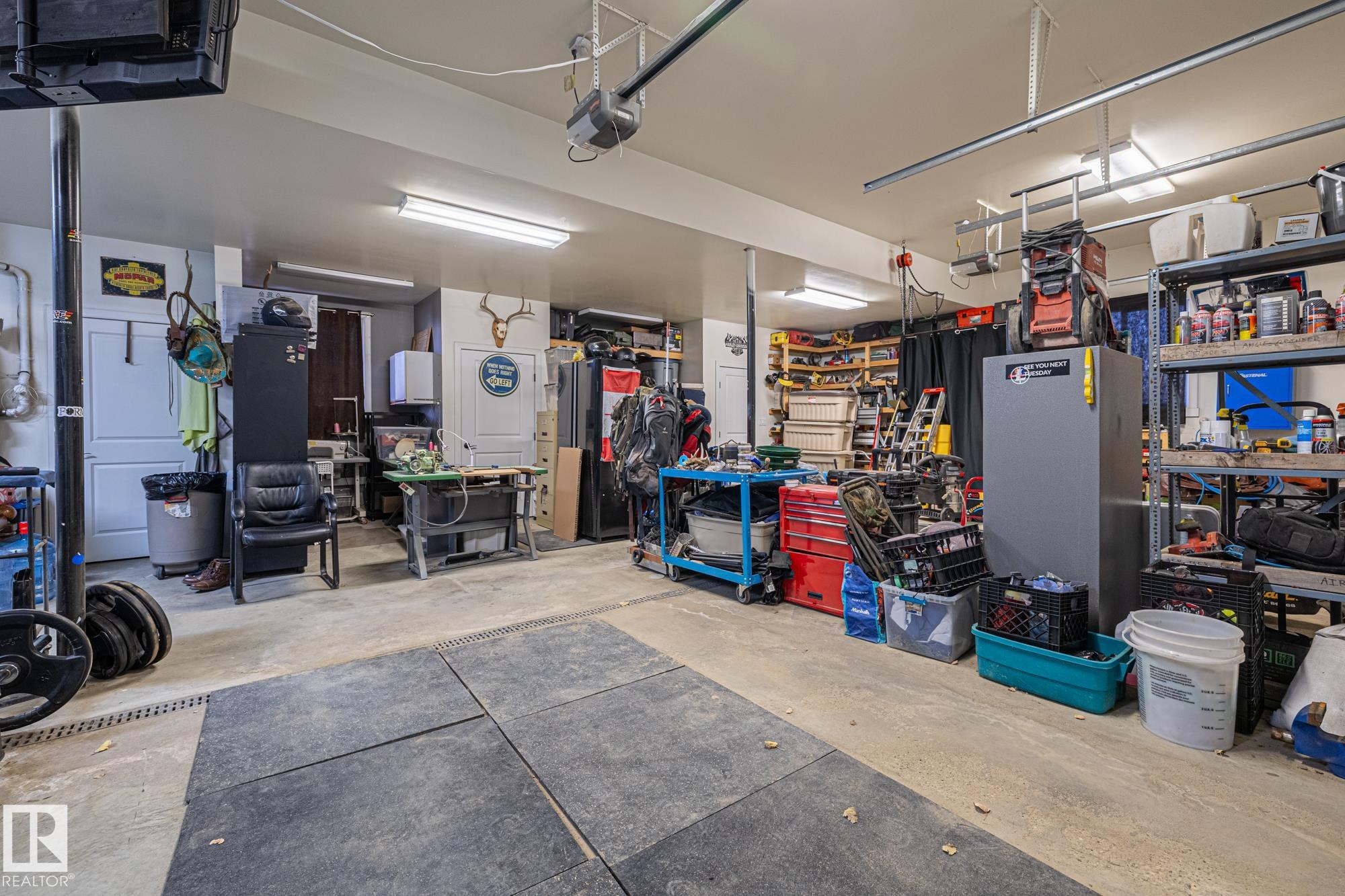 Experience peaceful country living in Meso West, just north of Hwy 16 at RR30--only 10 minutes to Stony Plain and less than 3 km from Cougar Creek Golf Course. Set high on a private, treed lot with ravine views, this 2011 custom-built home is ideal for those seeking space, privacy, and room for vehicles, toys, and projects. The highlight is the heated triple garage with in-floor heat, finished interior, and a full bath--perfect for a serious garage setup, workshop, or hobby space. The upper level features a bright 2-bedroom living area with engineered flooring, vaulted ceilings, and an open-concept layout. The custom country kitchen includes stainless steel appliances and a pantry, flowing into a comfortable living space with in-floor heating and central A/C. Step onto the private upper deck and enjoy the natural surroundings, or unwind outside with an above-ground pool in a quiet country setting. Fully serviced with a drilled well and septic filtration system. A well-kept property with no smoking or pets