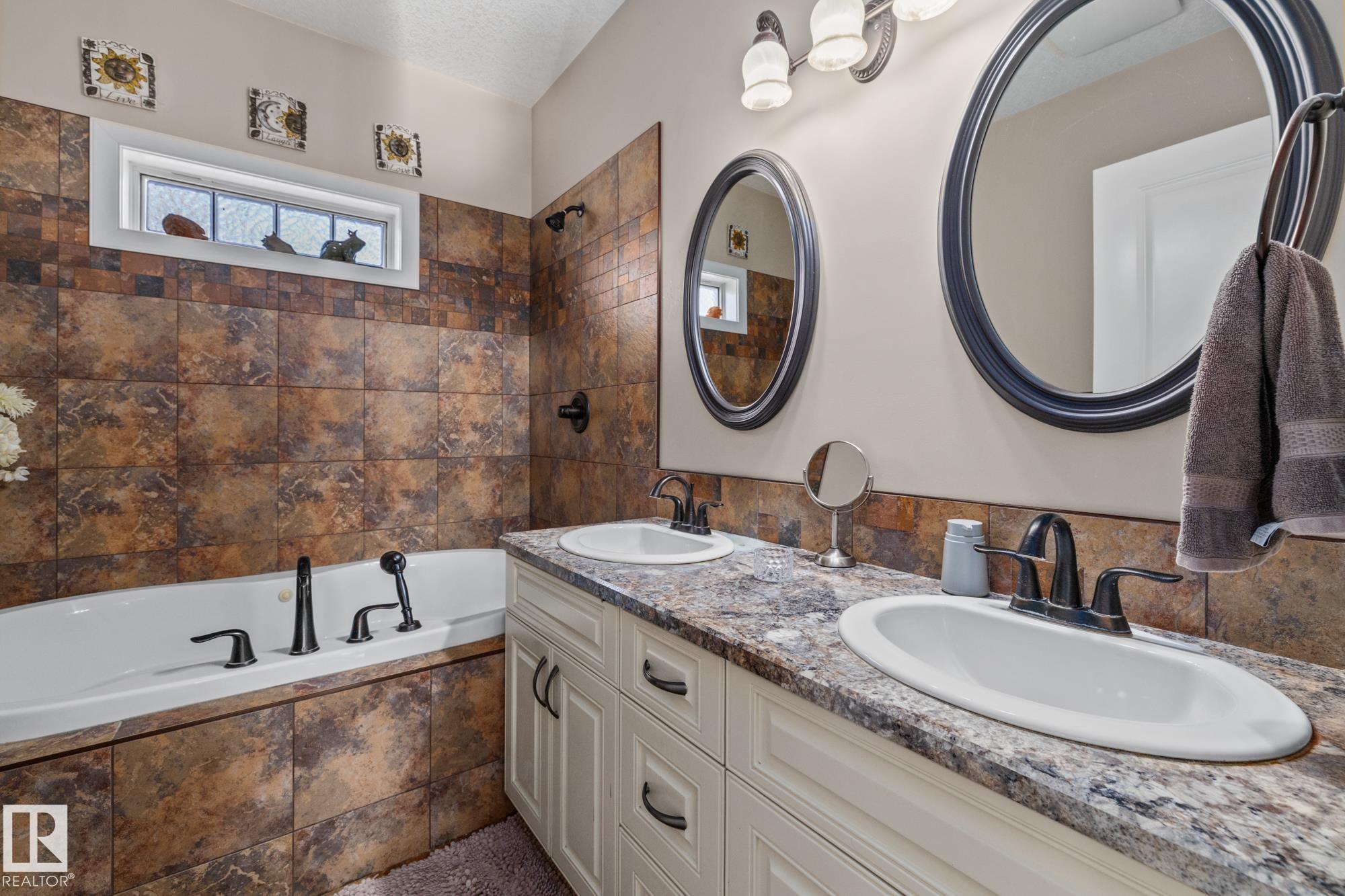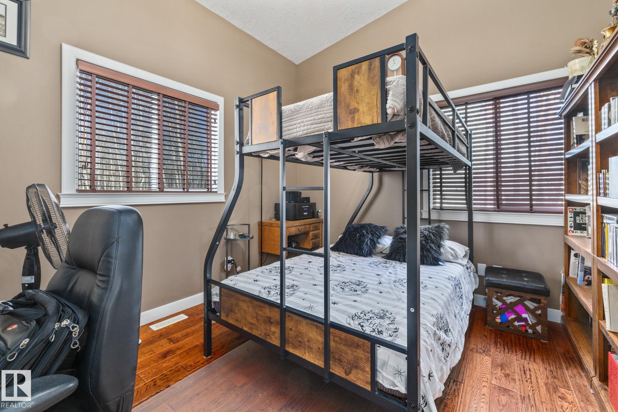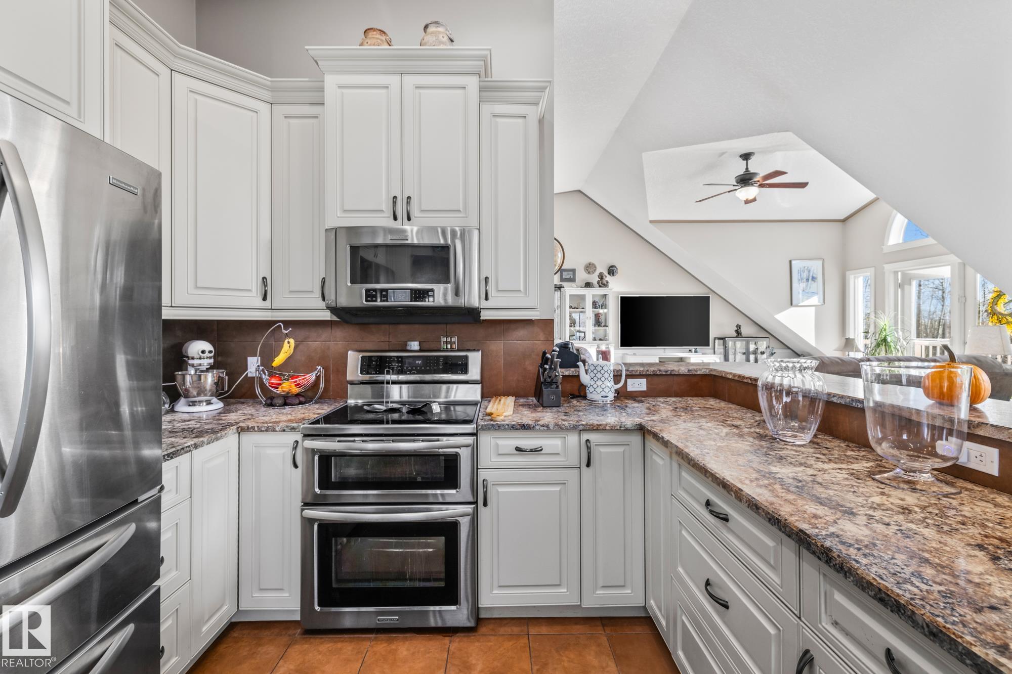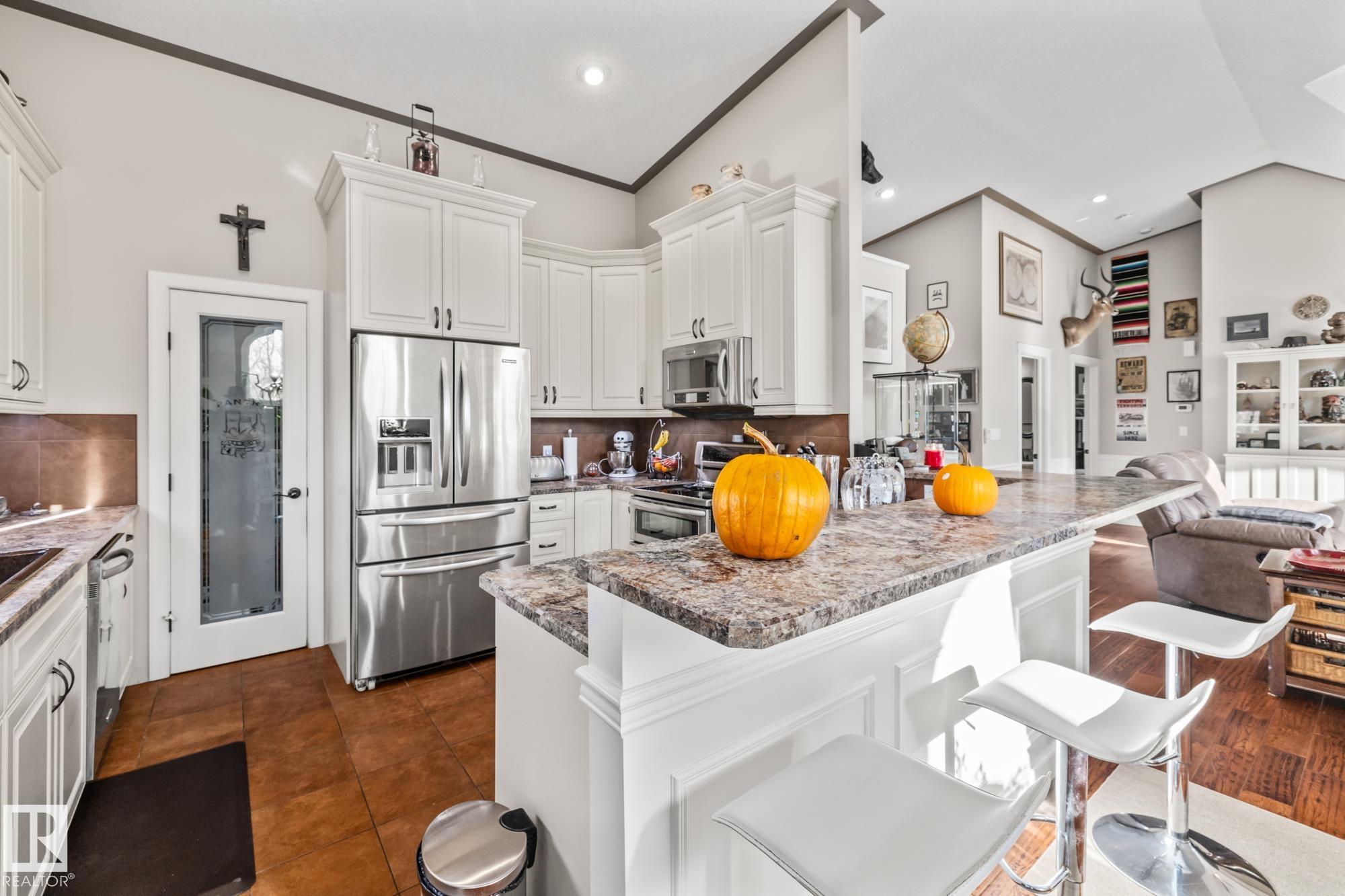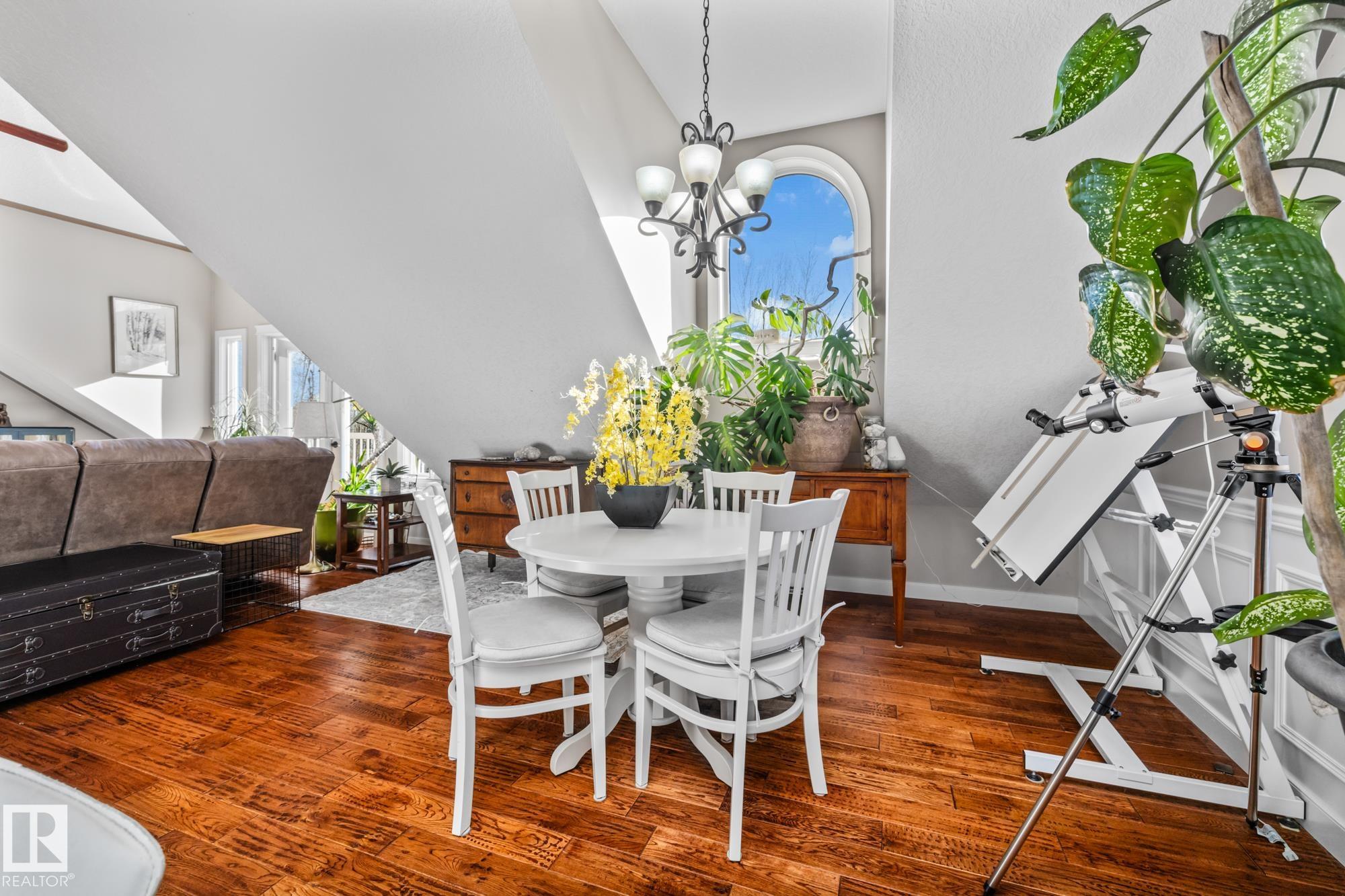 Experience peaceful country living in Meso West, just north of Hwy 16 at RR30--only 10 minutes to Stony Plain and less than 3 km from Cougar Creek Golf Course. Set high on a private, treed lot with ravine views, this 2011 custom-built home is ideal for those seeking space, privacy, and room for vehicles, toys, and projects. The highlight is the heated triple garage with in-floor heat, finished interior, and a full bath--perfect for a serious garage setup, workshop, or hobby space. The upper level features a bright 2-bedroom living area with engineered flooring, vaulted ceilings, and an open-concept layout. The custom country kitchen includes stainless steel appliances and a pantry, flowing into a comfortable living space with in-floor heating and central A/C. Step onto the private upper deck and enjoy the natural surroundings, or unwind outside with an above-ground pool in a quiet country setting. Fully serviced with a drilled well and septic filtration system. A well-kept property with no smoking or pets
