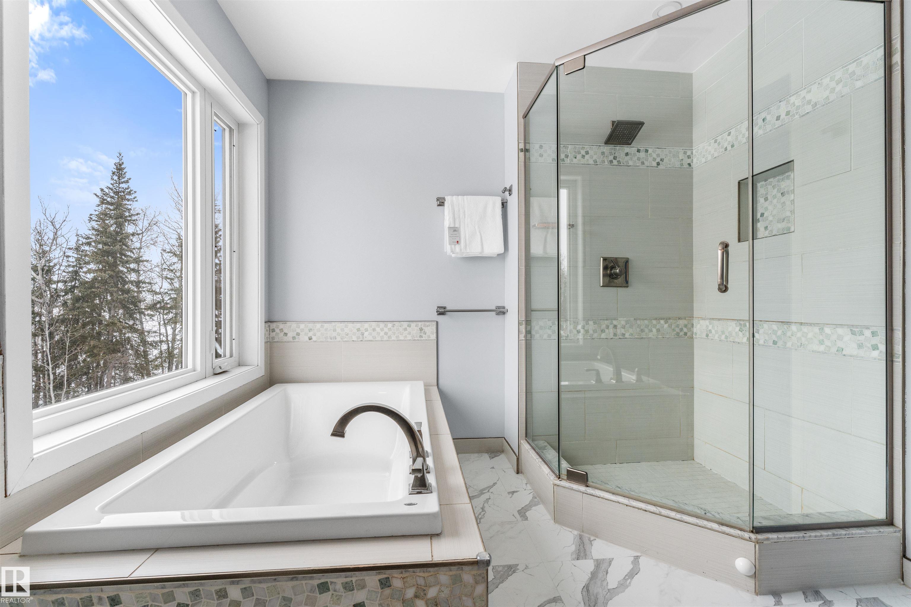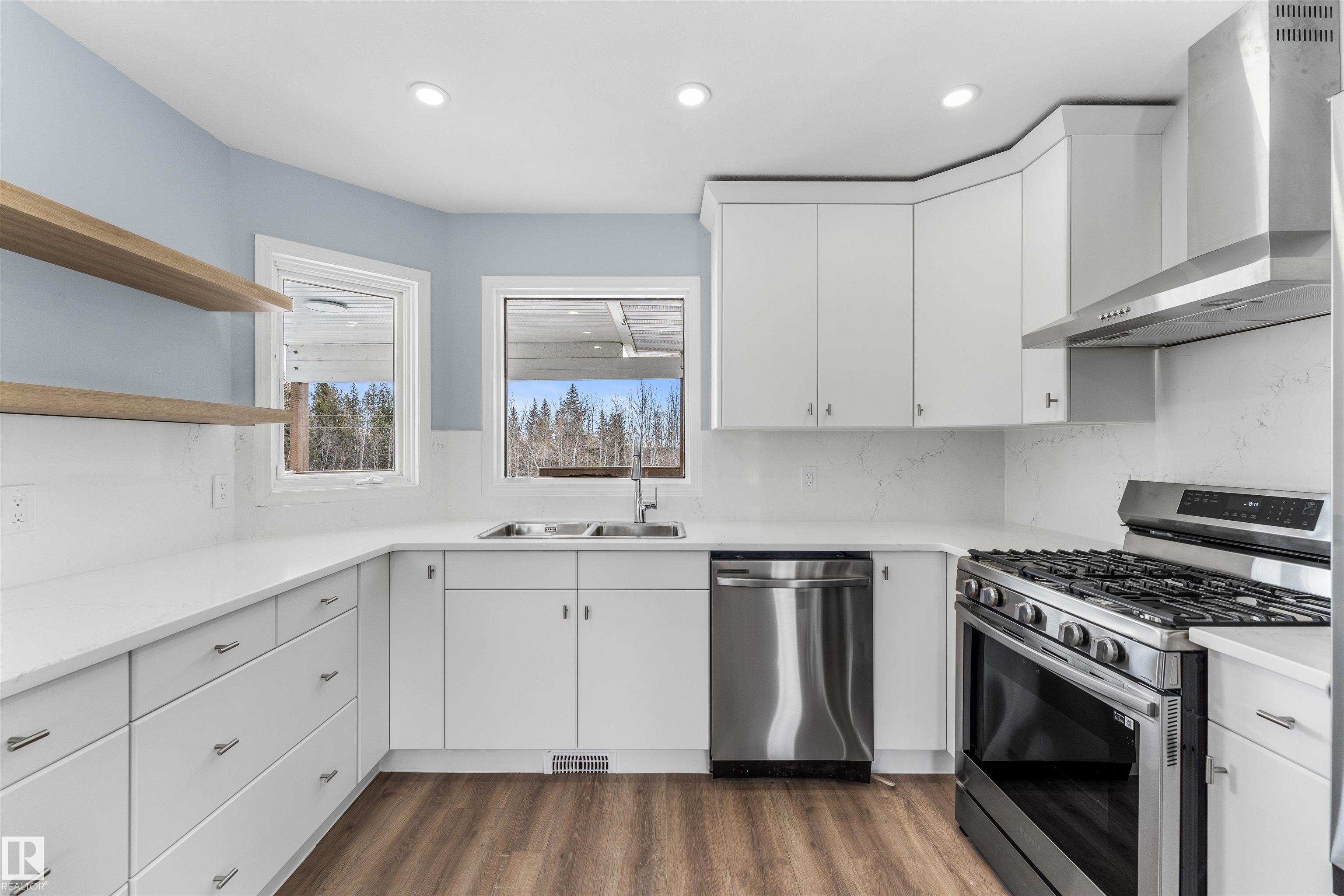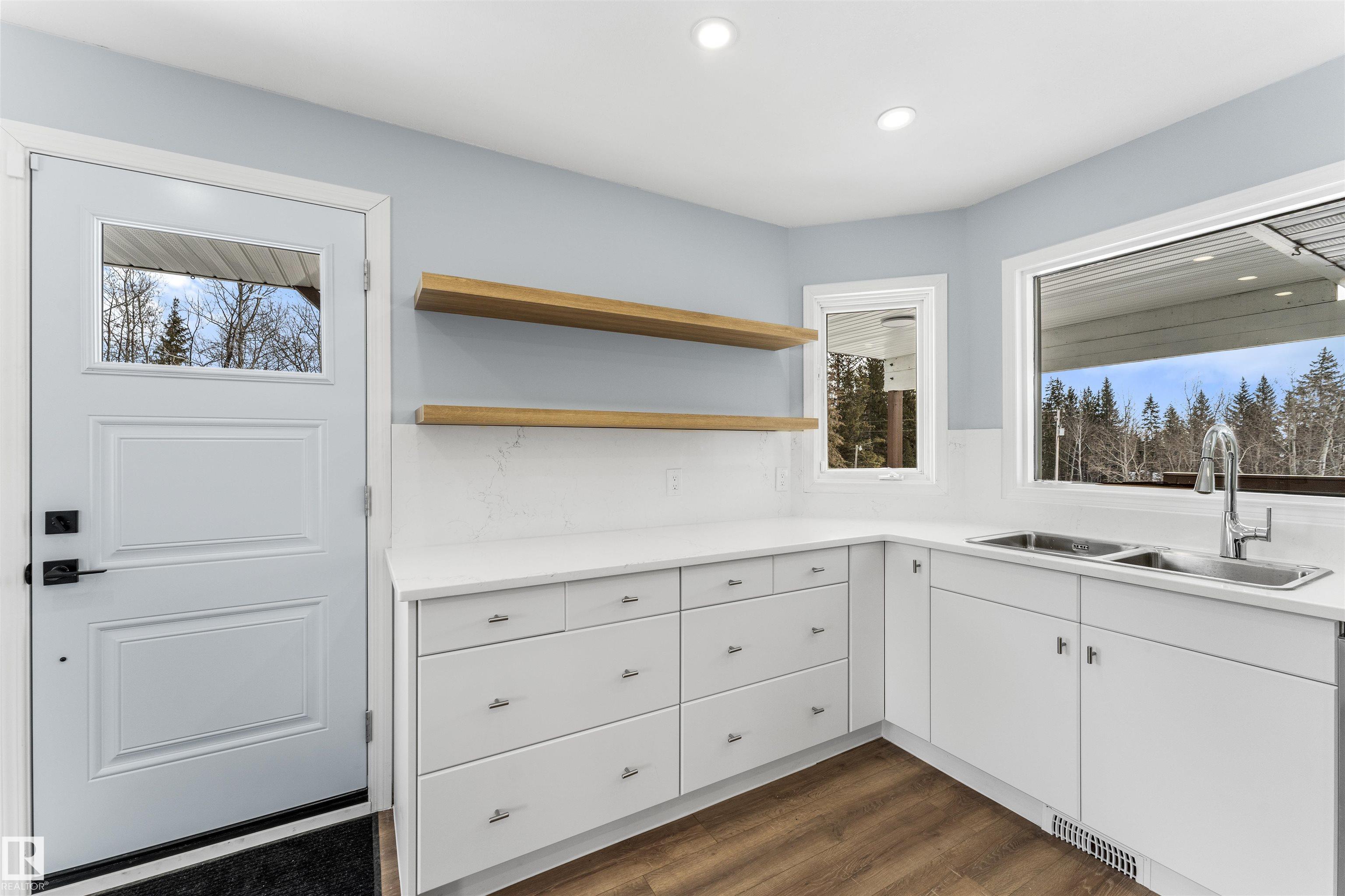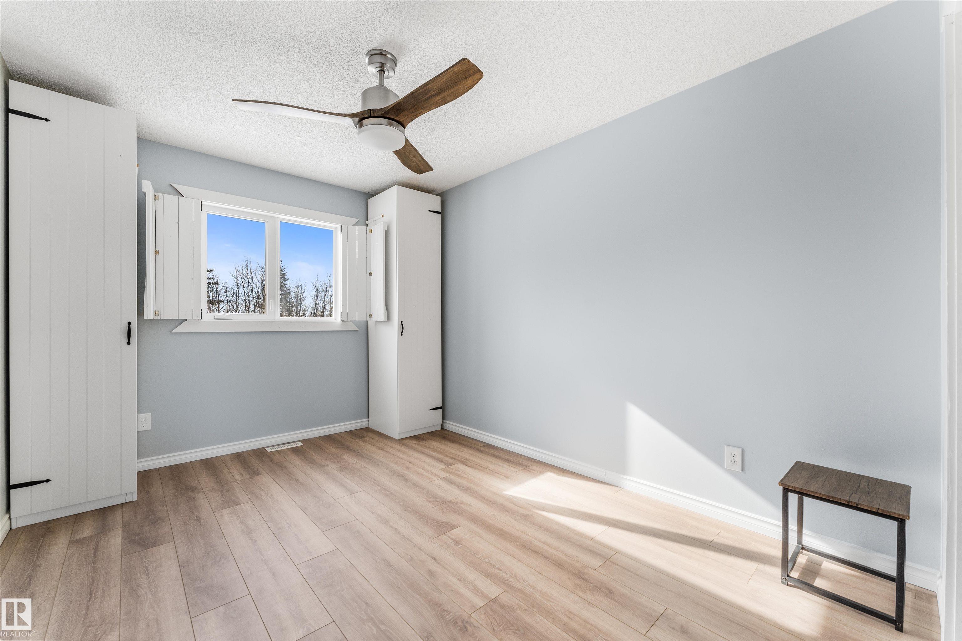 If you want peace and quiet? Enjoy nature on this 9.99 acre parcel just 20 minutes from Stony Plain. Nicely upgraded thru-out is this two storey walk out basement. Brand new kitchen cabinets, and back splash, freshly painted thru-out, new carpets, newer septic and filtration system, All new appliances, central vacuum system, Covered wrap around deck with new carpeting. House has 60 amp service with solar panels. Cistern holds approximately. 3000 gallons. Lots of room for a great hobby farm. Smaller attached garage with new epoxy floor. Property was recently subdivided so taxes to be determined. Were approx. $4221.30 in 2025. Located just minutes from the N. Sask River. Adjacent 10 acres may be purchased separately . MLS#E4476253