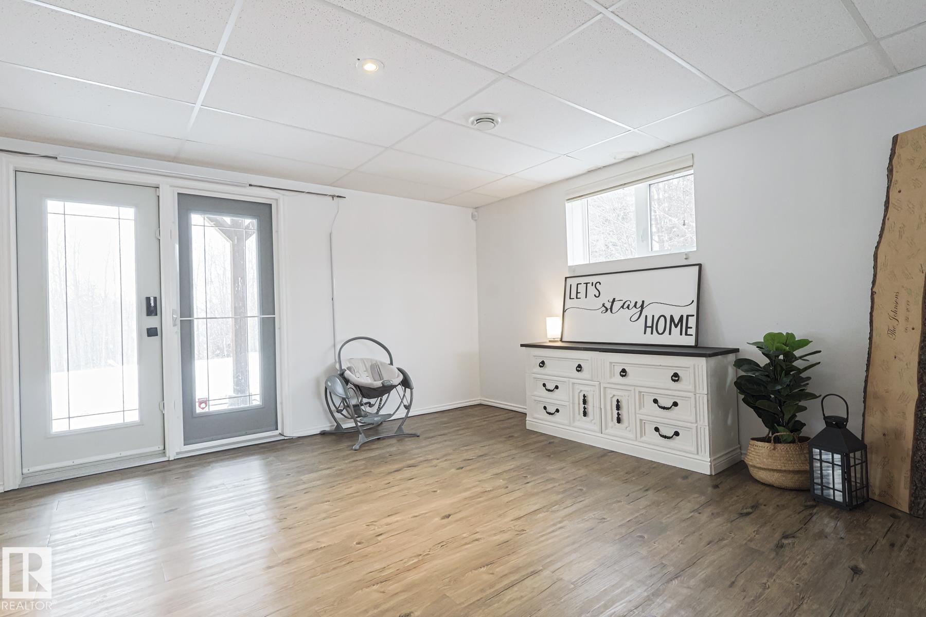 Just 20 mins from Stony Plain, Pristine Acreage in Star Lake Estates, Paved Driveway! Heated OversizedÿGarage! Flagstone Firepit! 1.63 acres directly beside an empty 2 acre lot! BEAUTIFUL PRIDE OF OWNERSHIP! SURROUNDED by TREES! Backing Nobody! Fully Finished WALK OUT basement! 4 beds, 3 baths, Full big dedicated Laundry room!ÿCHICKKKENNNÿCOOOOOOP. 1267 sq ft Bilevel w VAULTED ceilings, Bright and Light, windows everywhere! Gas fireplace, BEAUTIFULÿKITCHEN, w SS appliances, GAS STOVE, Bosch dishwasher, opens onto your elevated back deck looking over the acreage! 3 perfectÿrooms incl a primary w a 3 pc ensuite + extra lil storage nook. BASEMENT..MASSIVE. Wide open, Light filled, so, much space, vinyl plank, 4 th bedroomÿis huge, 3 pc bathroom rules, laundry room is very very big and Functional! This is perfect Private acreage life, not too much to mow! Just the right amount! Garden Boxes, Forest in the back...And it even has those cool house lights everybody's buying.ÿ10/10 Acreage all around!